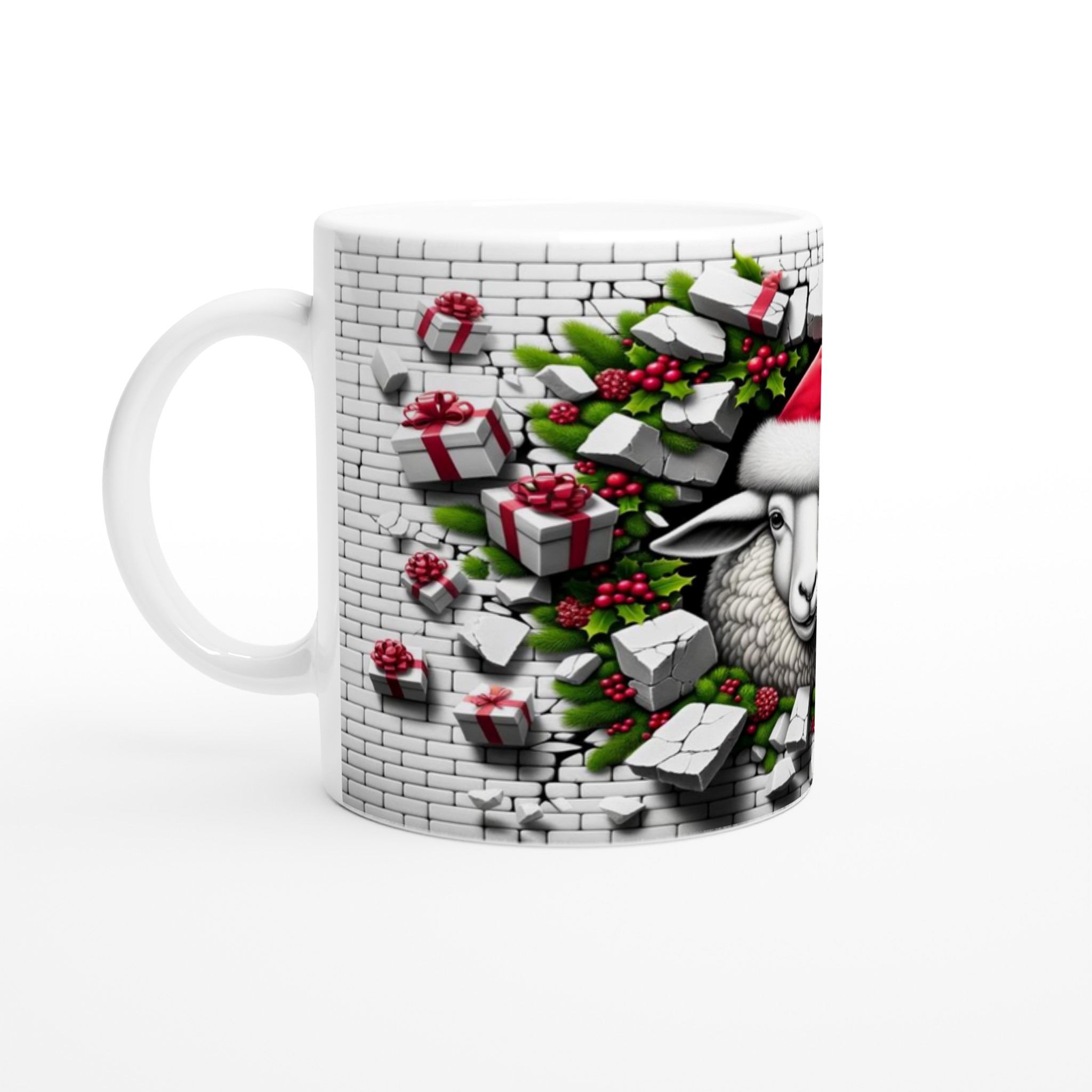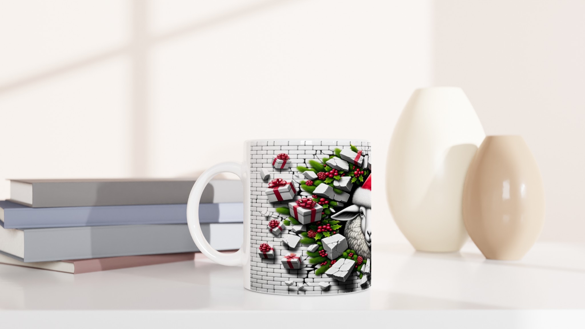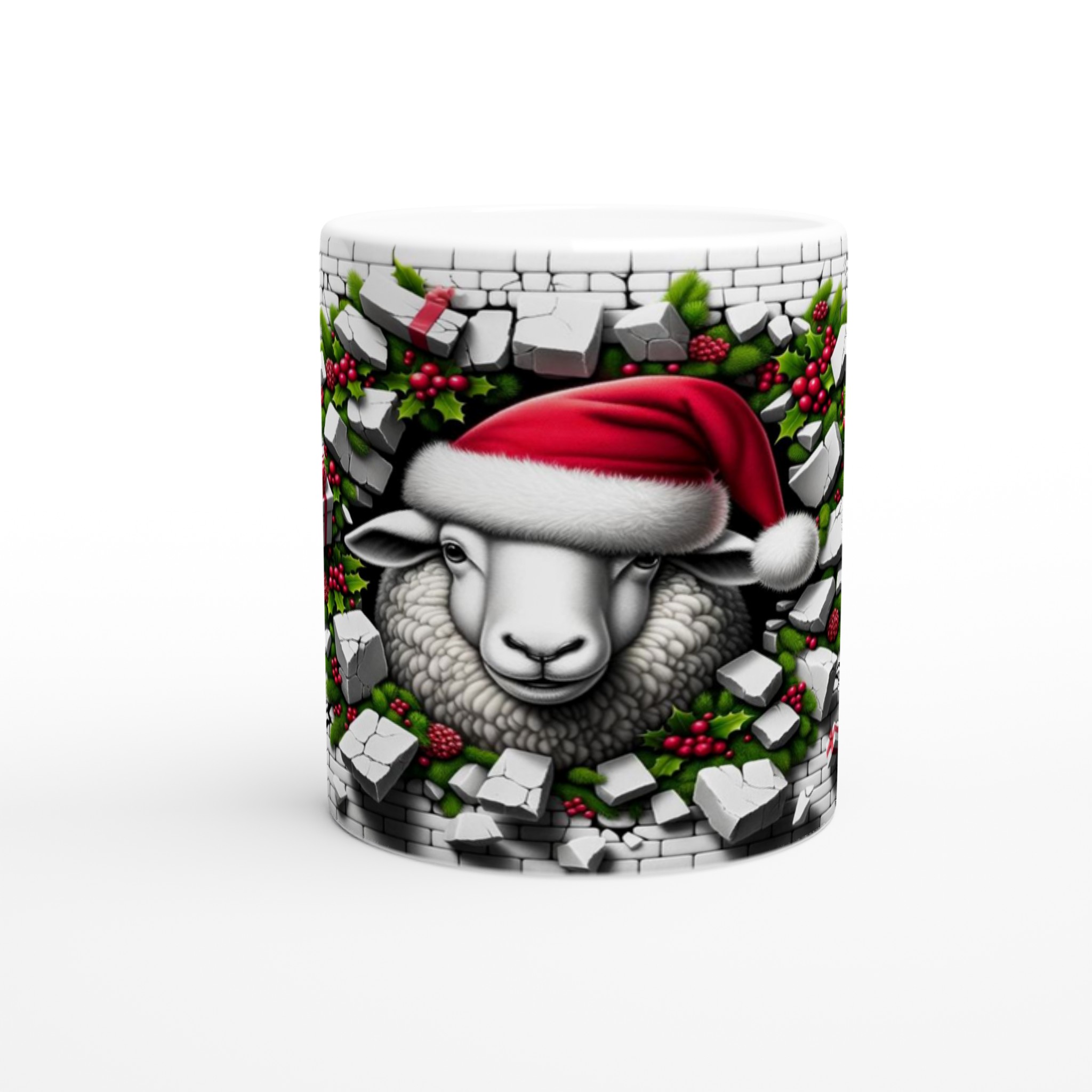 Charming Christmas Sheep Santa Hat 11oz Ceramic Mug – Festive Farmhouse Holiday Drinkware