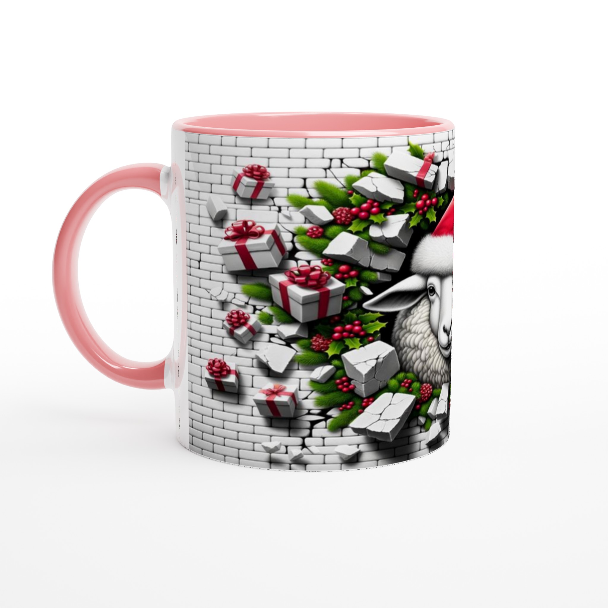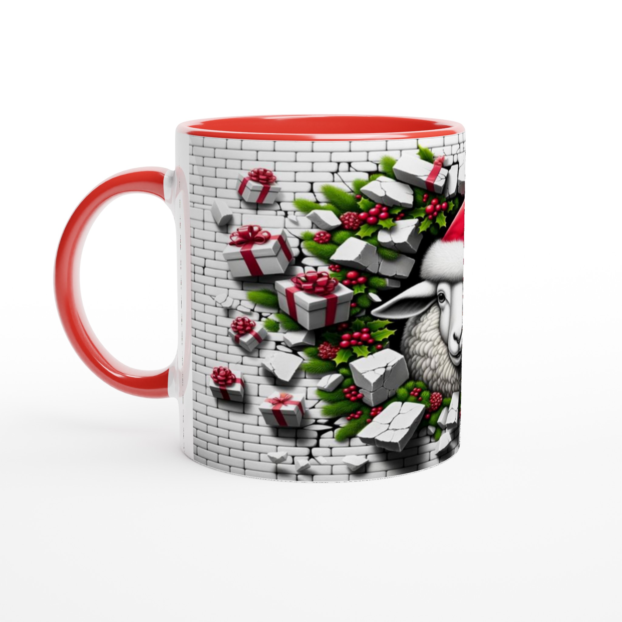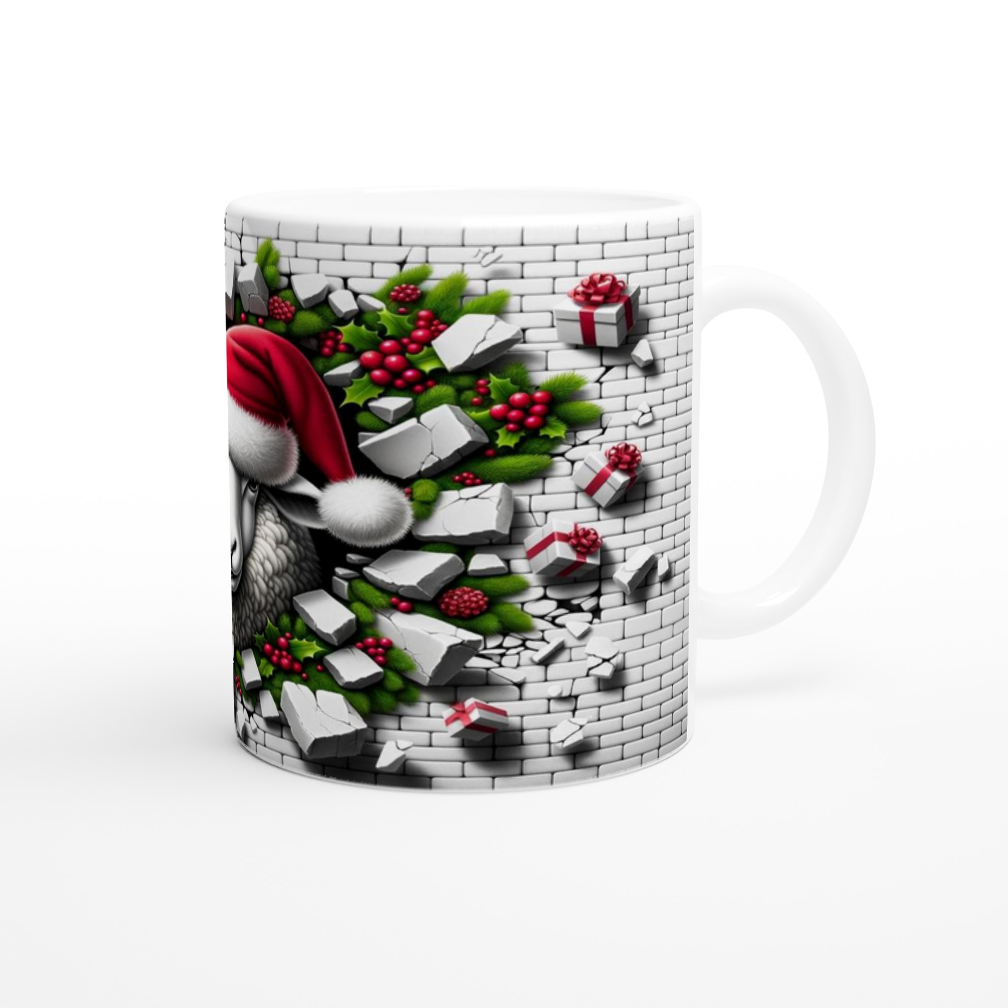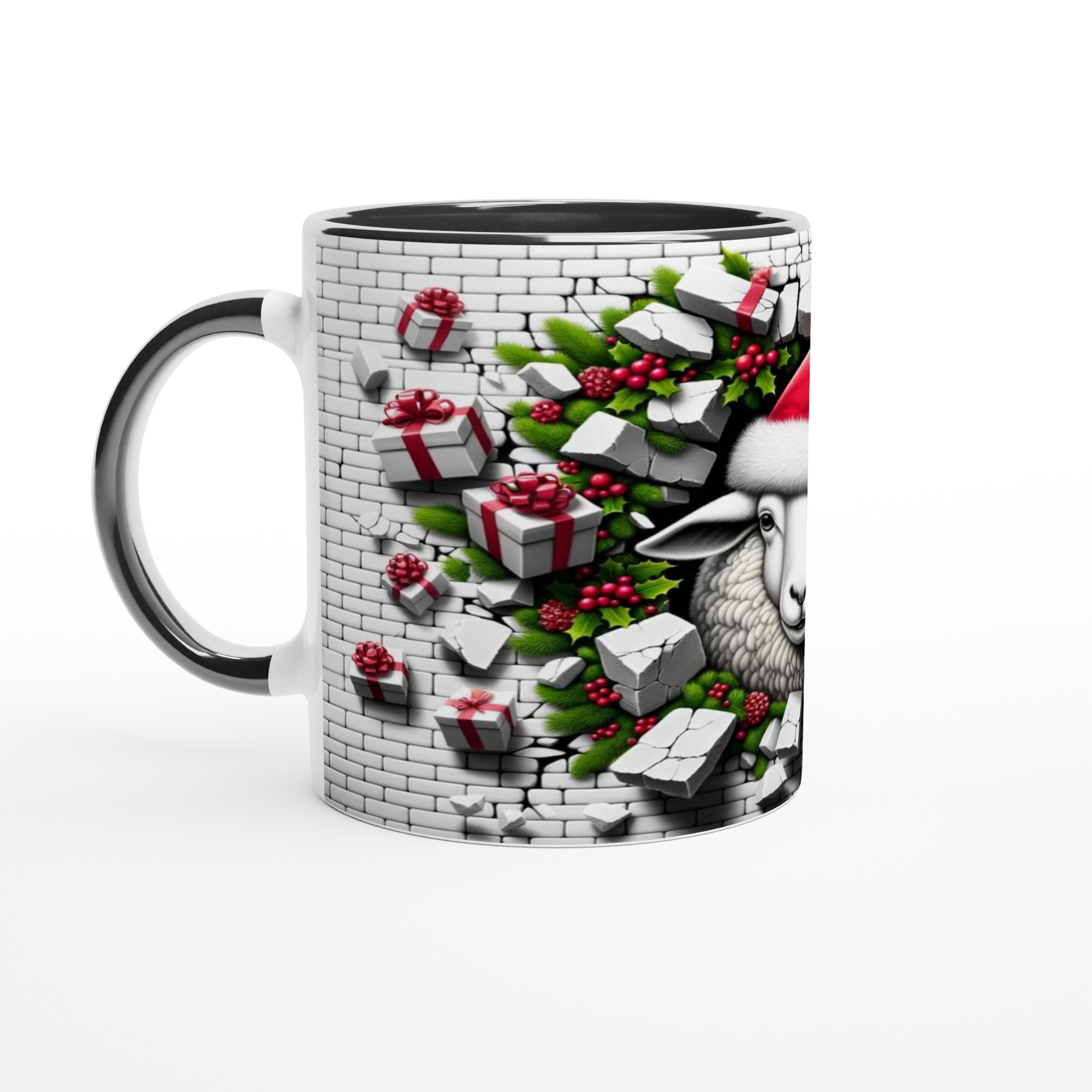 Charming Christmas Sheep Santa Hat 11oz Ceramic Mug – Festive Farmhouse Holiday Drinkware