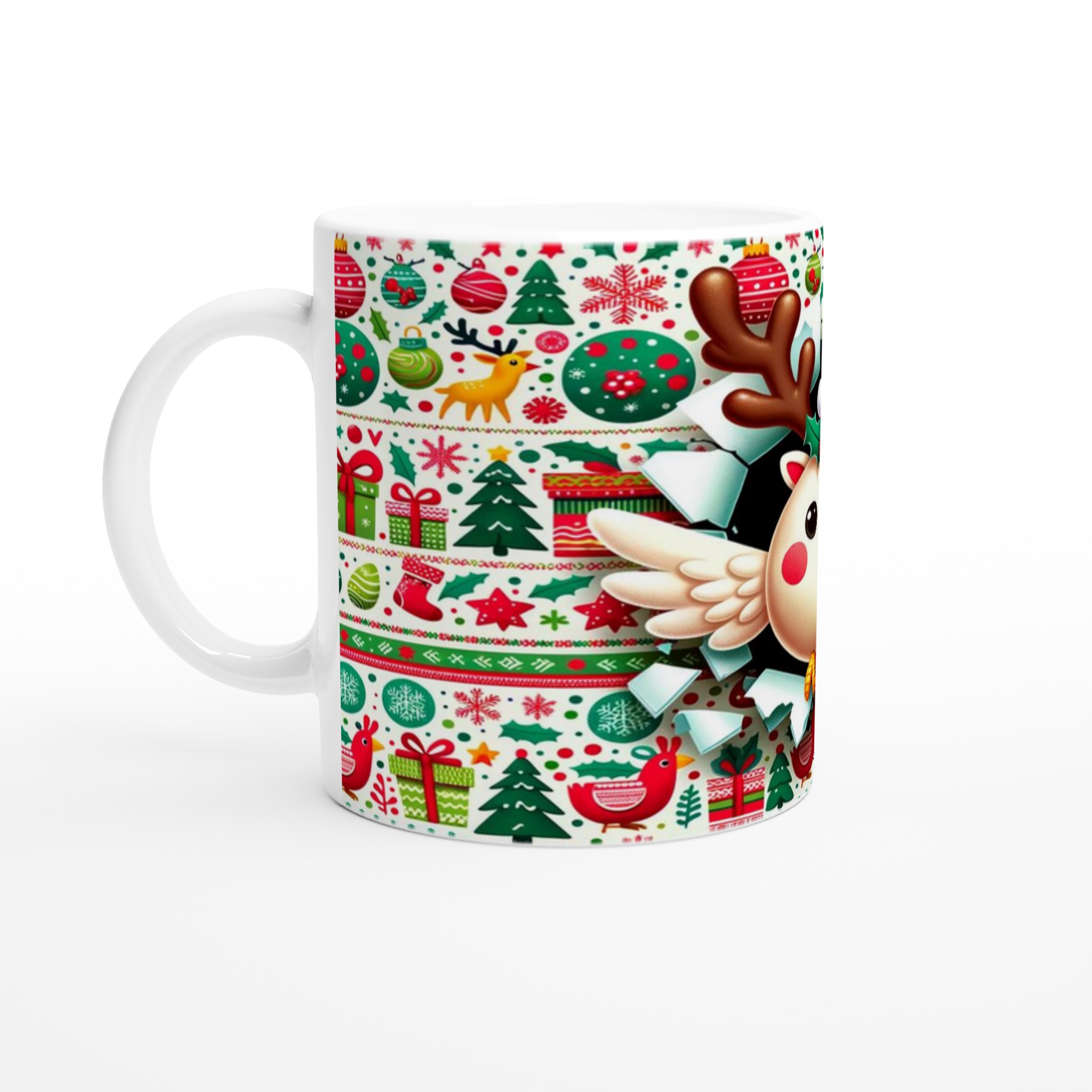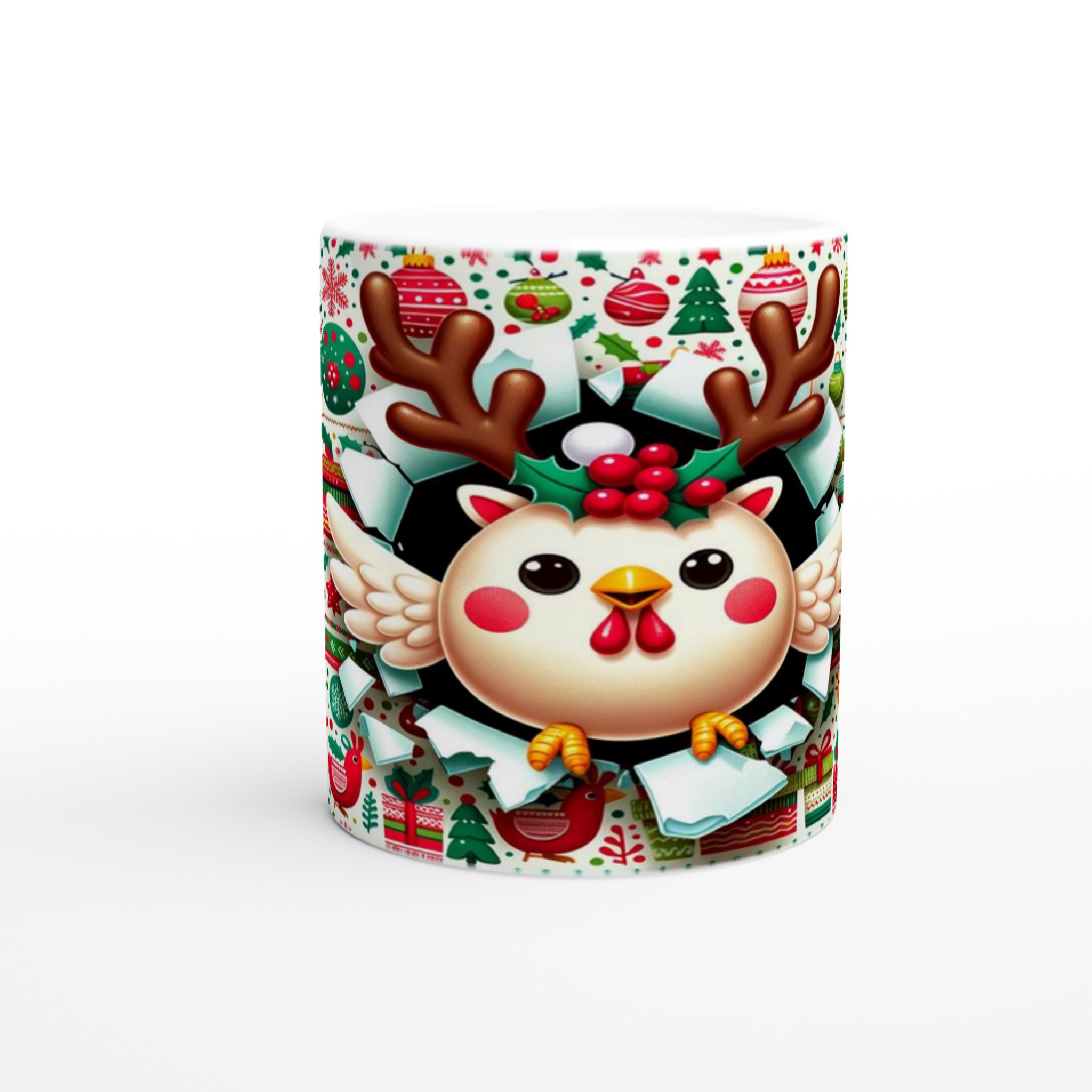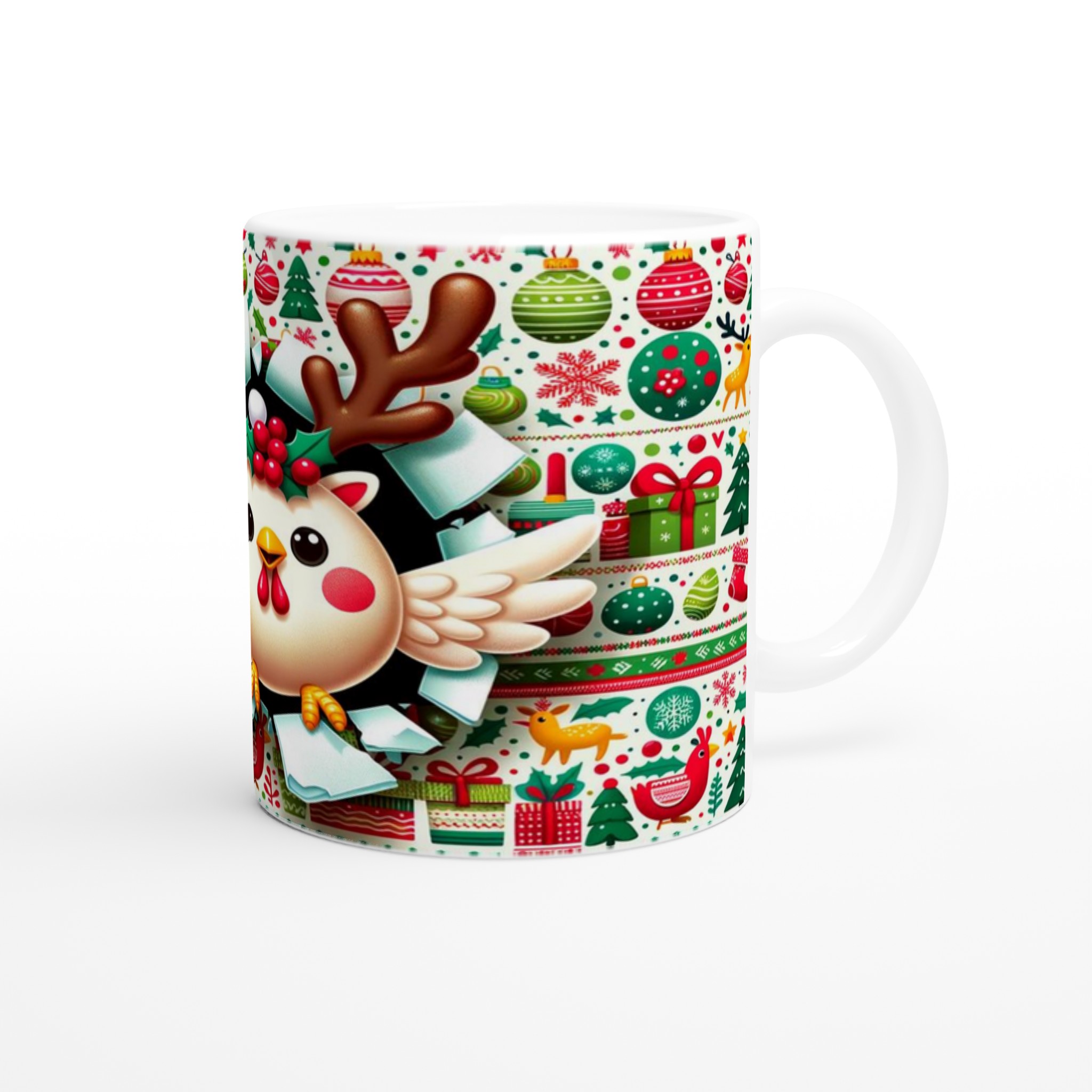 Charming Reindeer Chicken Christmas 11oz Ceramic Mug – Festive Fun in Your Favorite Hue!