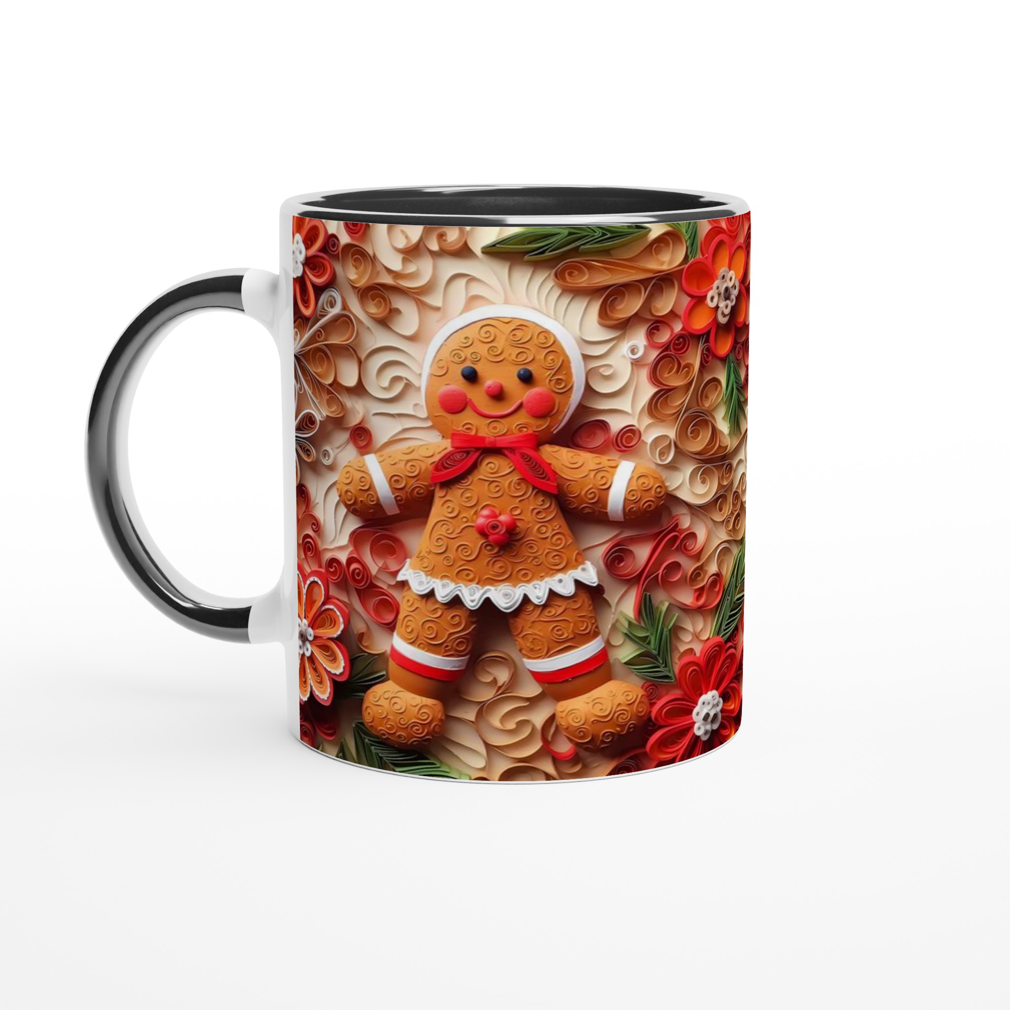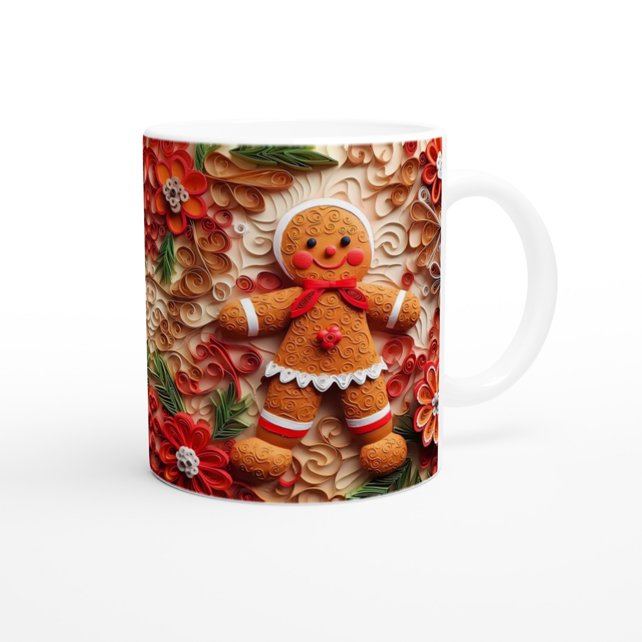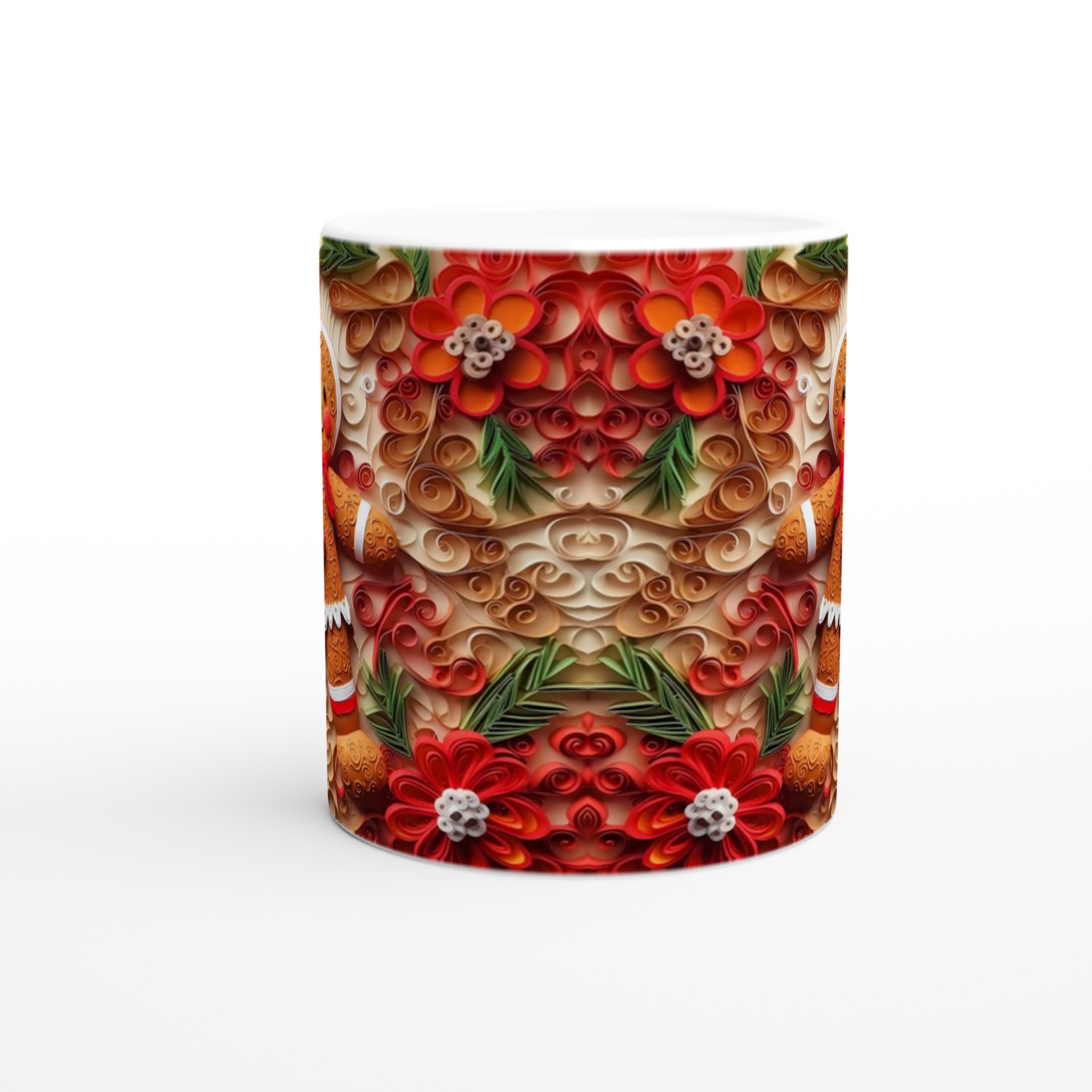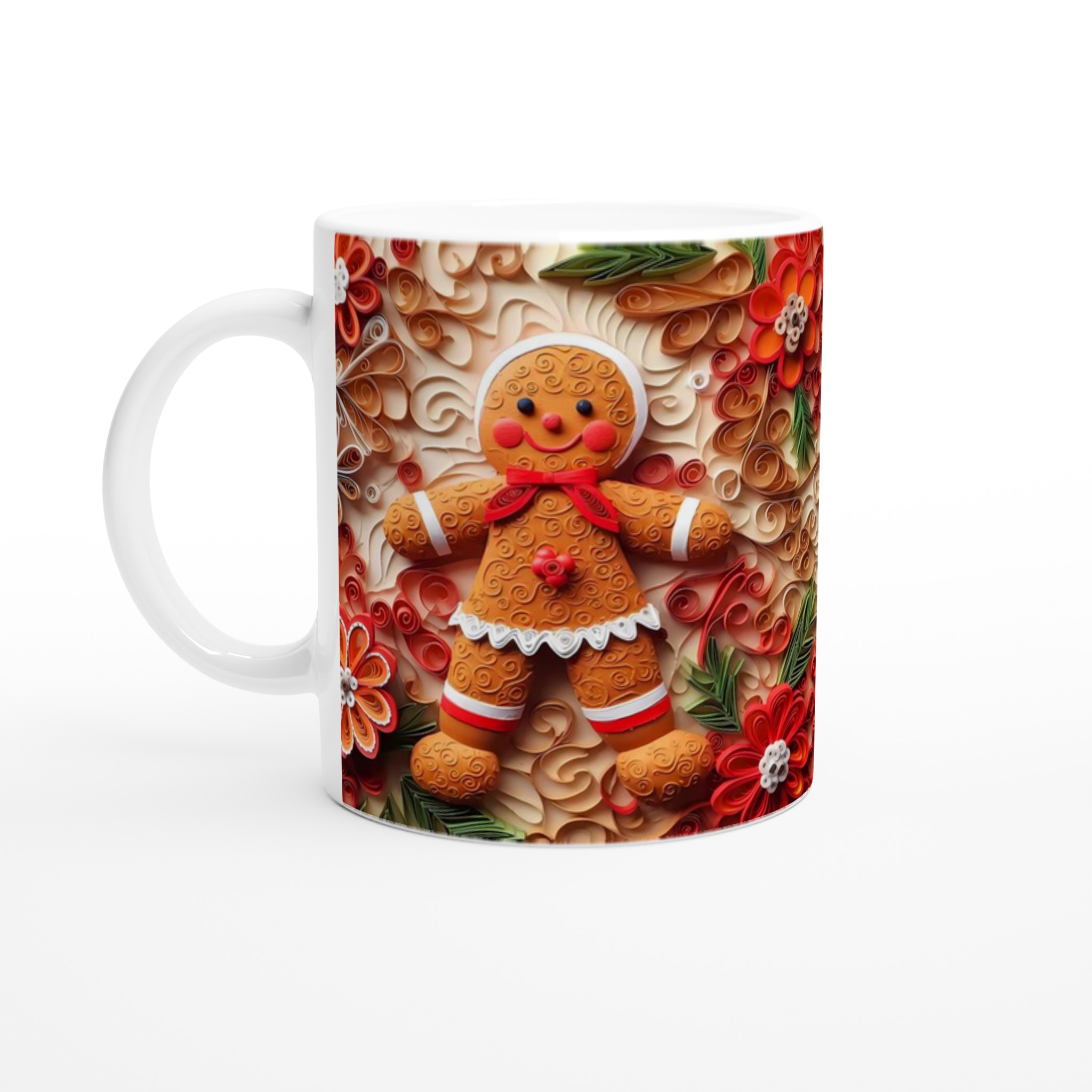 Festive Gingerbread Quilling Art Ceramic Mug – 11oz of Holiday Cheer in Your Favorite Color