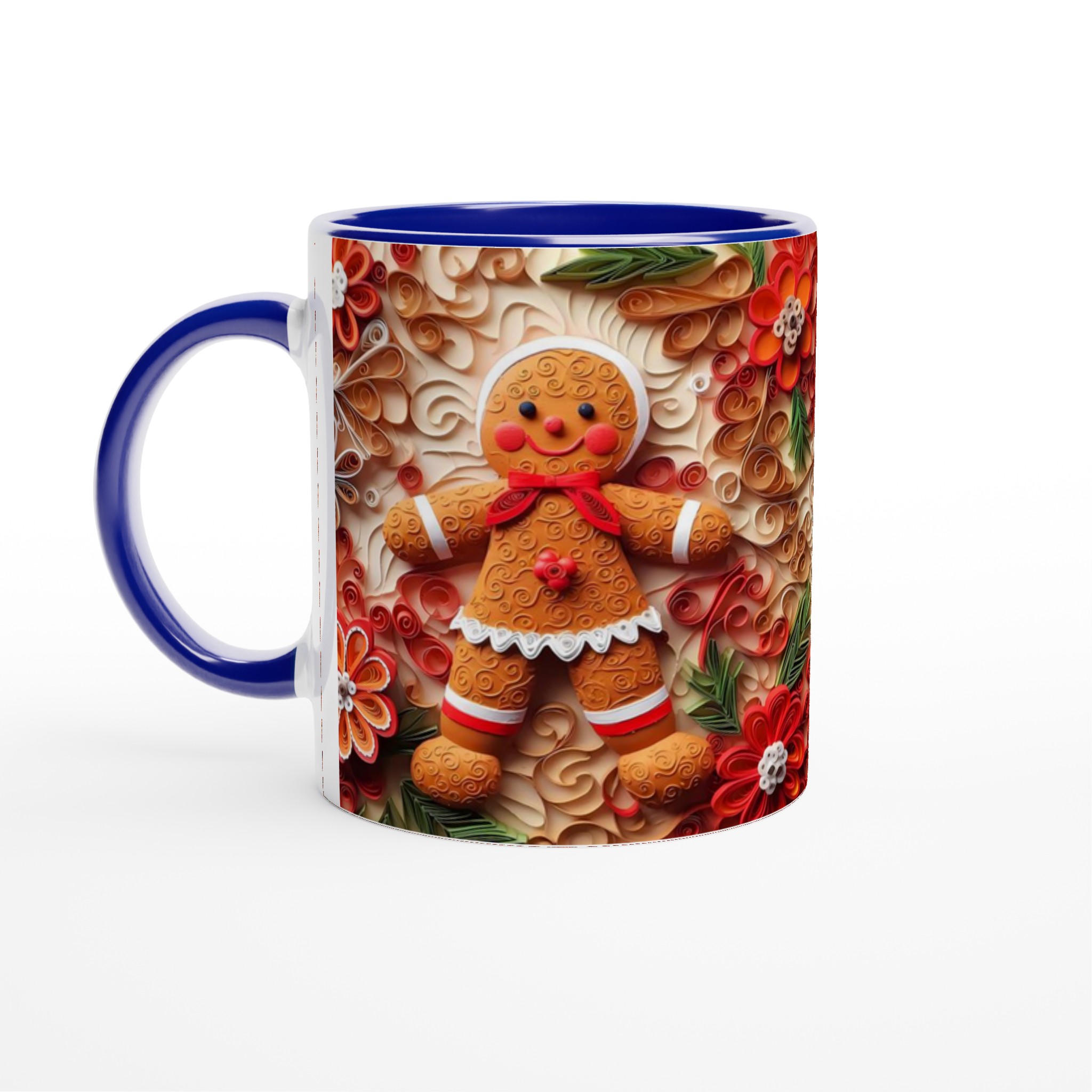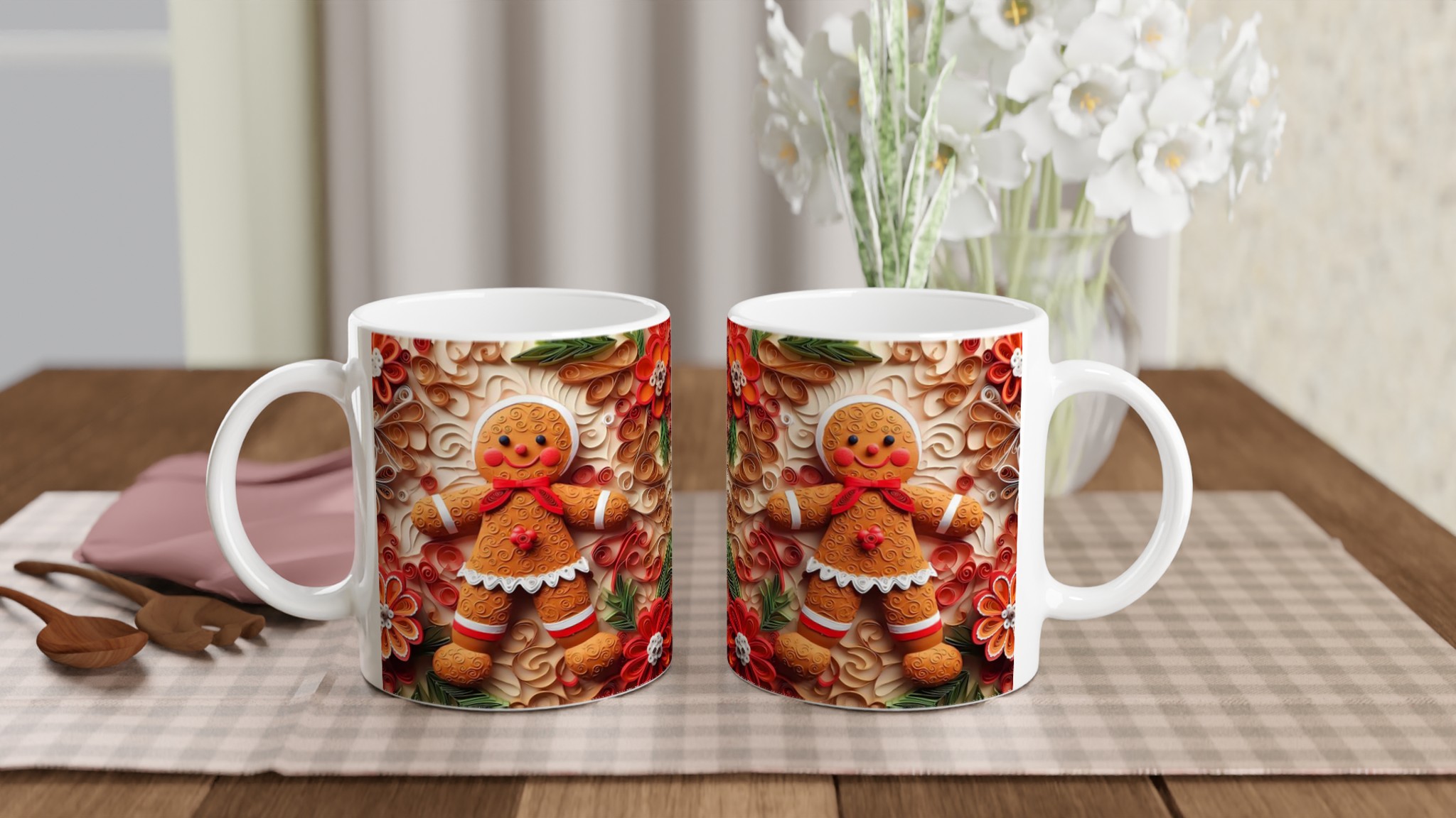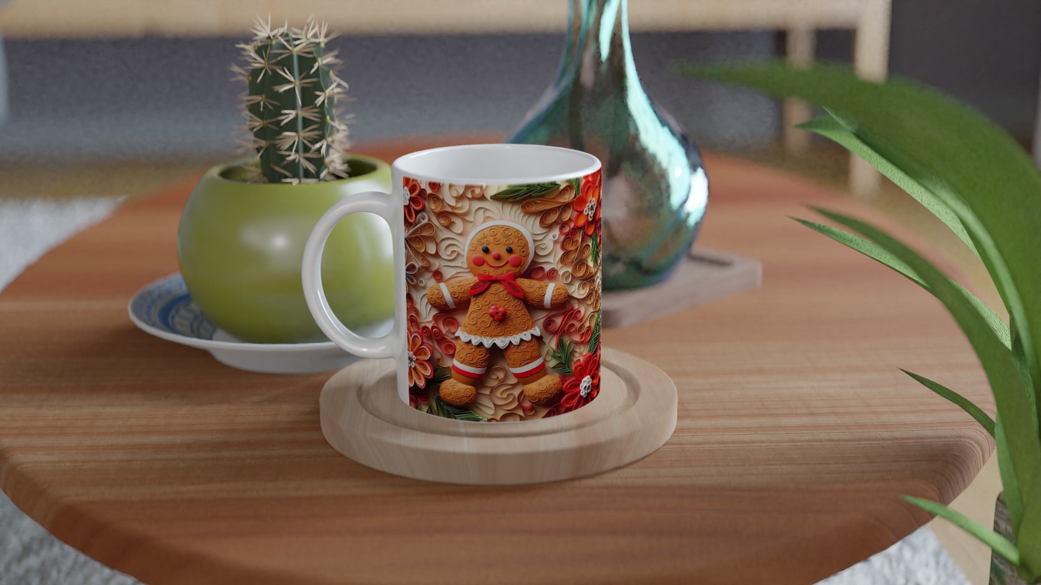 Festive Gingerbread Quilling Art Ceramic Mug – 11oz of Holiday Cheer in Your Favorite Color
