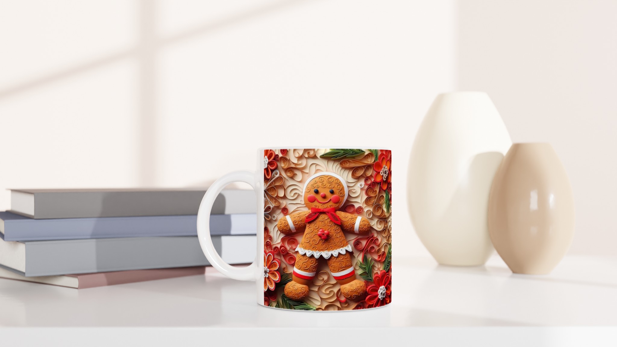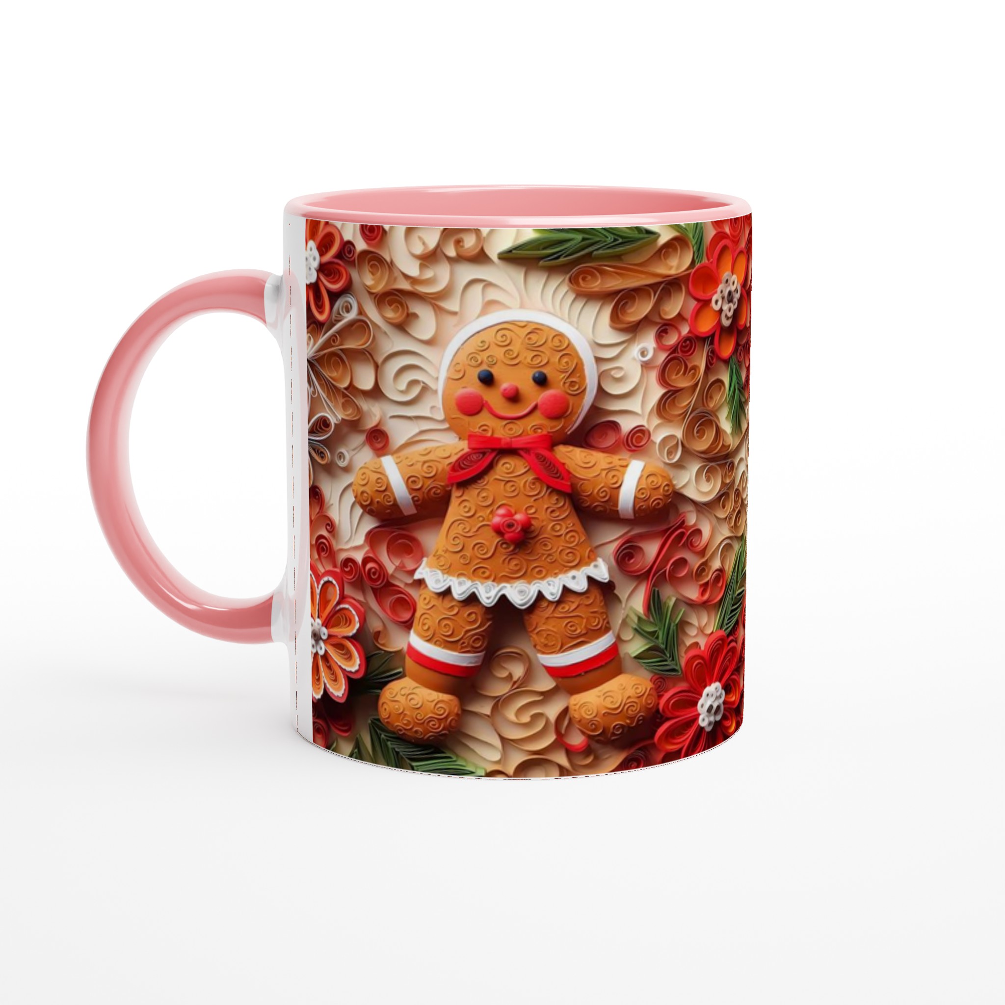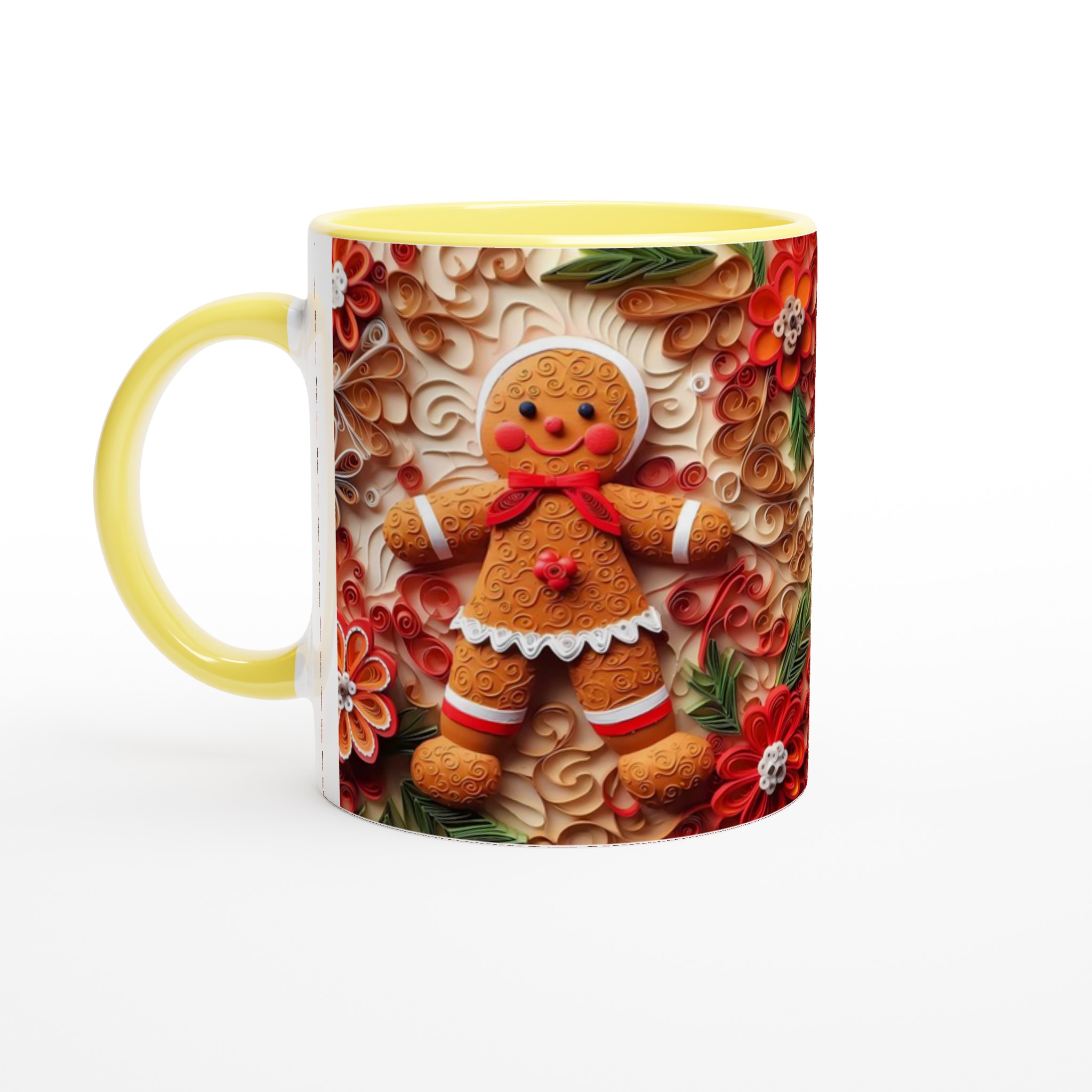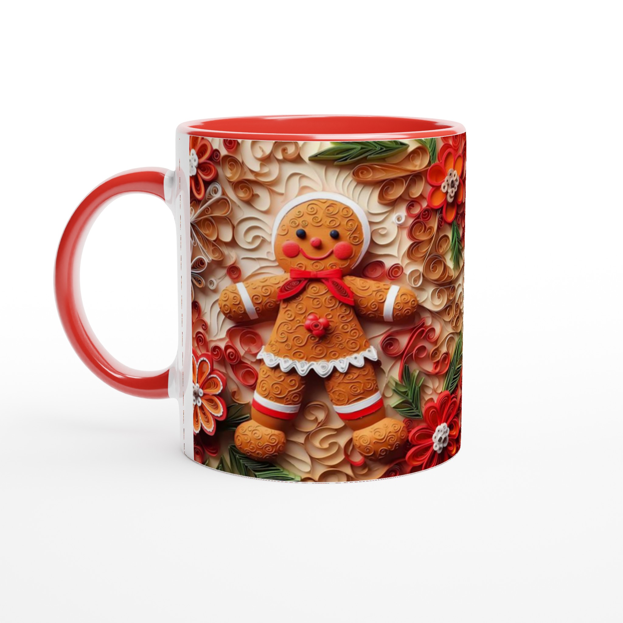 Festive Gingerbread Quilling Art Ceramic Mug – 11oz of Holiday Cheer in Your Favorite Color