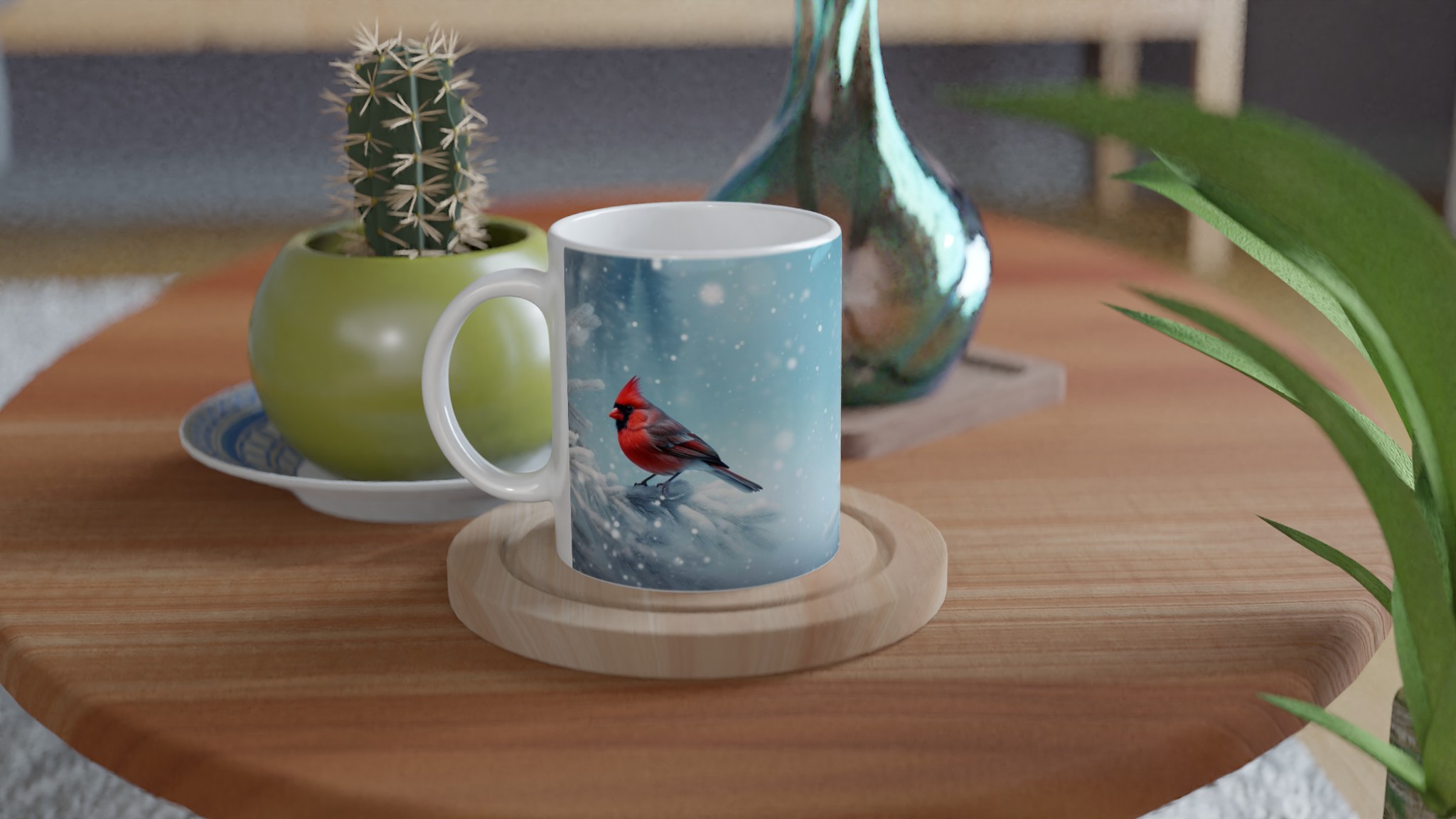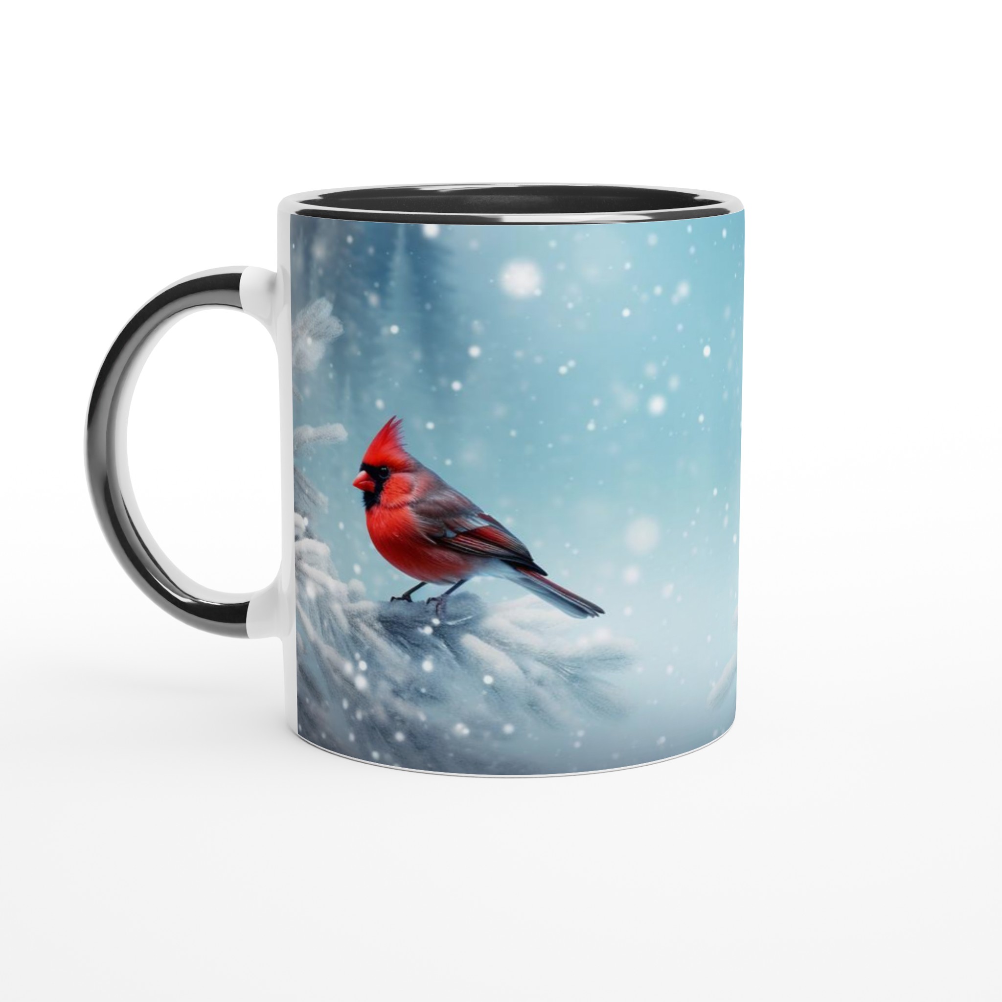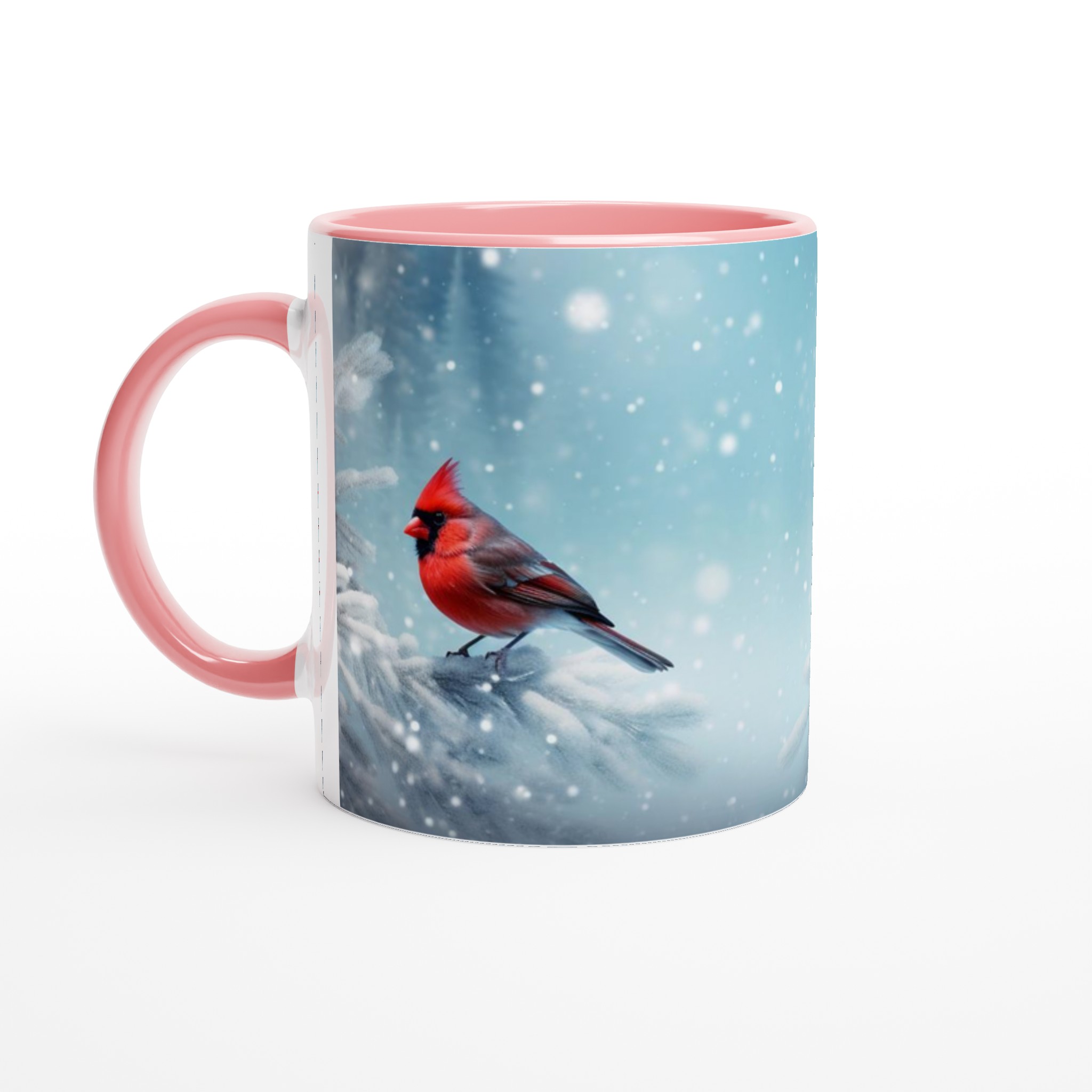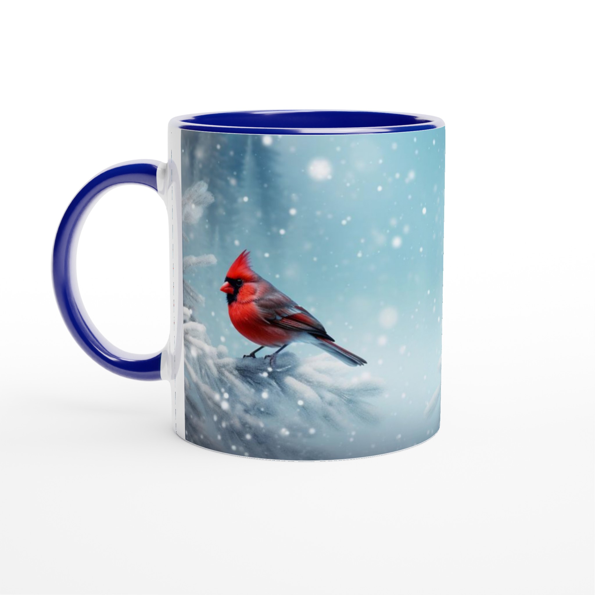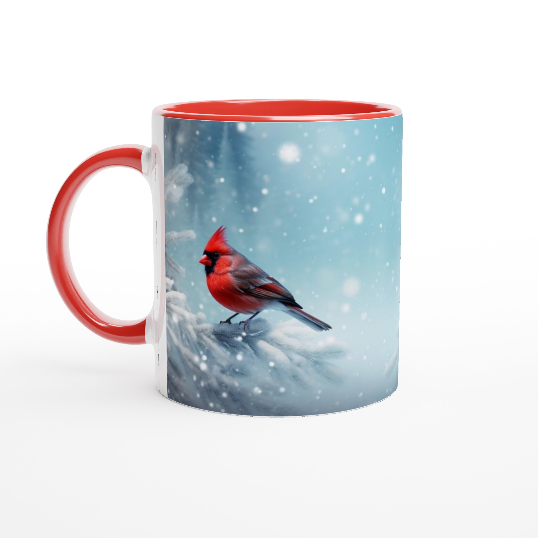 Winter Cardinal Frost Mug – 11oz Ceramic Coffee Cup in Your Choice of Seven Vibrant Colors