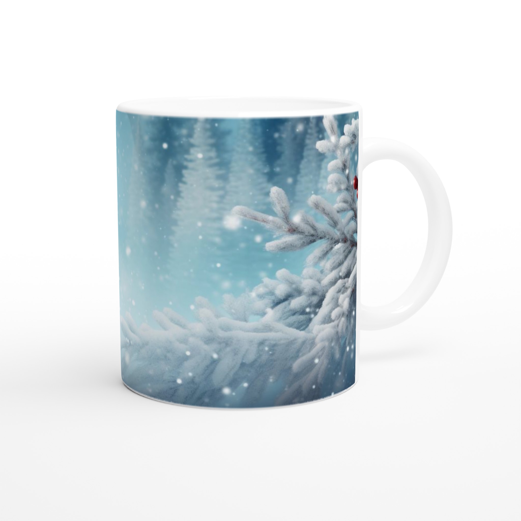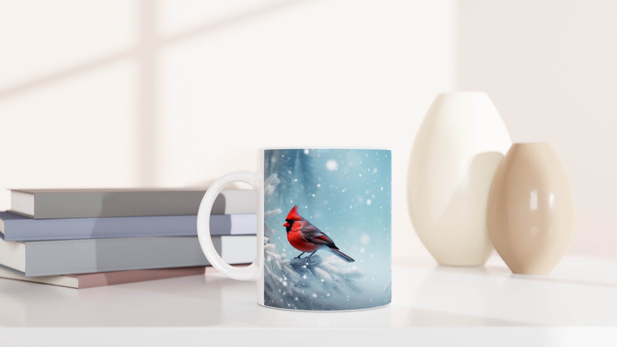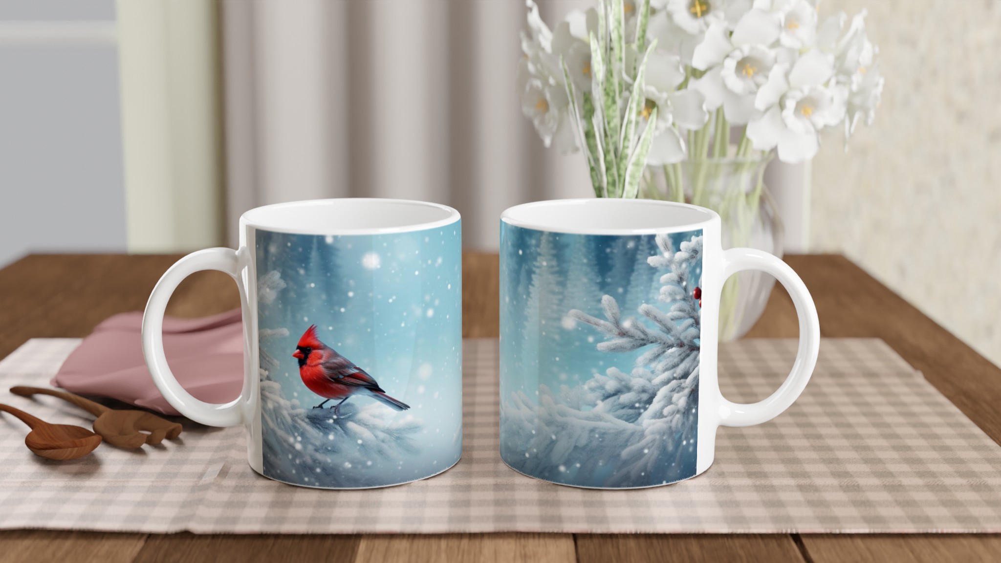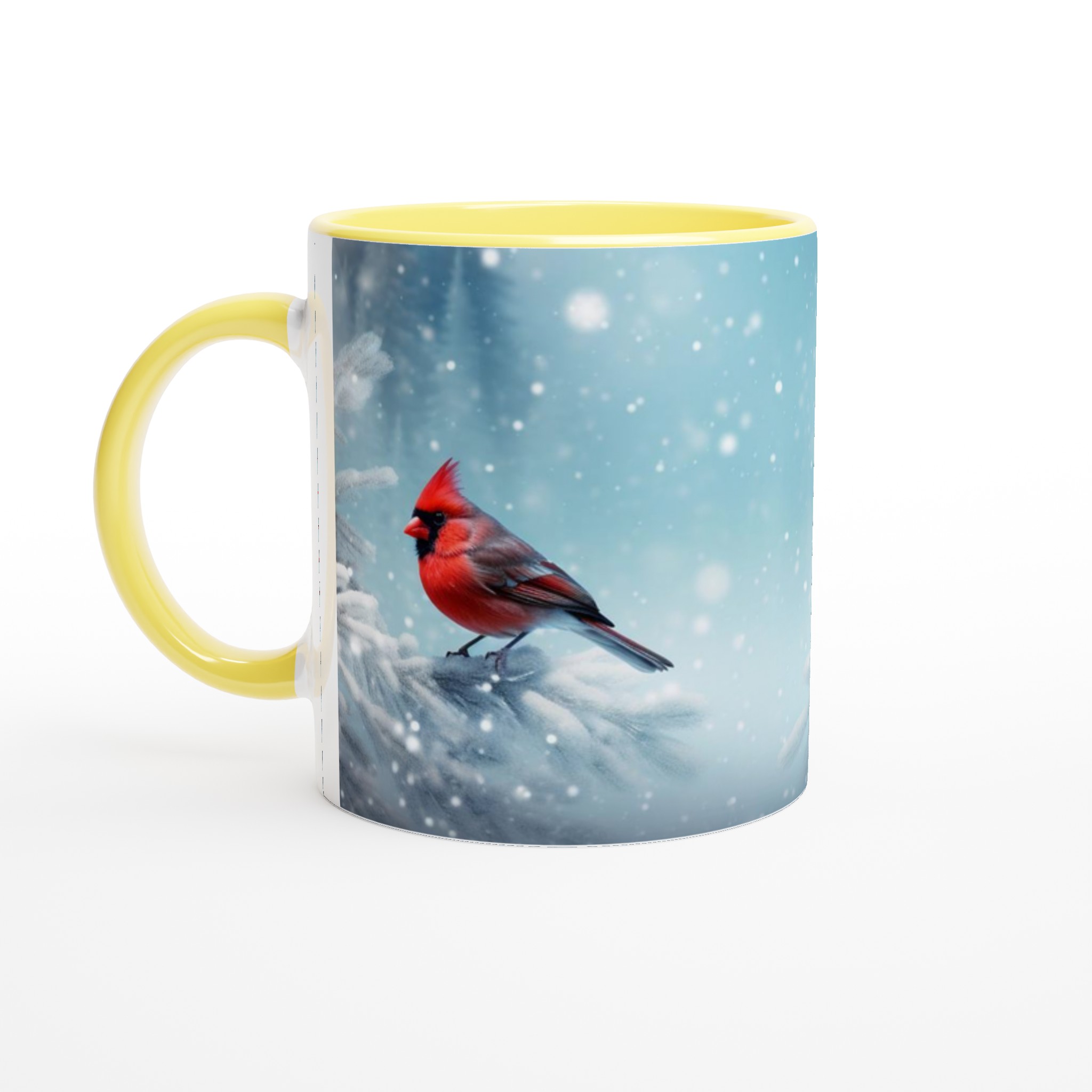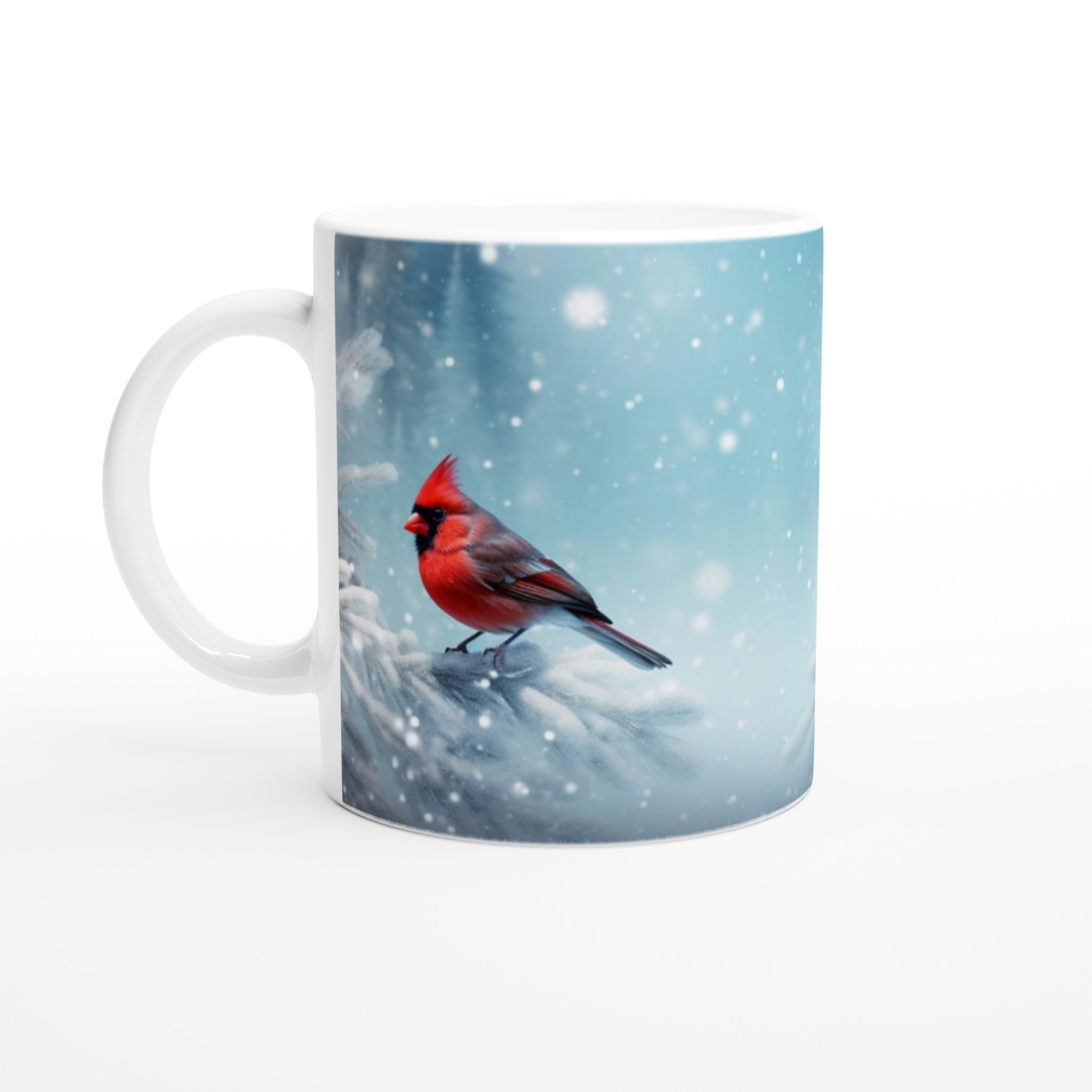 Winter Cardinal Frost Mug – 11oz Ceramic Coffee Cup in Your Choice of Seven Vibrant Colors