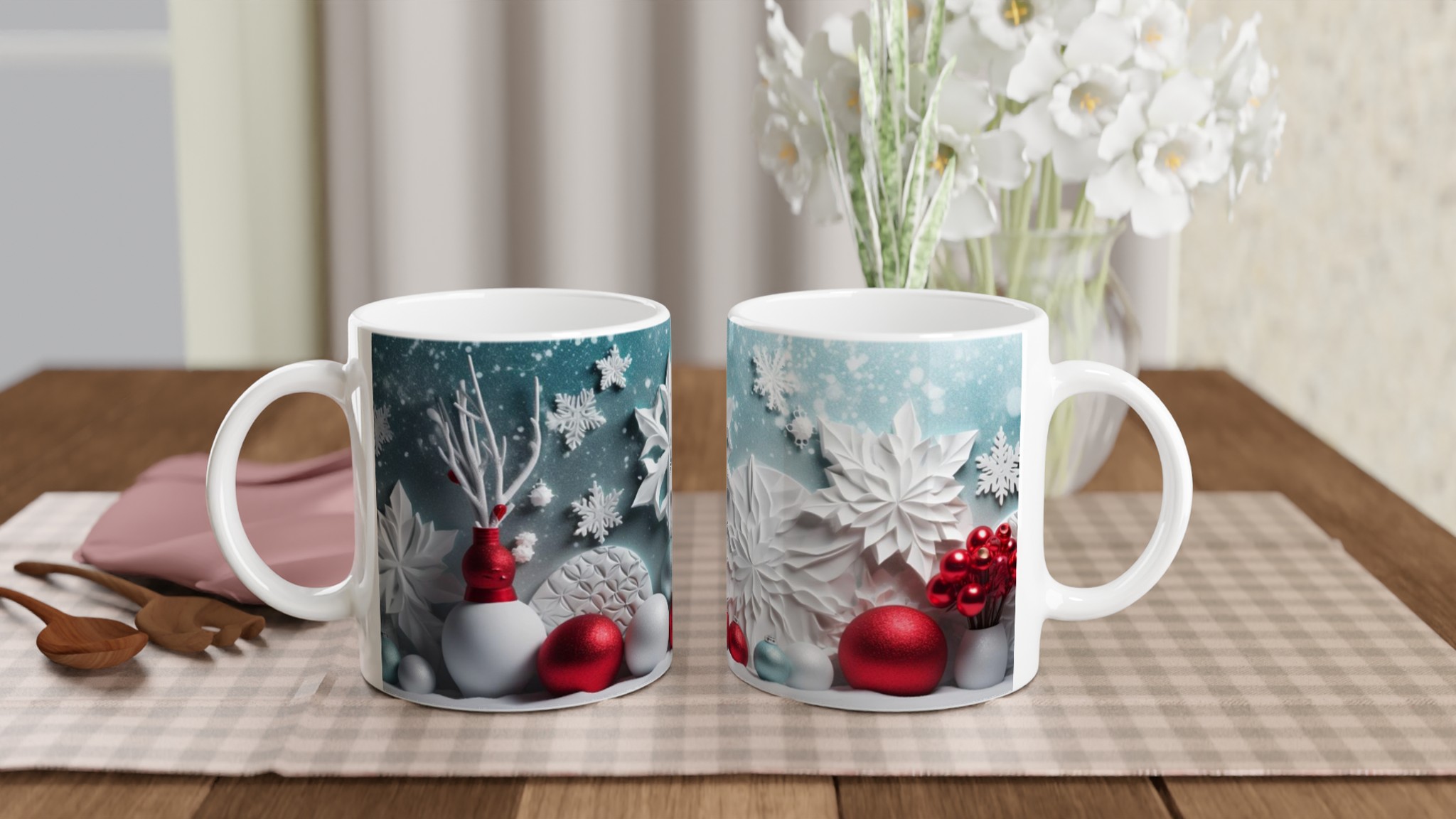 Winter Wonderland Ceramic Mug 11oz – Festive Red & Icy Blue Collection