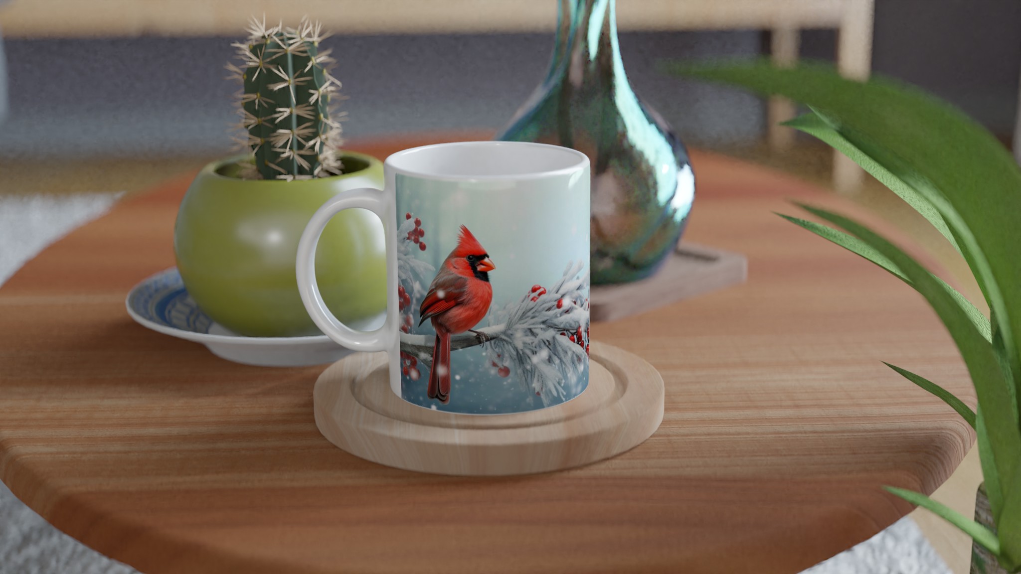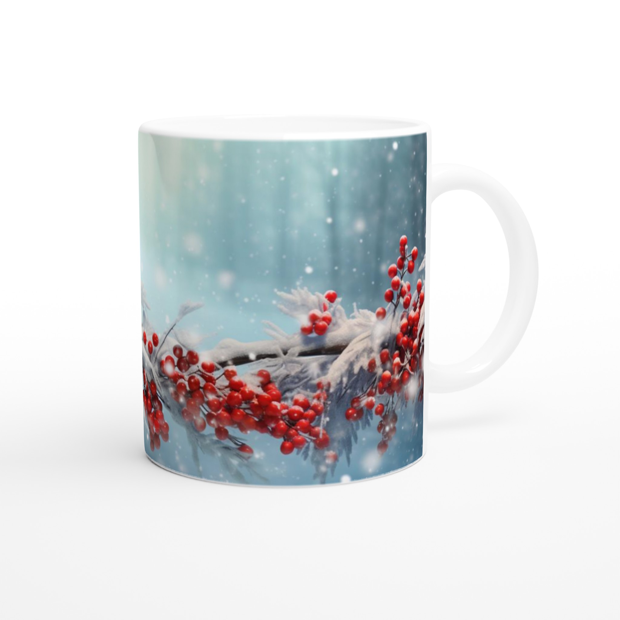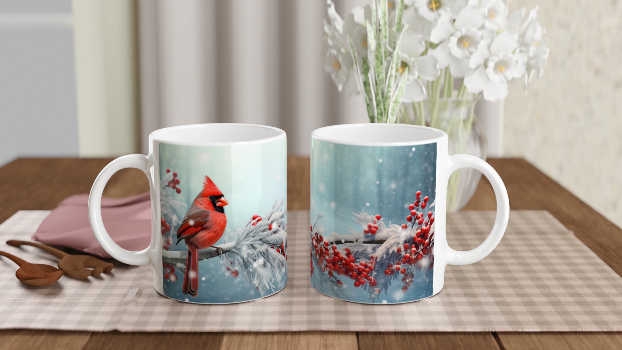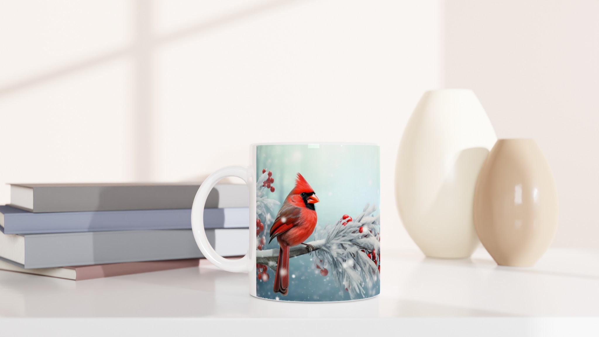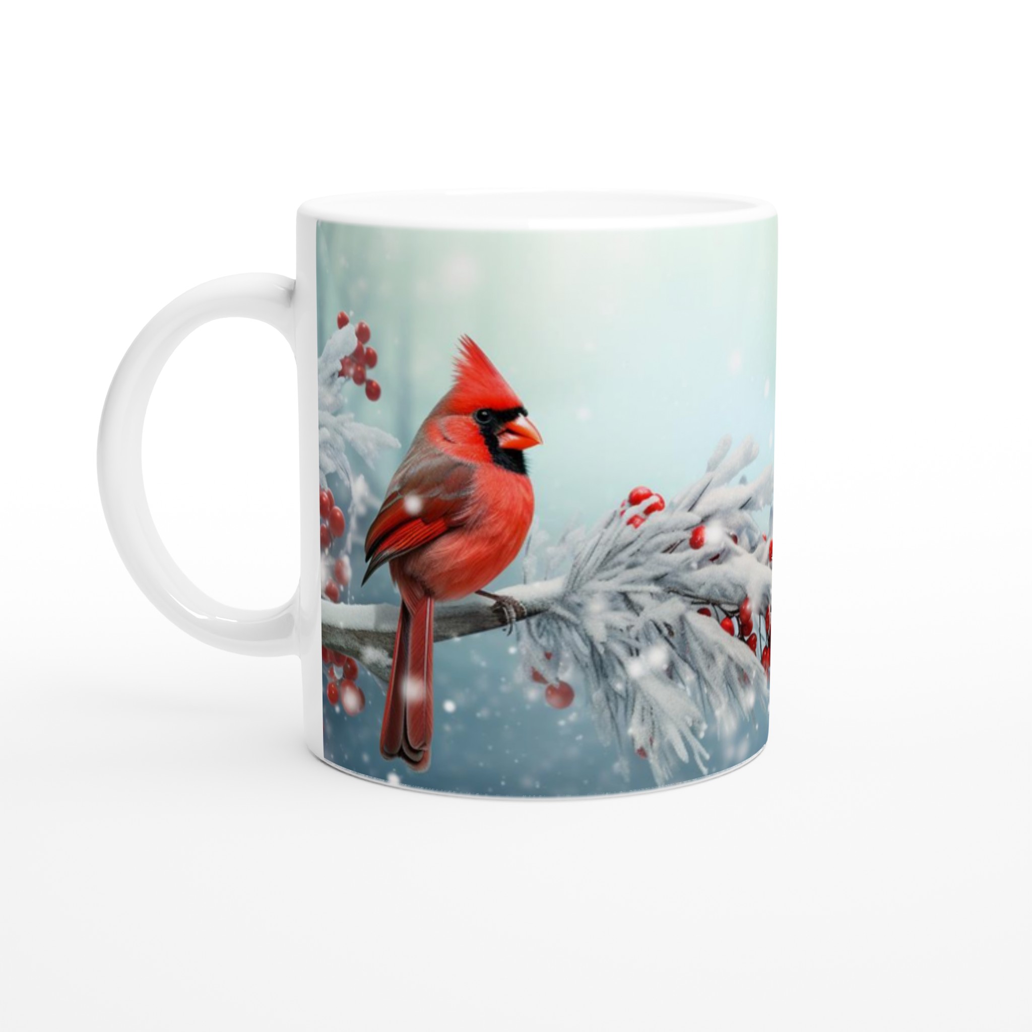 Winter Cardinal & Holly Berry – Festive Ceramic Mug 11oz – Choose Your Seasonal Shade!