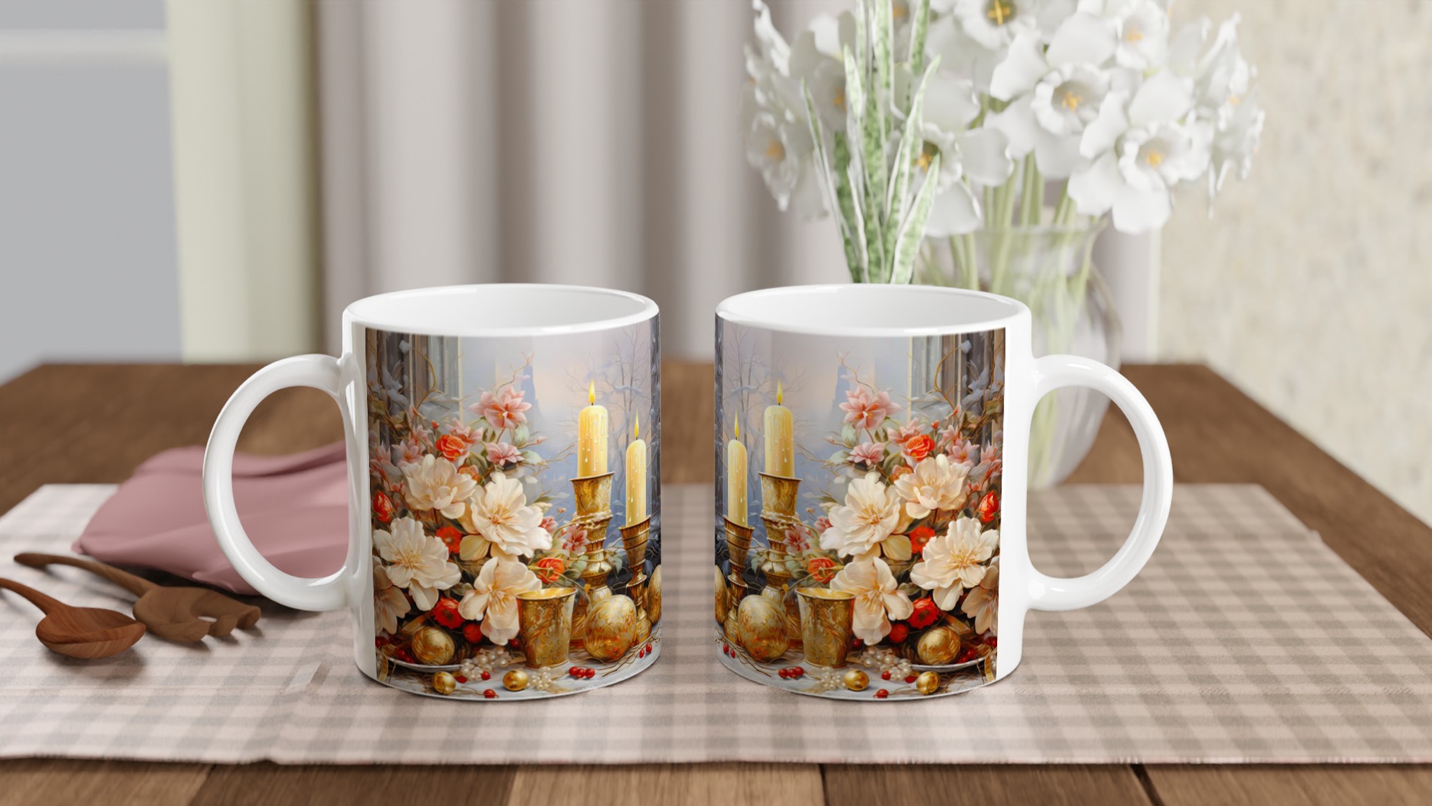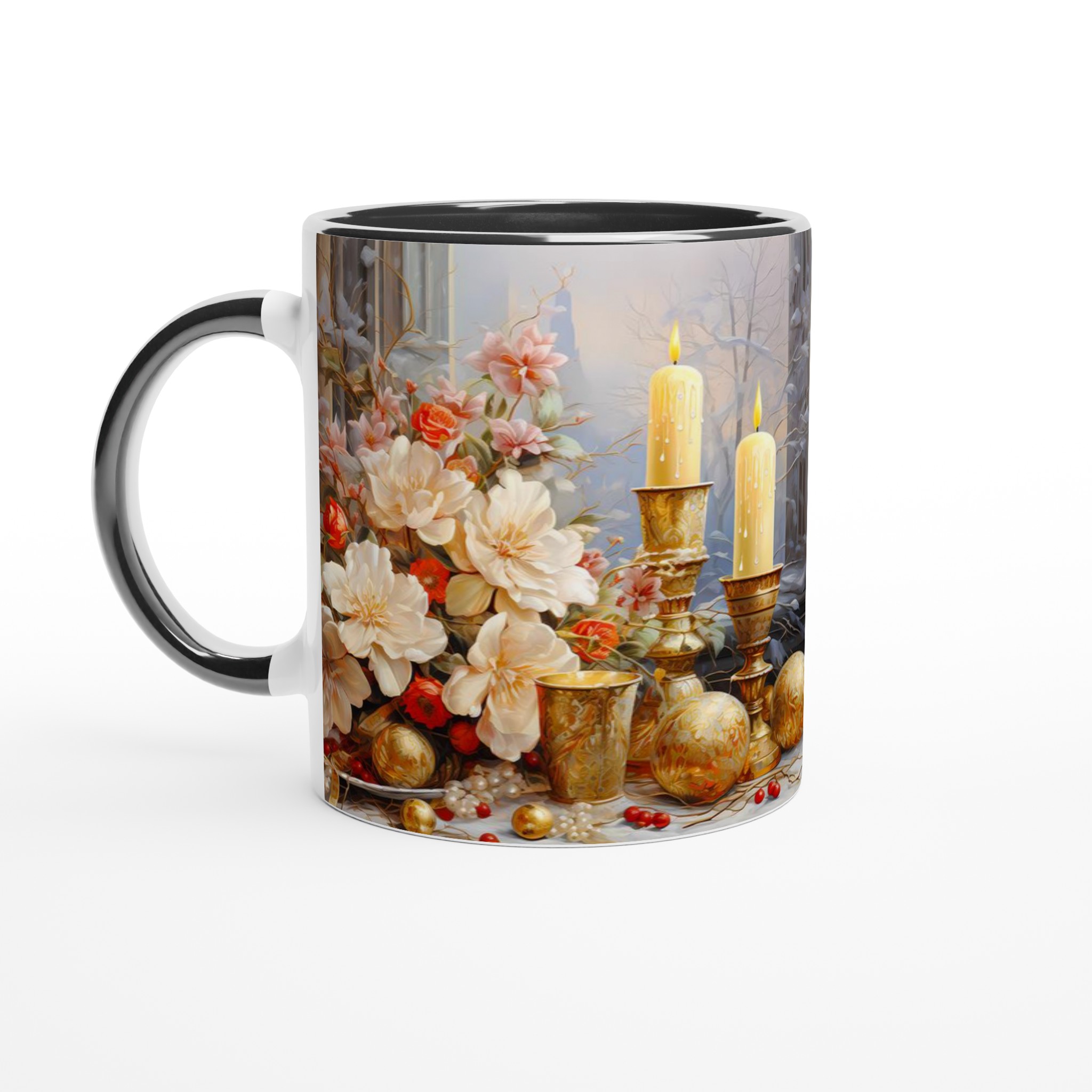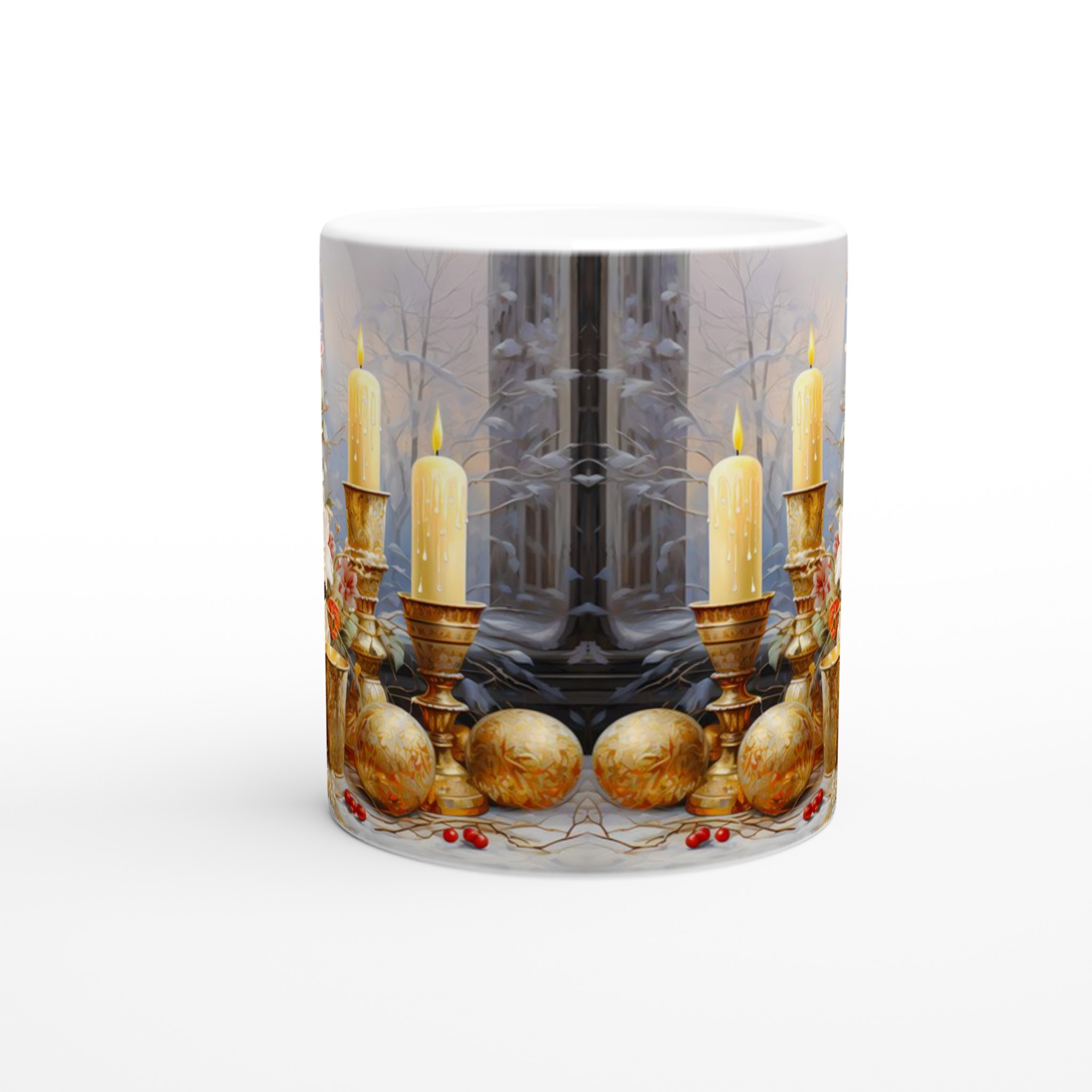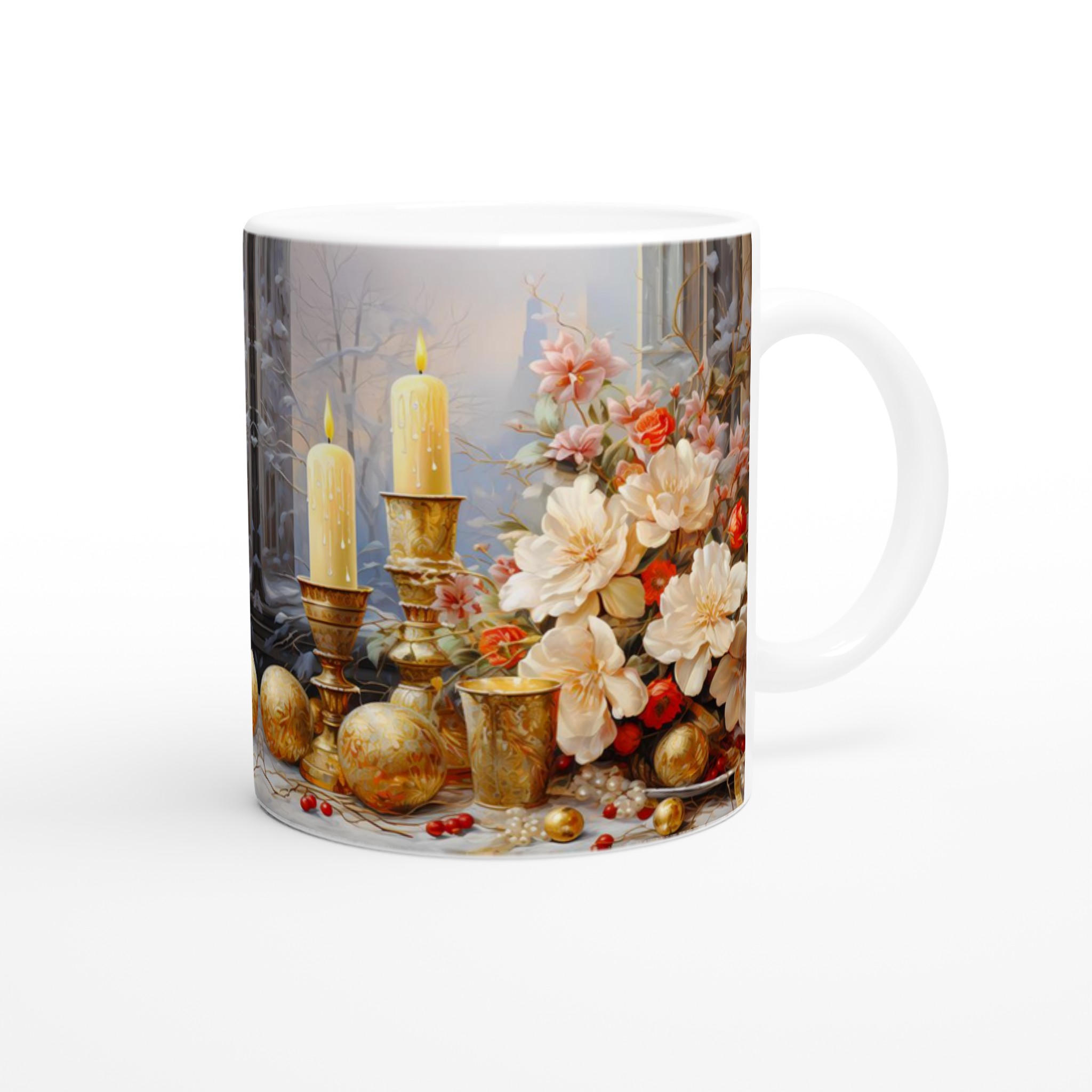 Enchanted Floral Gold – White Ceramic Mug 11oz: A Touch of Festive Elegance for Your Everyday