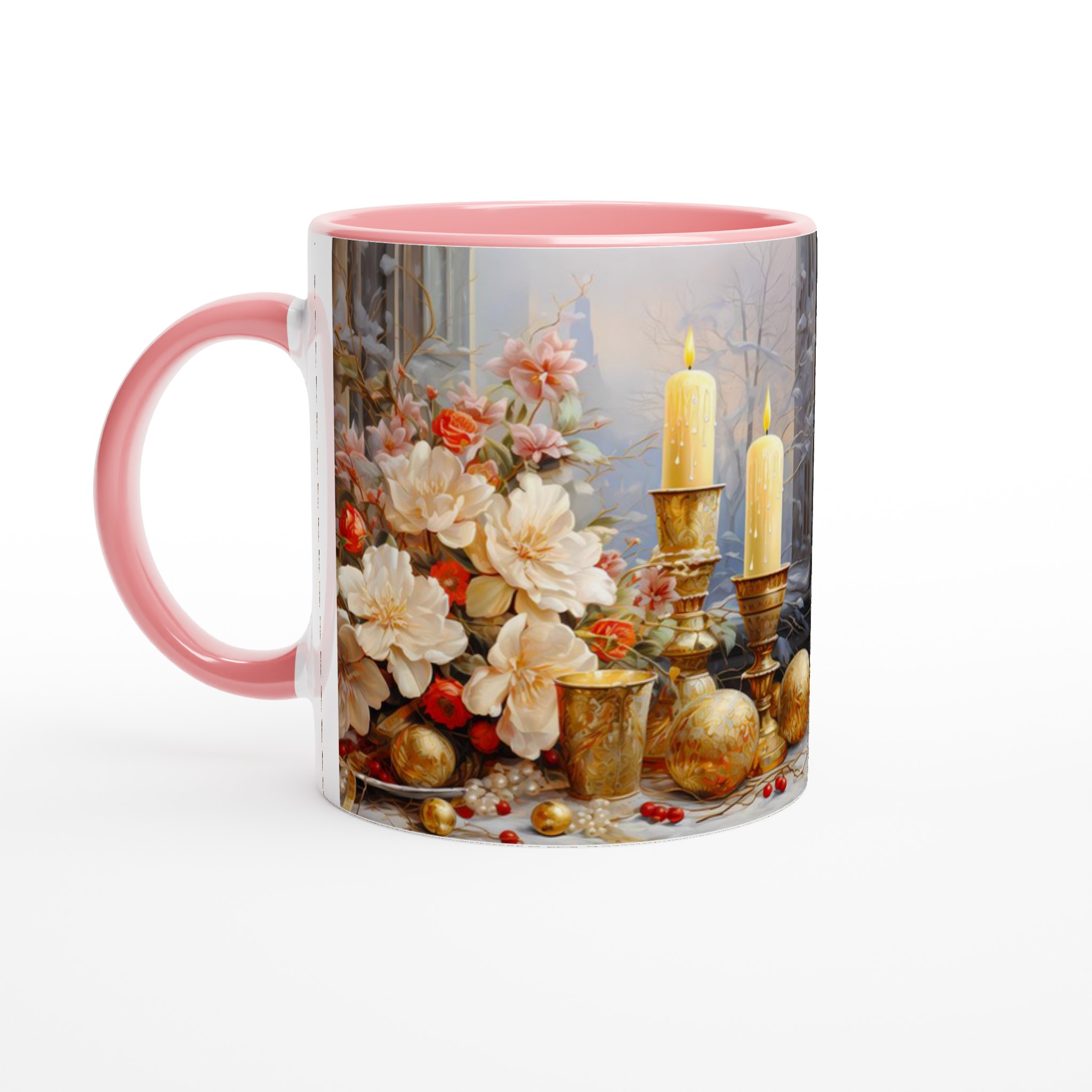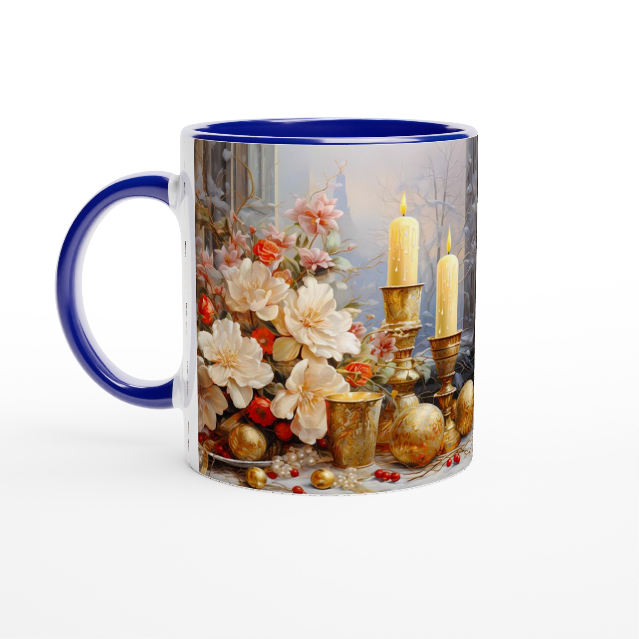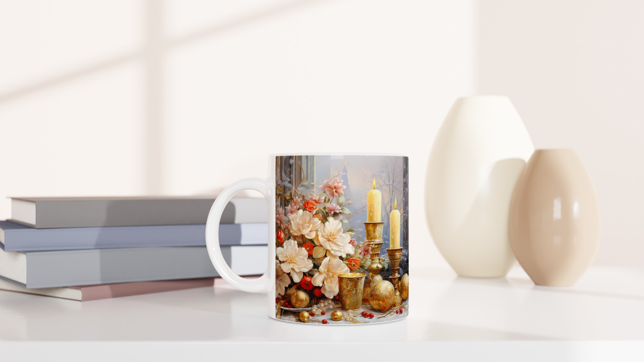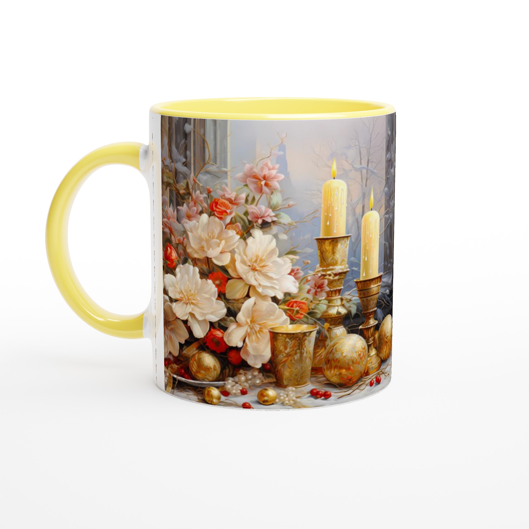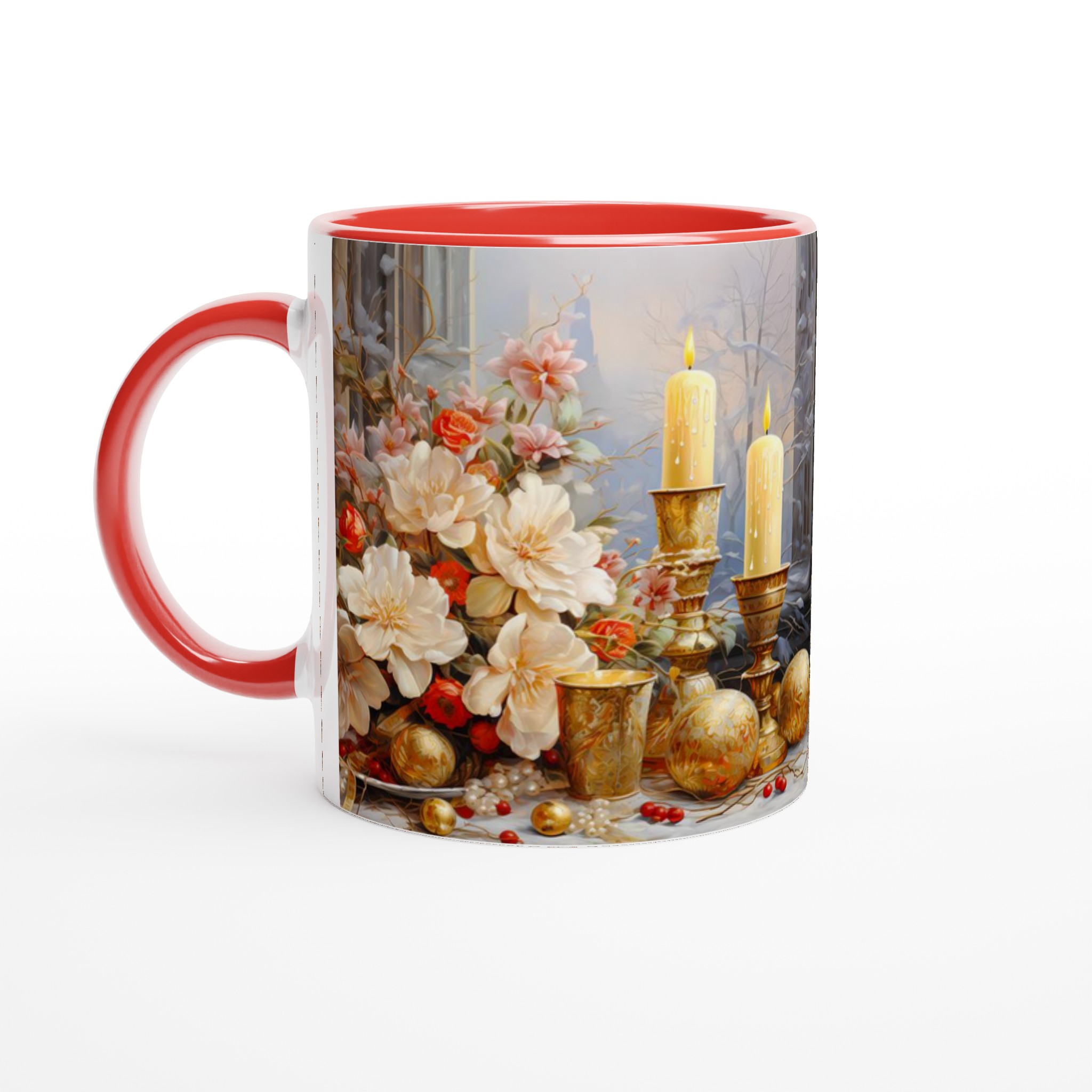 Enchanted Floral Gold – White Ceramic Mug 11oz: A Touch of Festive Elegance for Your Everyday