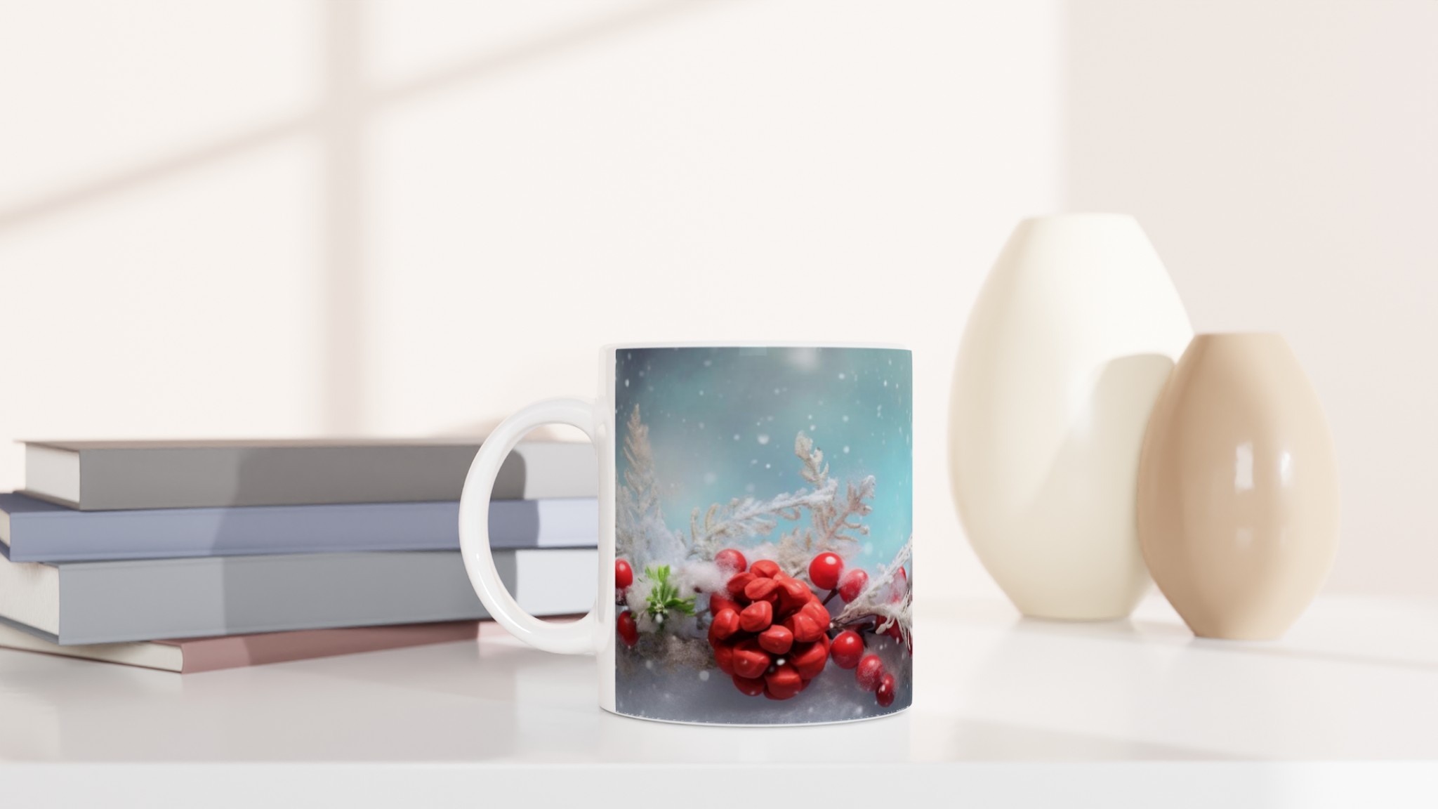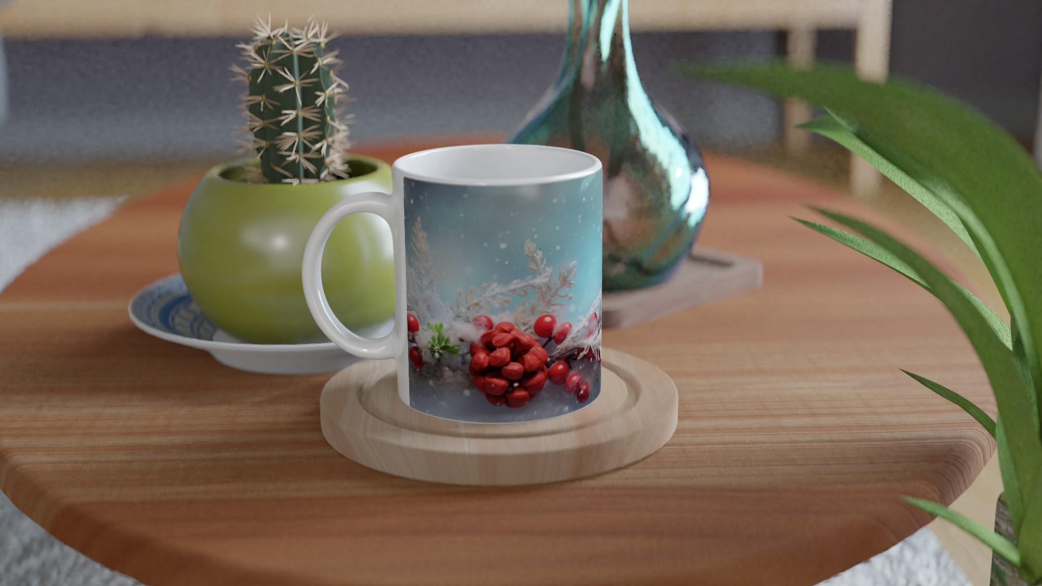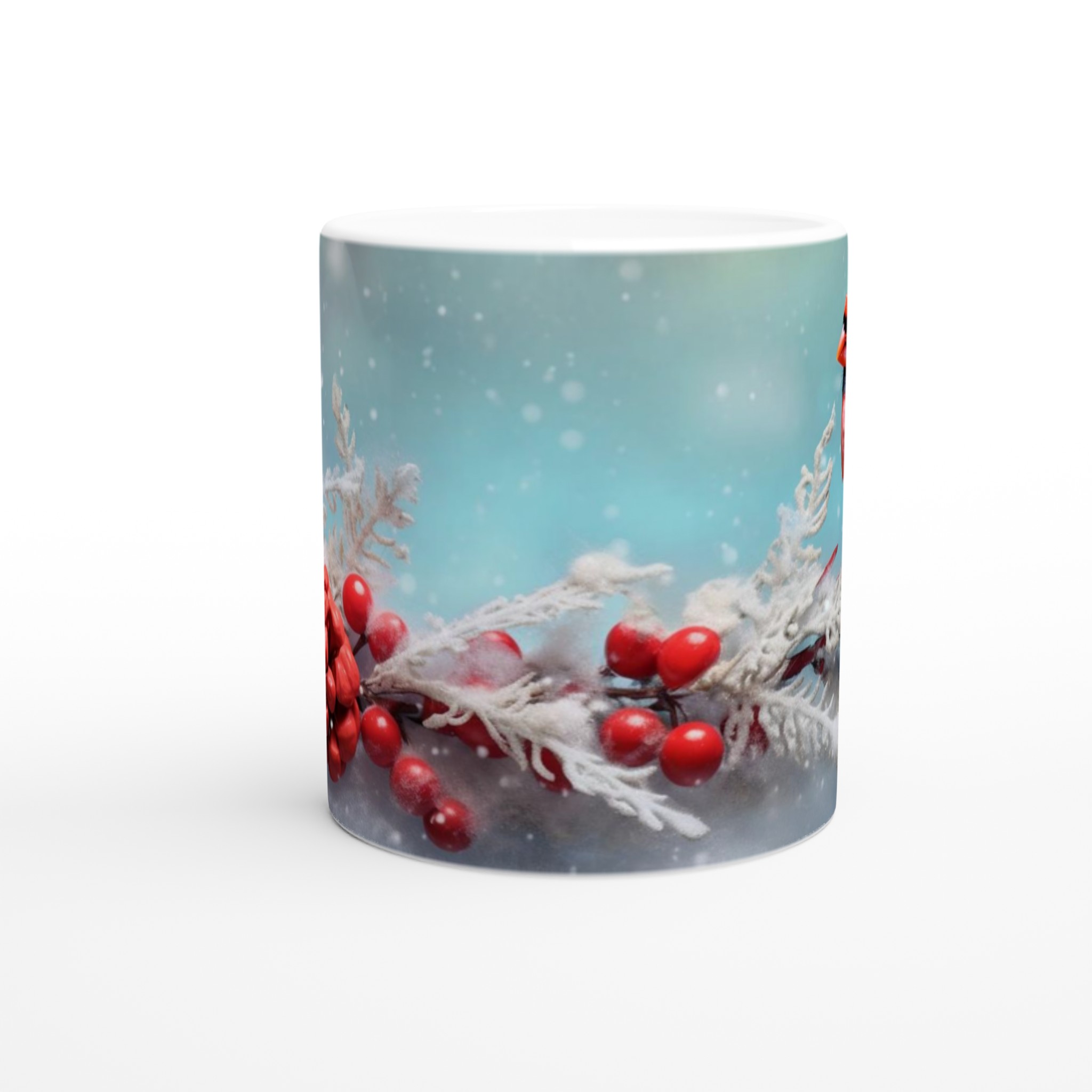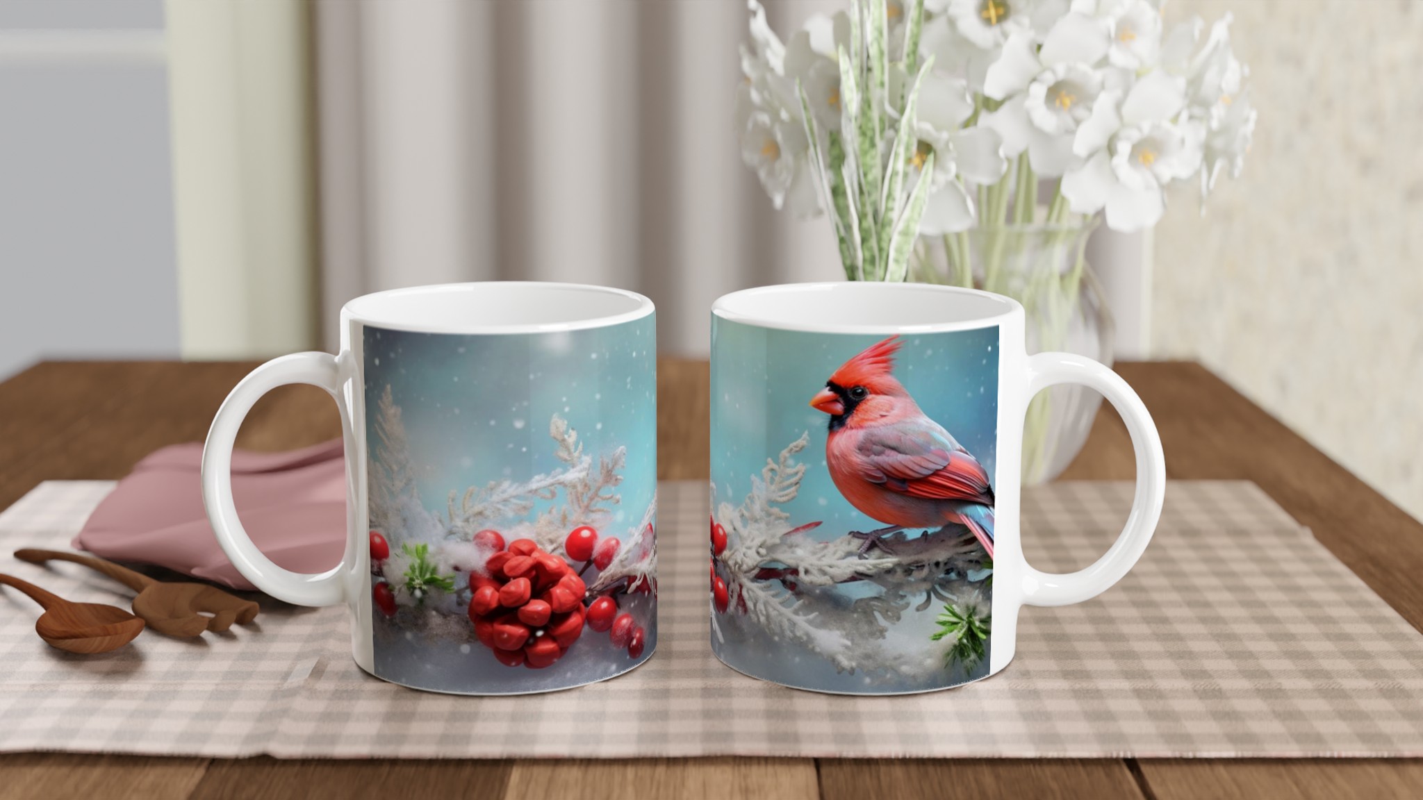 Winter Cardinal Mug – Everyday Favorite 11oz Ceramic Mug in your choice of seven vibrant colors
