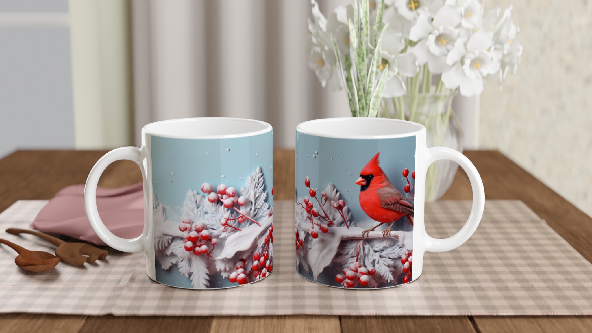 Winter Cardinal Ceramic Mug – Your Choice of 7 Festive Colors, 11oz
