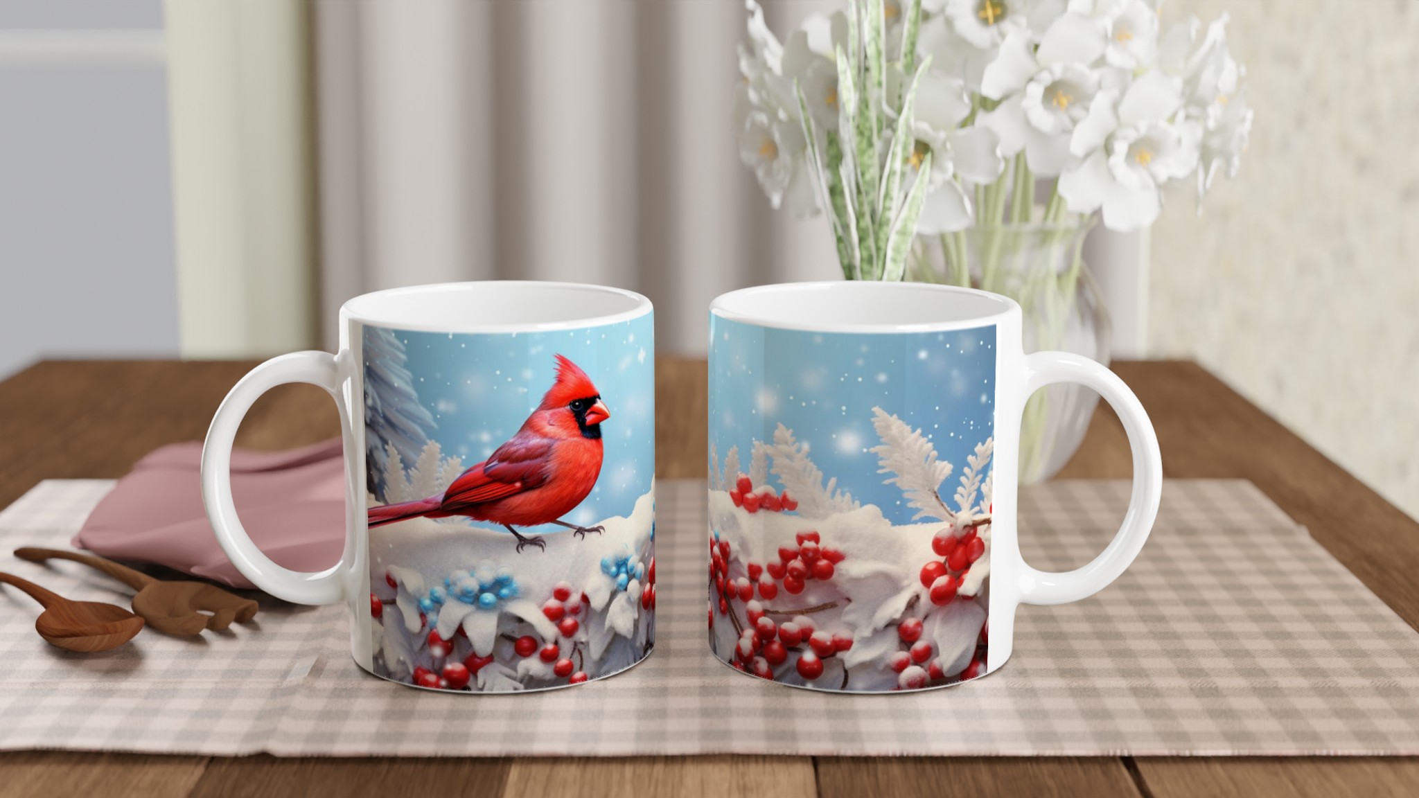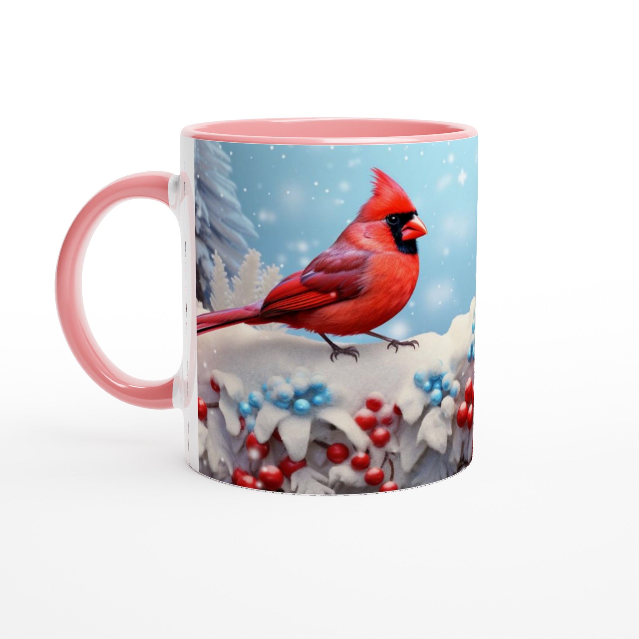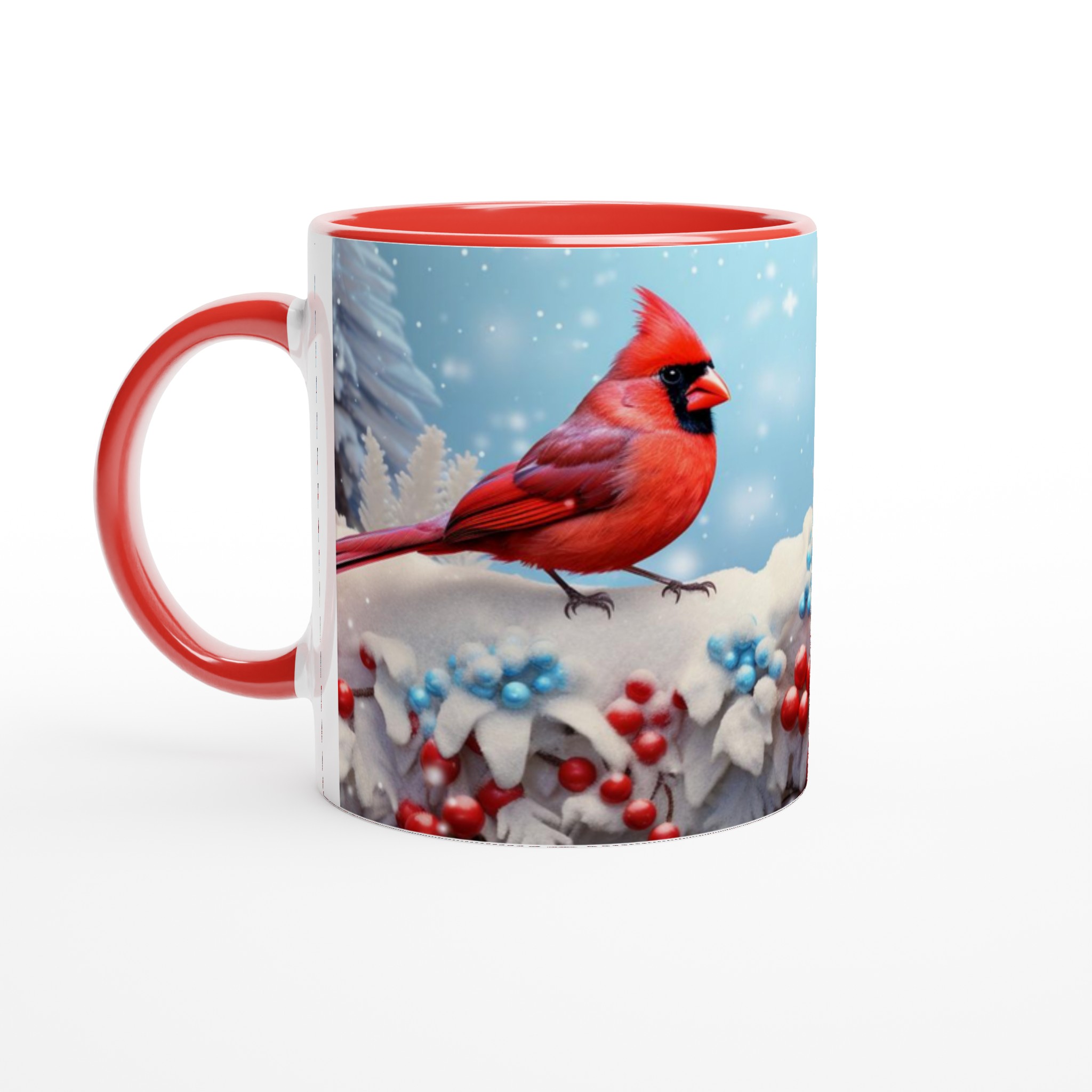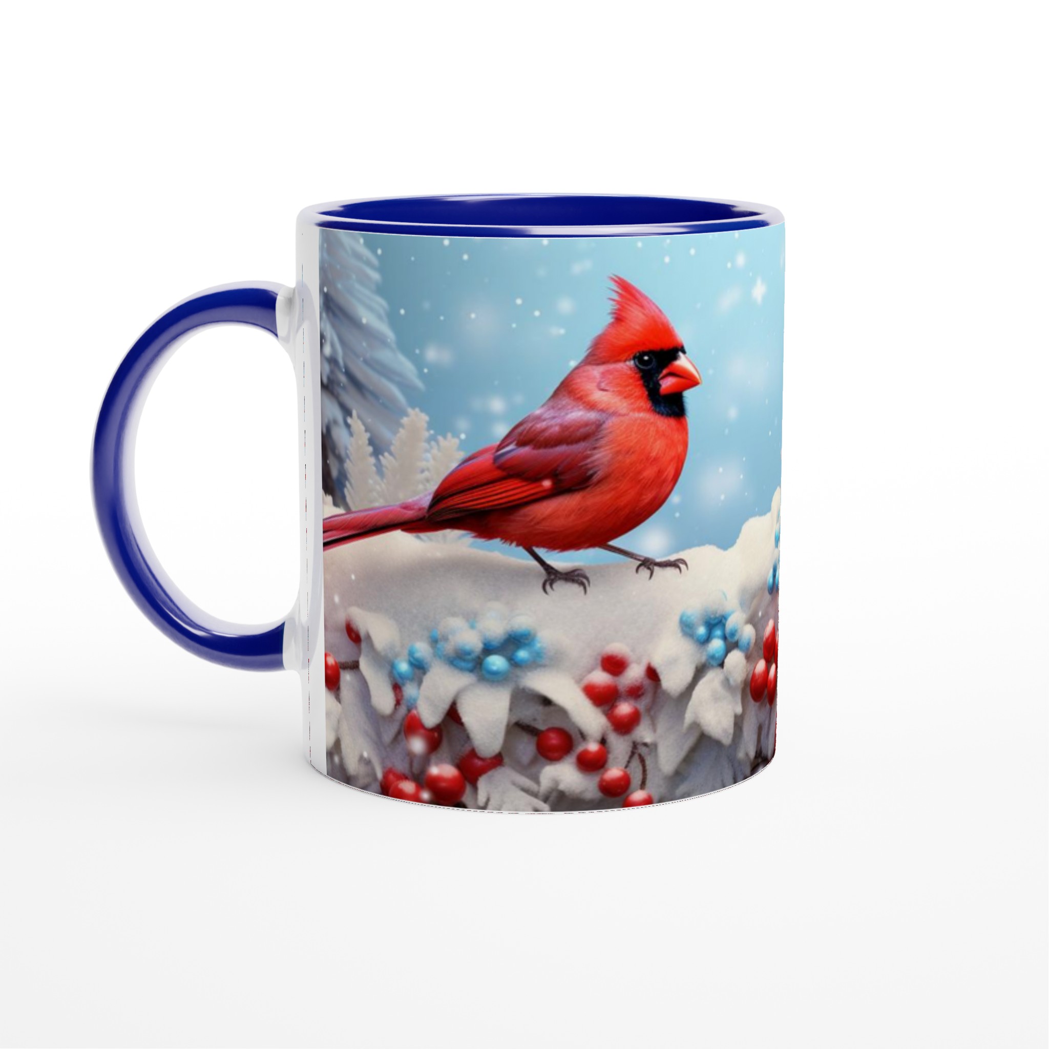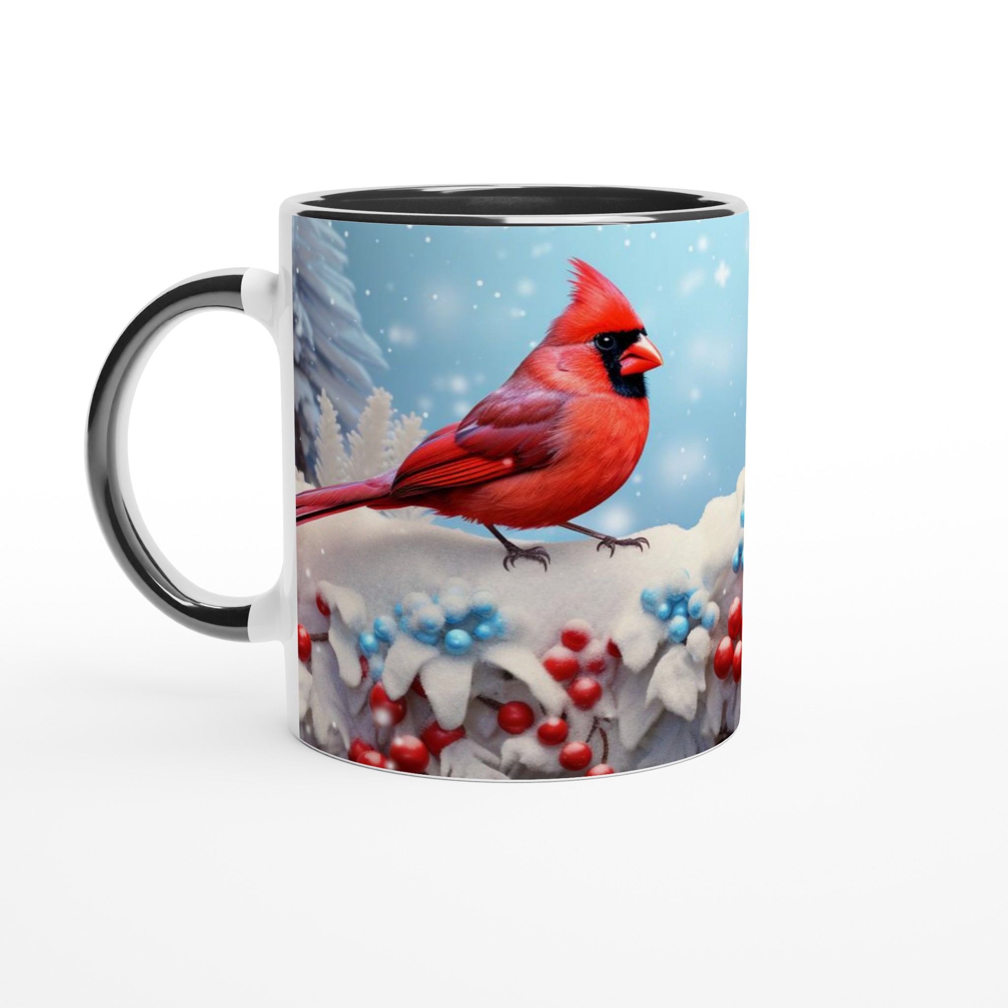 Winter Cardinal & Berries – Cozy Ceramic Mug in a Spectrum of Colors