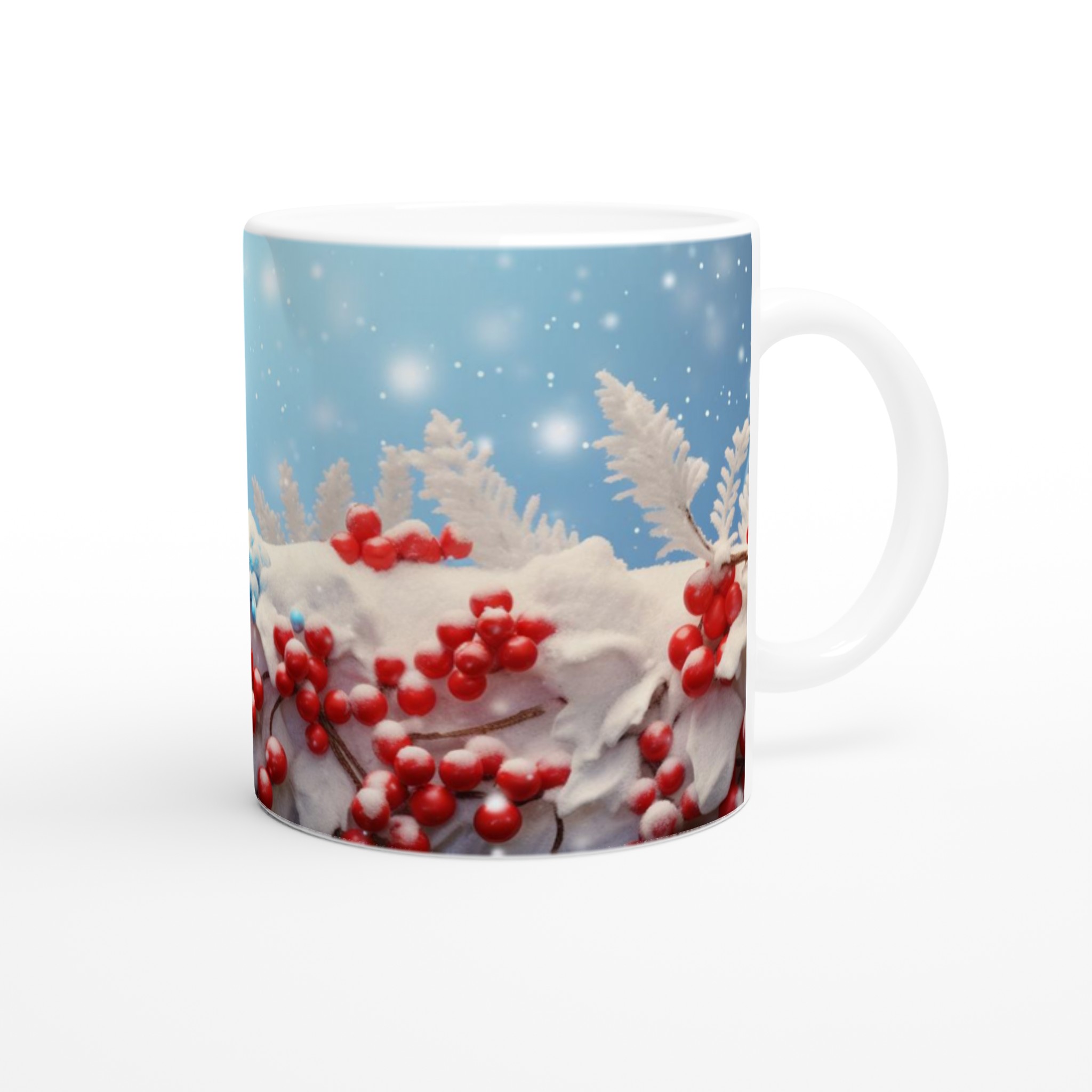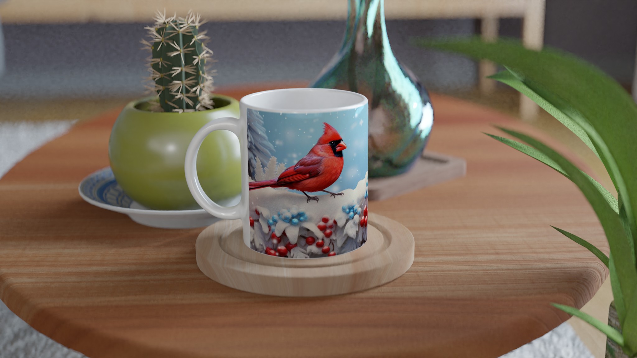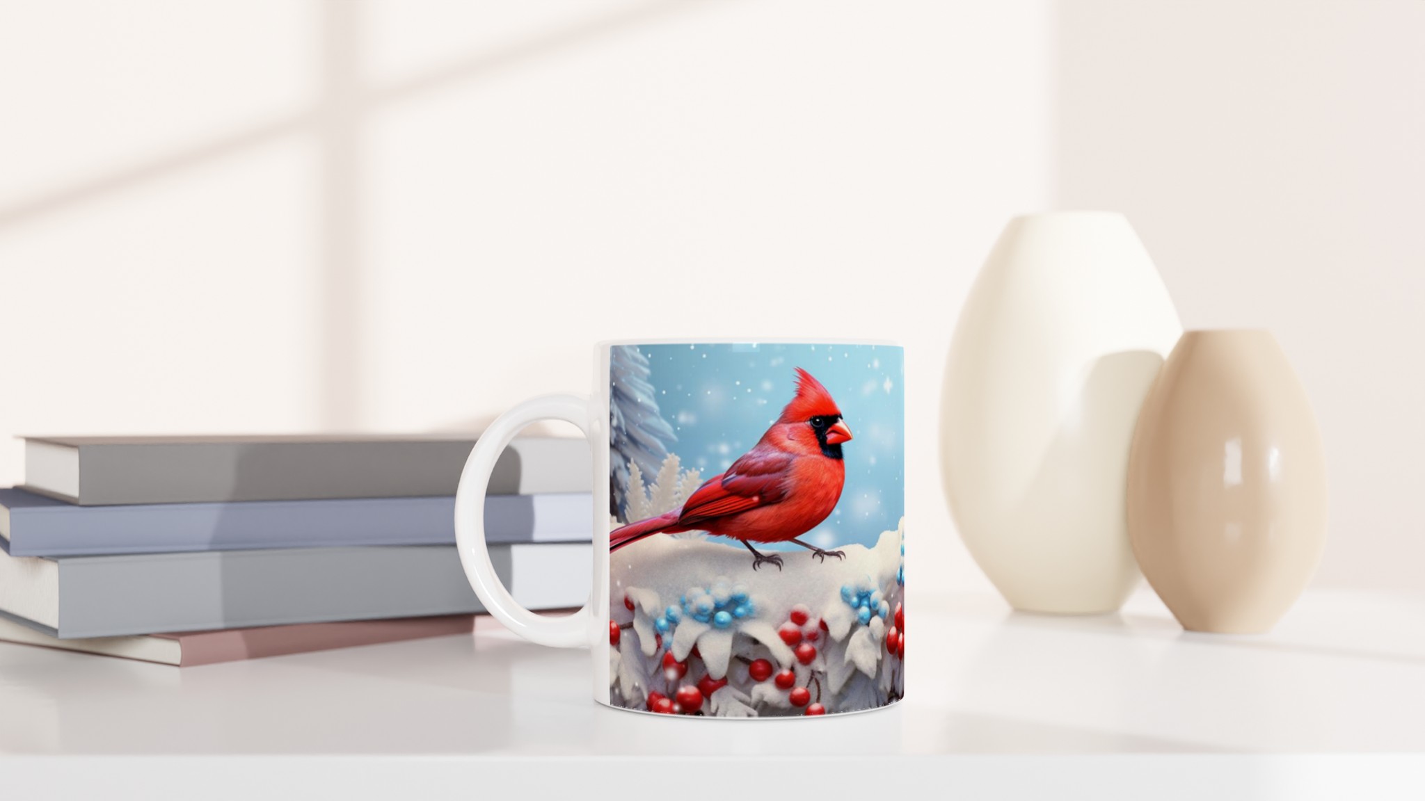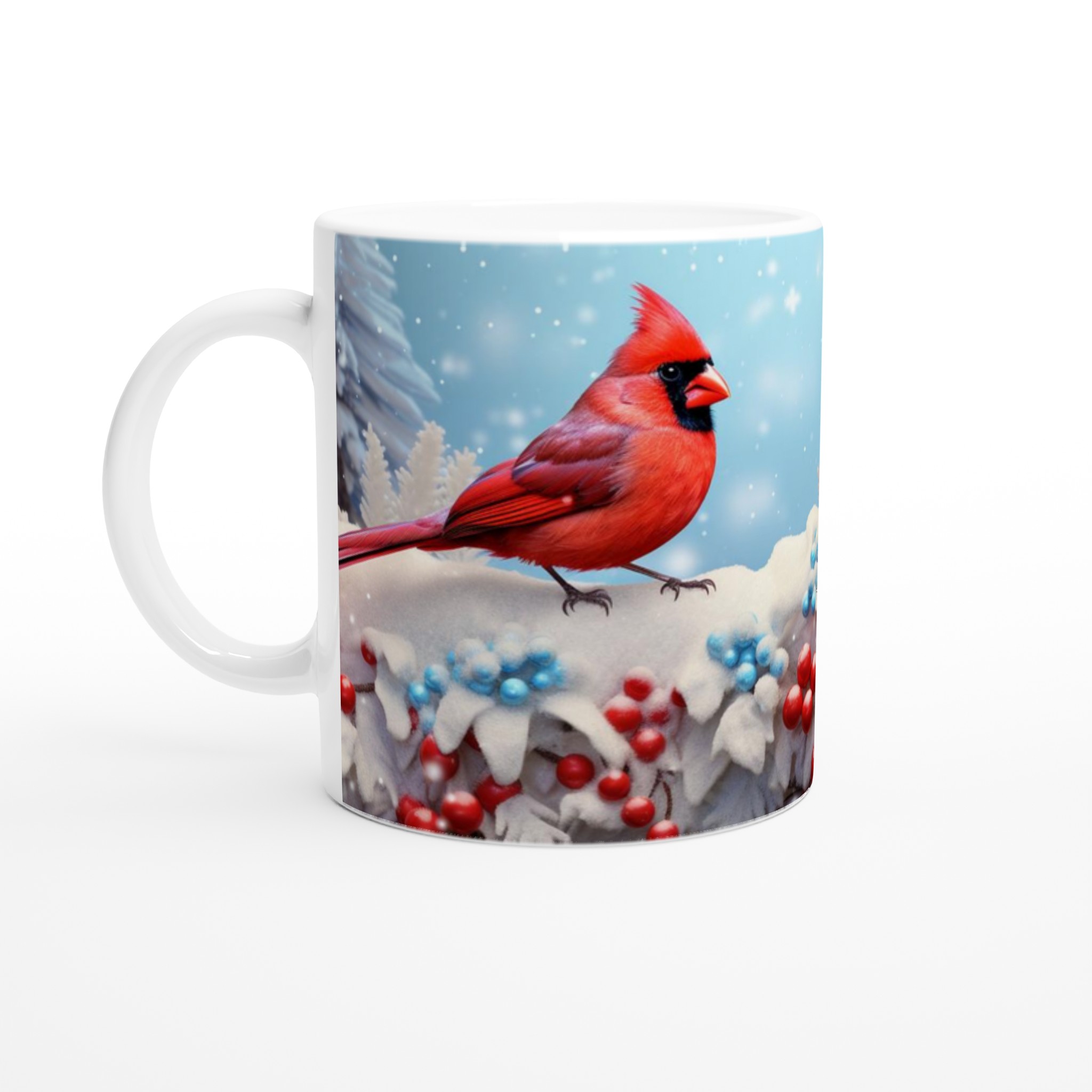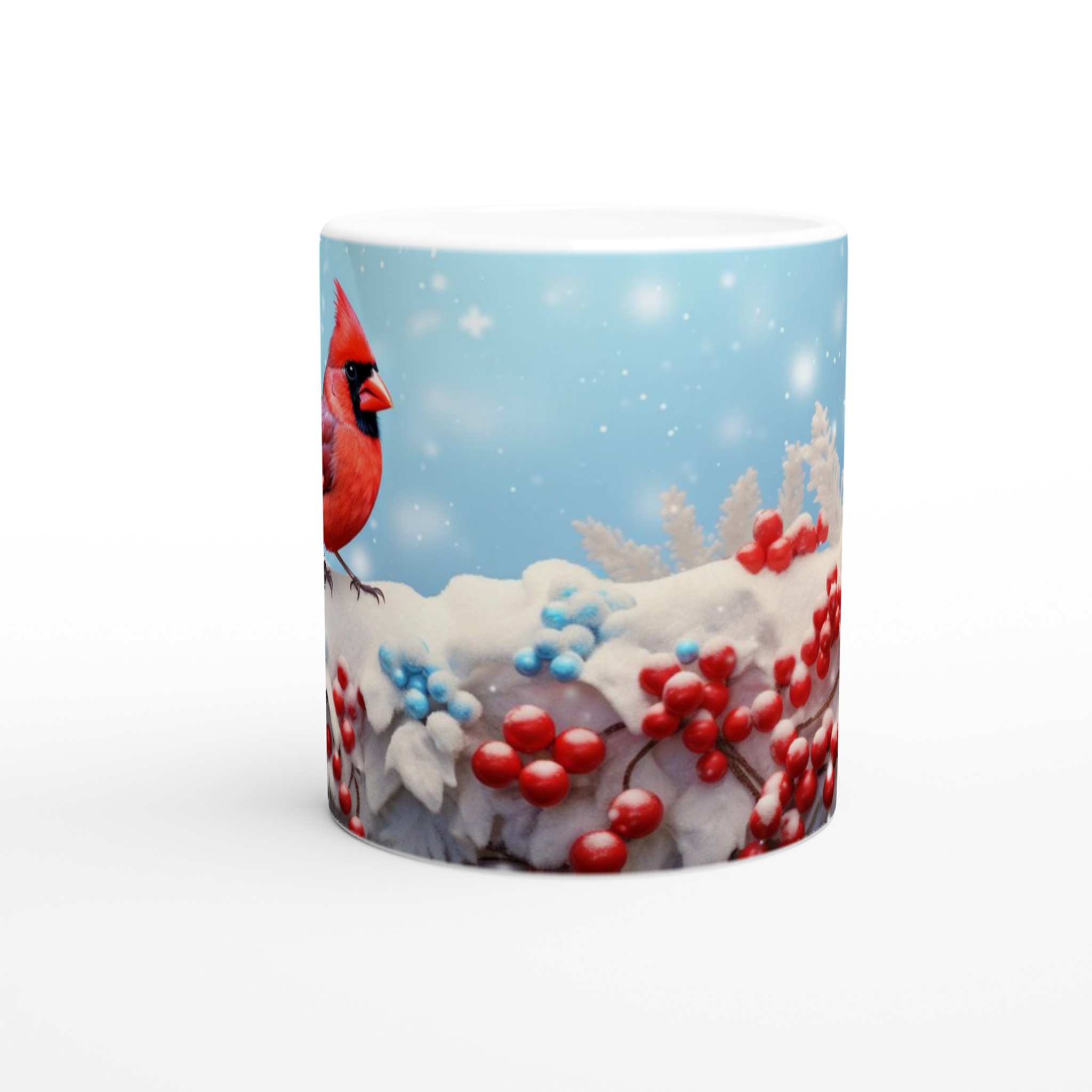 Winter Cardinal & Berries – Cozy Ceramic Mug in a Spectrum of Colors