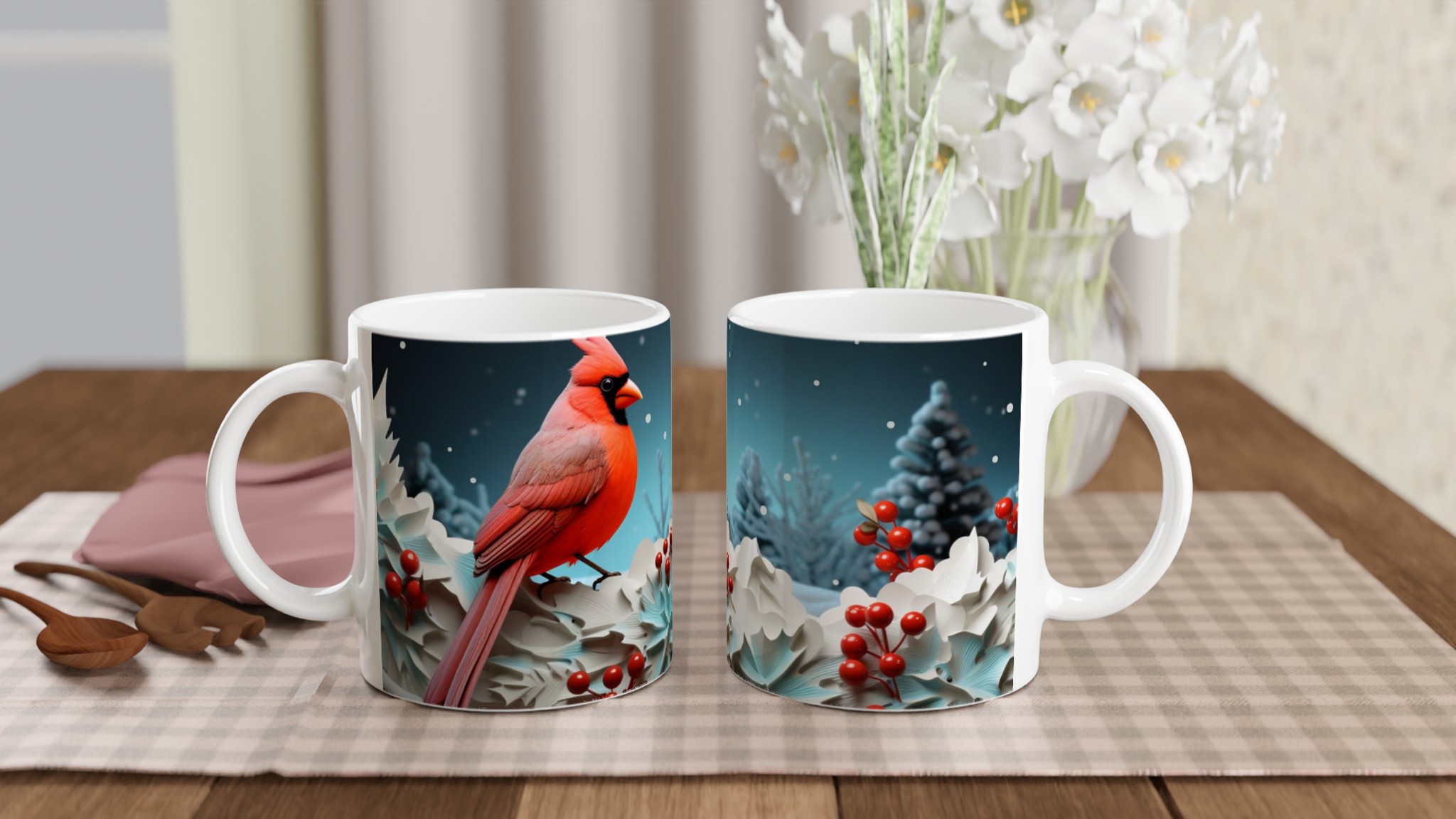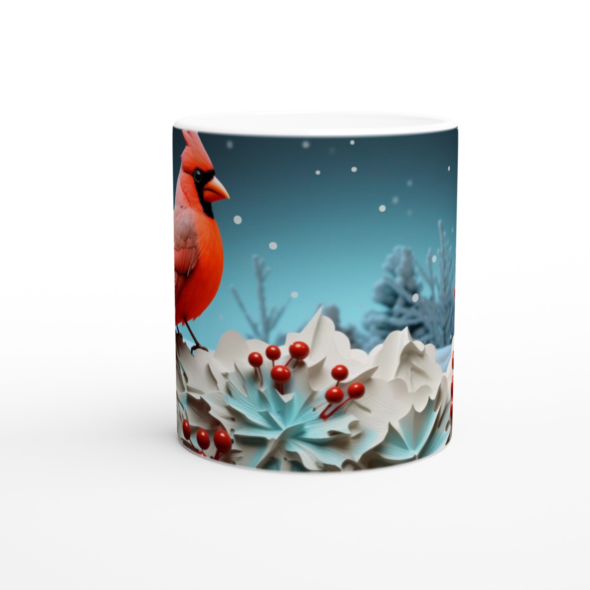 Winter Cardinal – Holiday Ceramic Mug 11oz – Festive & Customizable in 7 Vibrant Colors