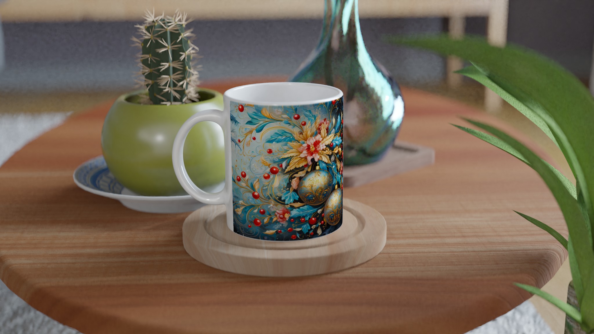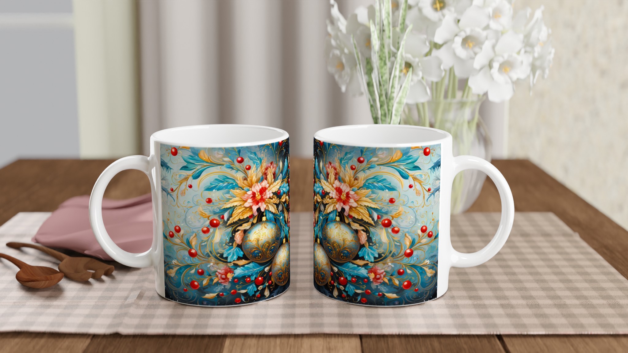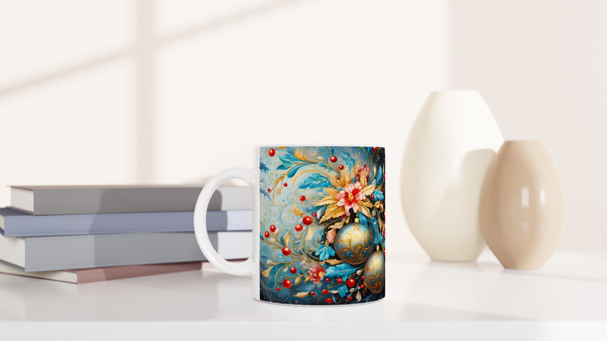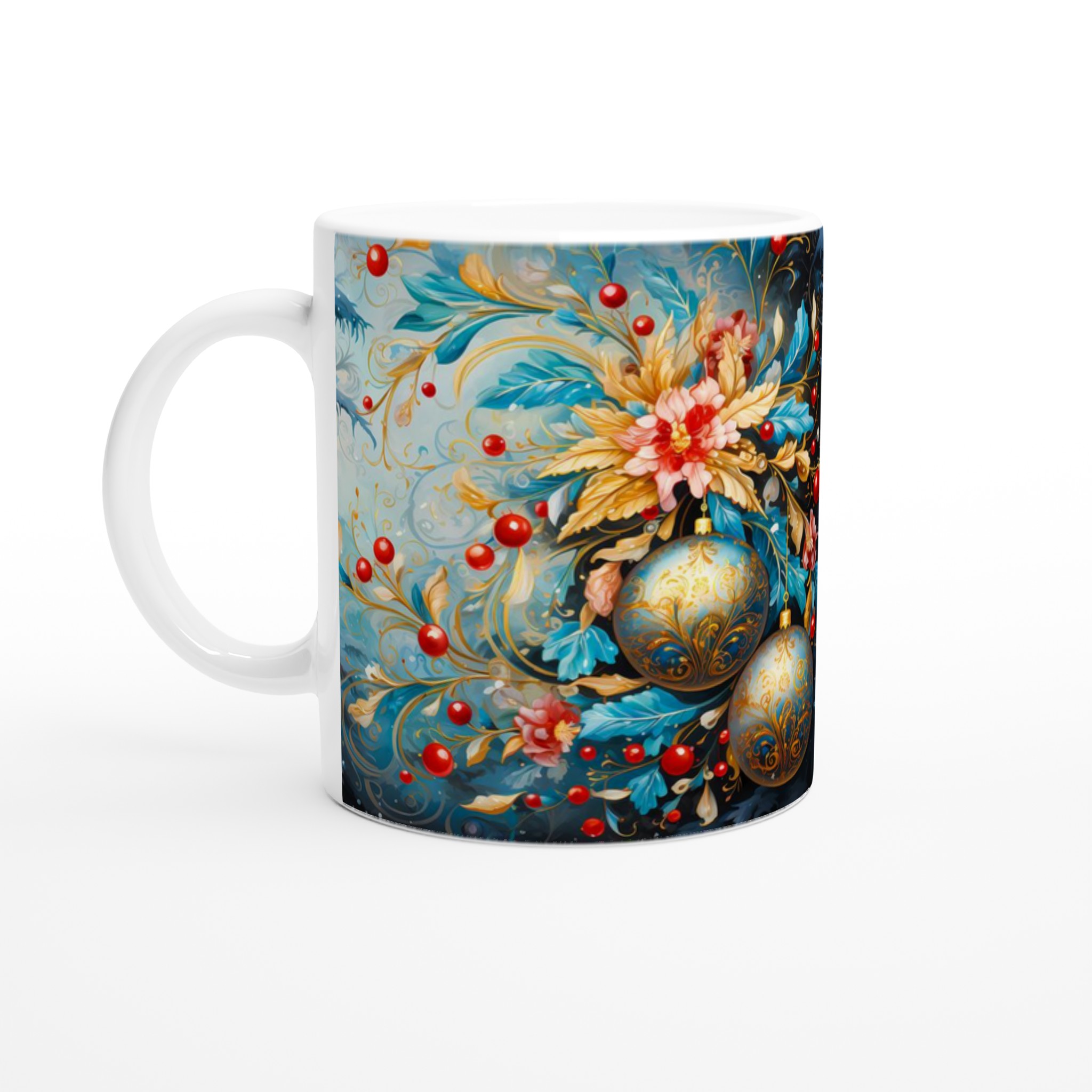 Winter Elegance – Festive Ceramic Mug with Ornate Design, Available in 7 Enchanting Colors