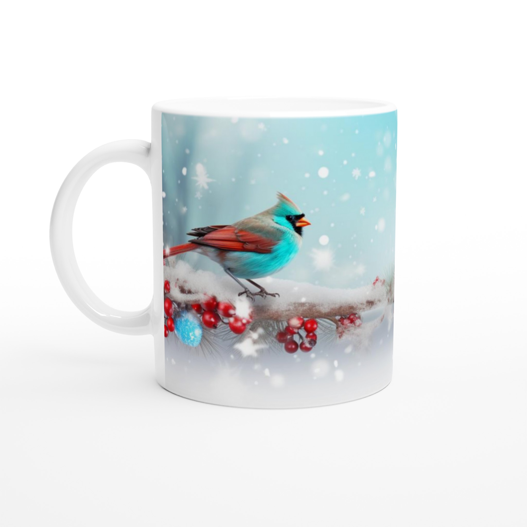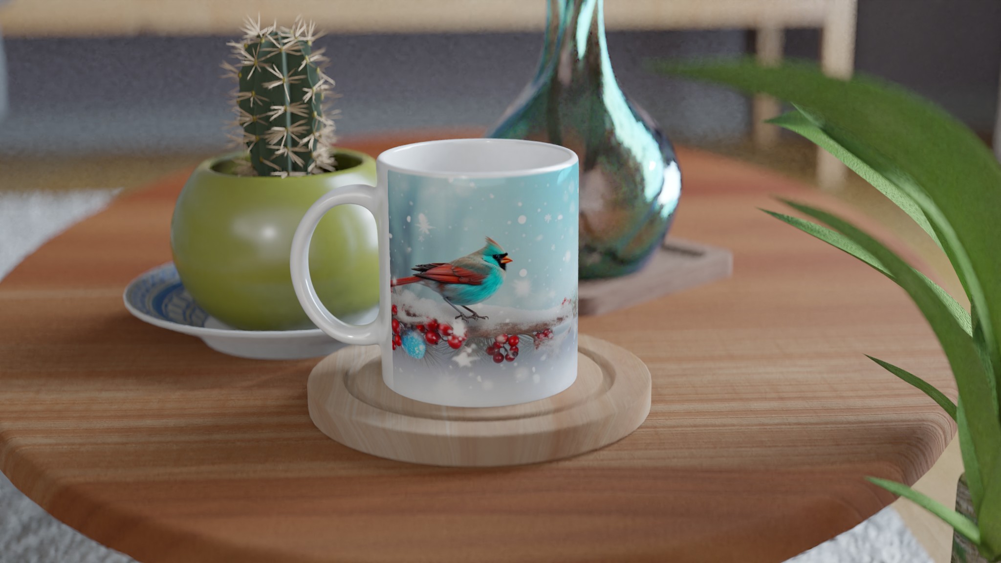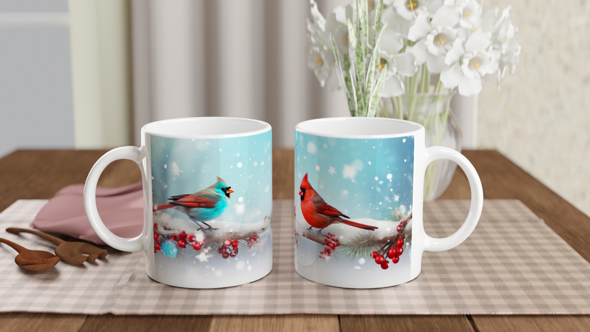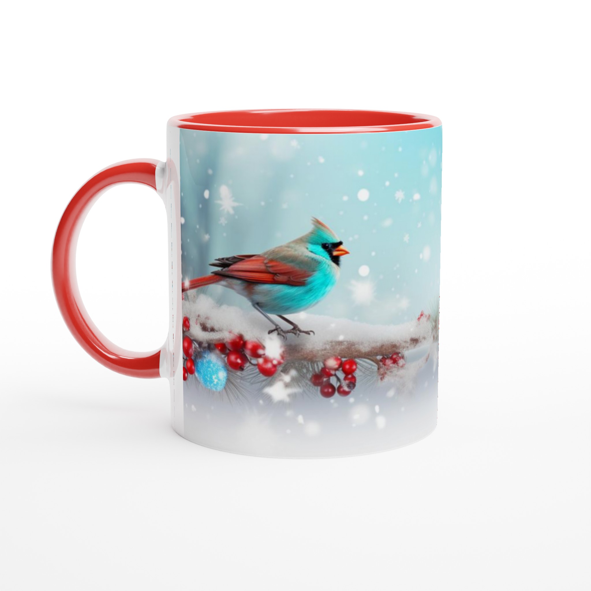 Winter Cardinals Wonderland – Ceramic Mug 11oz in Your Choice of Seven Vibrant Hues