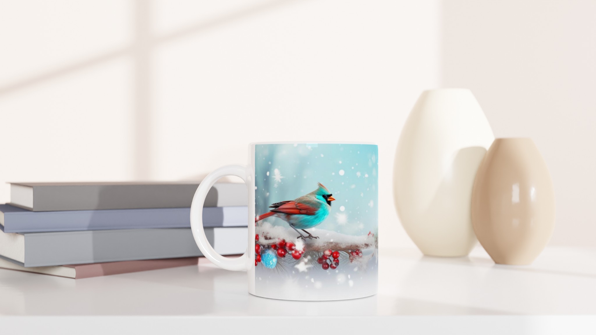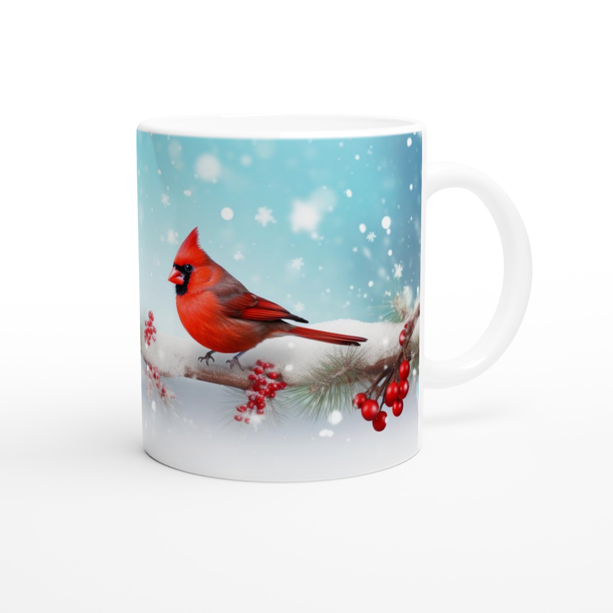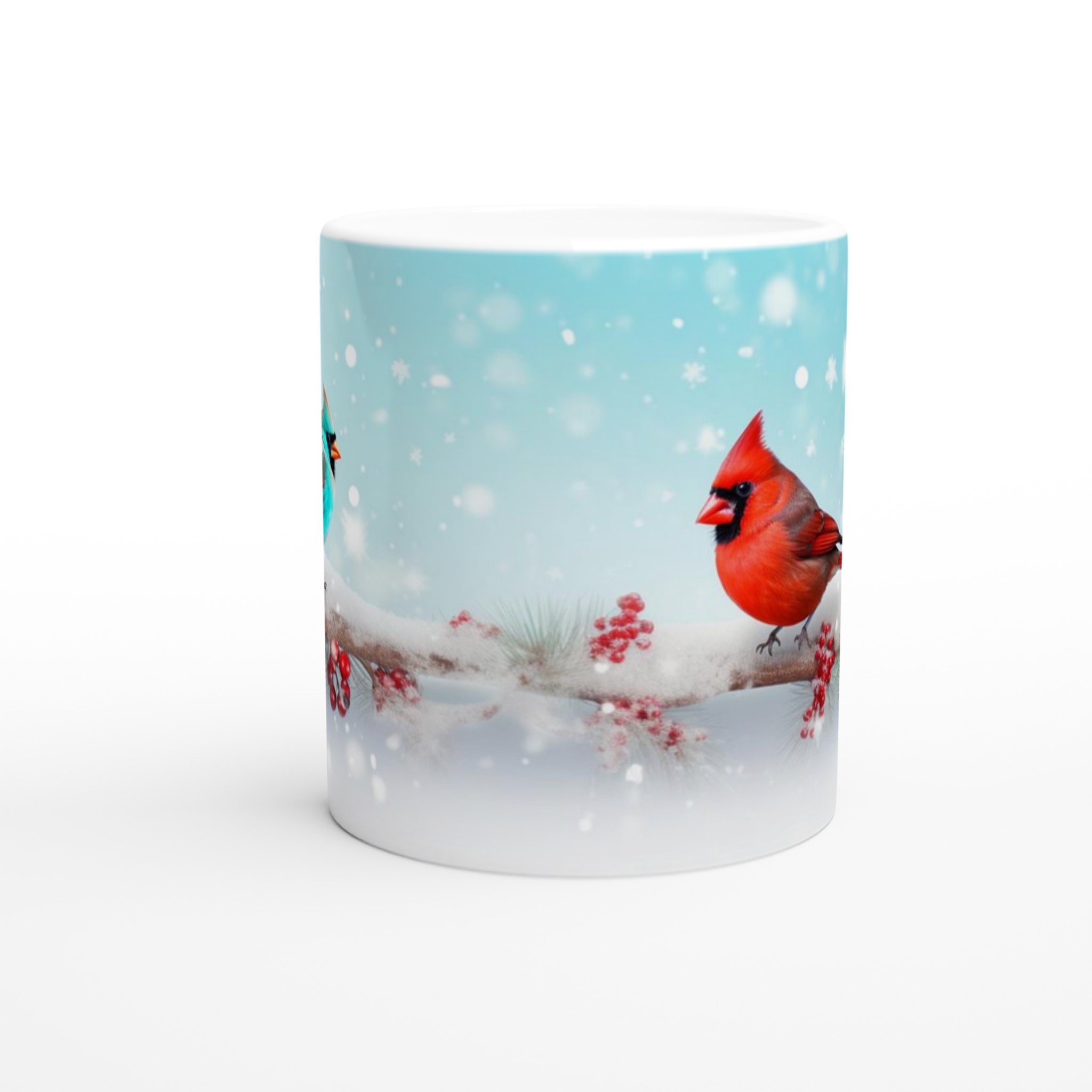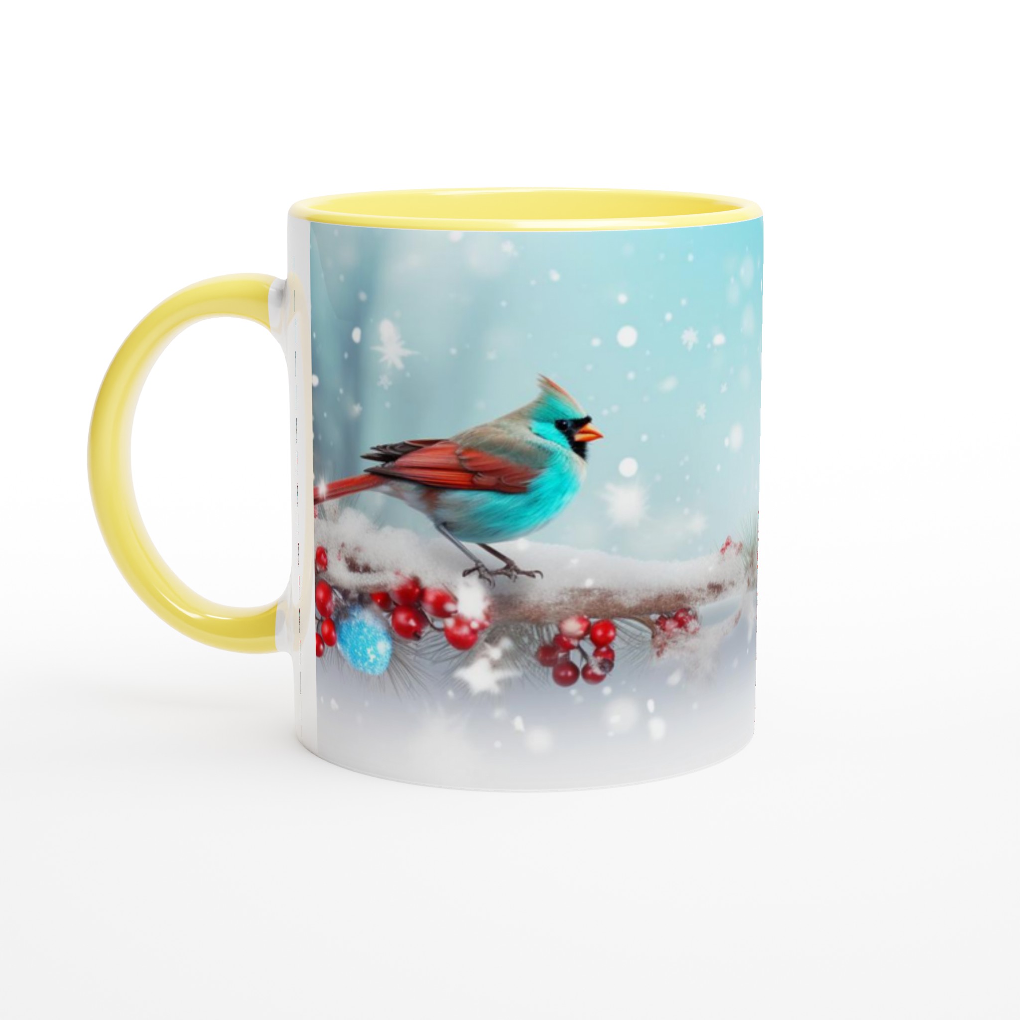 Winter Cardinals Wonderland – Ceramic Mug 11oz in Your Choice of Seven Vibrant Hues