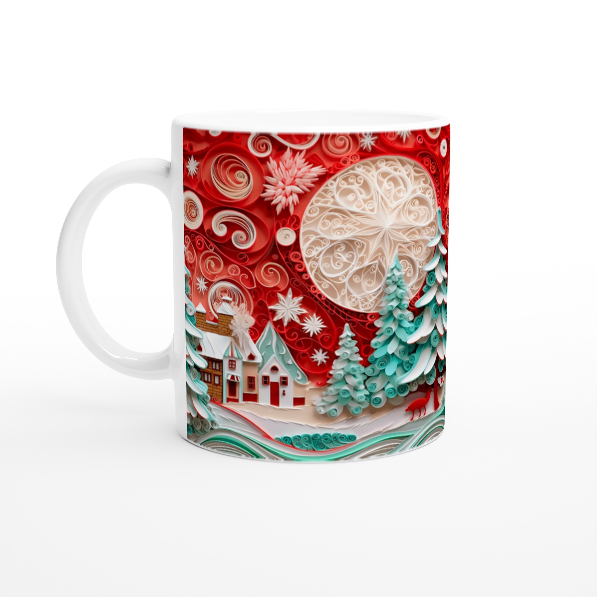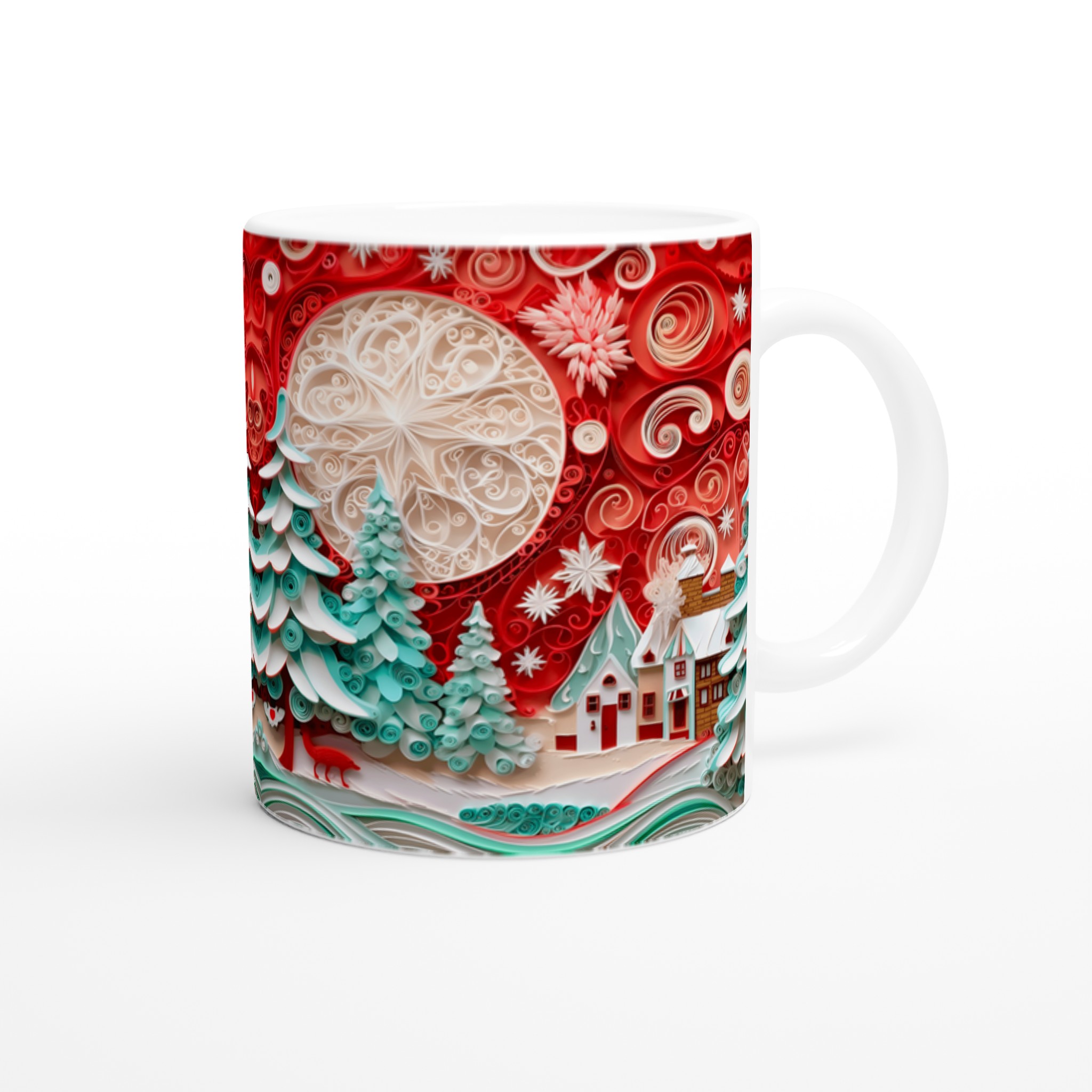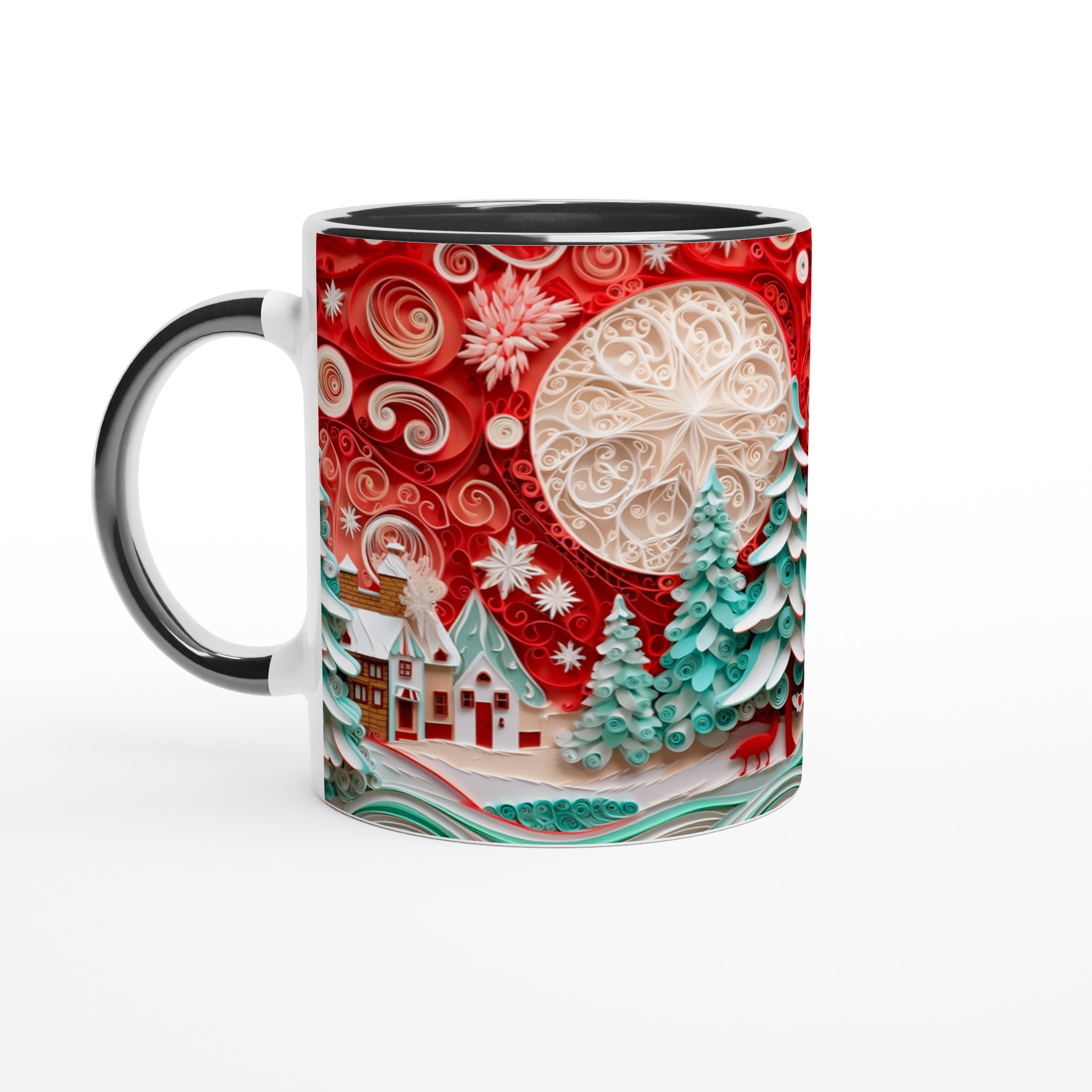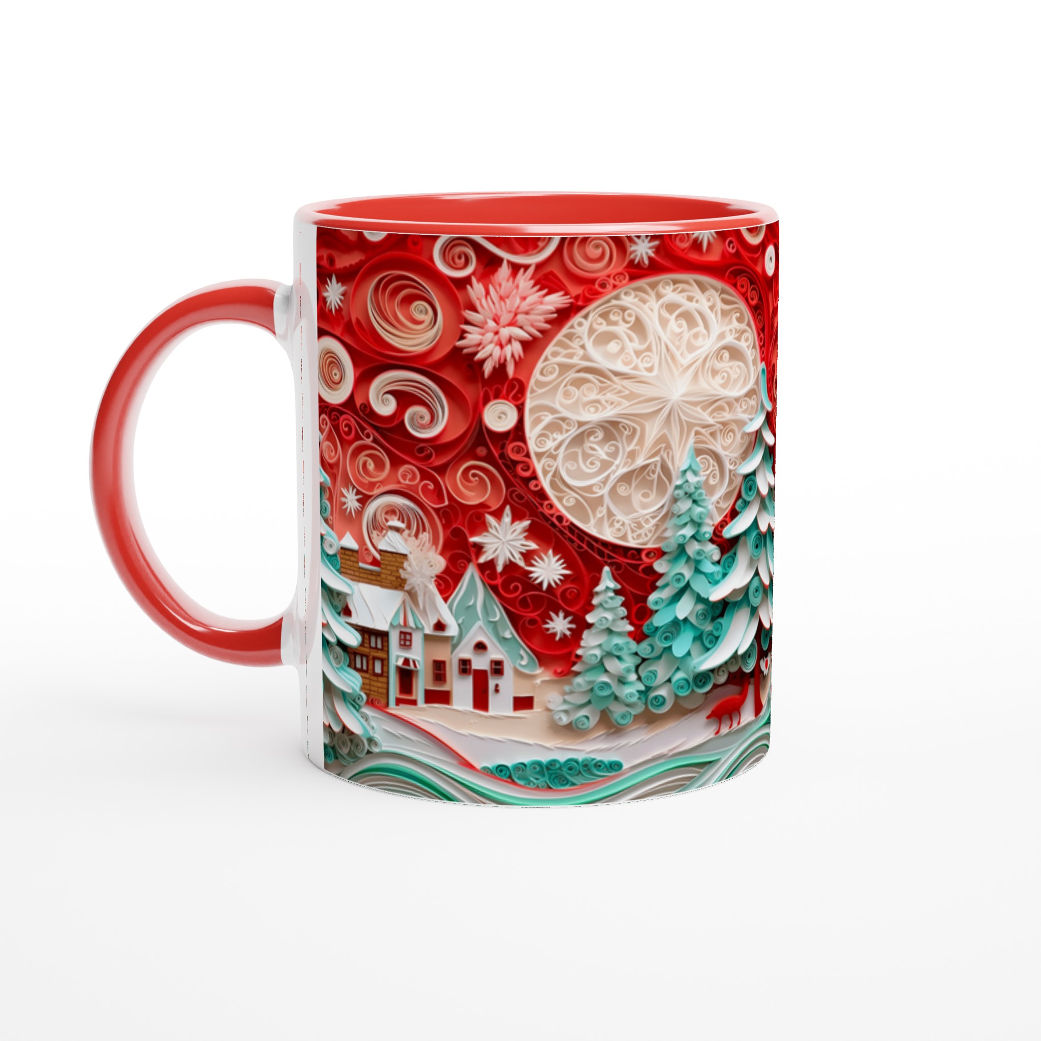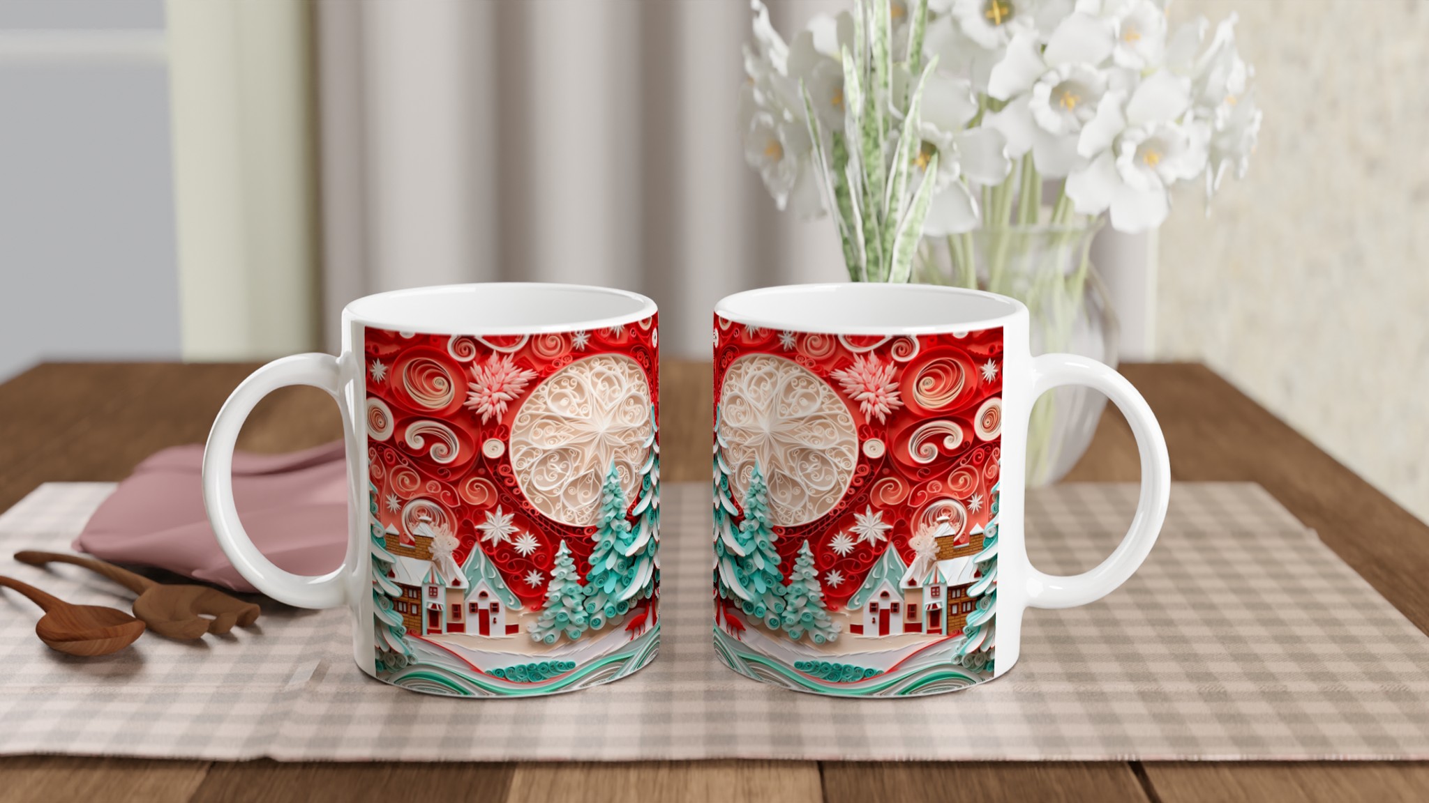 Winter Wonderland Art – Festive White Ceramic Mug 11oz, in your choice of seven vibrant colors