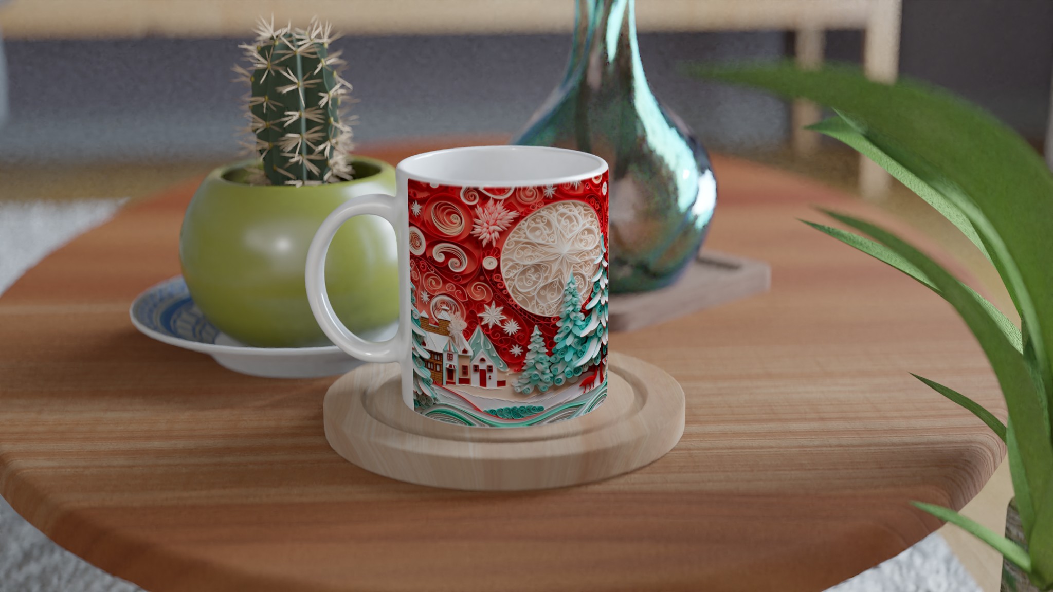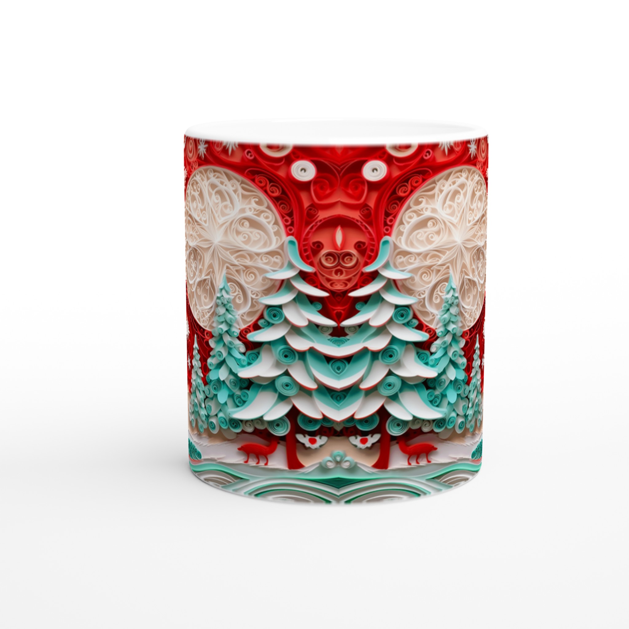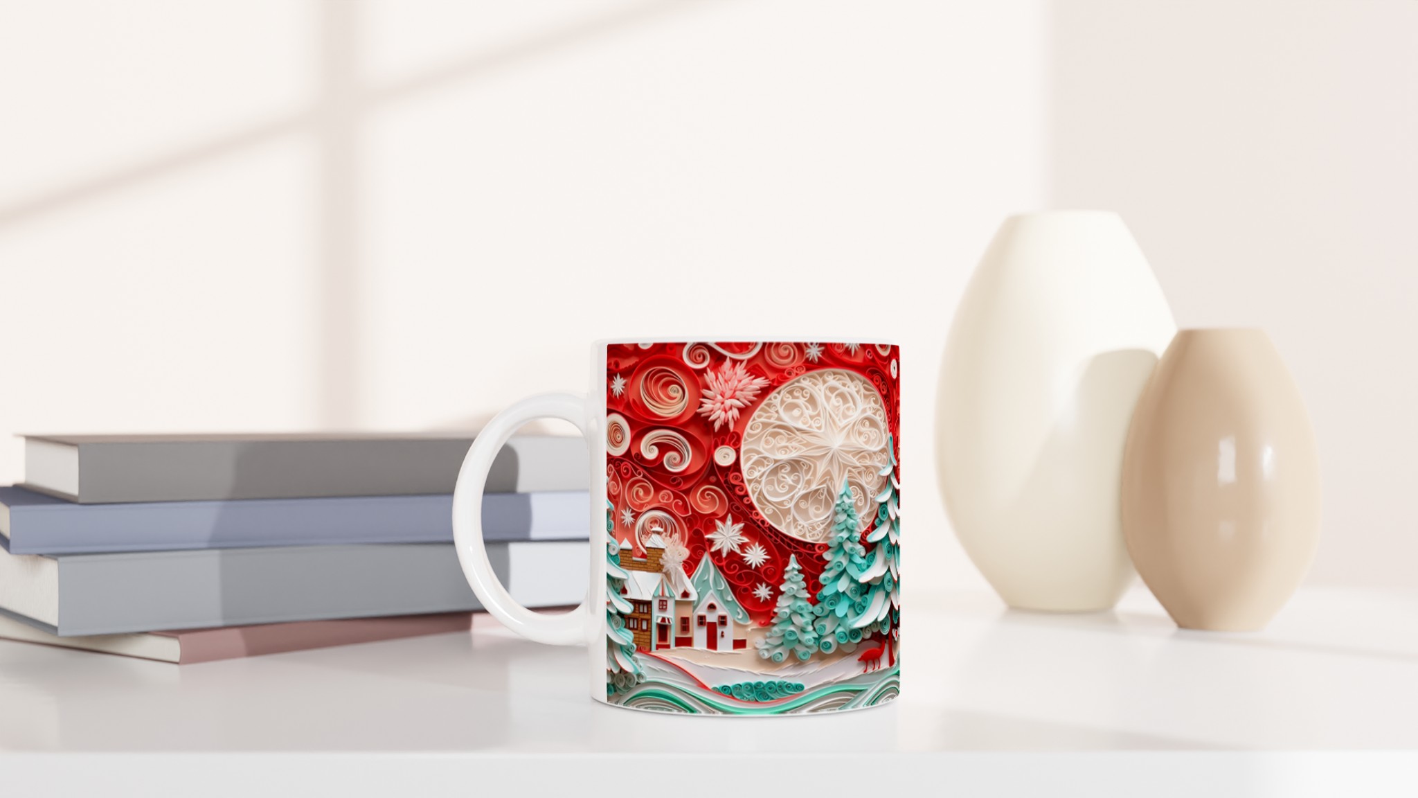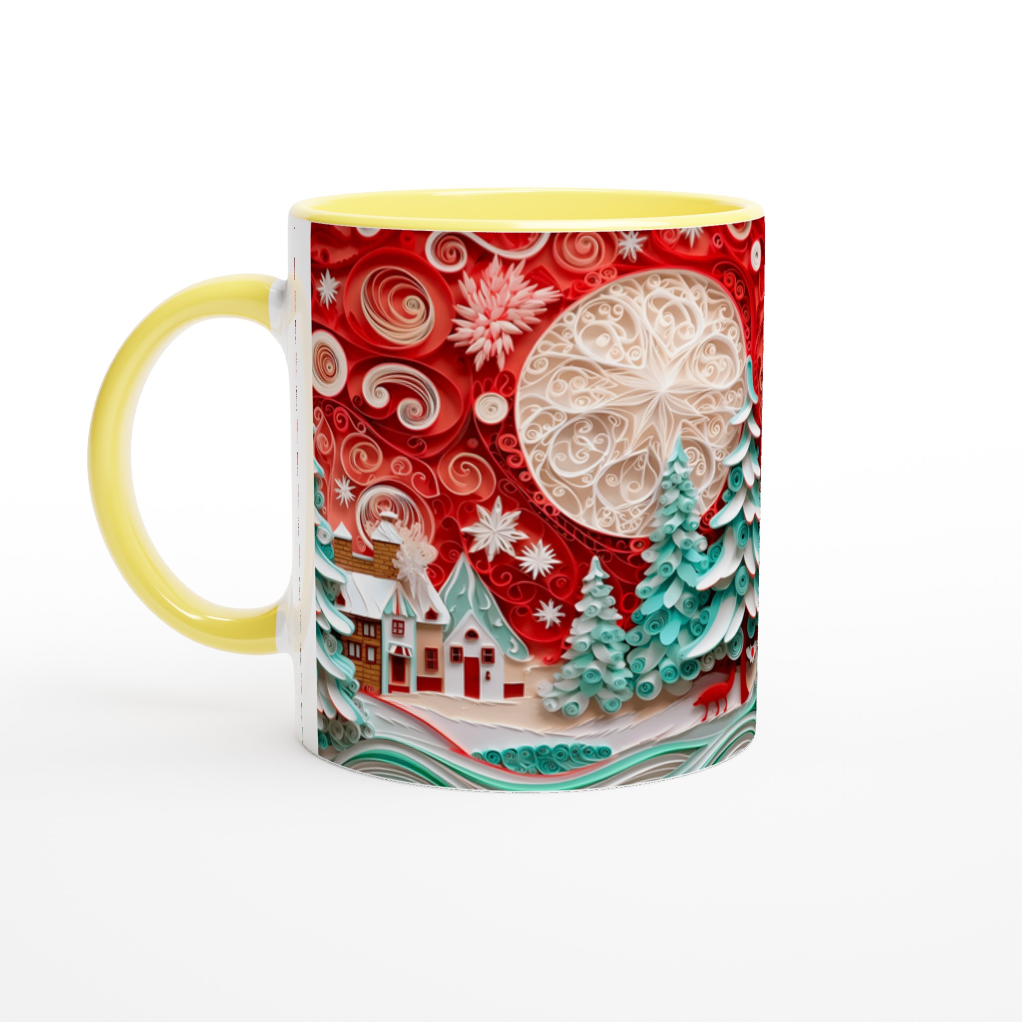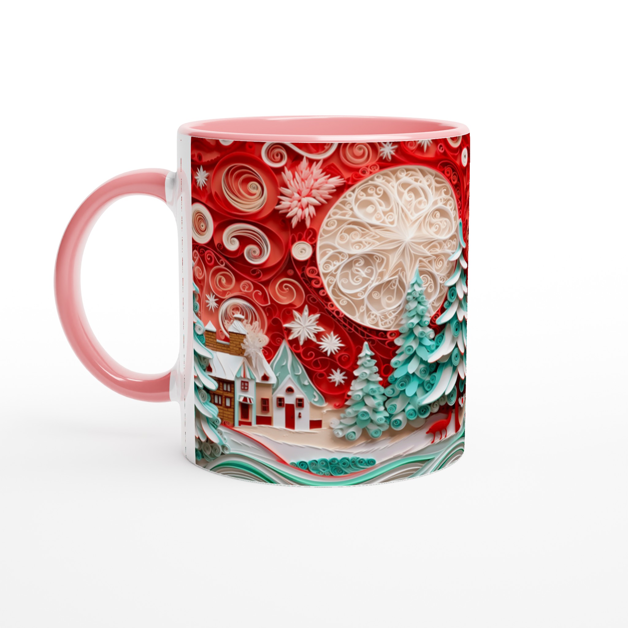 Winter Wonderland Art – Festive White Ceramic Mug 11oz, in your choice of seven vibrant colors