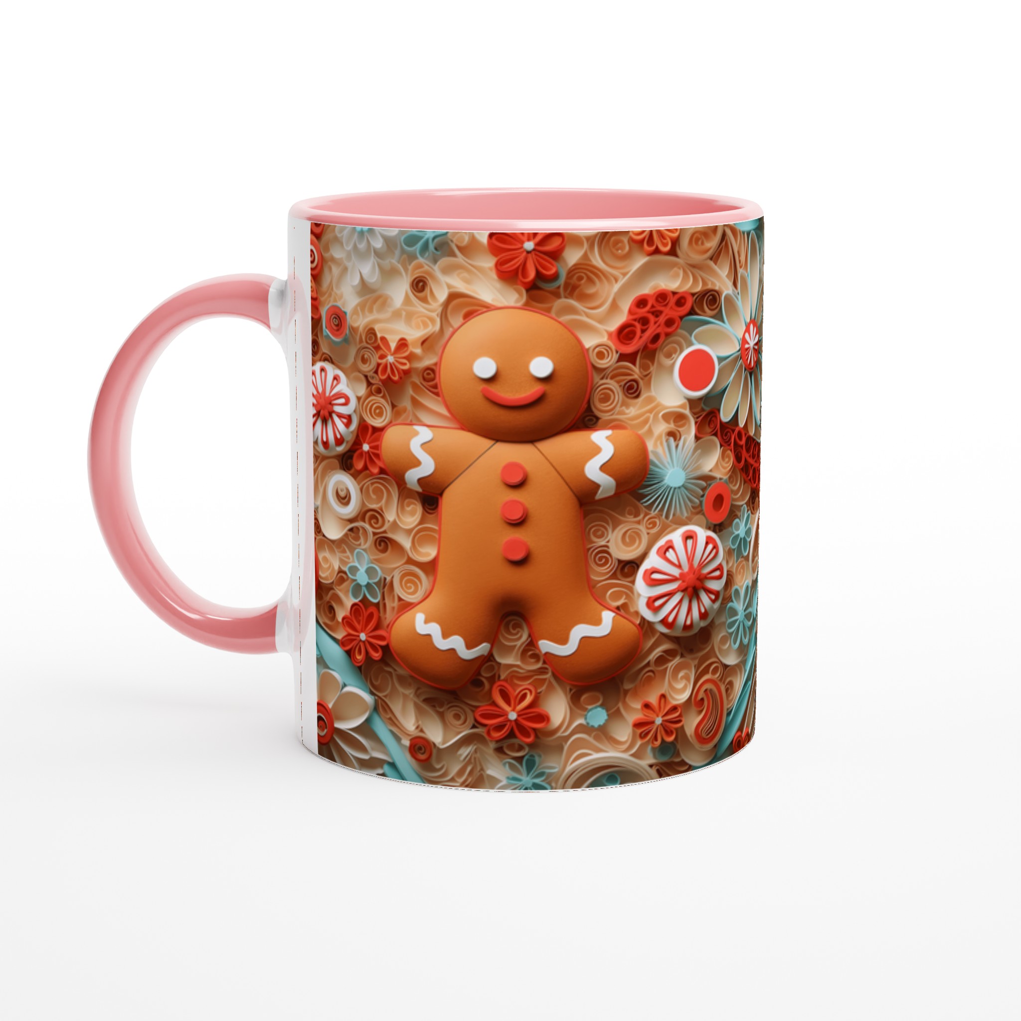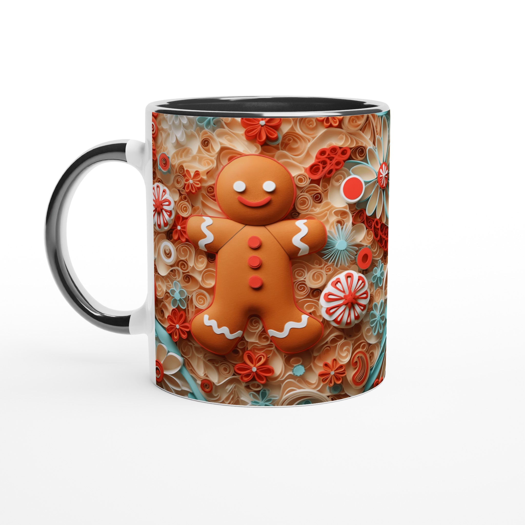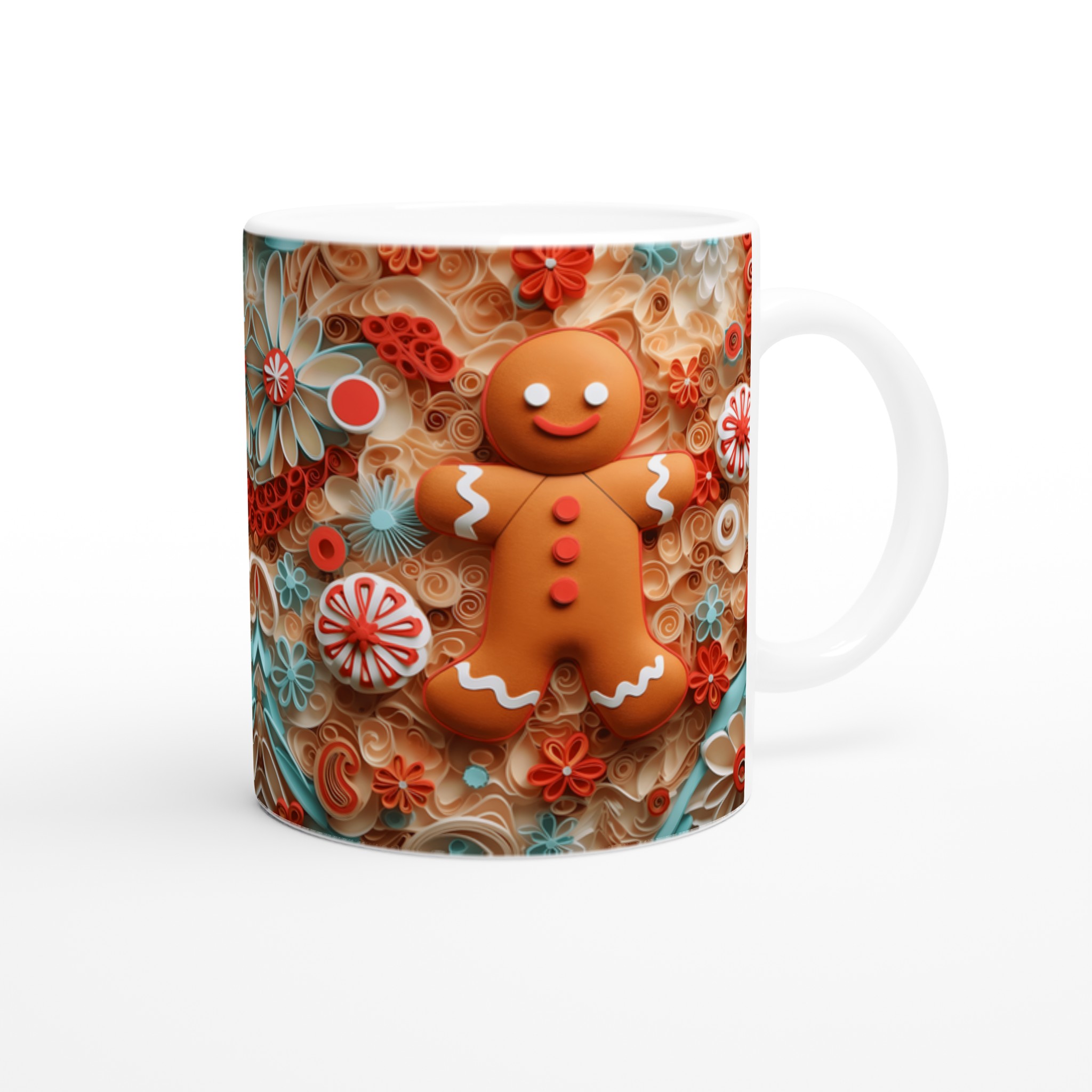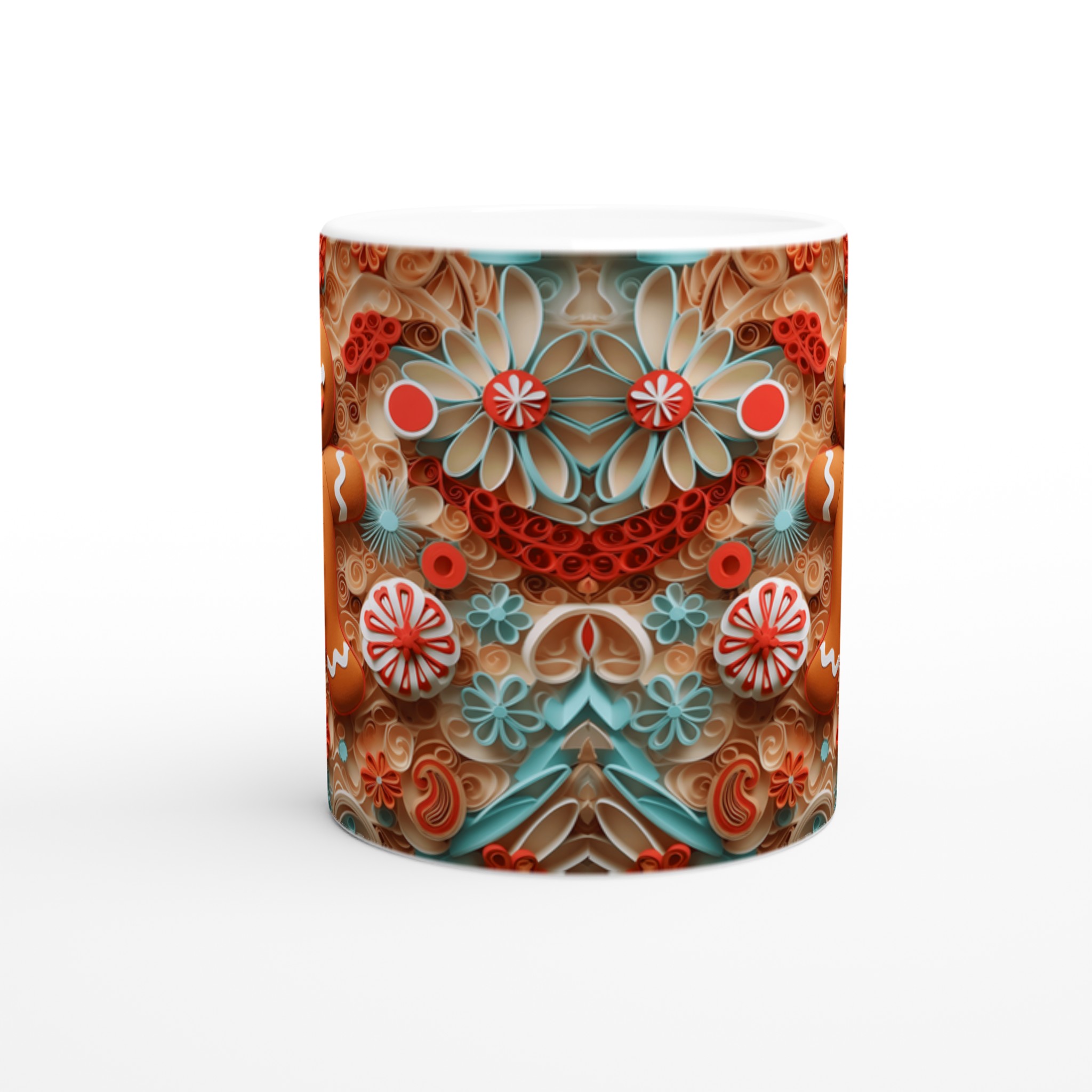 Charming Gingerbread Quilling – Ceramic Mug 11oz, in your choice of seven vibrant shades