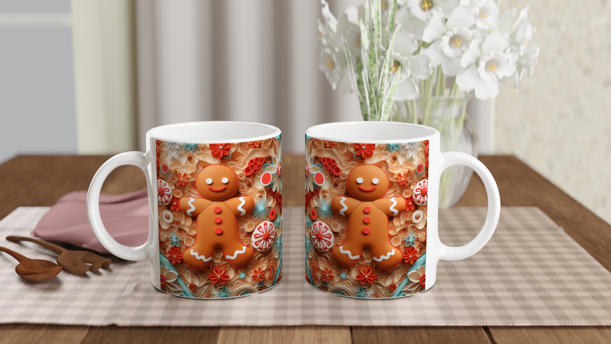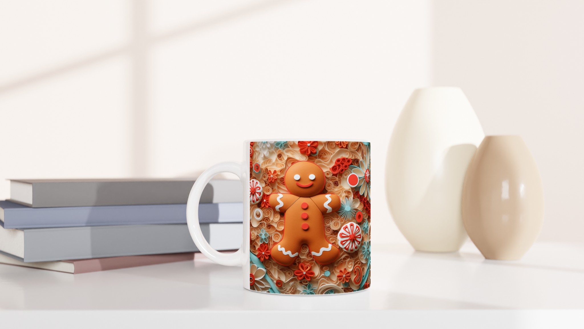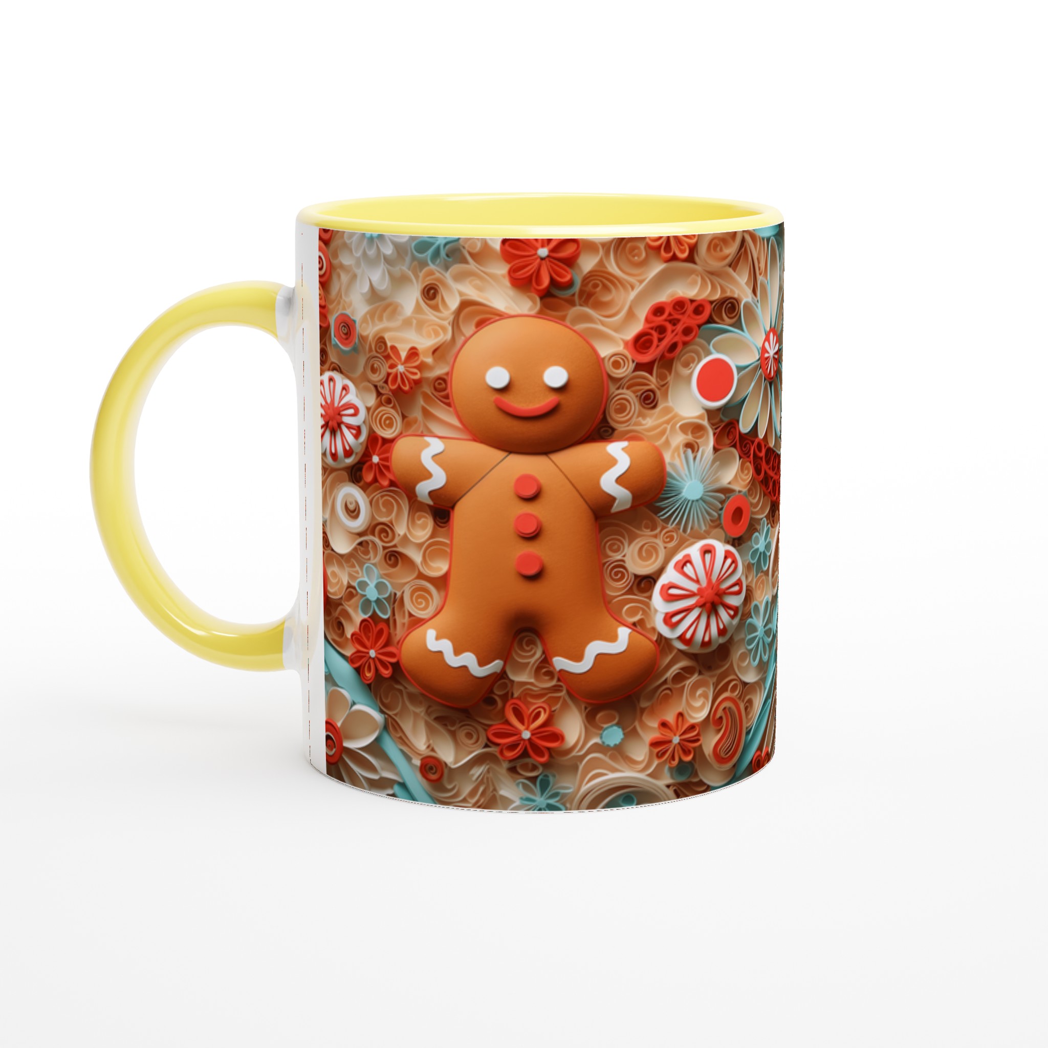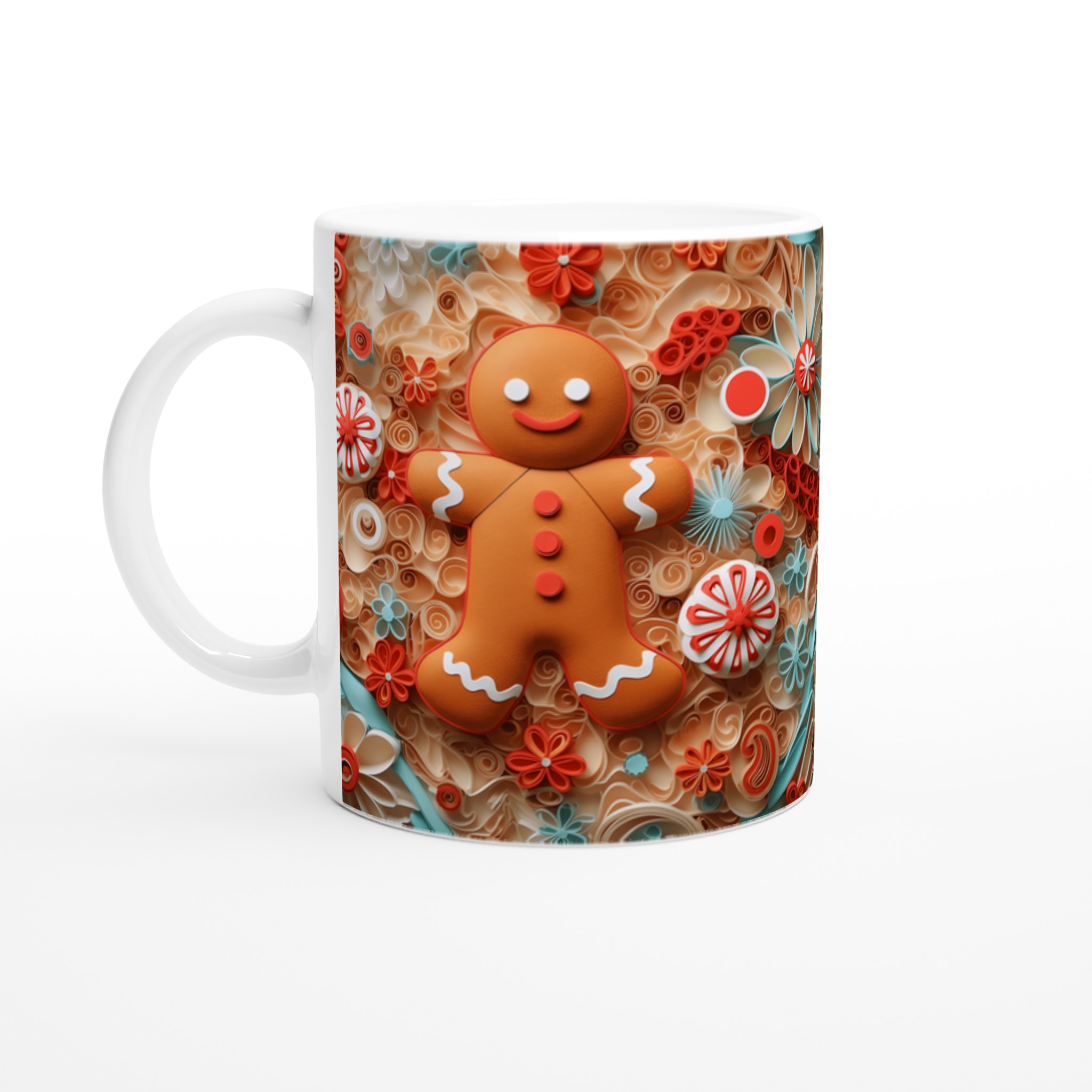 Charming Gingerbread Quilling – Ceramic Mug 11oz, in your choice of seven vibrant shades
