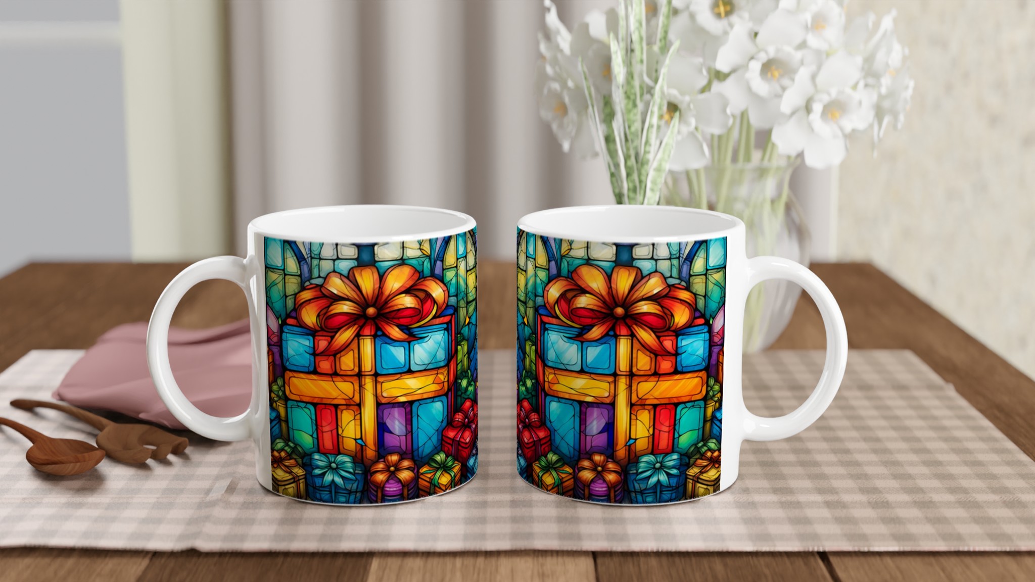 Vibrant Stained Glass Gifts – Ceramic Mug 11oz, in your choice of seven festive hues