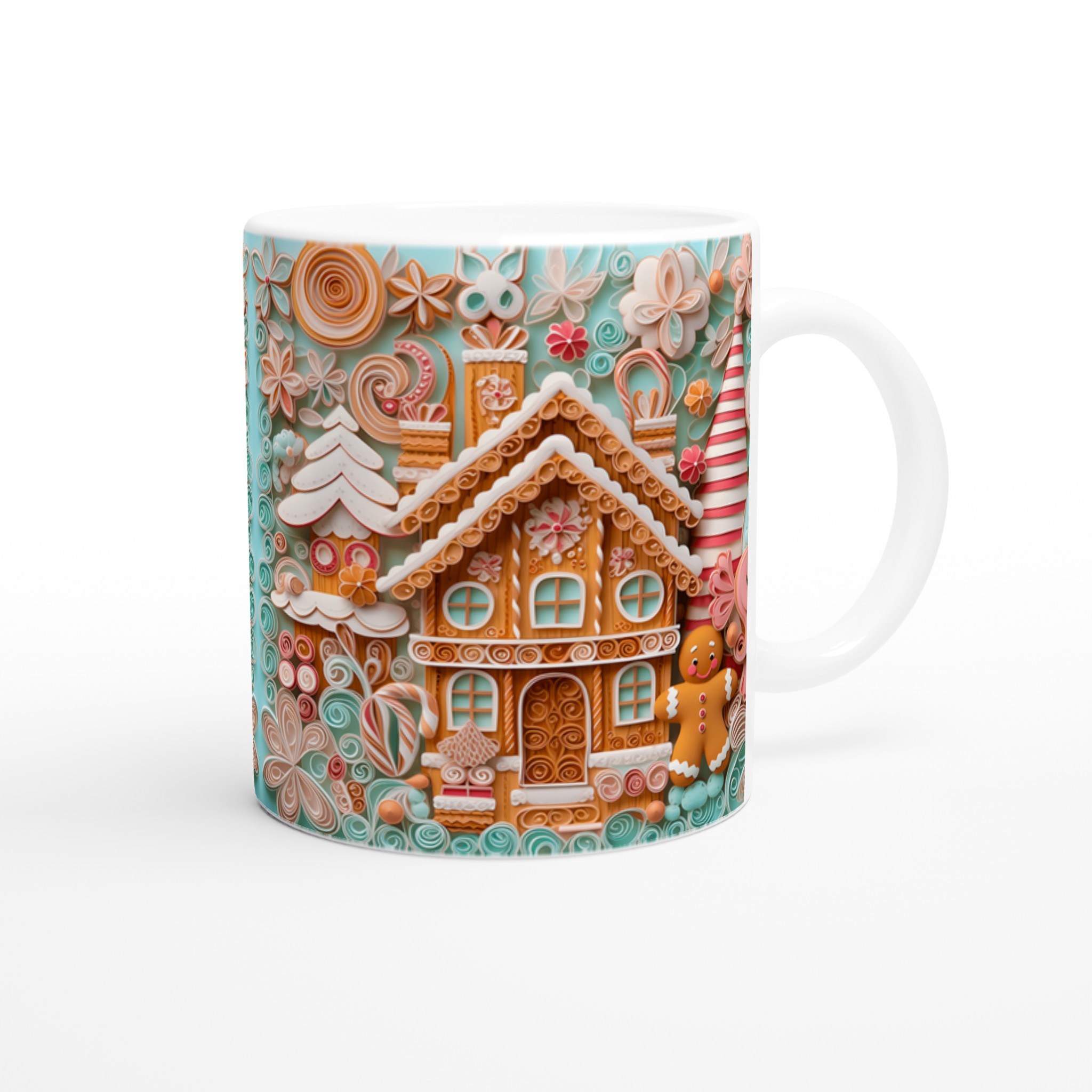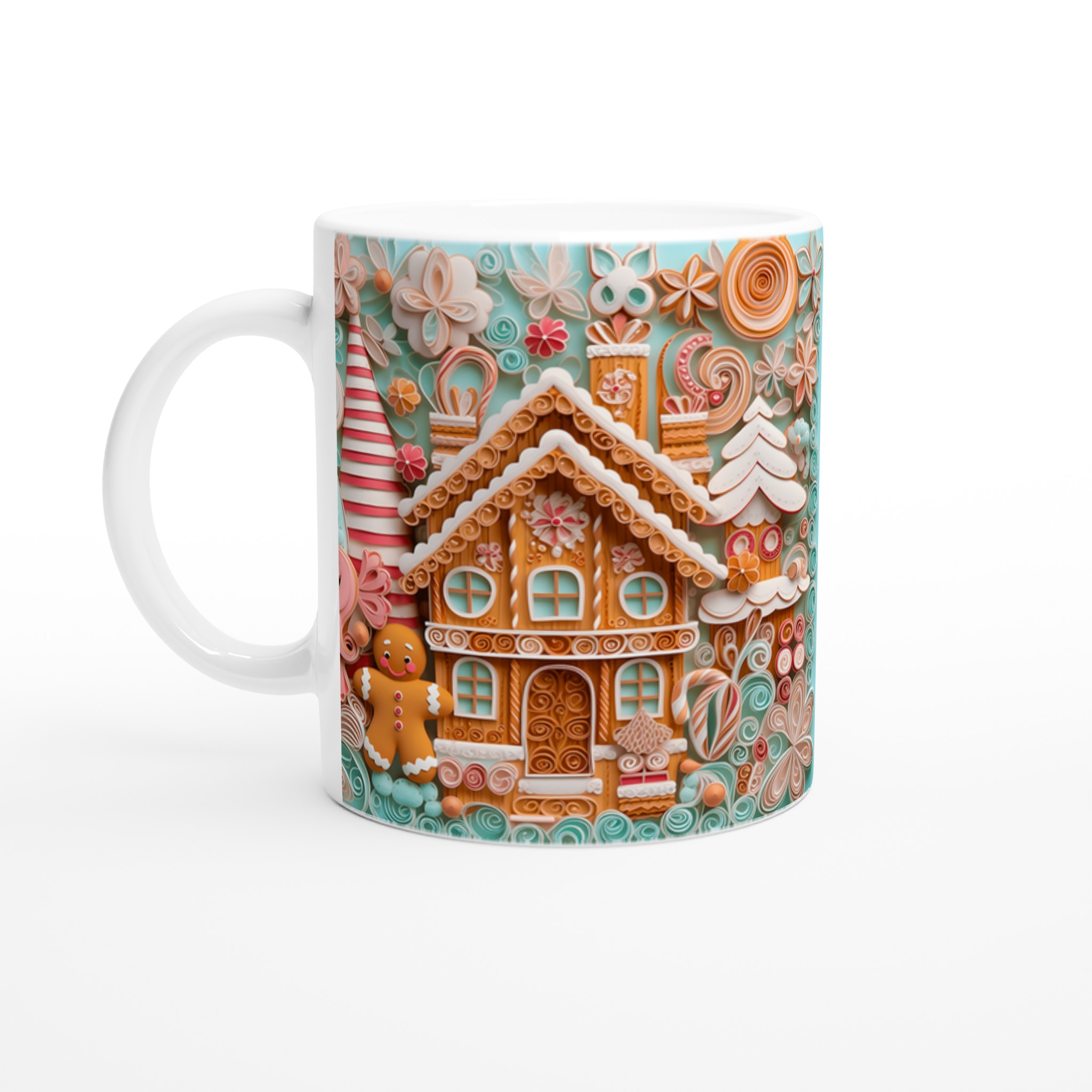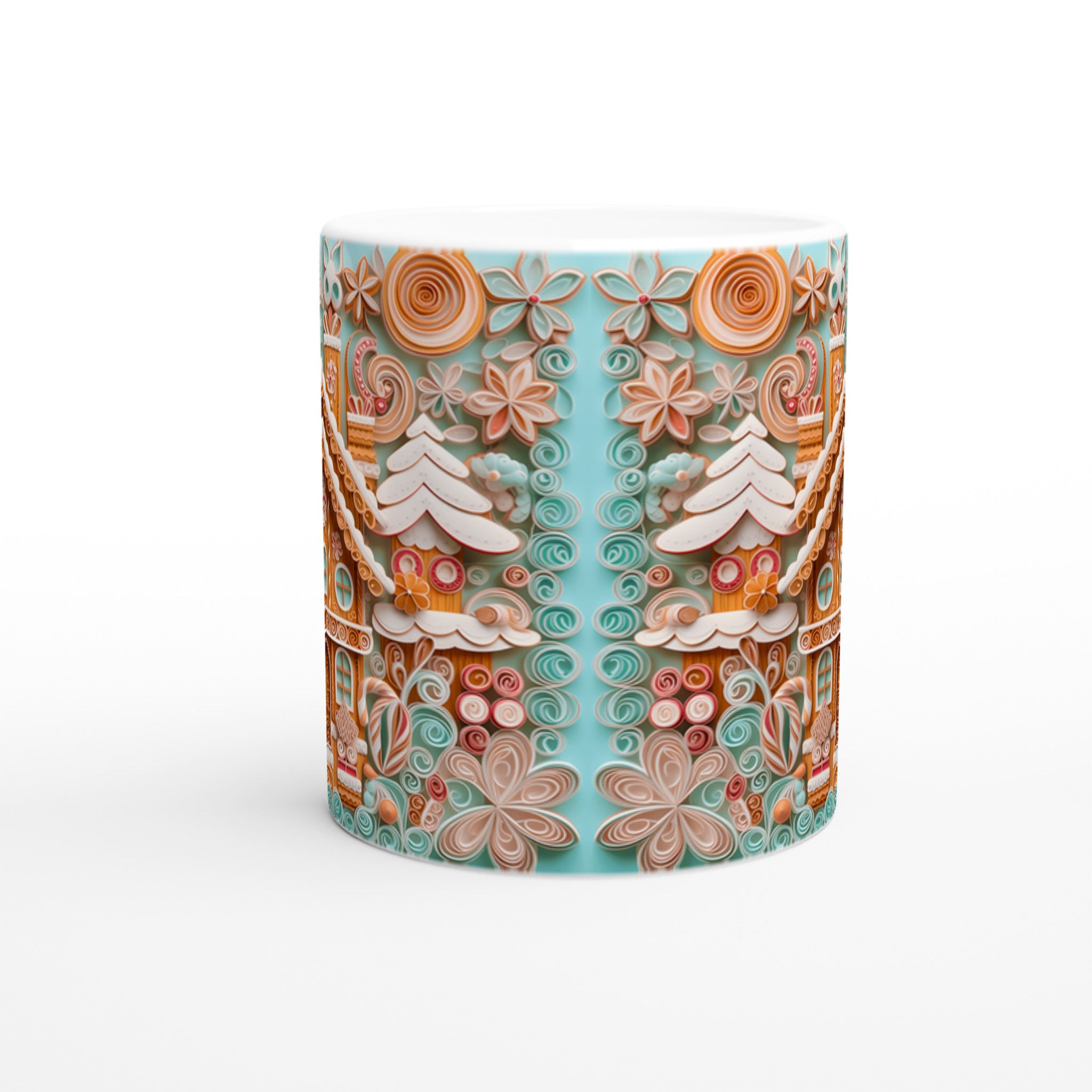 Cozy Gingerbread Quilling Art Ceramic Mug – Festive Everyday Favorite in 7 Colors
