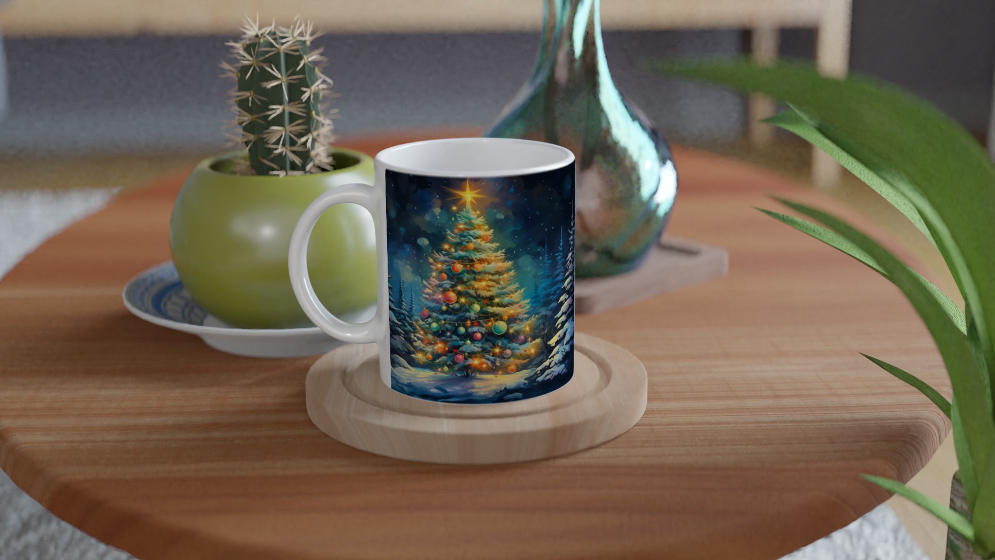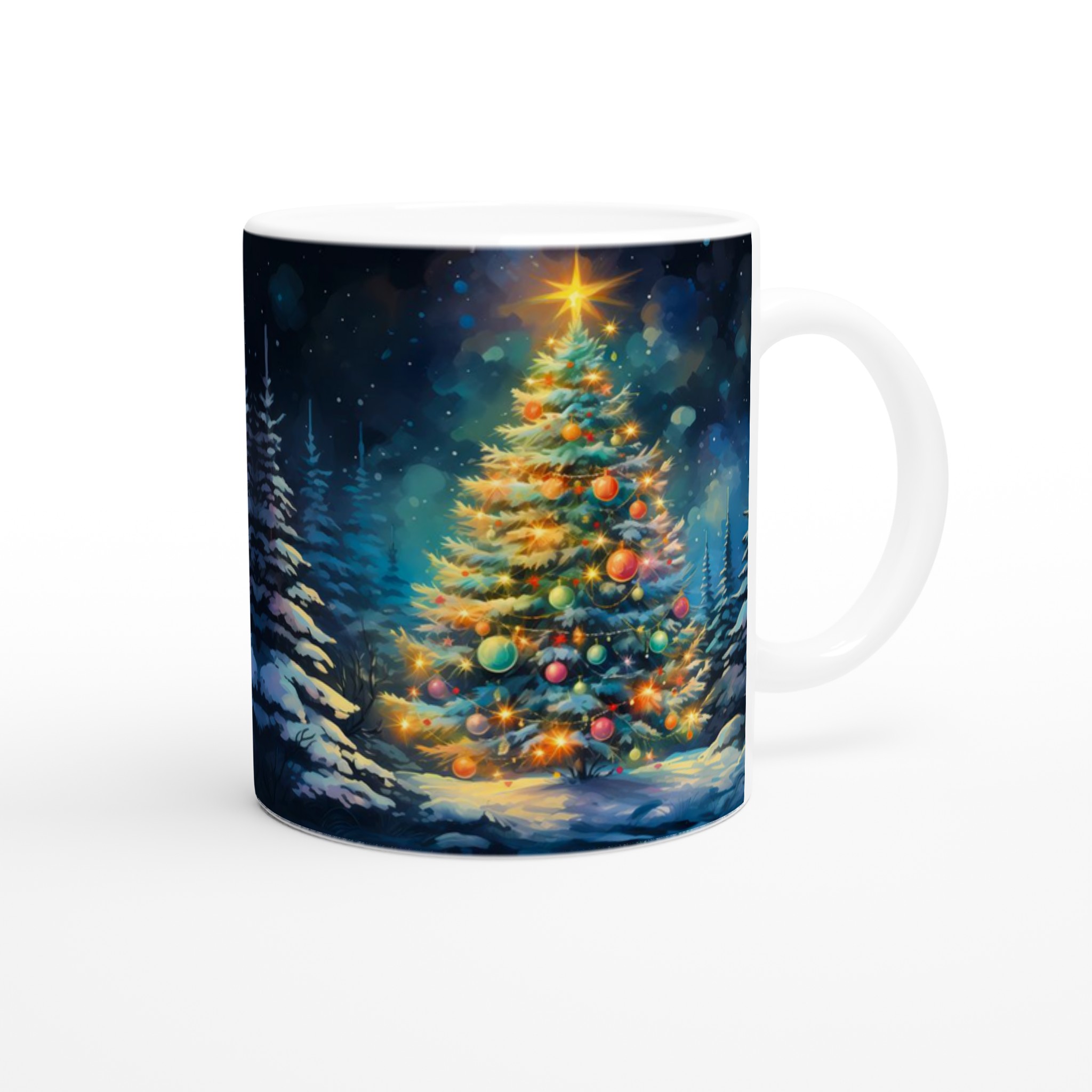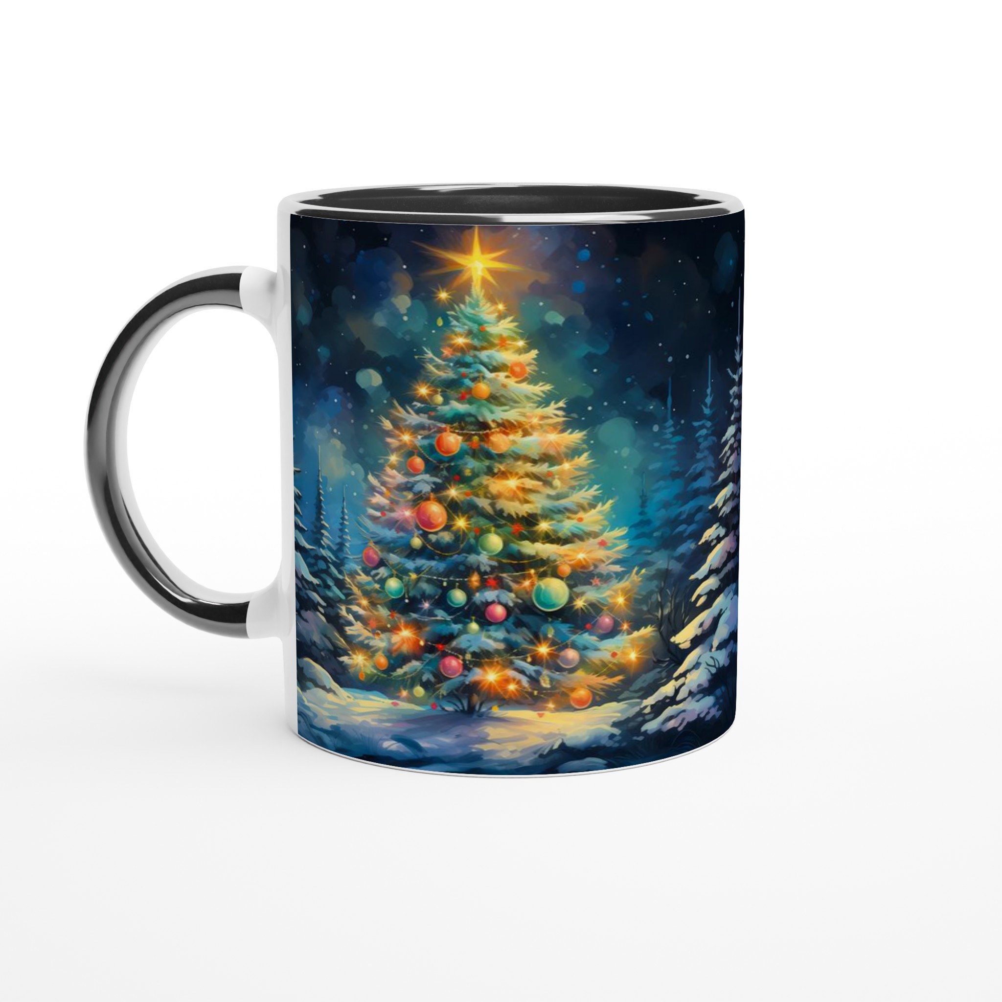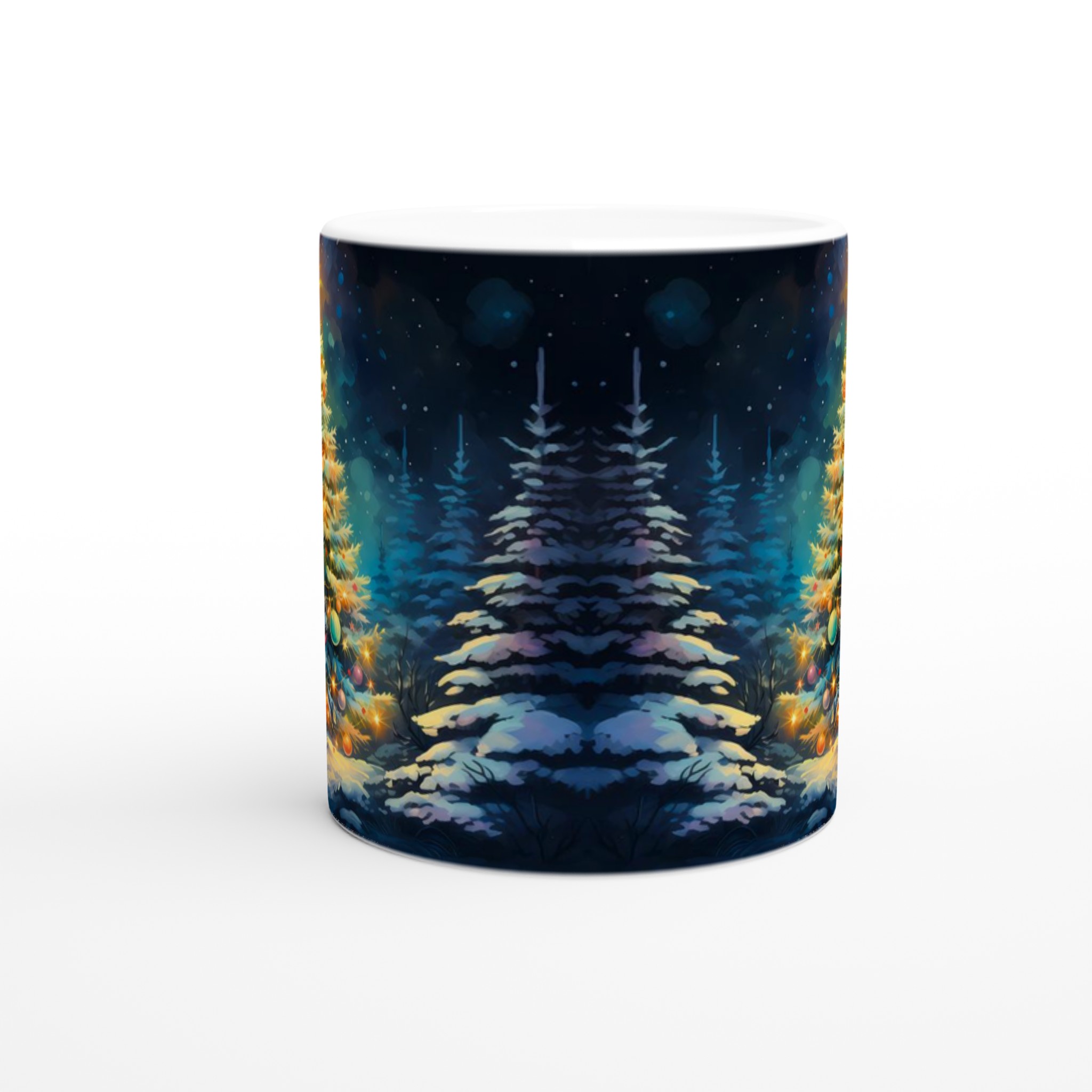 Winter Wonderland – Ceramic Mug 11oz, Festive Forest & Northern Lights in 7 Vibrant Colors