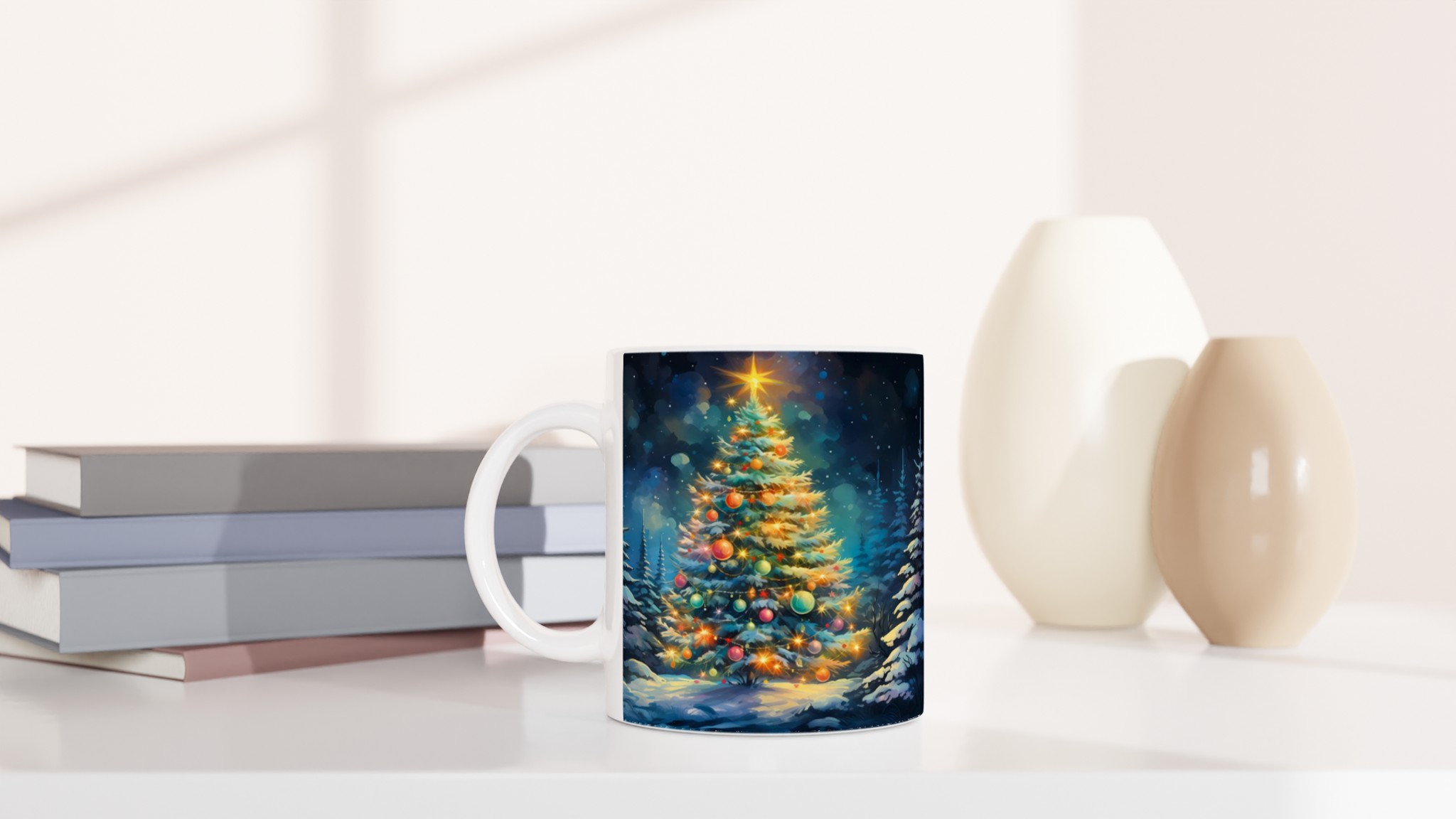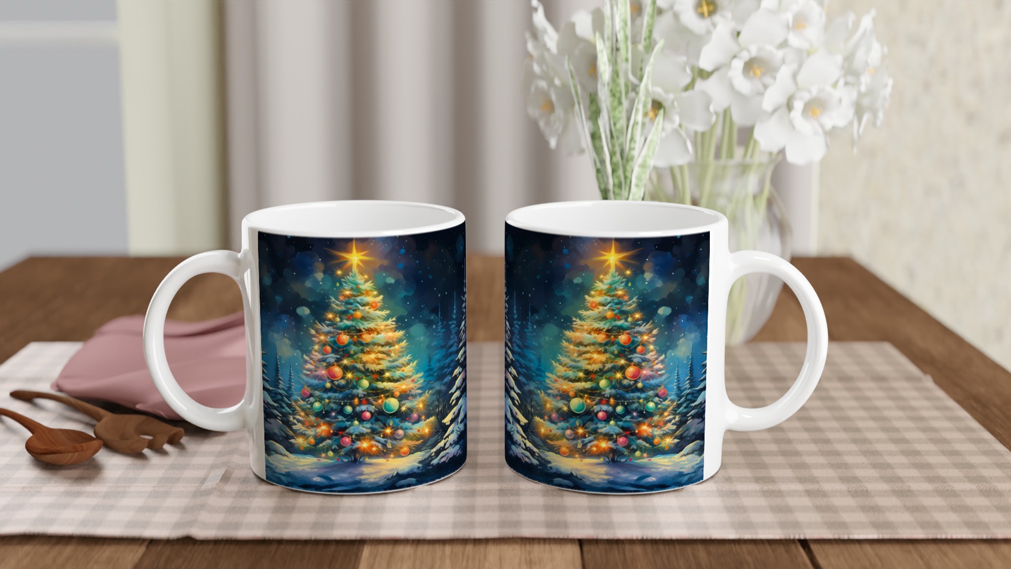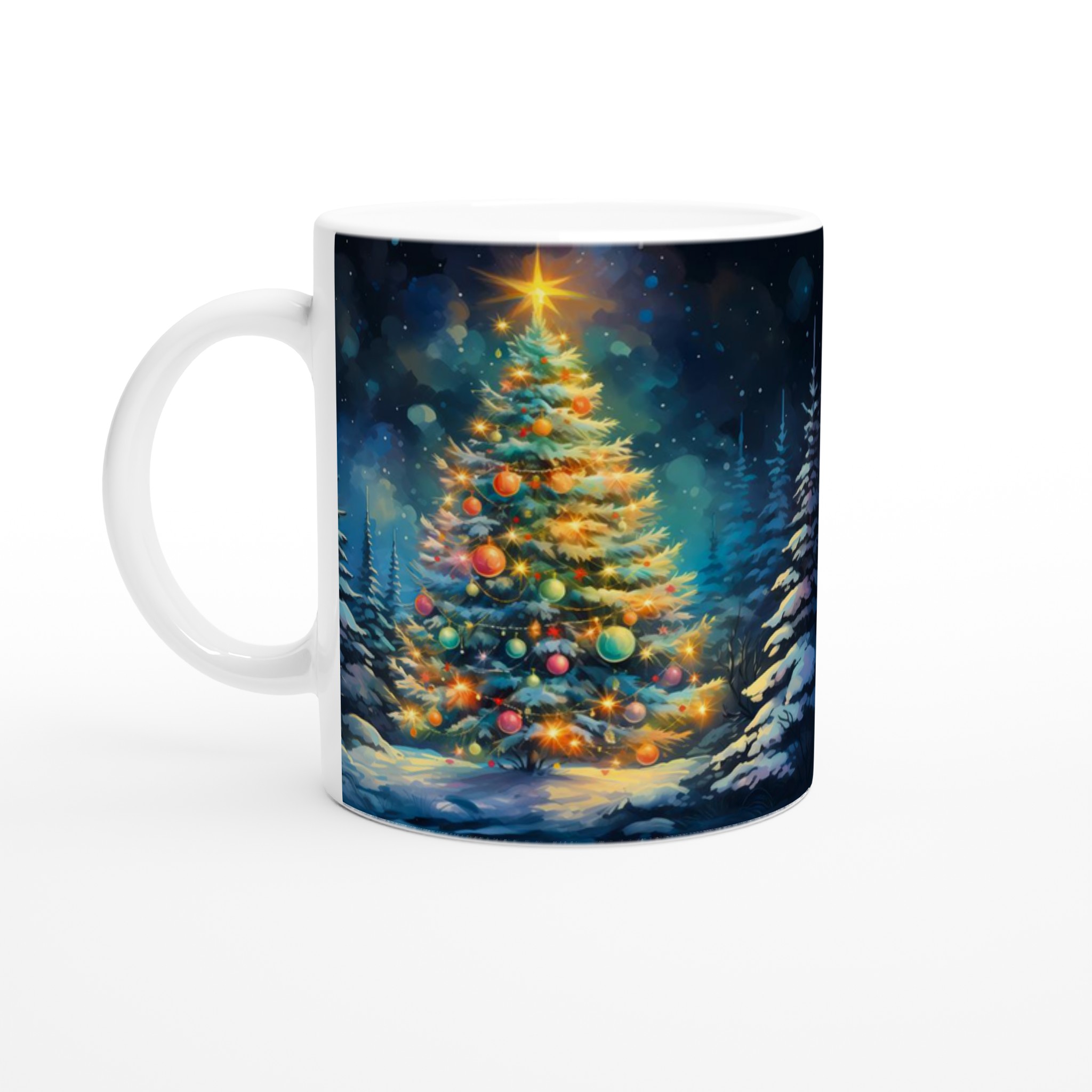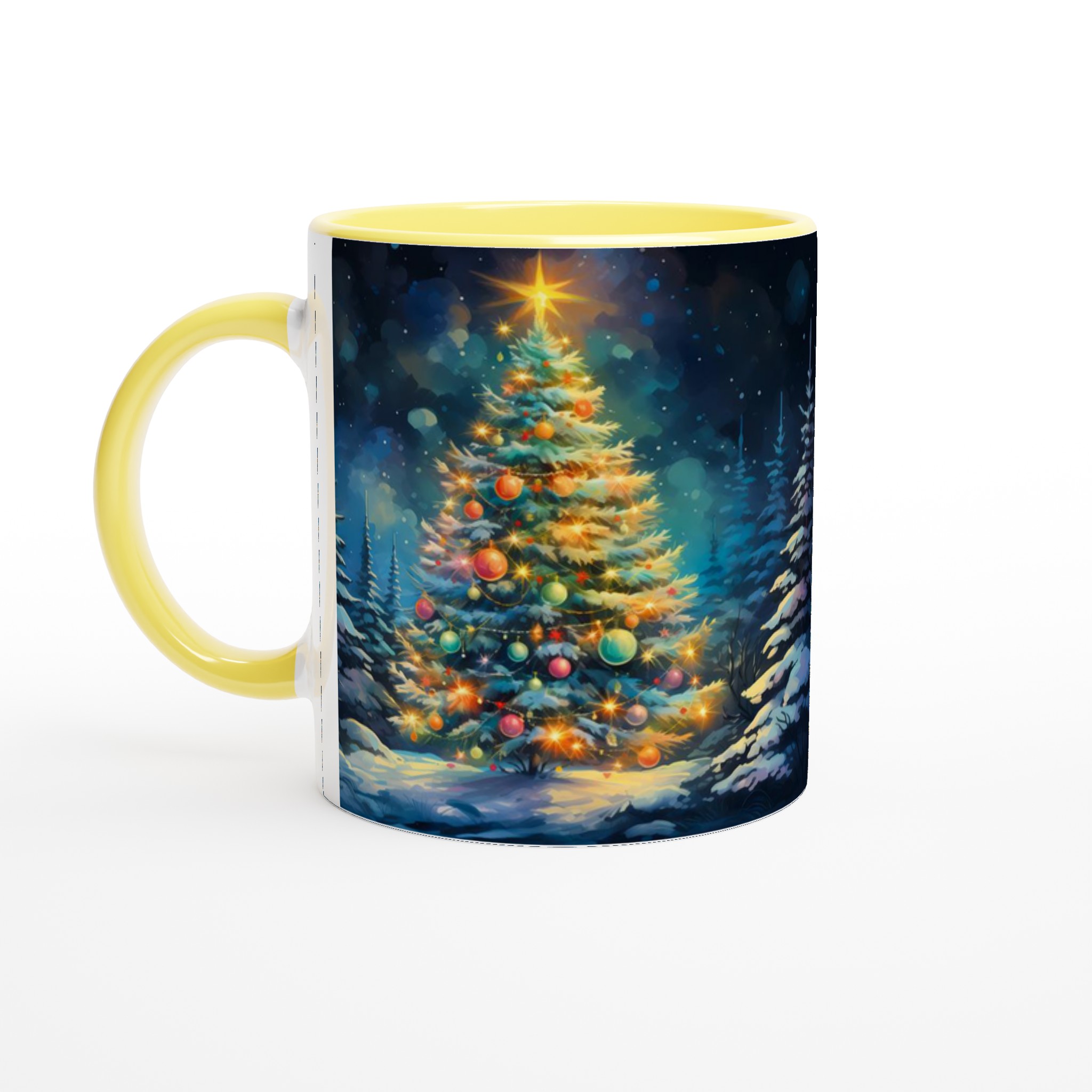 Winter Wonderland – Ceramic Mug 11oz, Festive Forest & Northern Lights in 7 Vibrant Colors