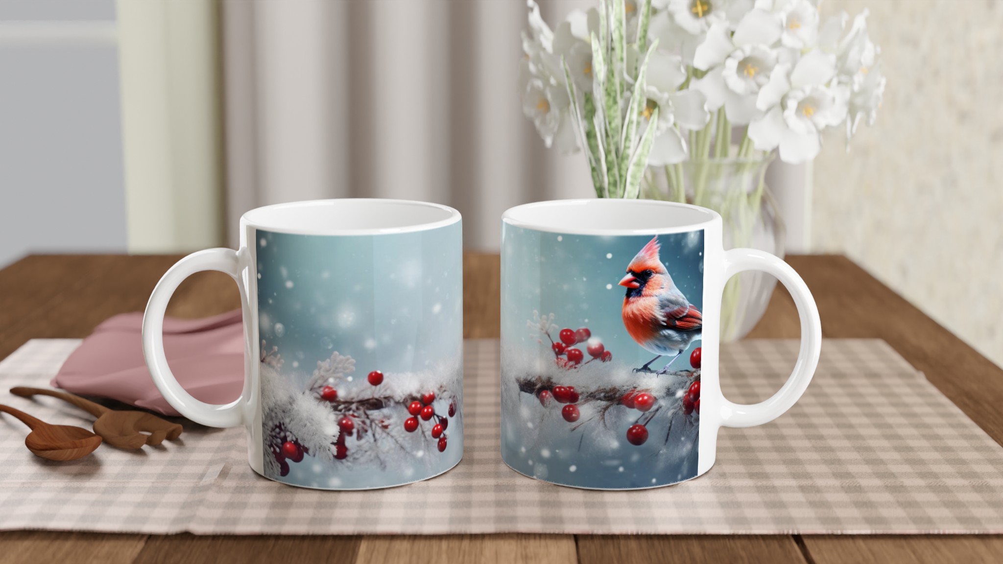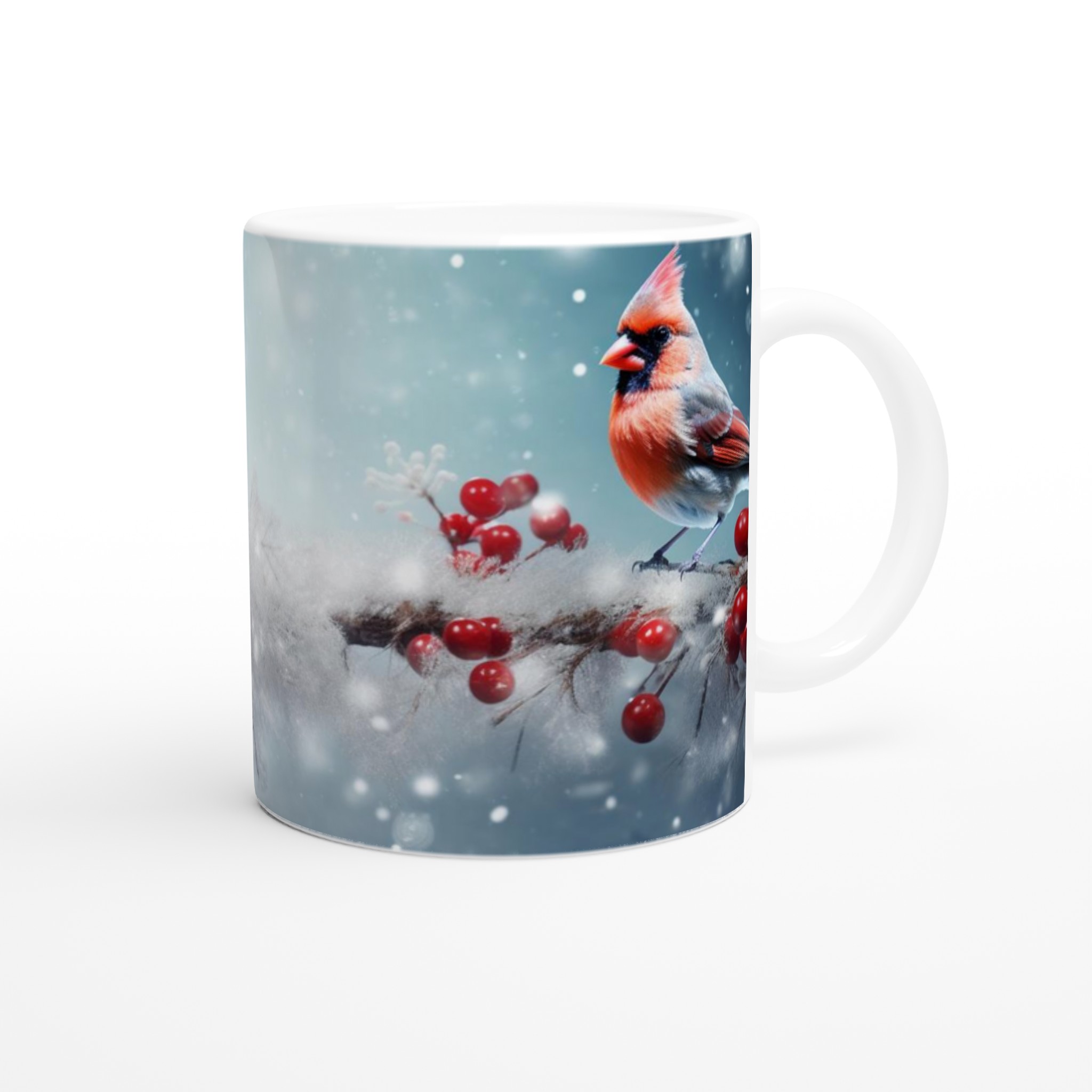 Winter Cardinal – Ceramic Mug 11oz, a festive and vibrant companion for your favorite warm beverages.