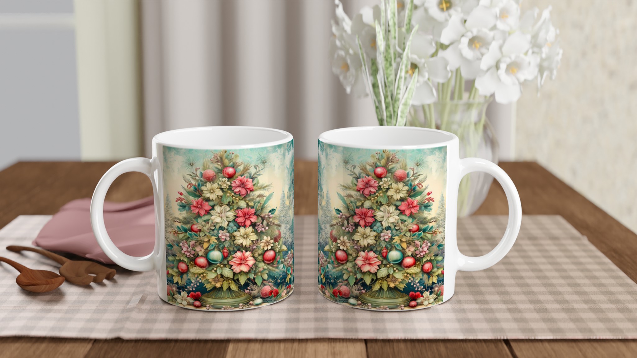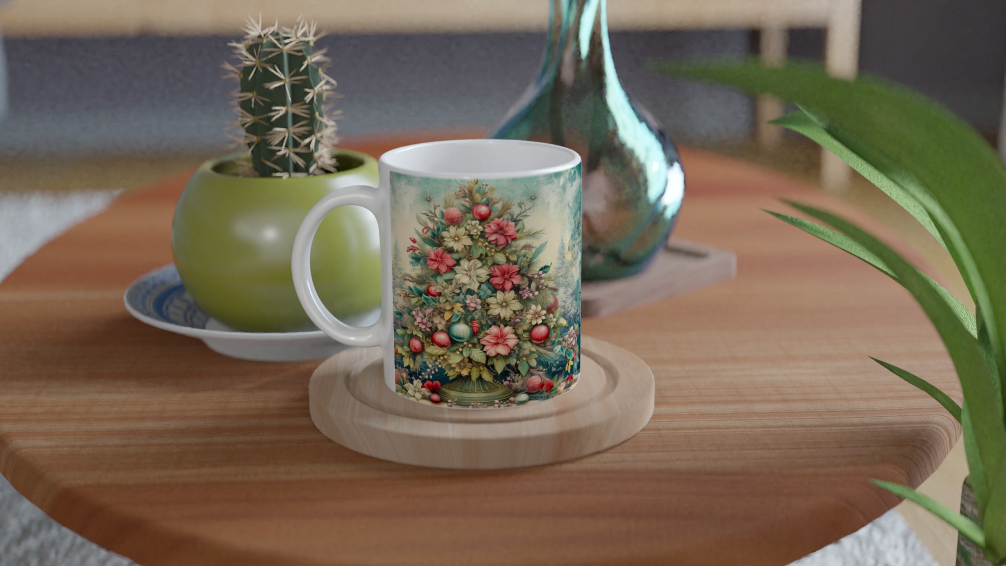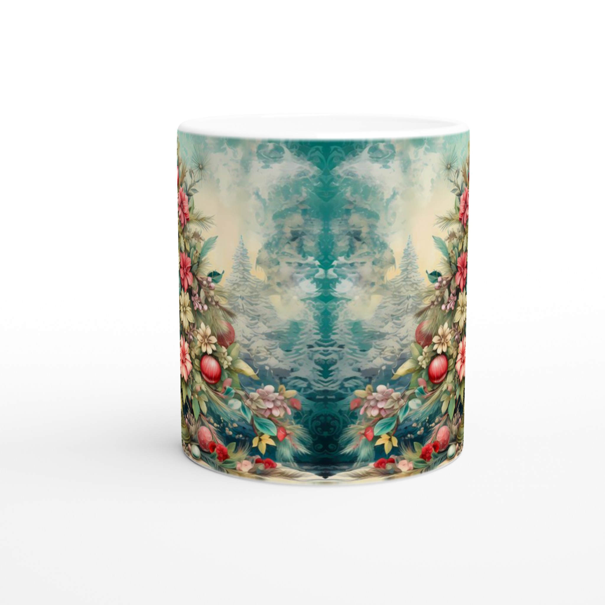 Enchanted Floral Forest – Festive Ceramic Mug 11oz, in your choice of seven vibrant hues