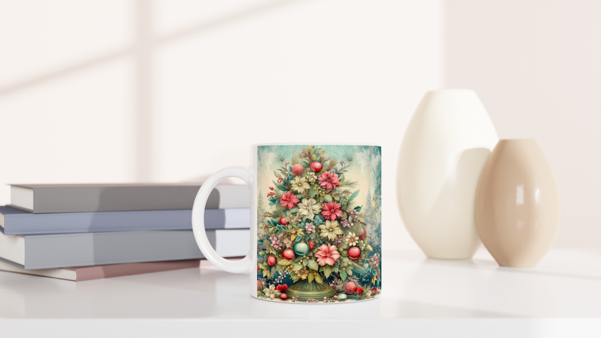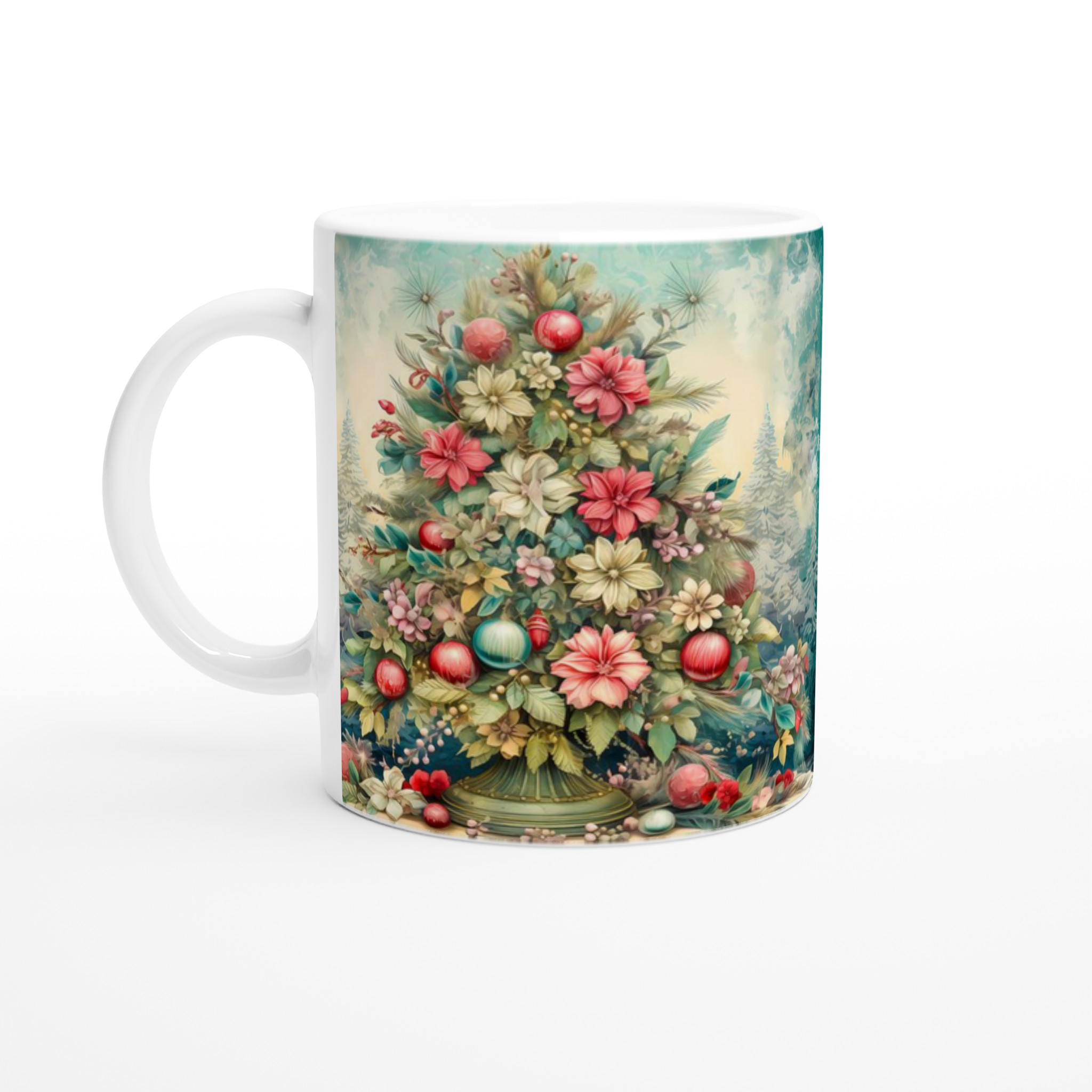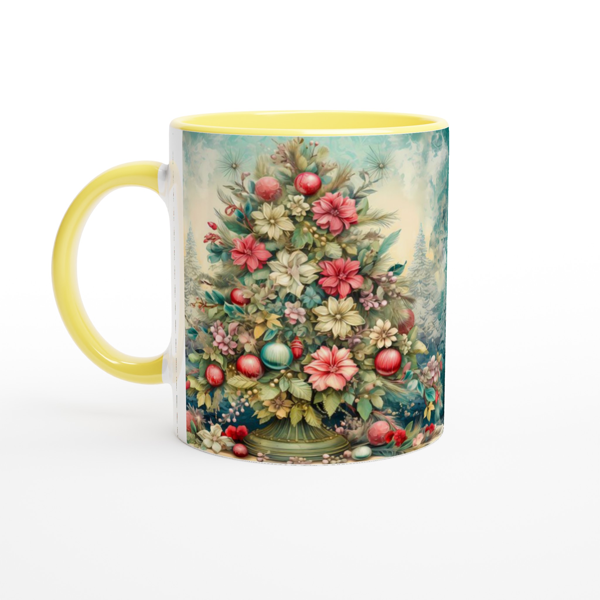 Enchanted Floral Forest – Festive Ceramic Mug 11oz, in your choice of seven vibrant hues