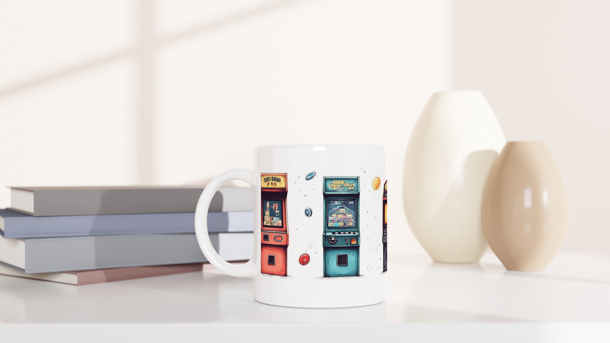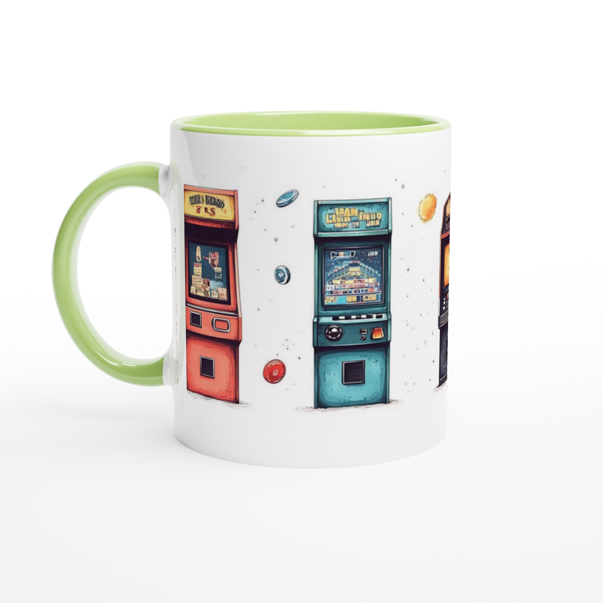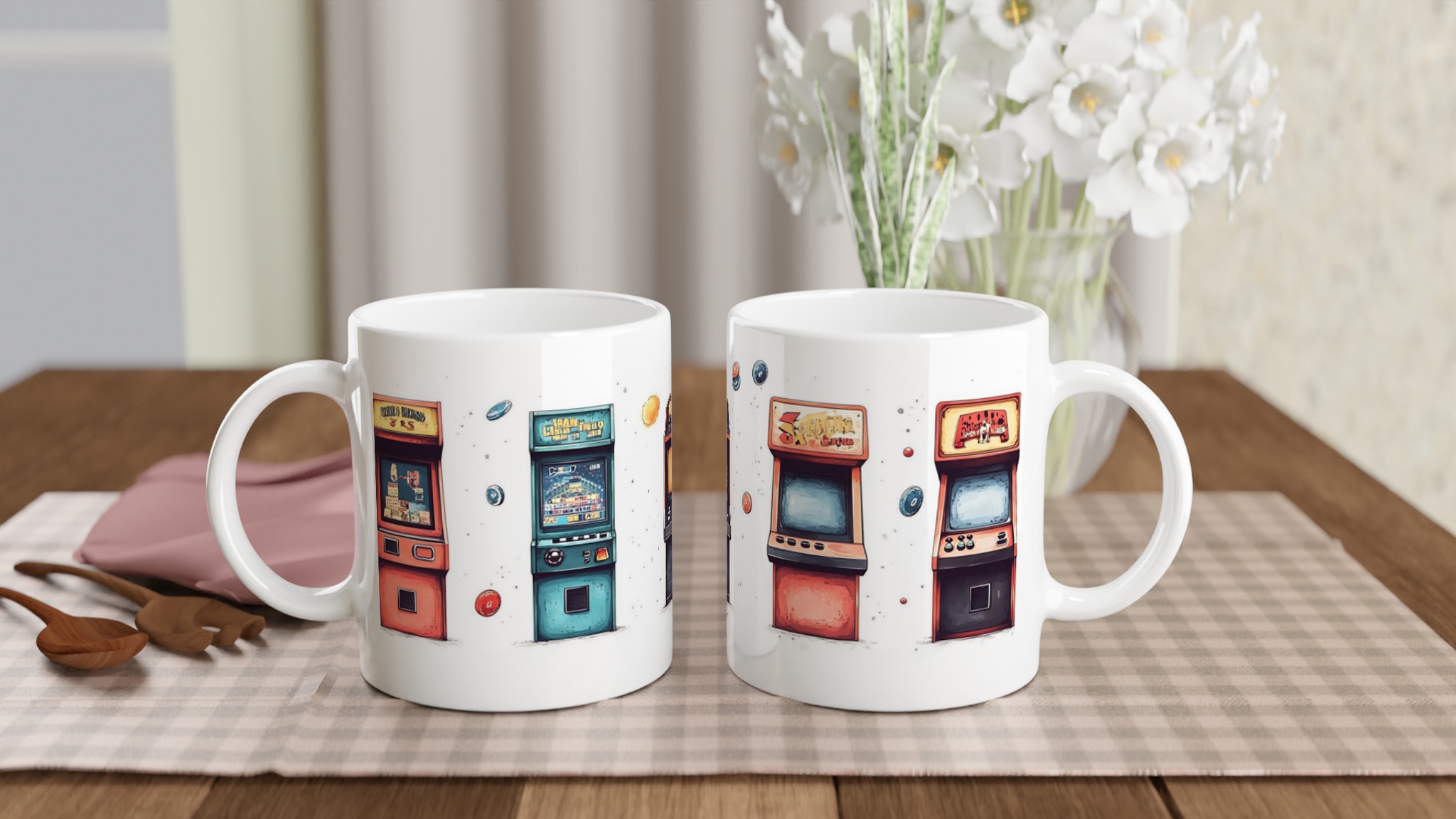 Retro Arcade Vibes – Ceramic Mug 11oz, in Your Choice of Seven Vibrant Colors