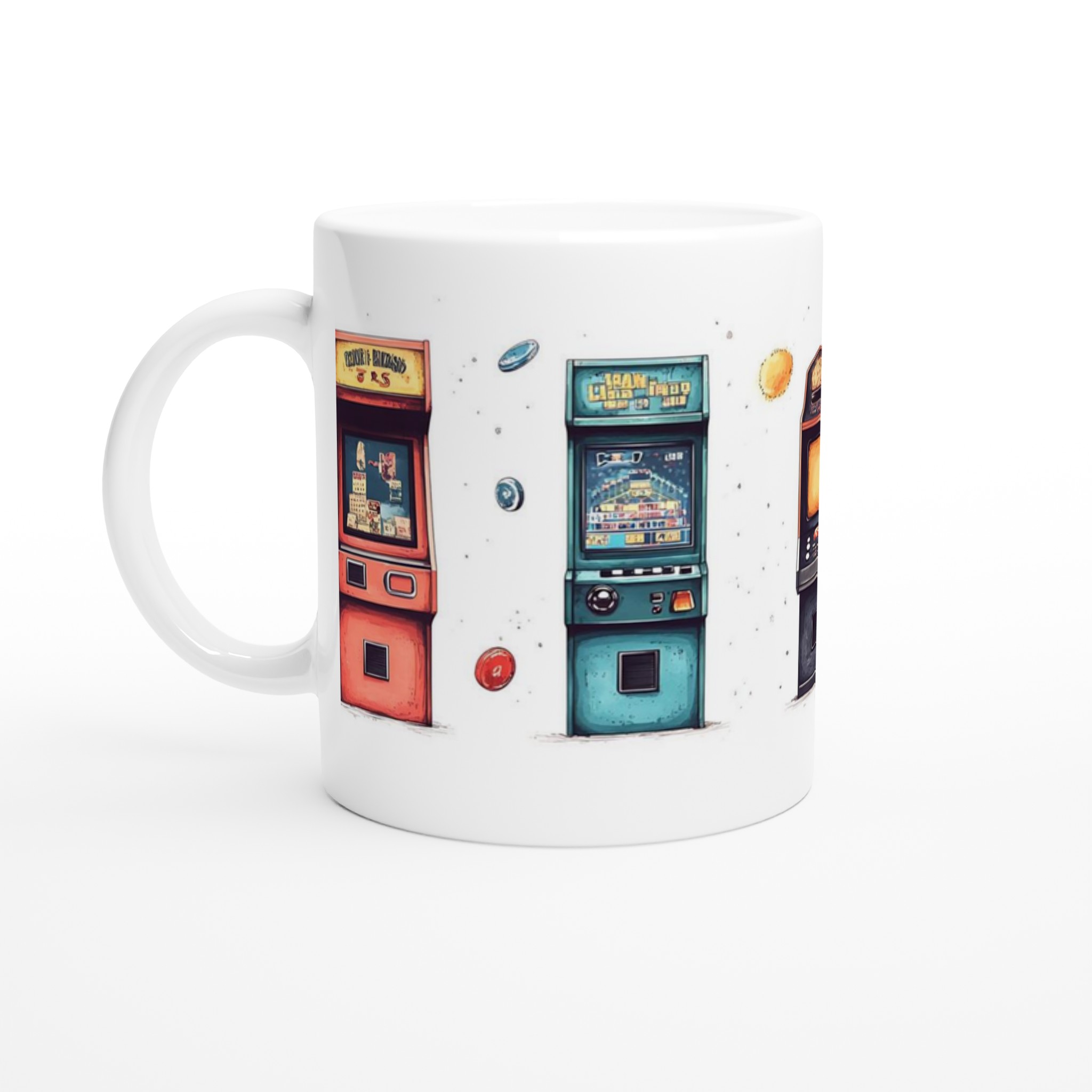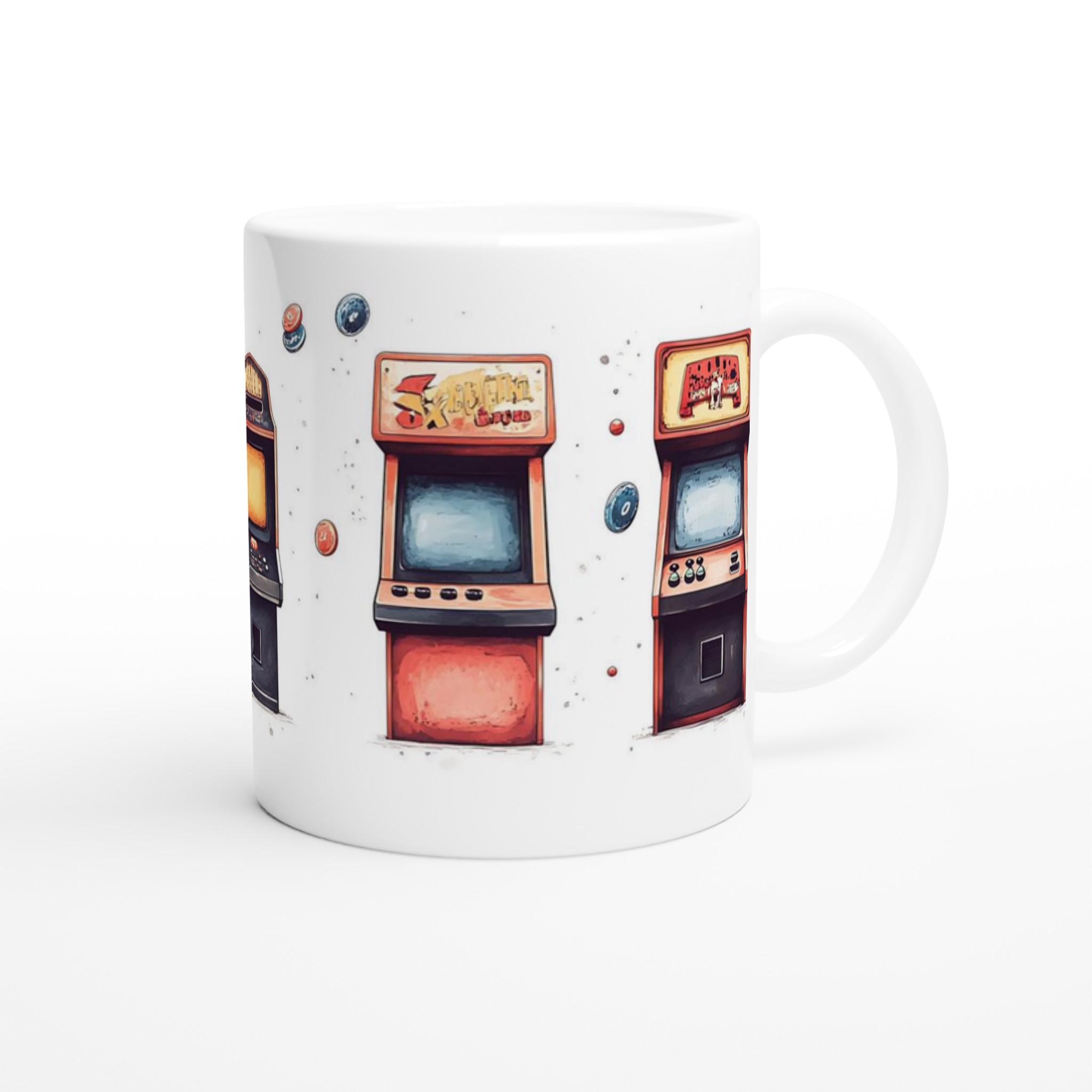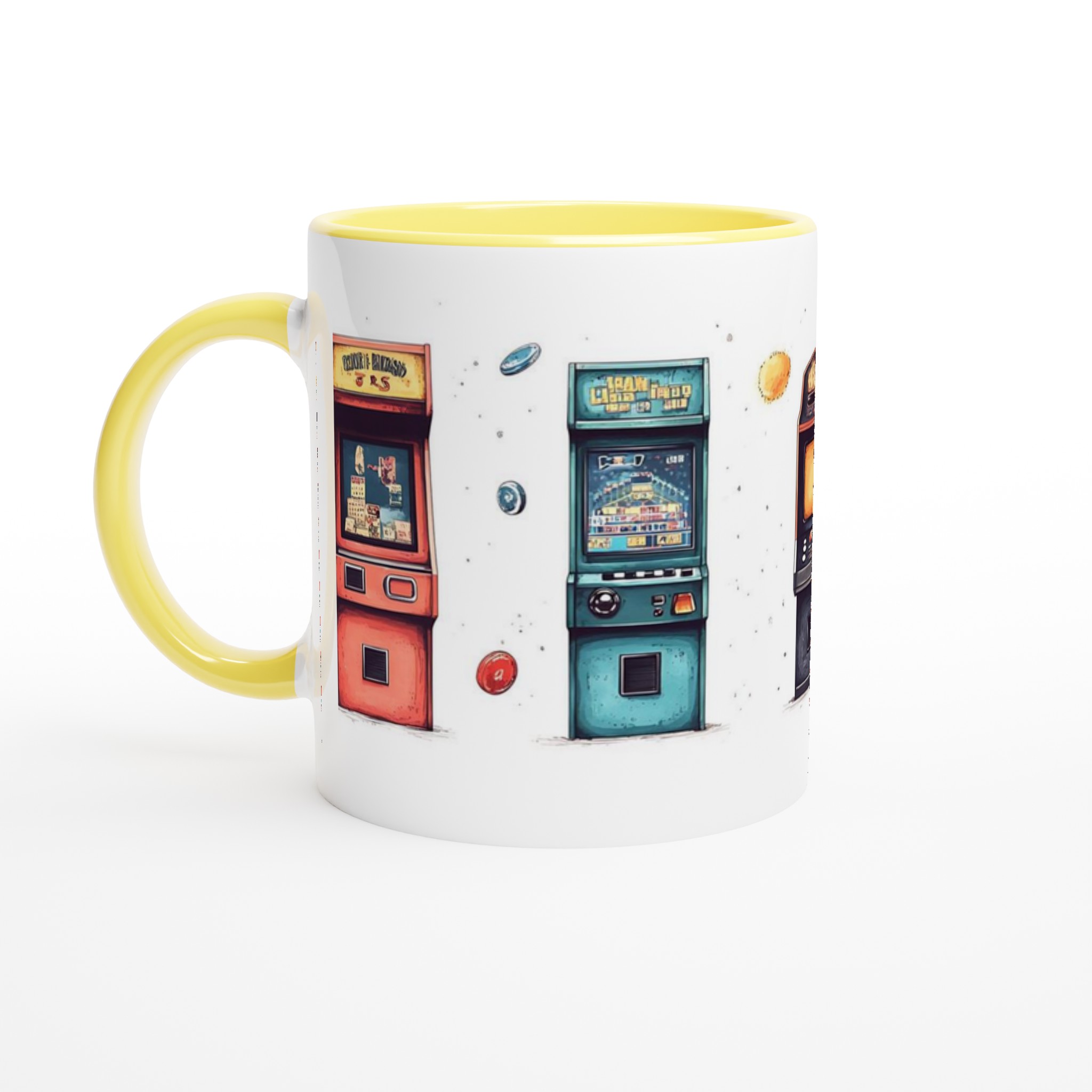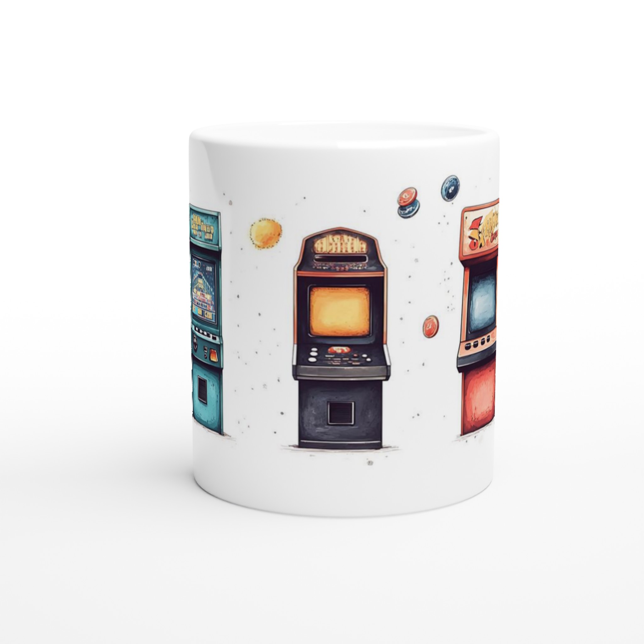 Retro Arcade Vibes – Ceramic Mug 11oz, in Your Choice of Seven Vibrant Colors