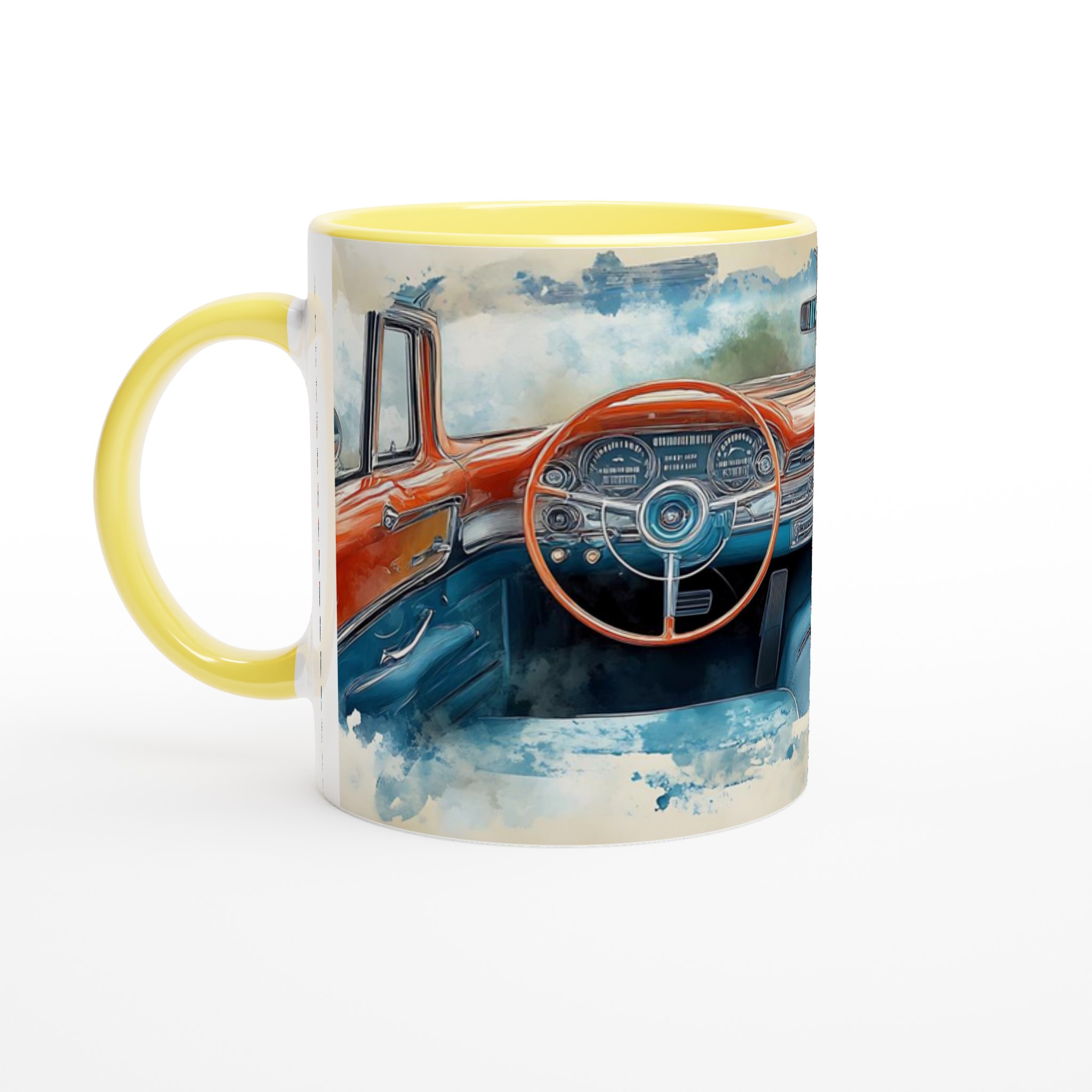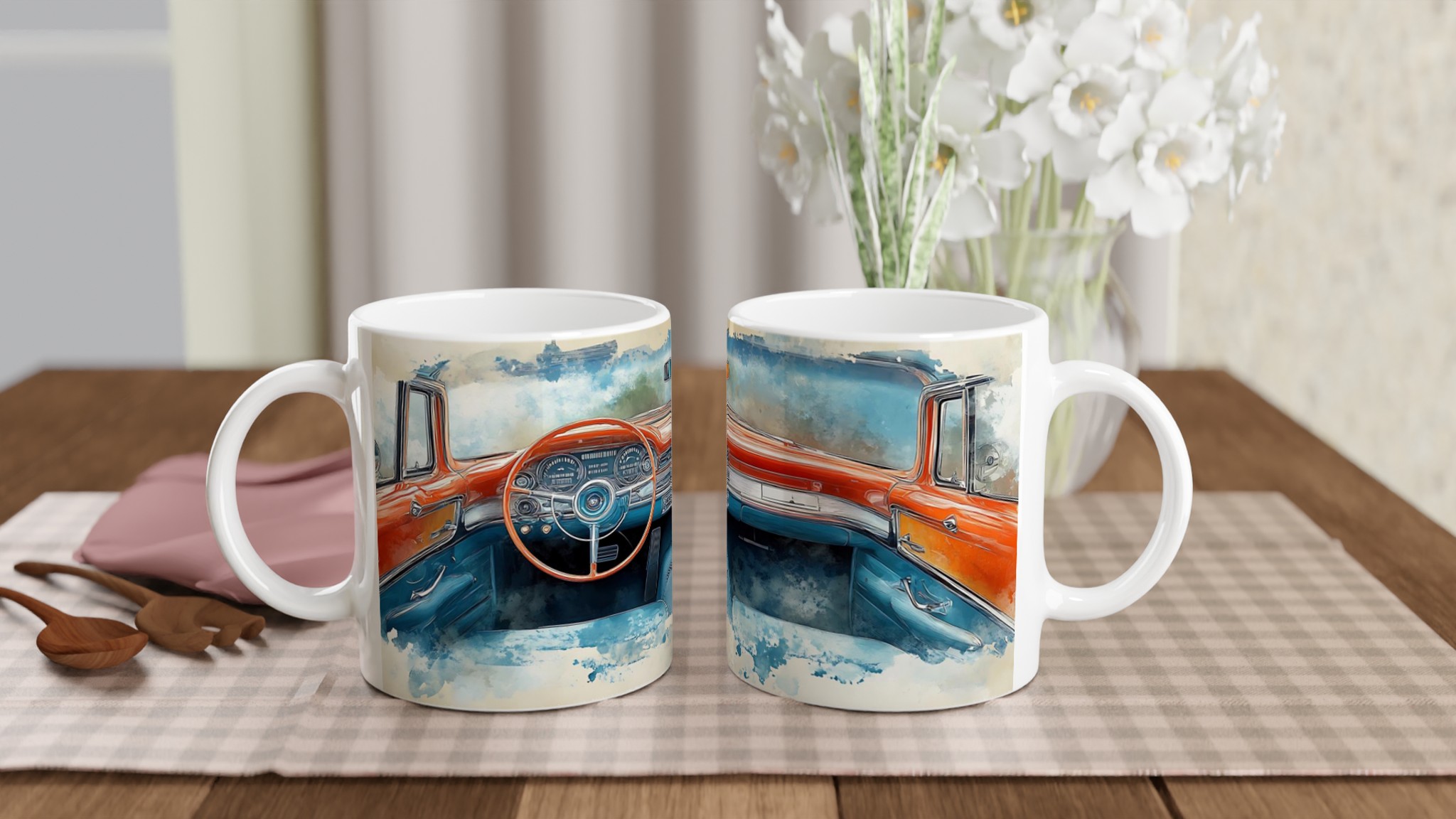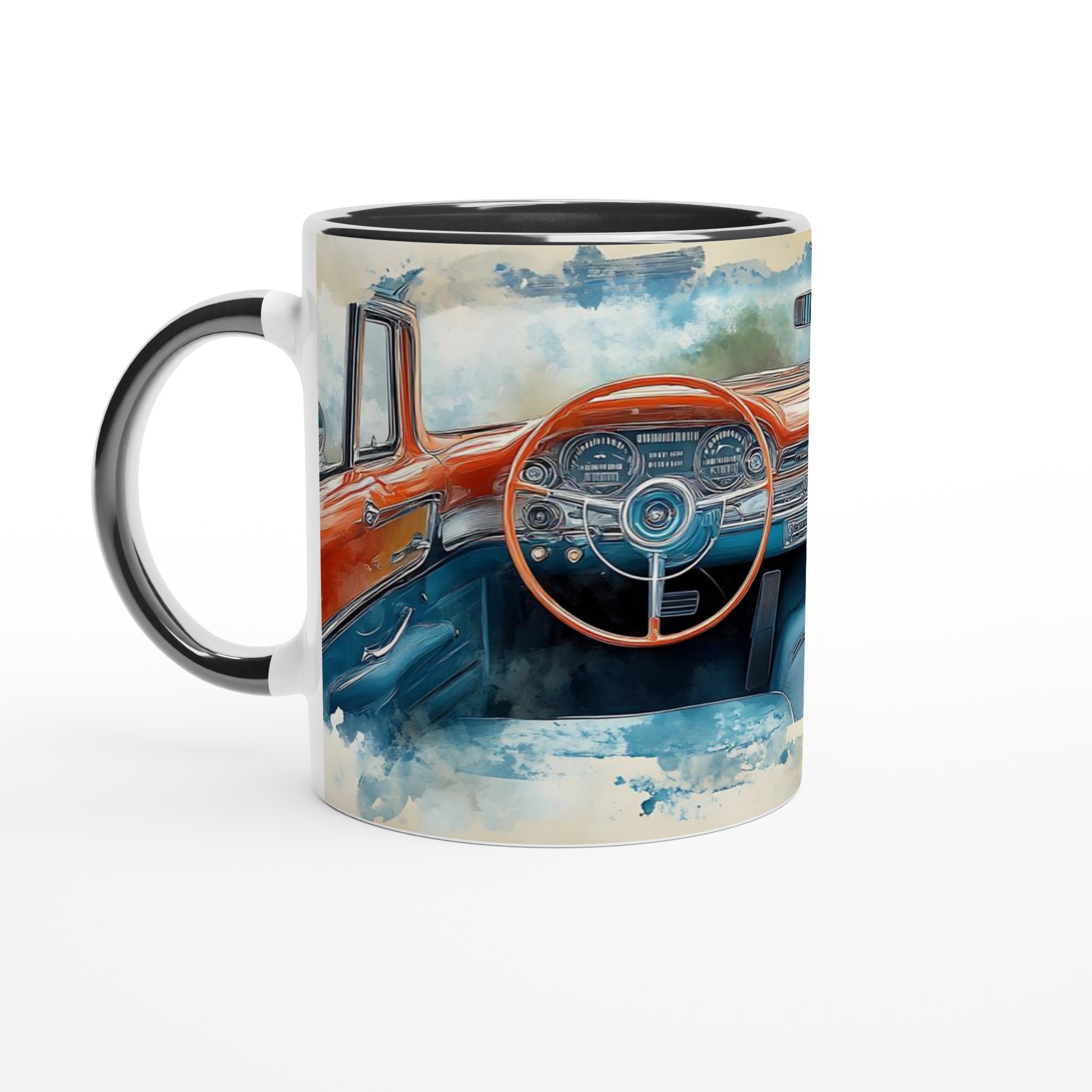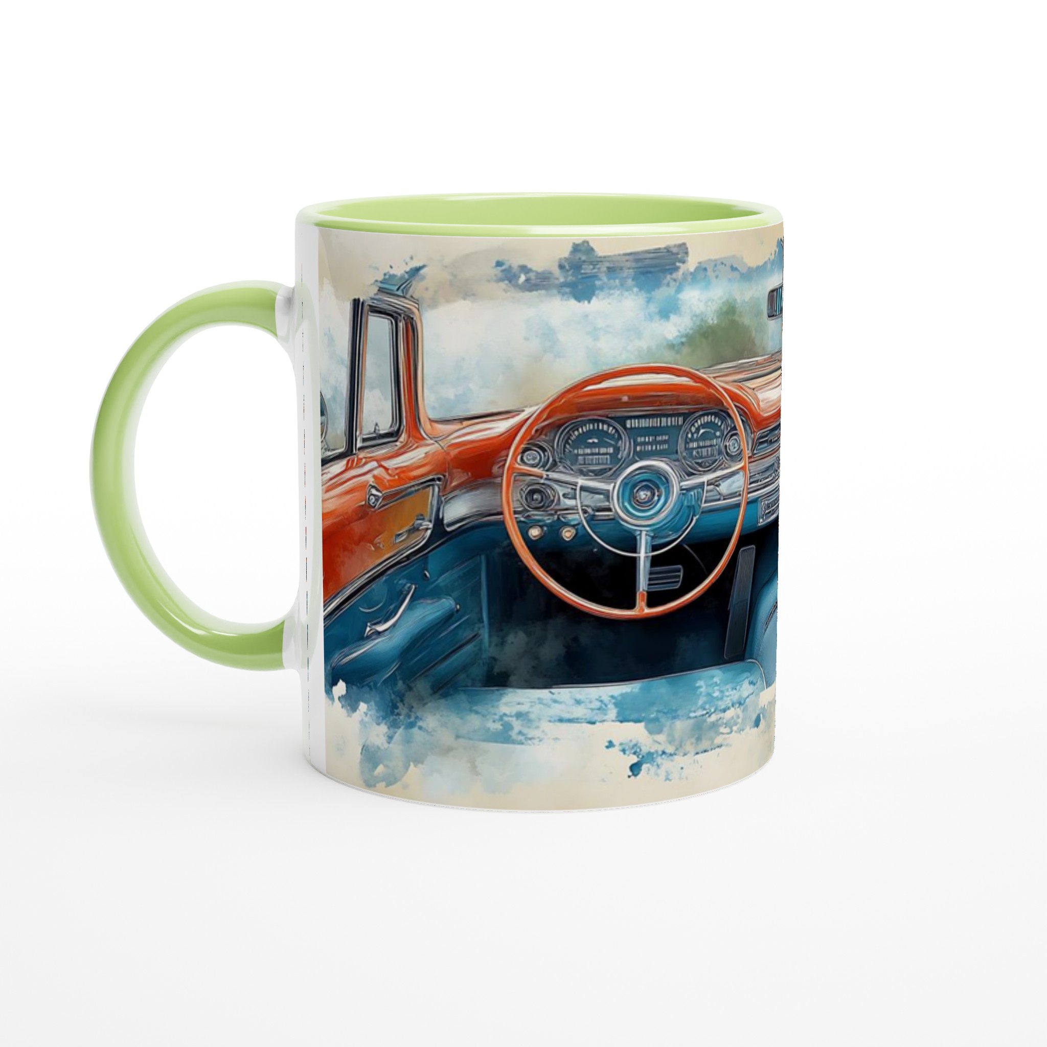 Retro Road Trip – Watercolor Classic Car Ceramic Mug 11oz – Your Choice of 7 Vibrant Colors!