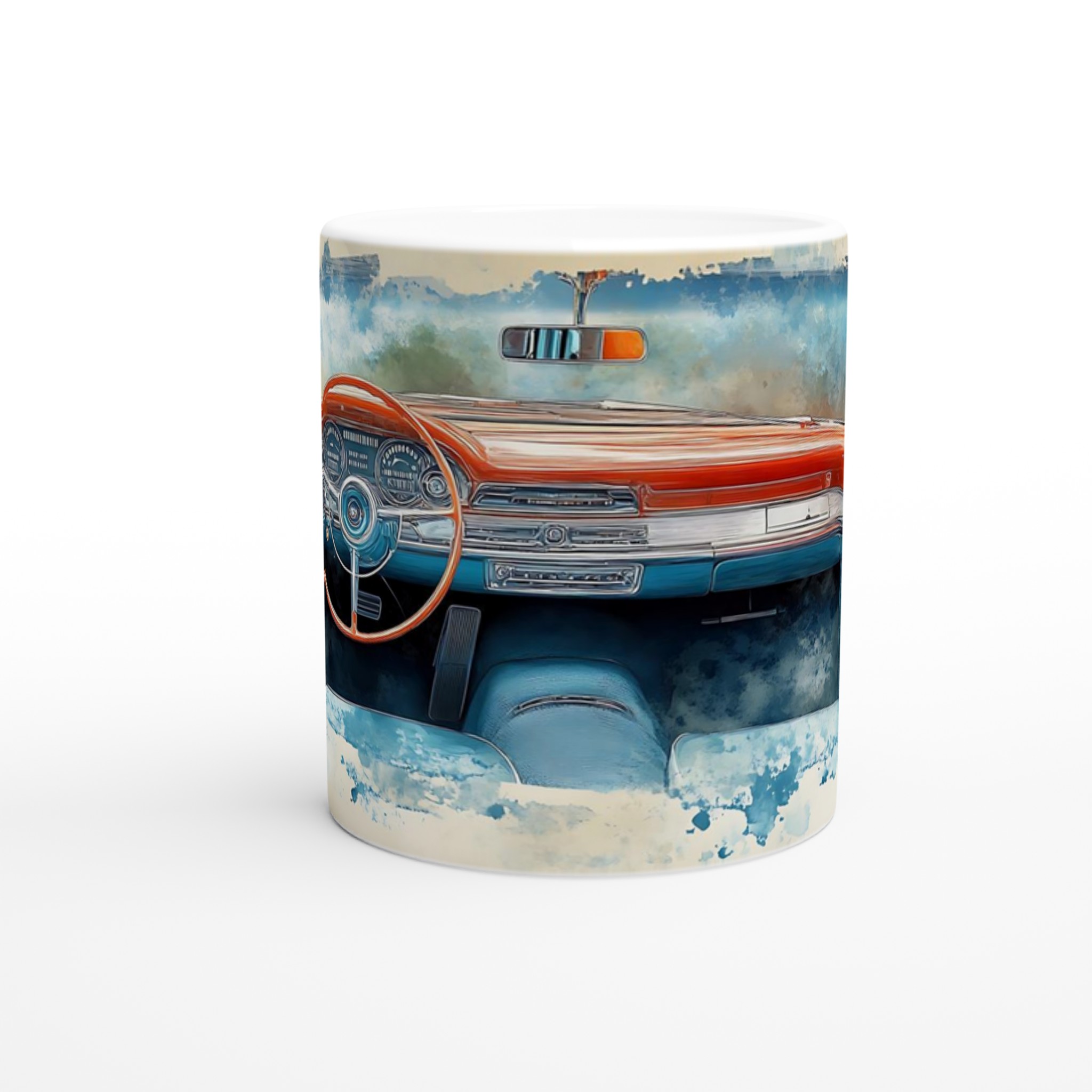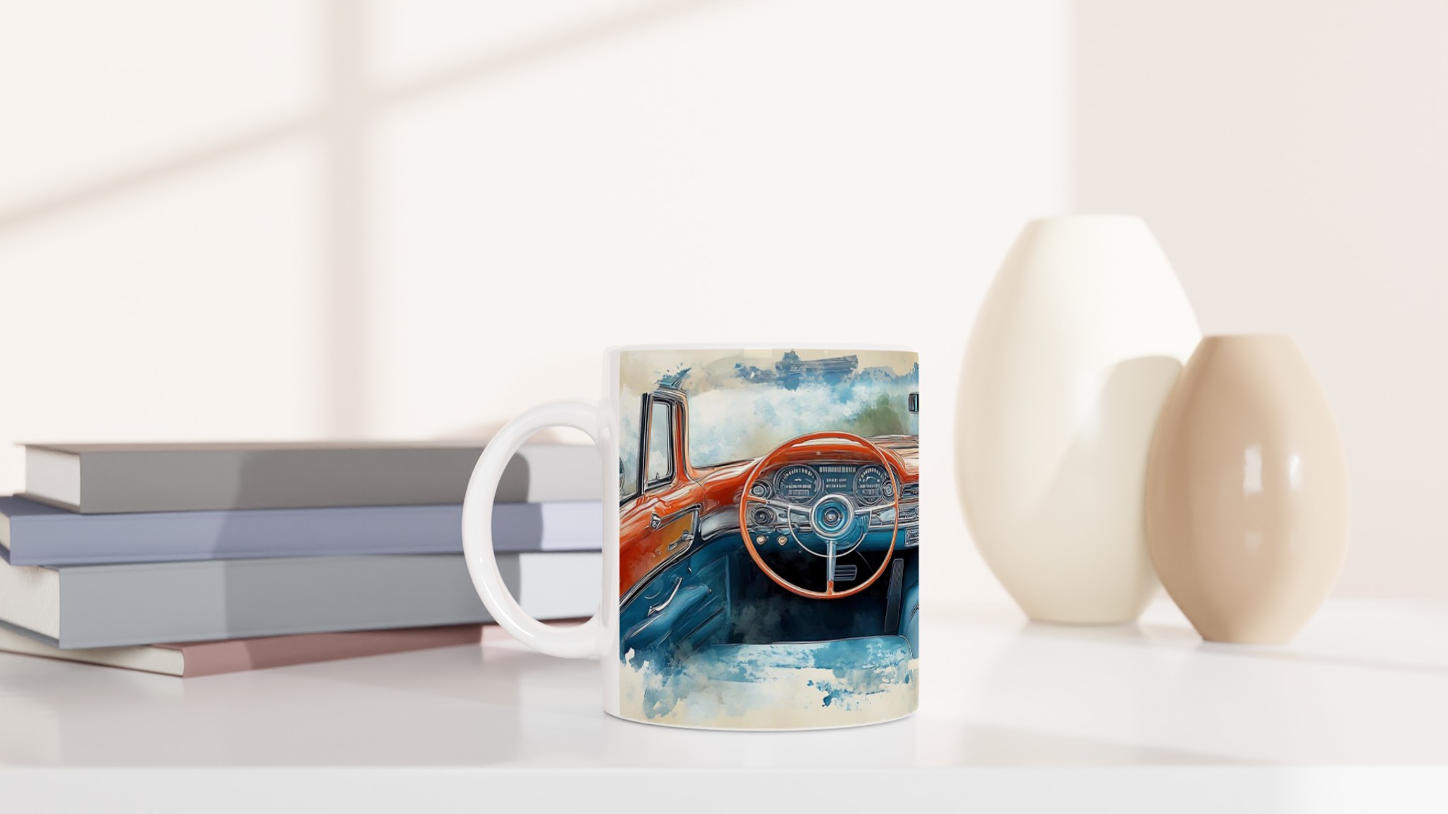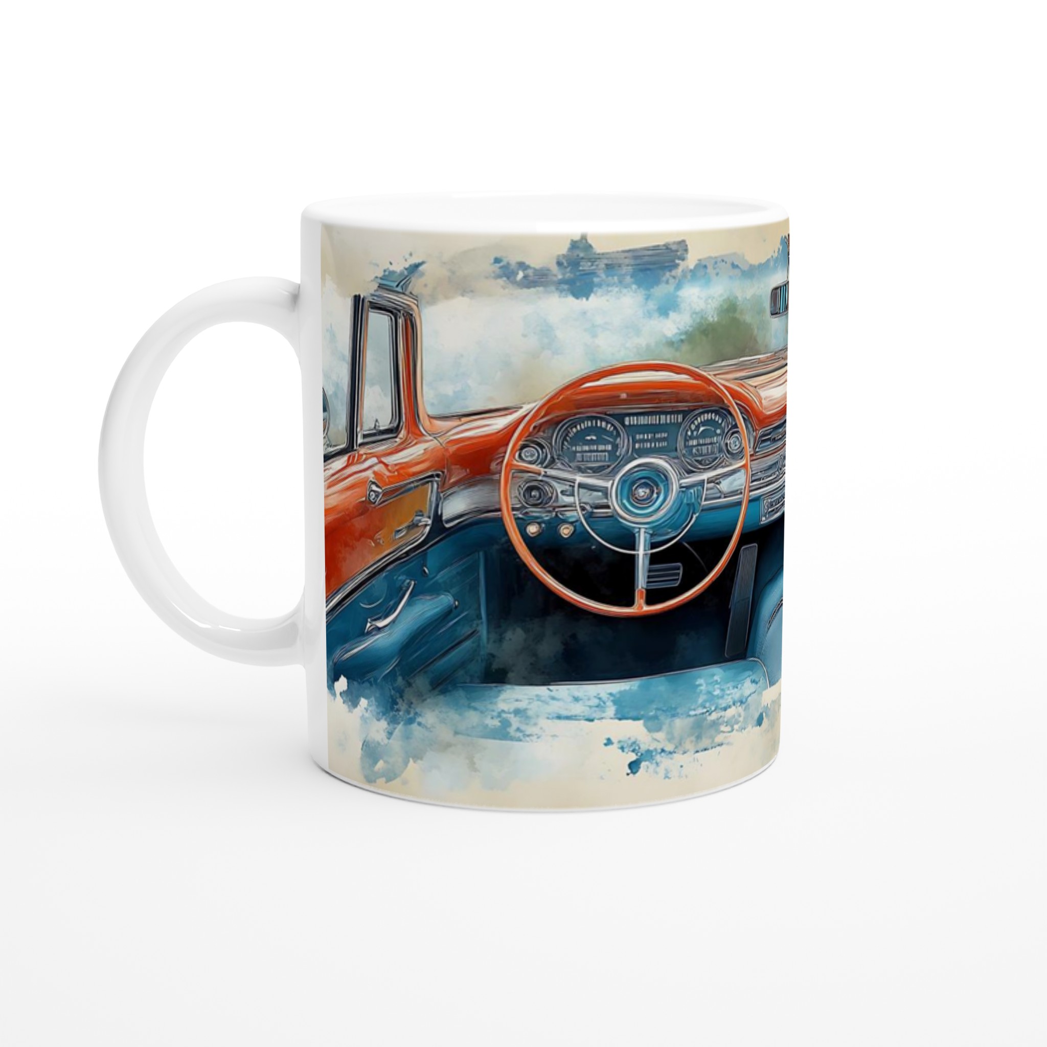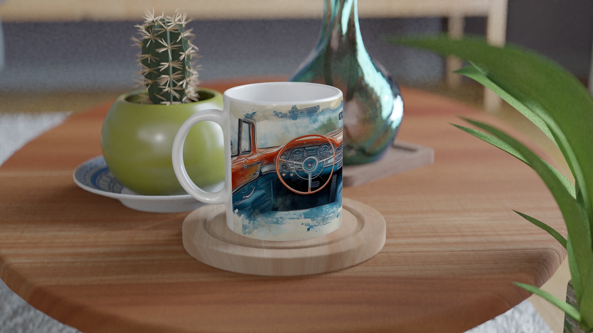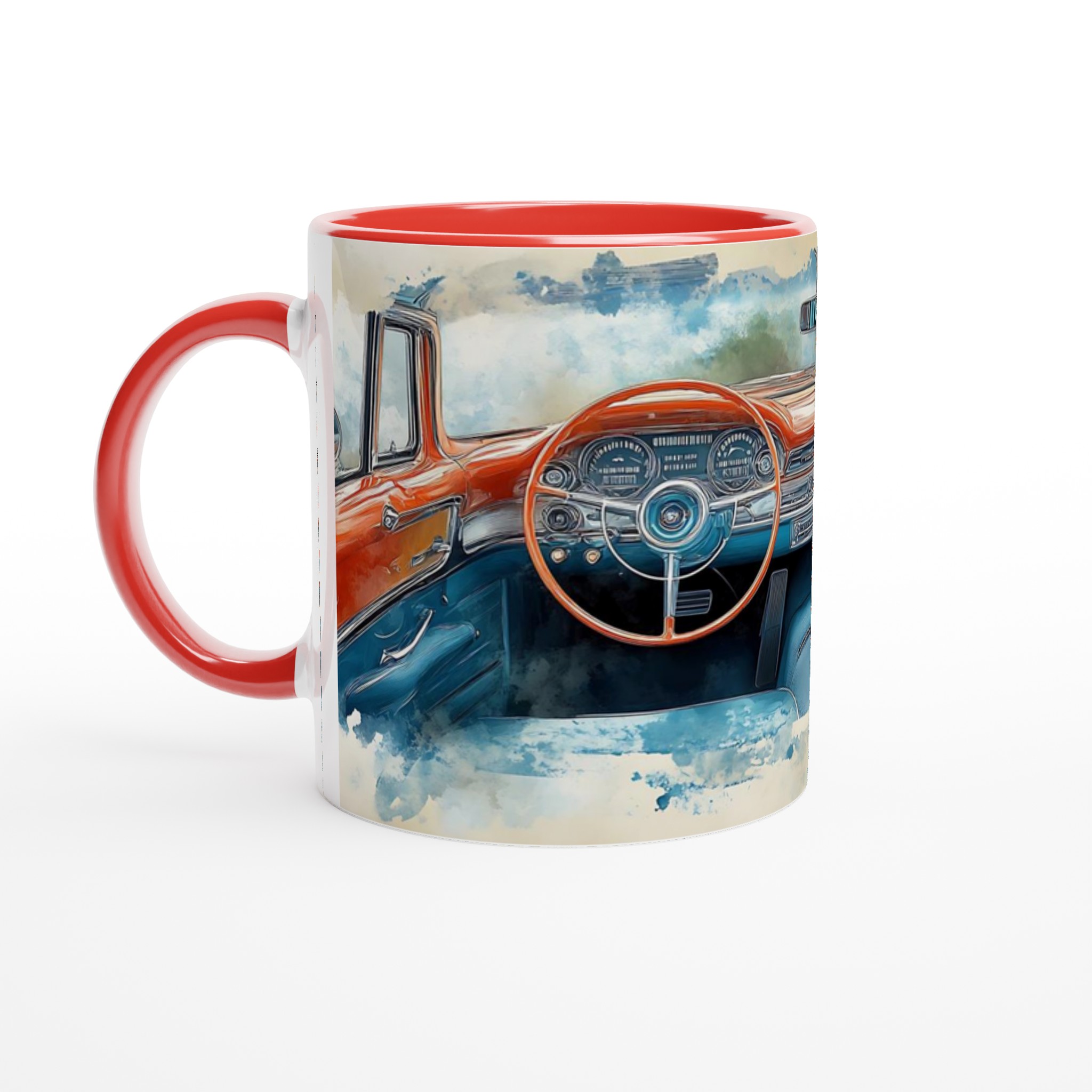 Retro Road Trip – Watercolor Classic Car Ceramic Mug 11oz – Your Choice of 7 Vibrant Colors!