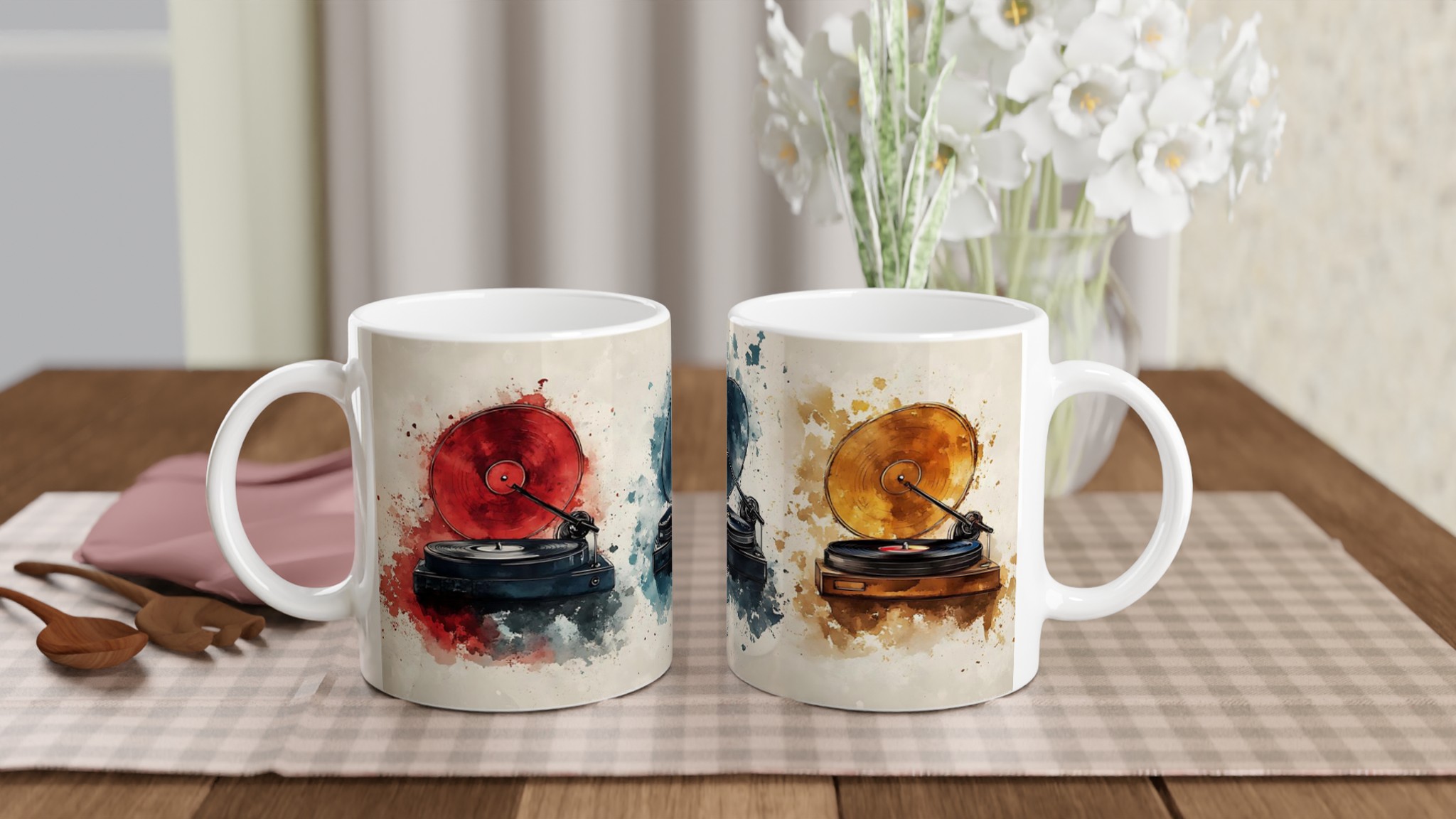 Vinyl Vibes Watercolor – Ceramic Mug 11oz, in your choice of seven vibrant shades