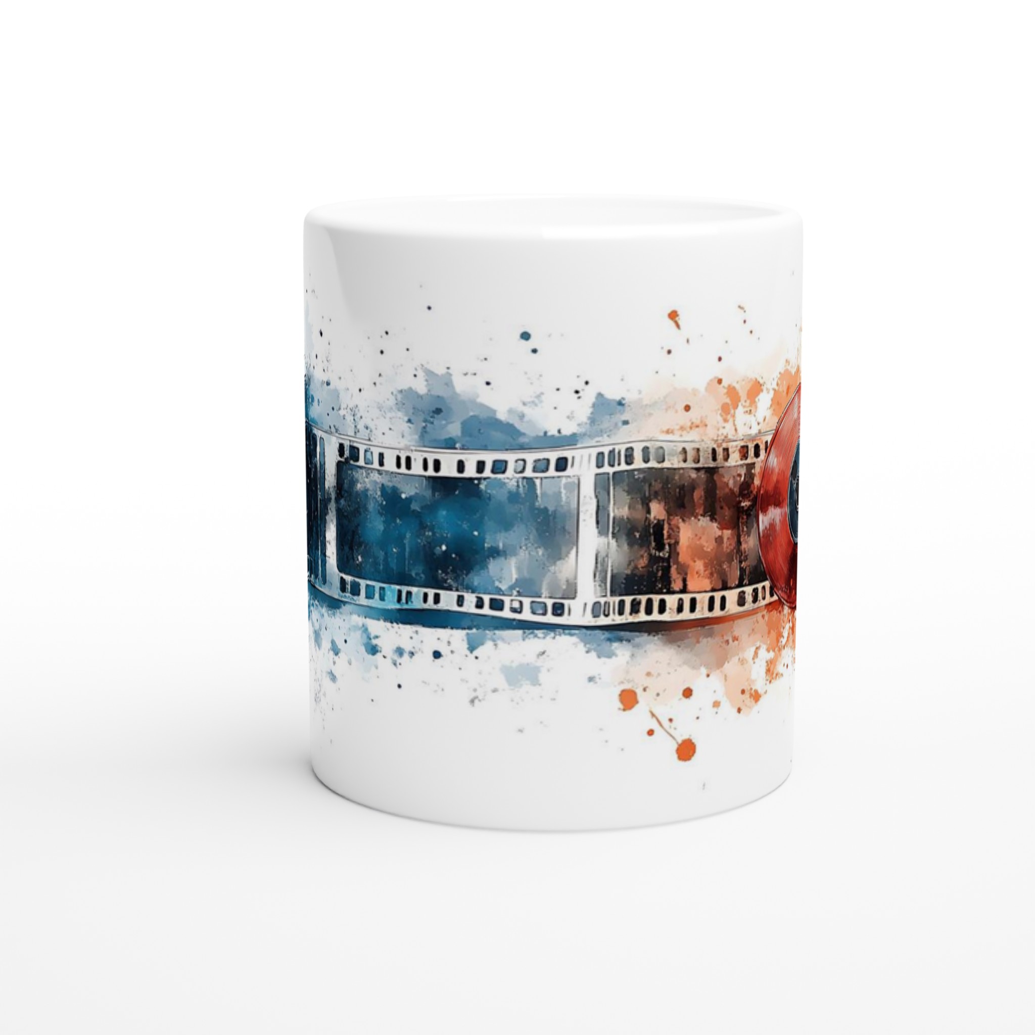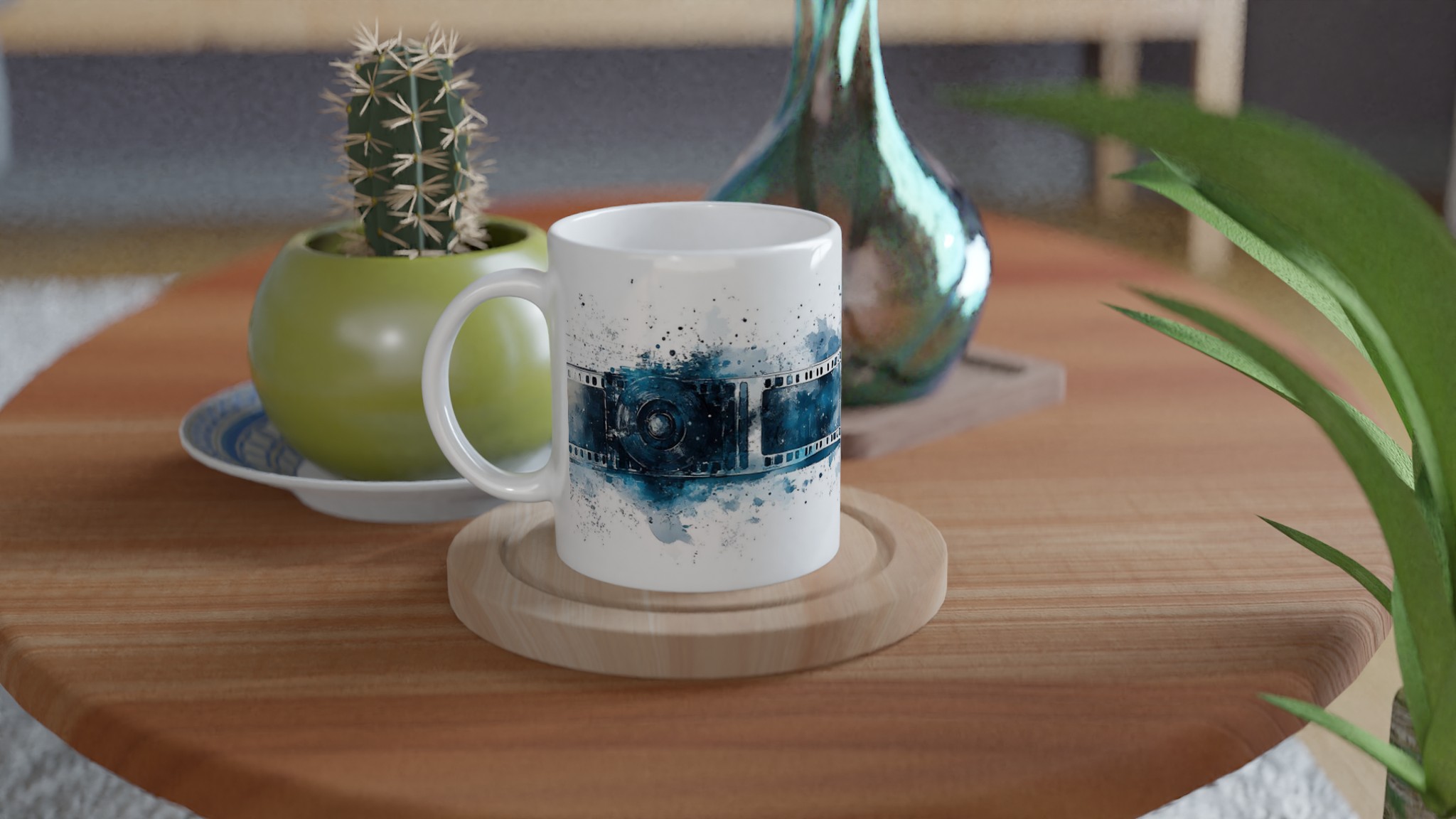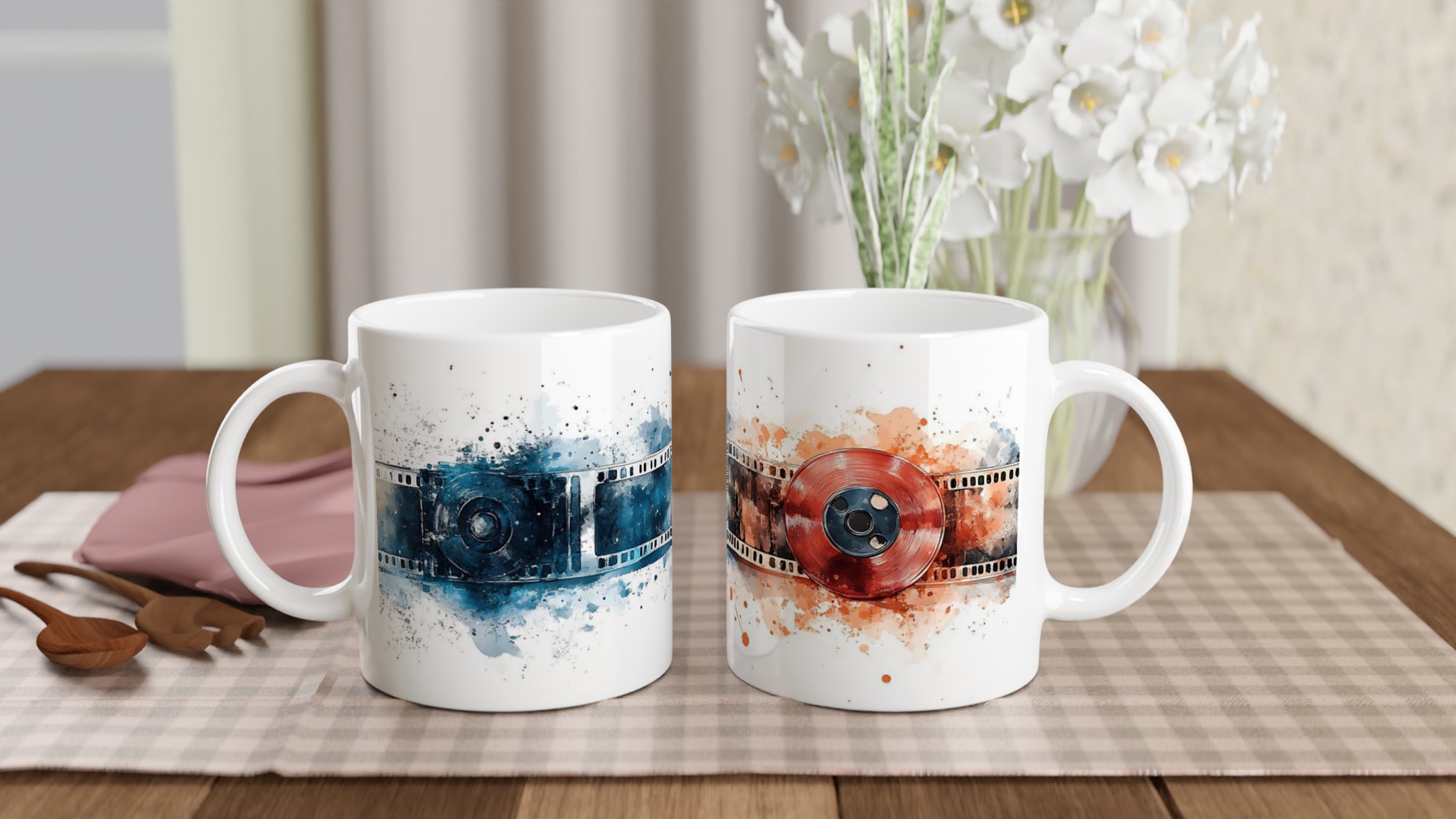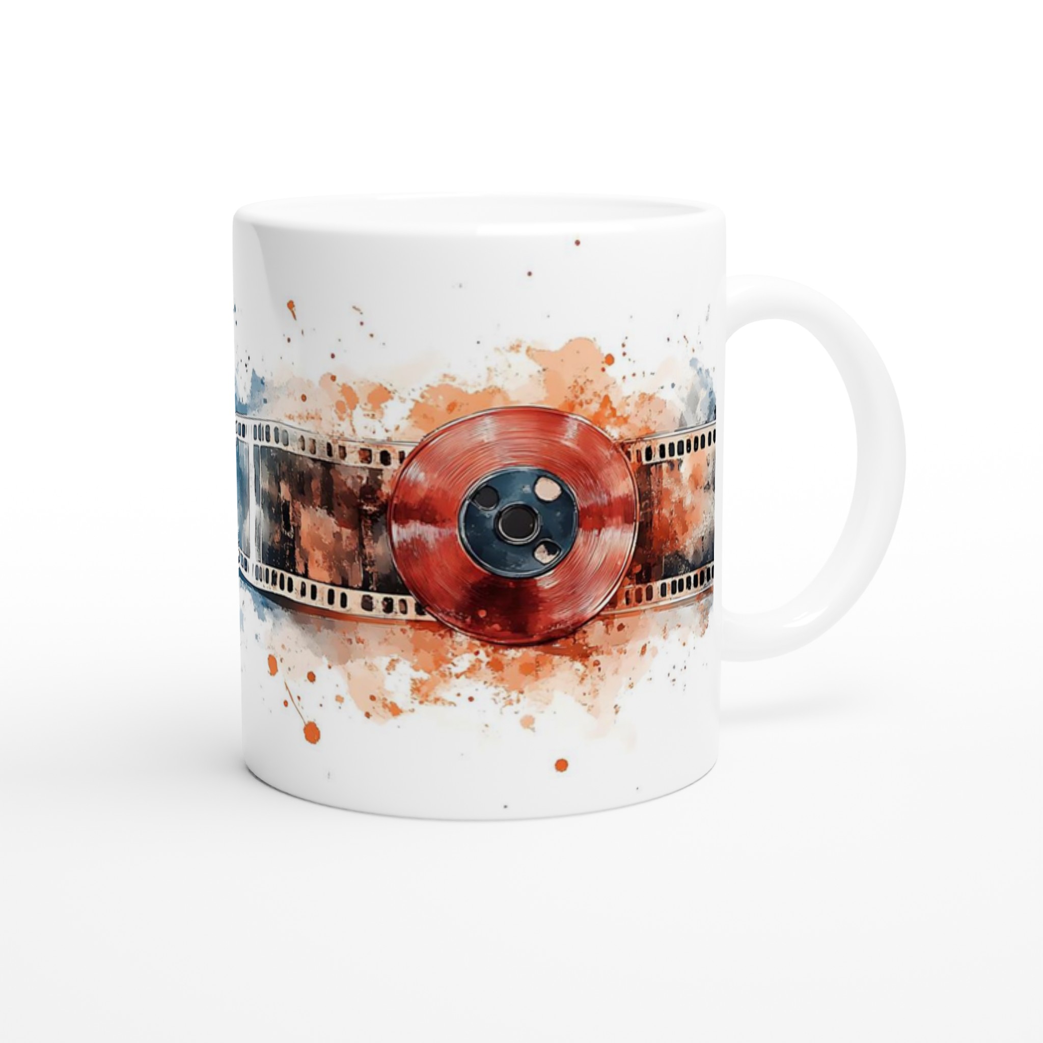 Vintage Film Reel Watercolor Mug – Nostalgic Ceramic 11oz Cup in Your Favorite Hue