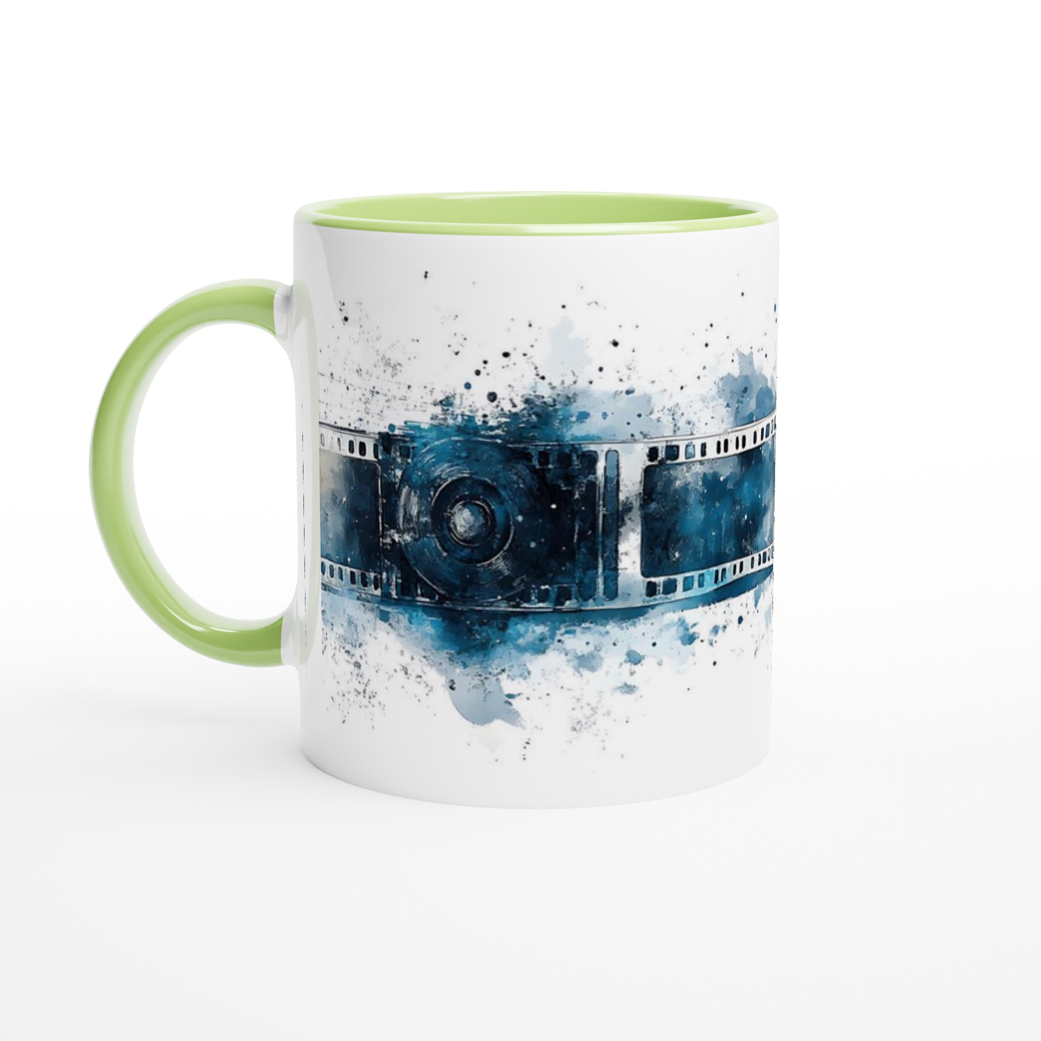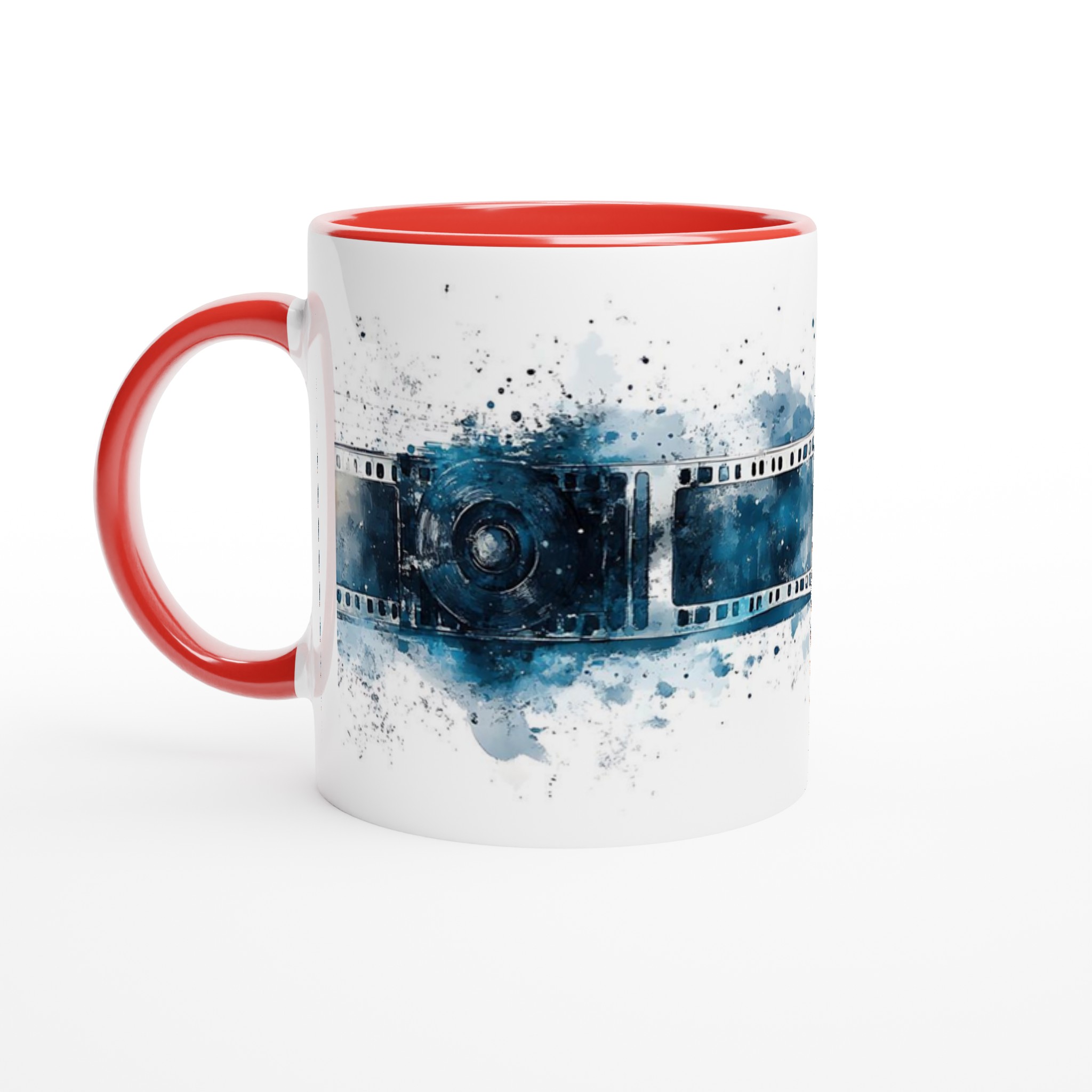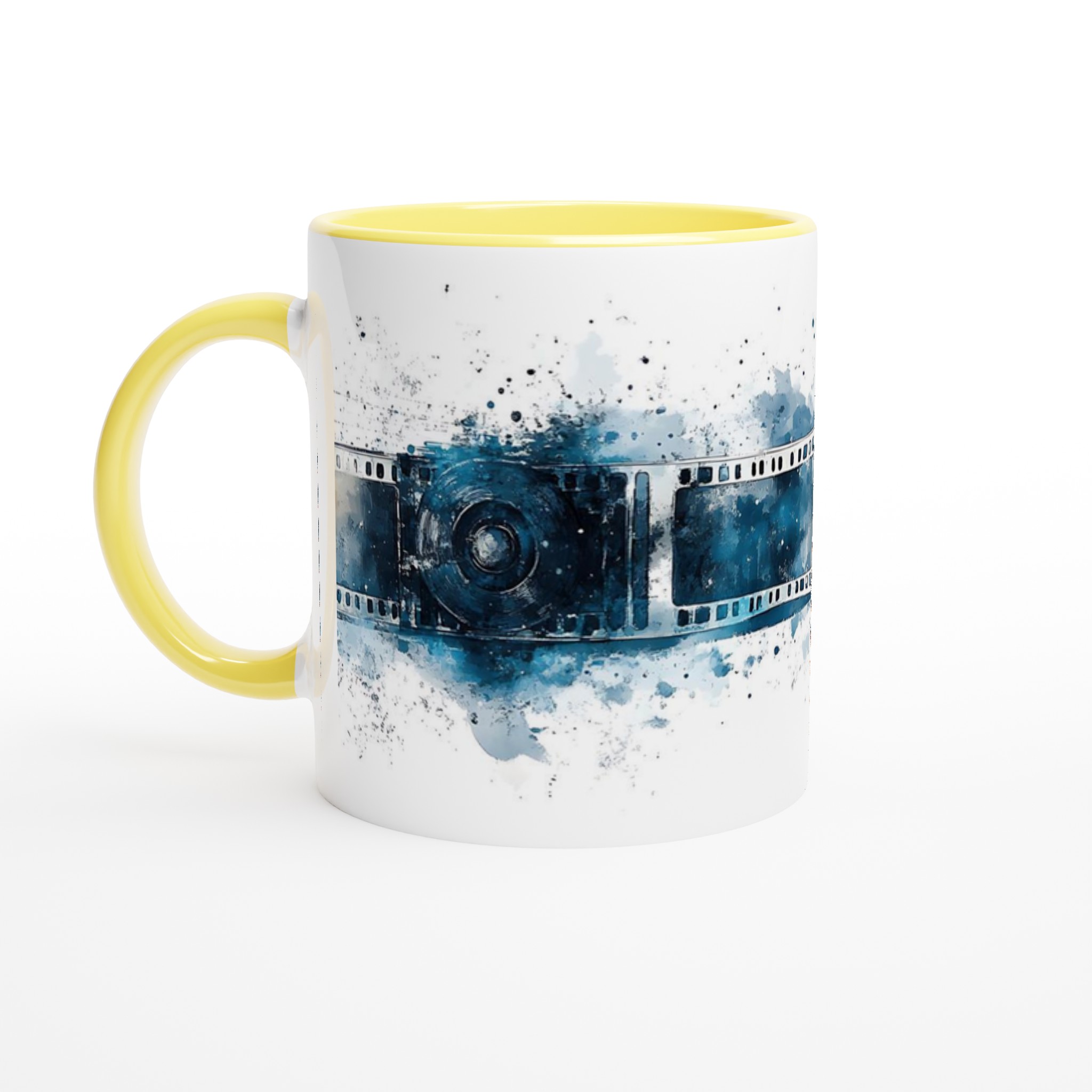 Vintage Film Reel Watercolor Mug – Nostalgic Ceramic 11oz Cup in Your Favorite Hue