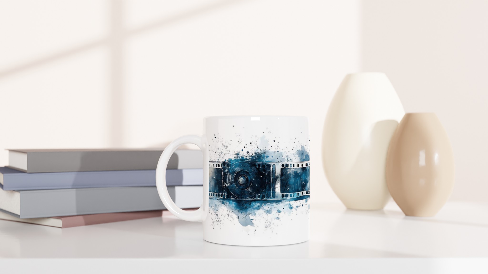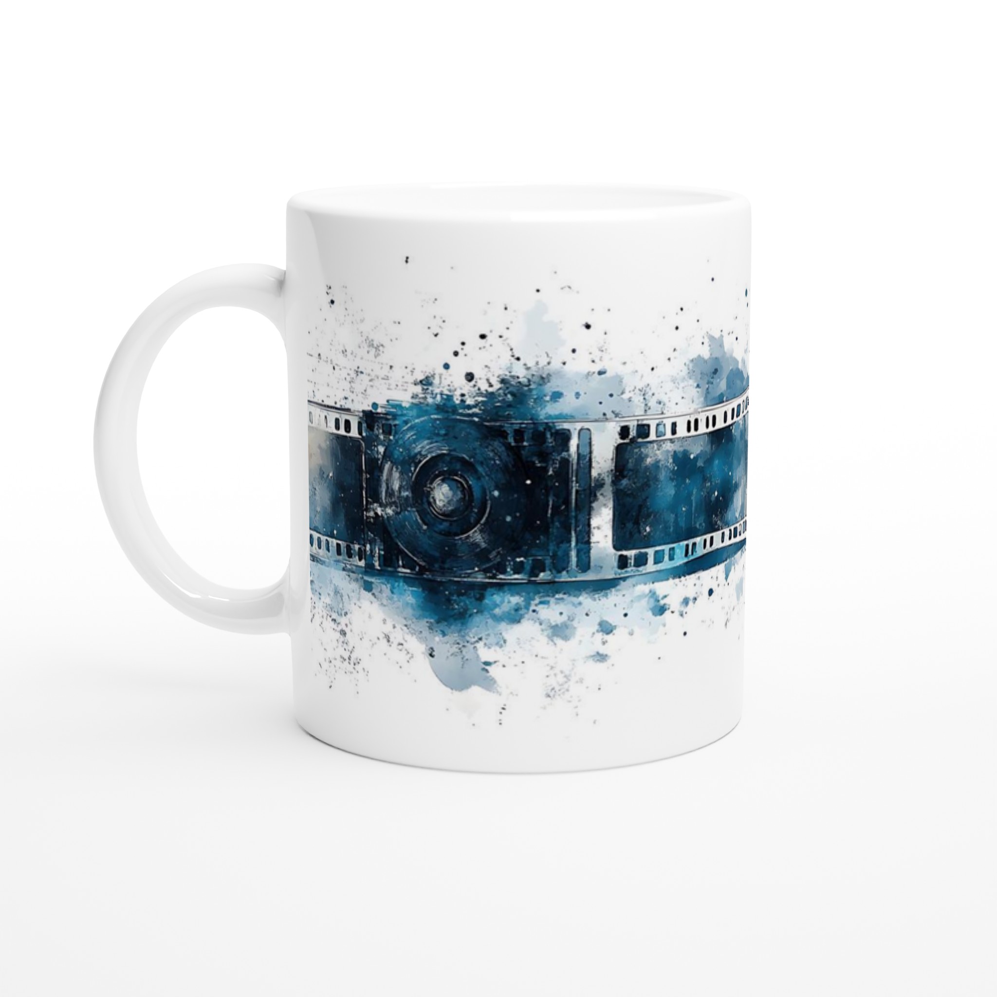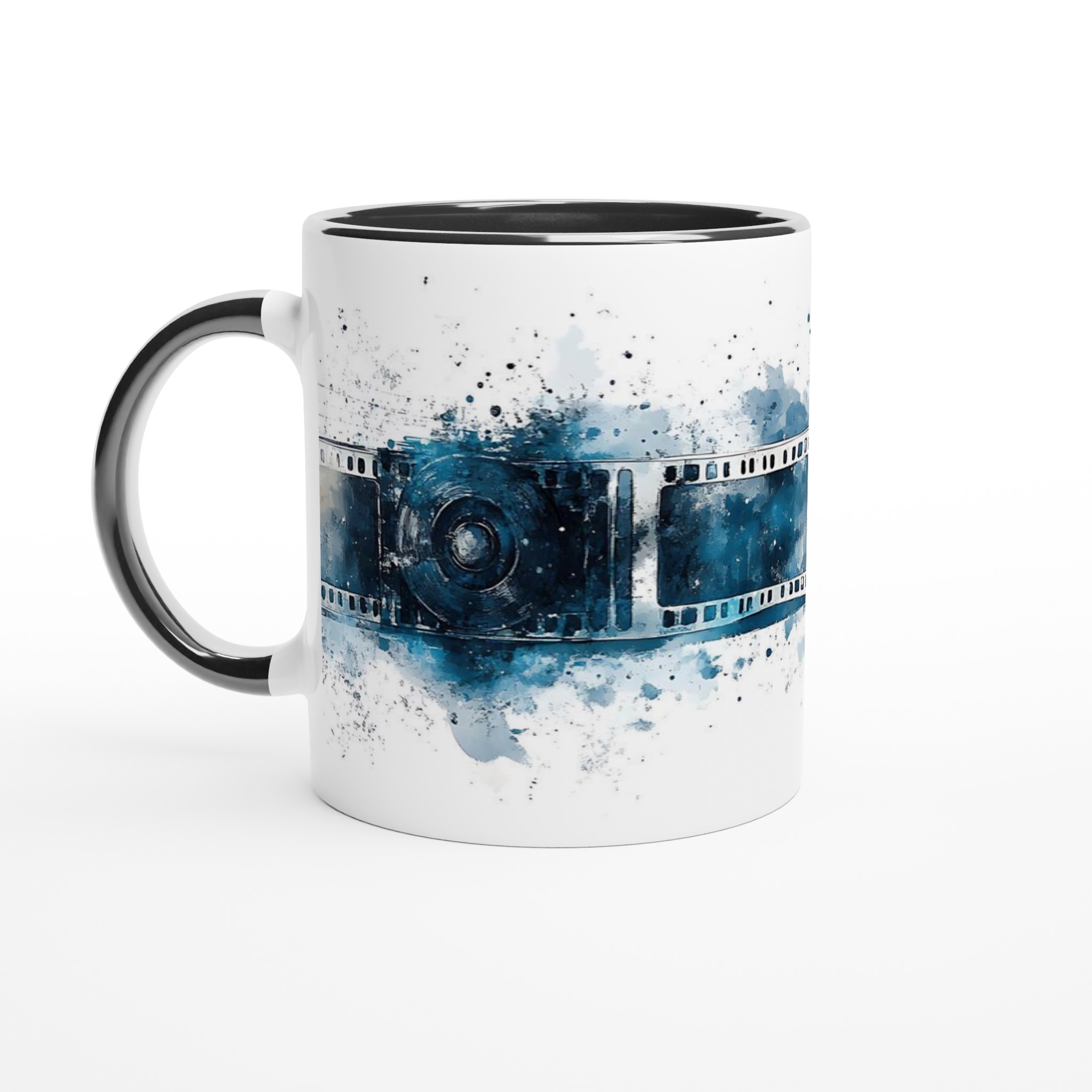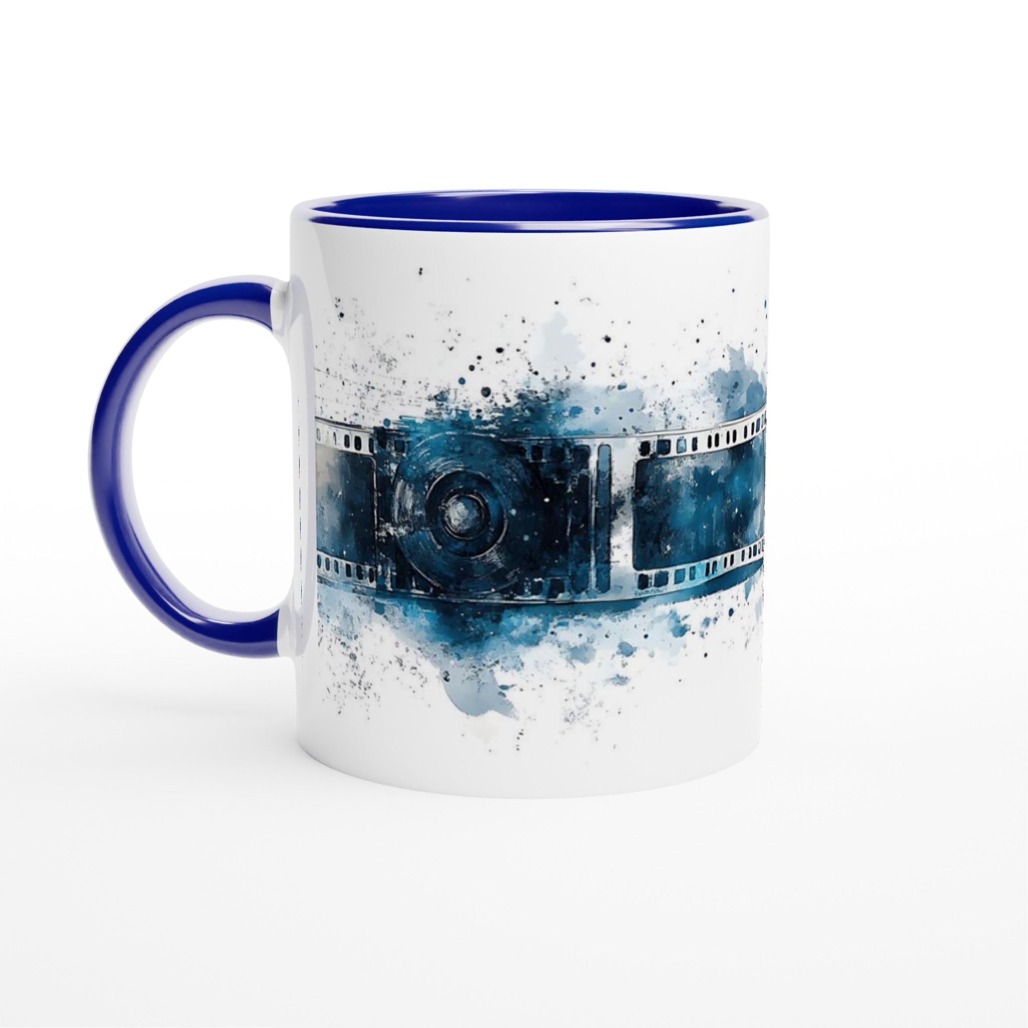 Vintage Film Reel Watercolor Mug – Nostalgic Ceramic 11oz Cup in Your Favorite Hue