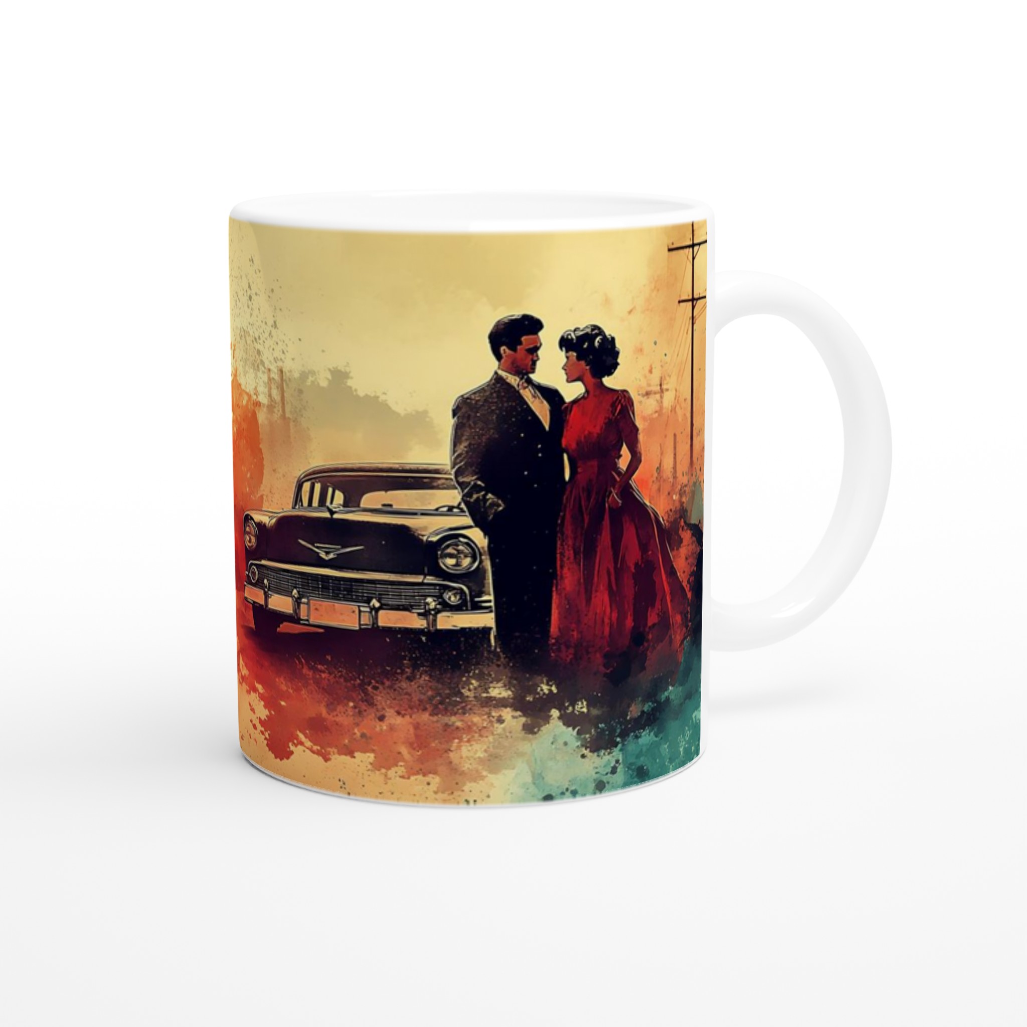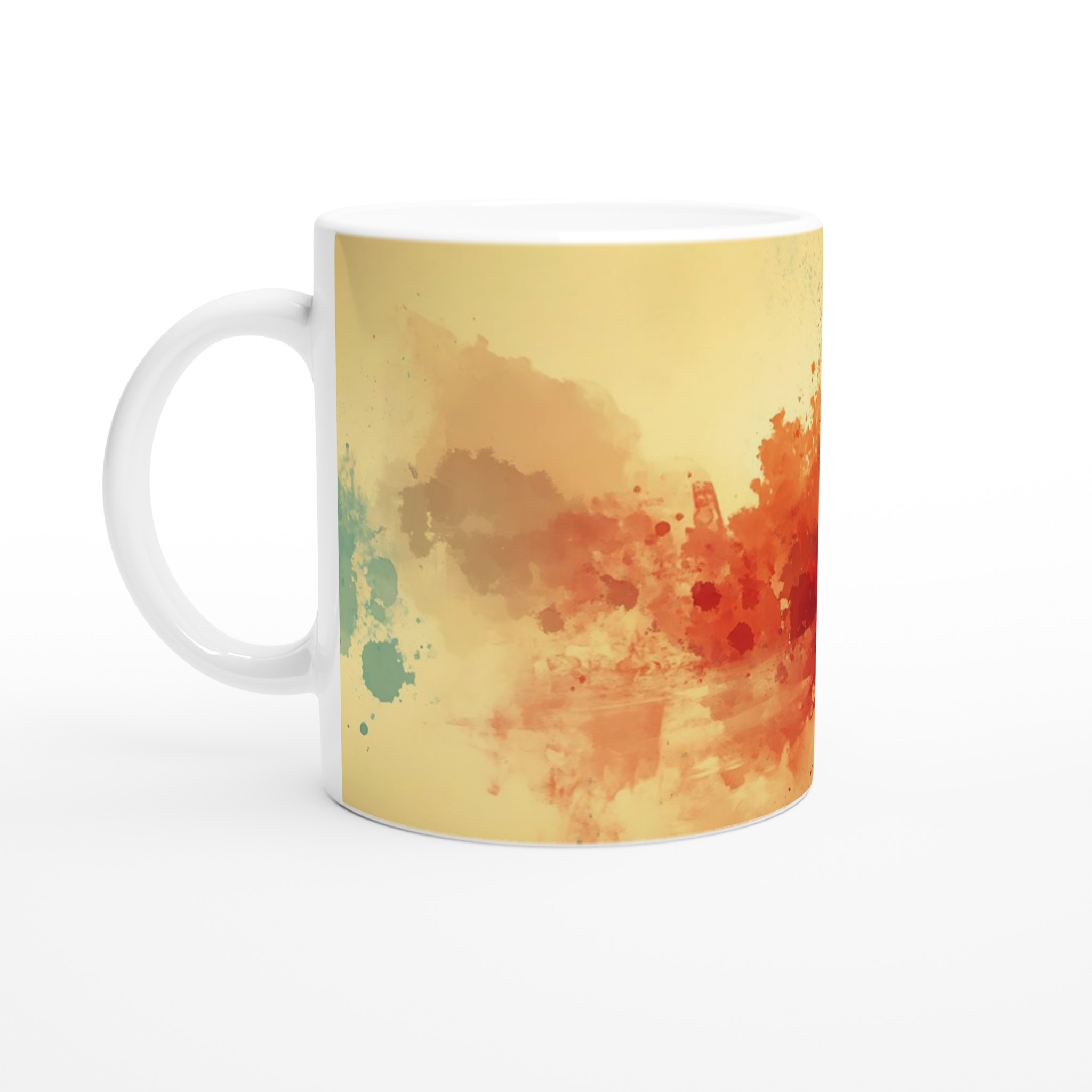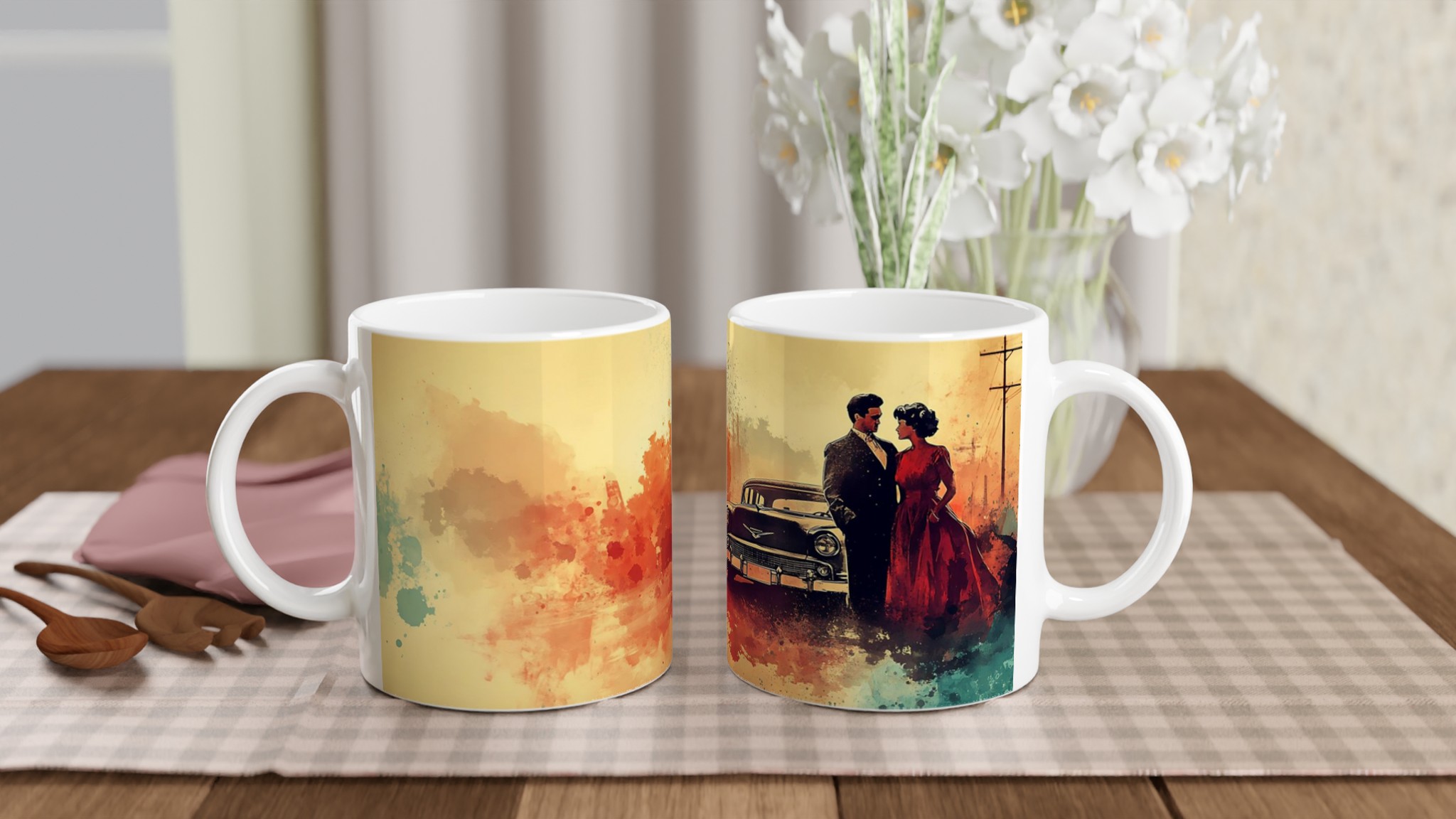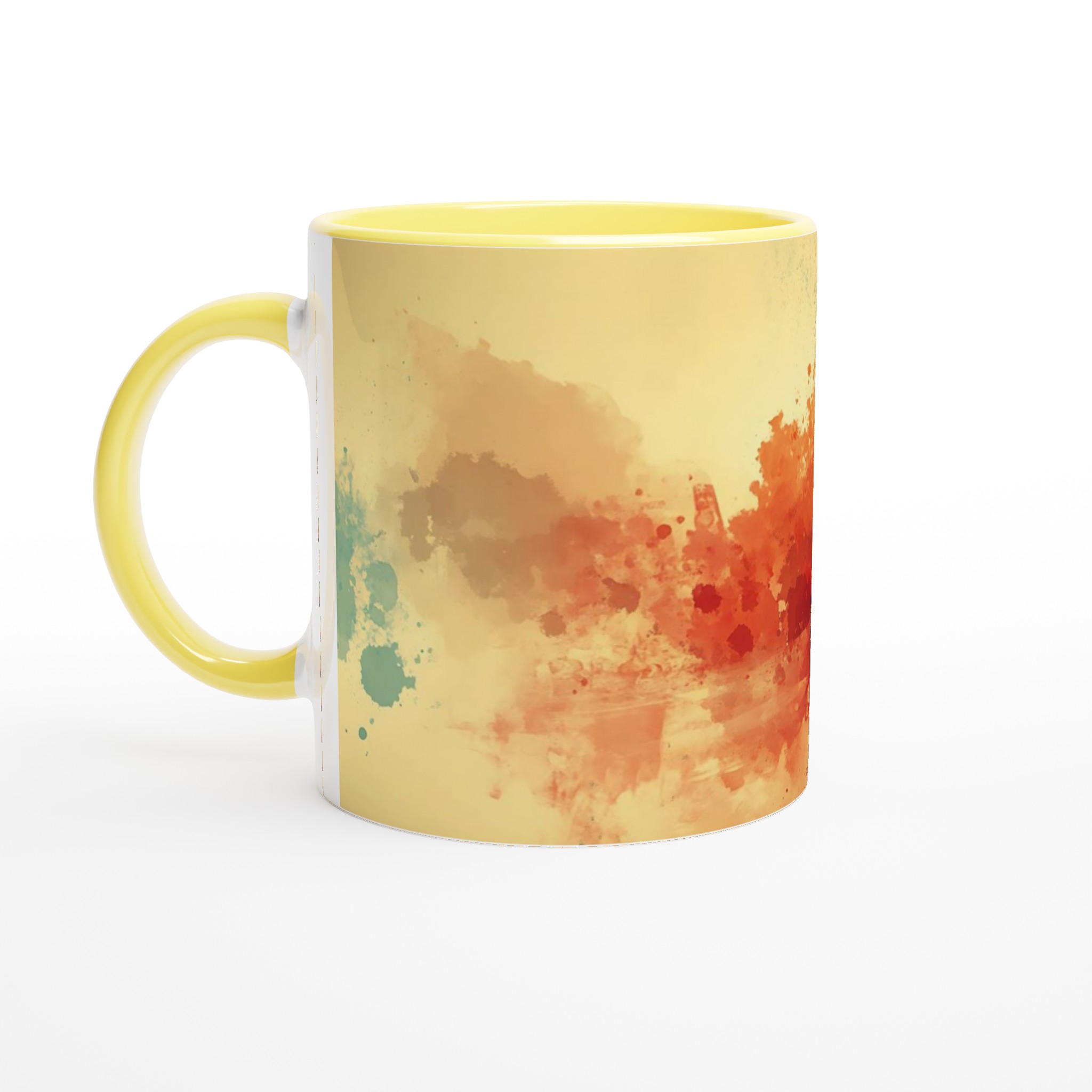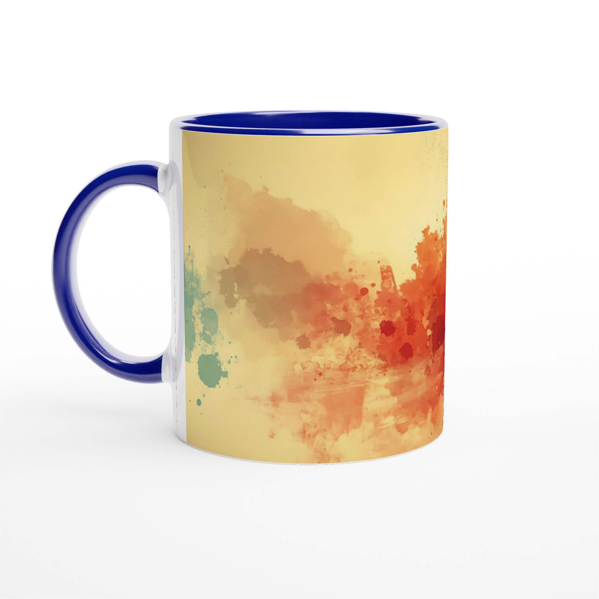 Retro Romance 11oz Ceramic Mug – Vibrant Watercolor Art in Your Choice of Seven Hues