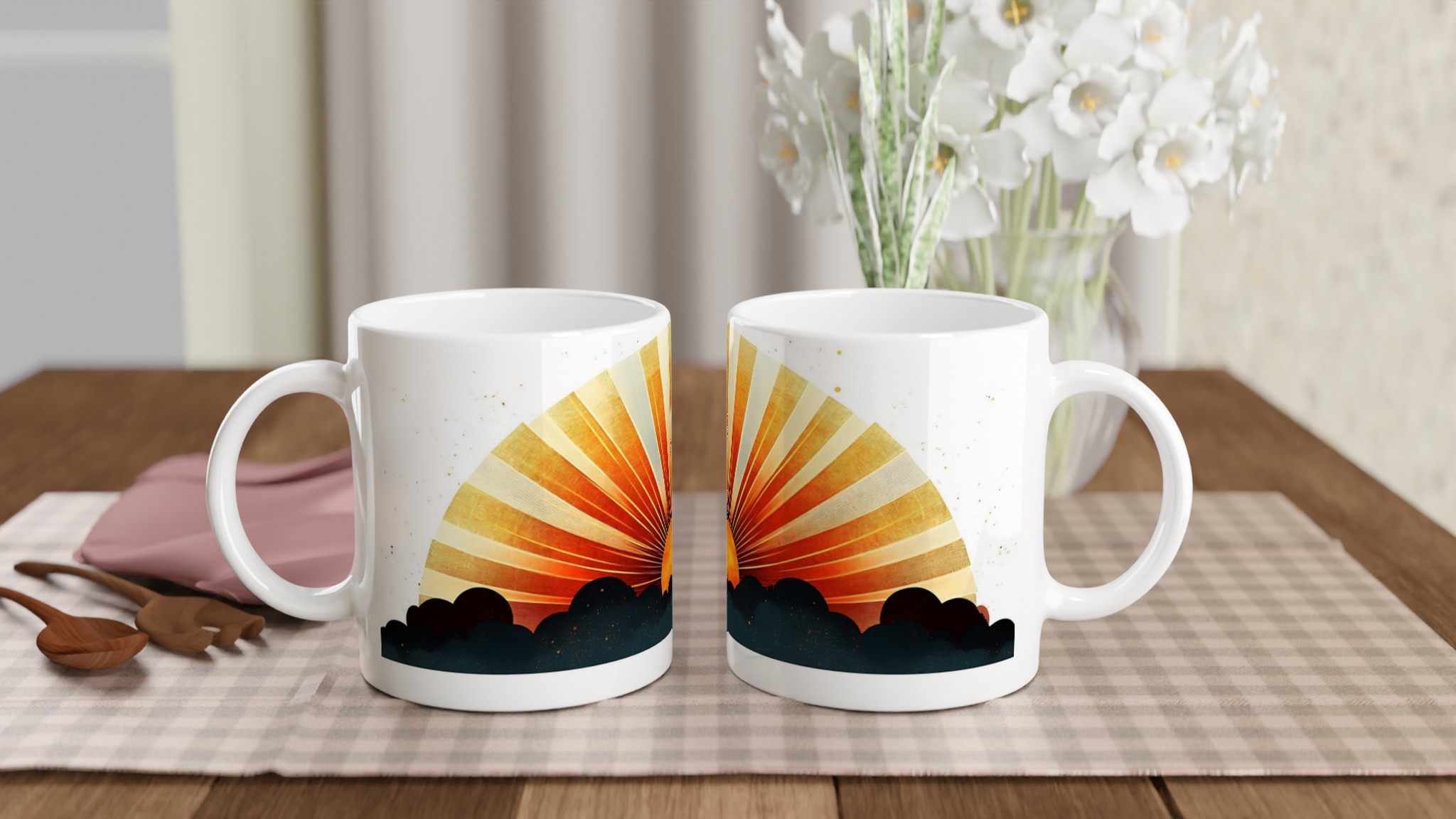 Golden Sunrise Horizon – White Ceramic Mug 11oz: Your Daily Dose of Inspiration