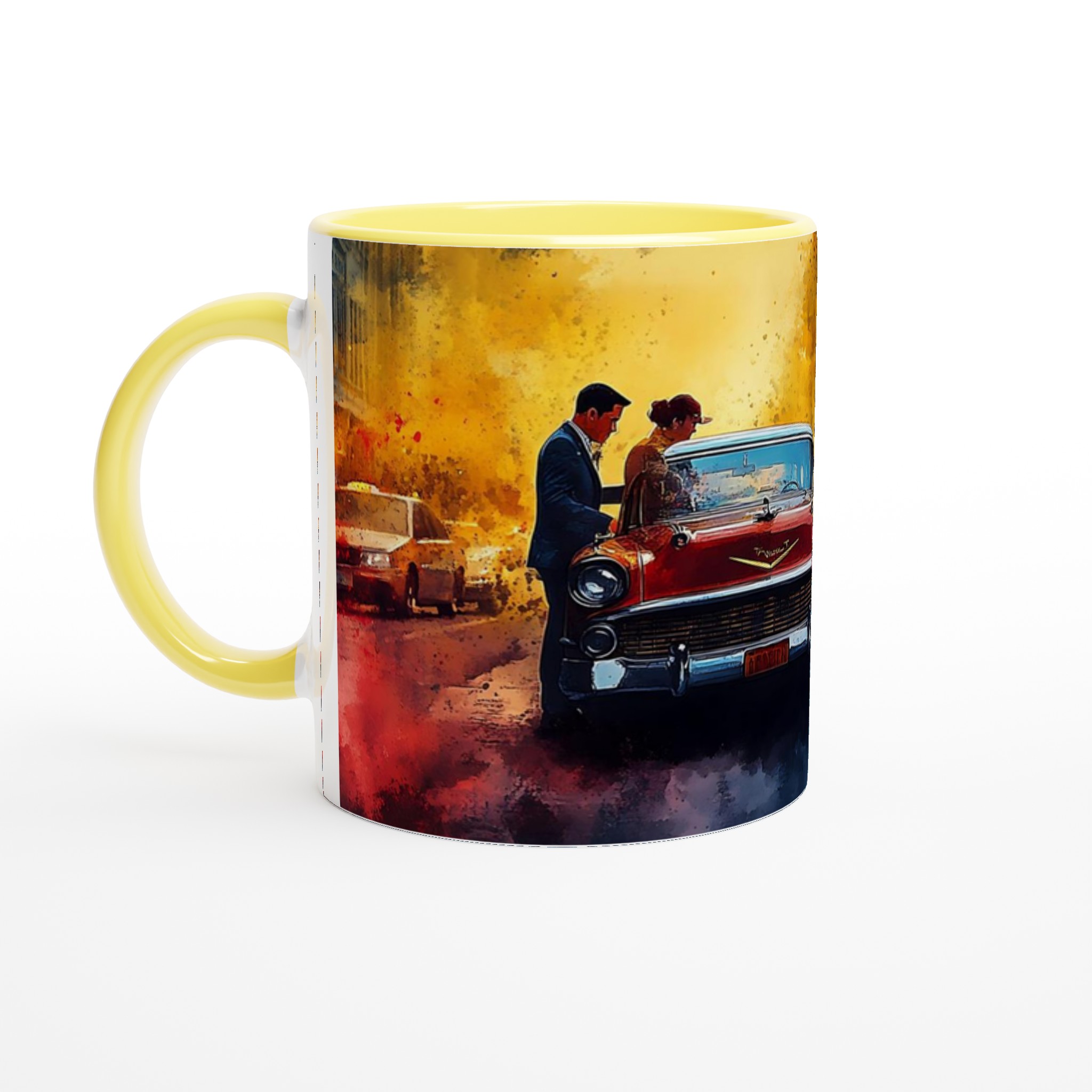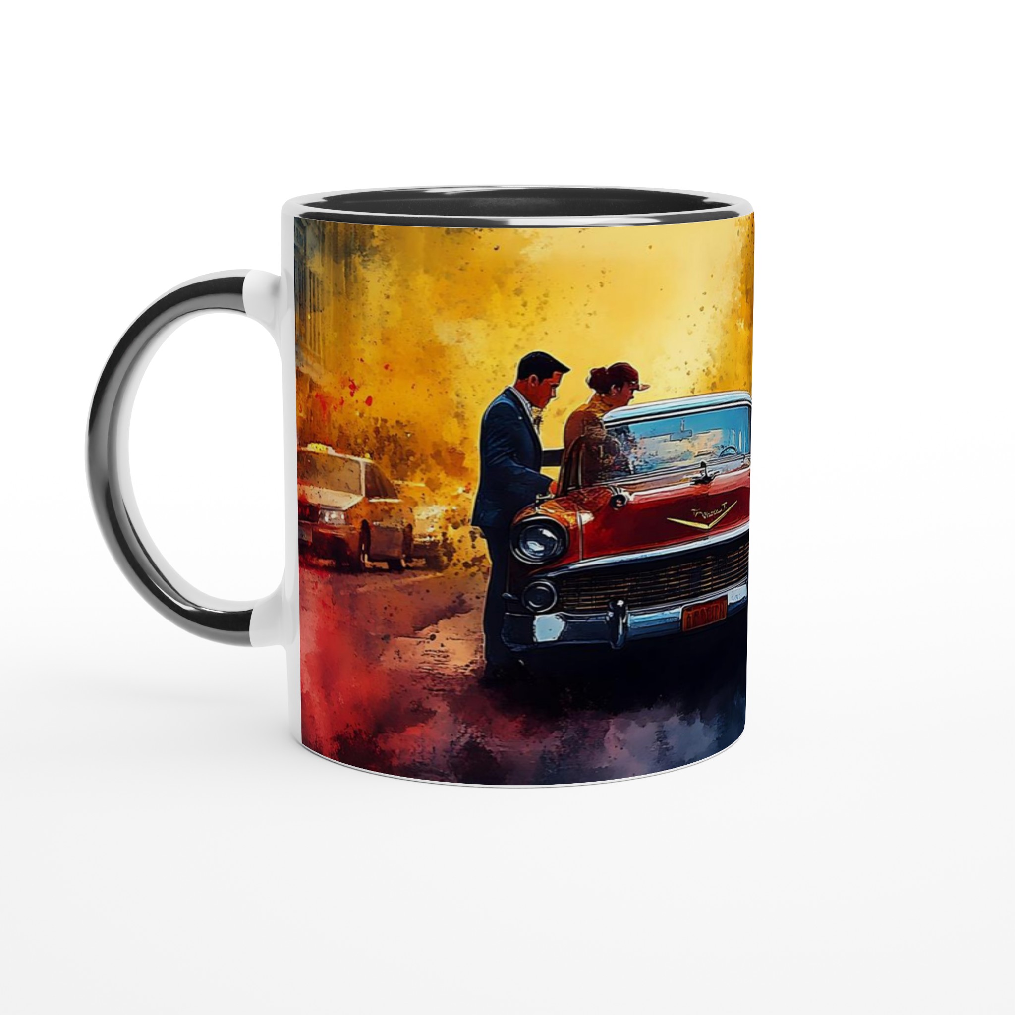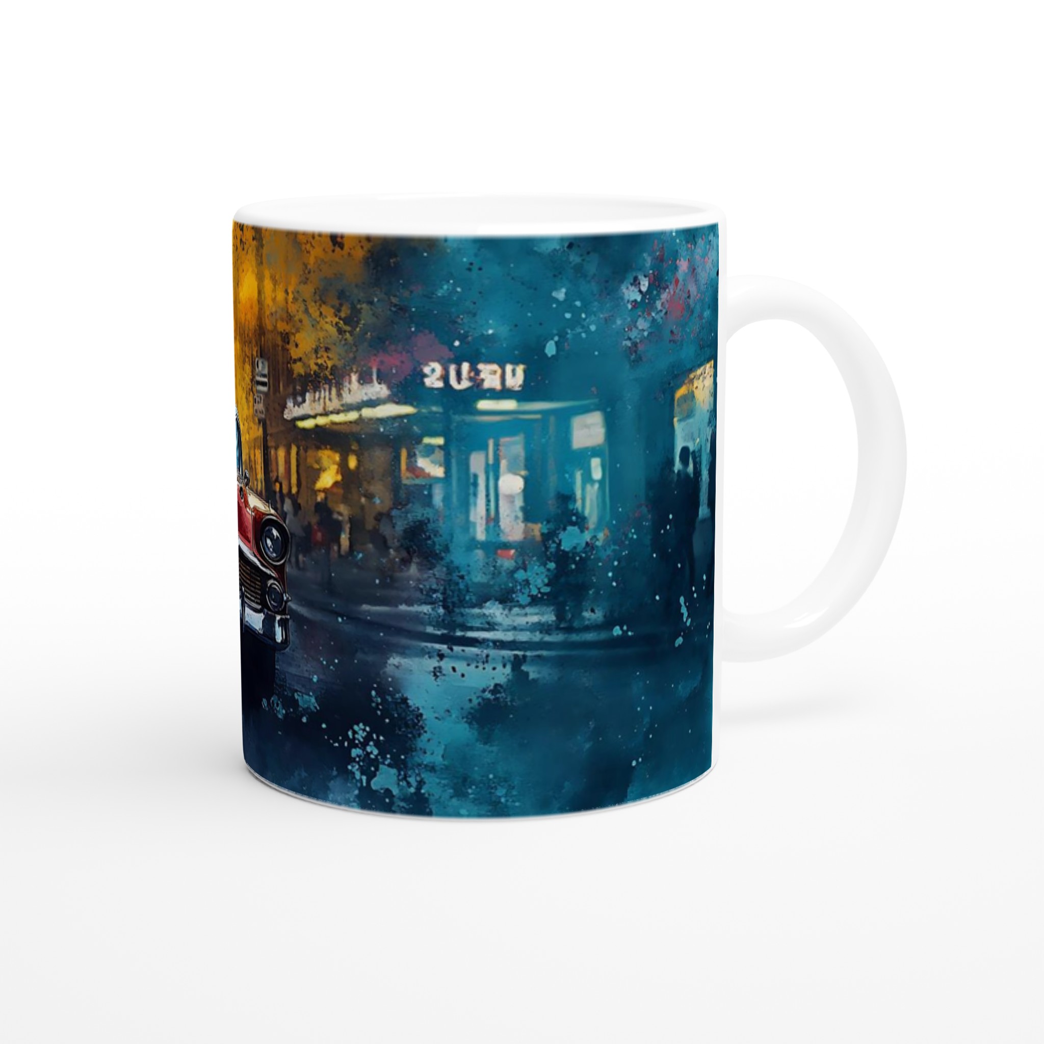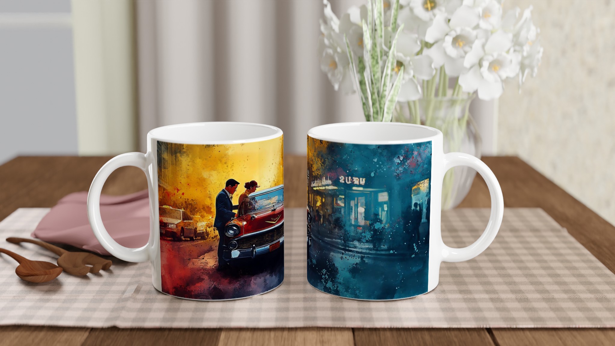 Retro Romance Cityscape Ceramic Mug 11oz – A Pop of Mid-Century Charm in Seven Vibrant Colors