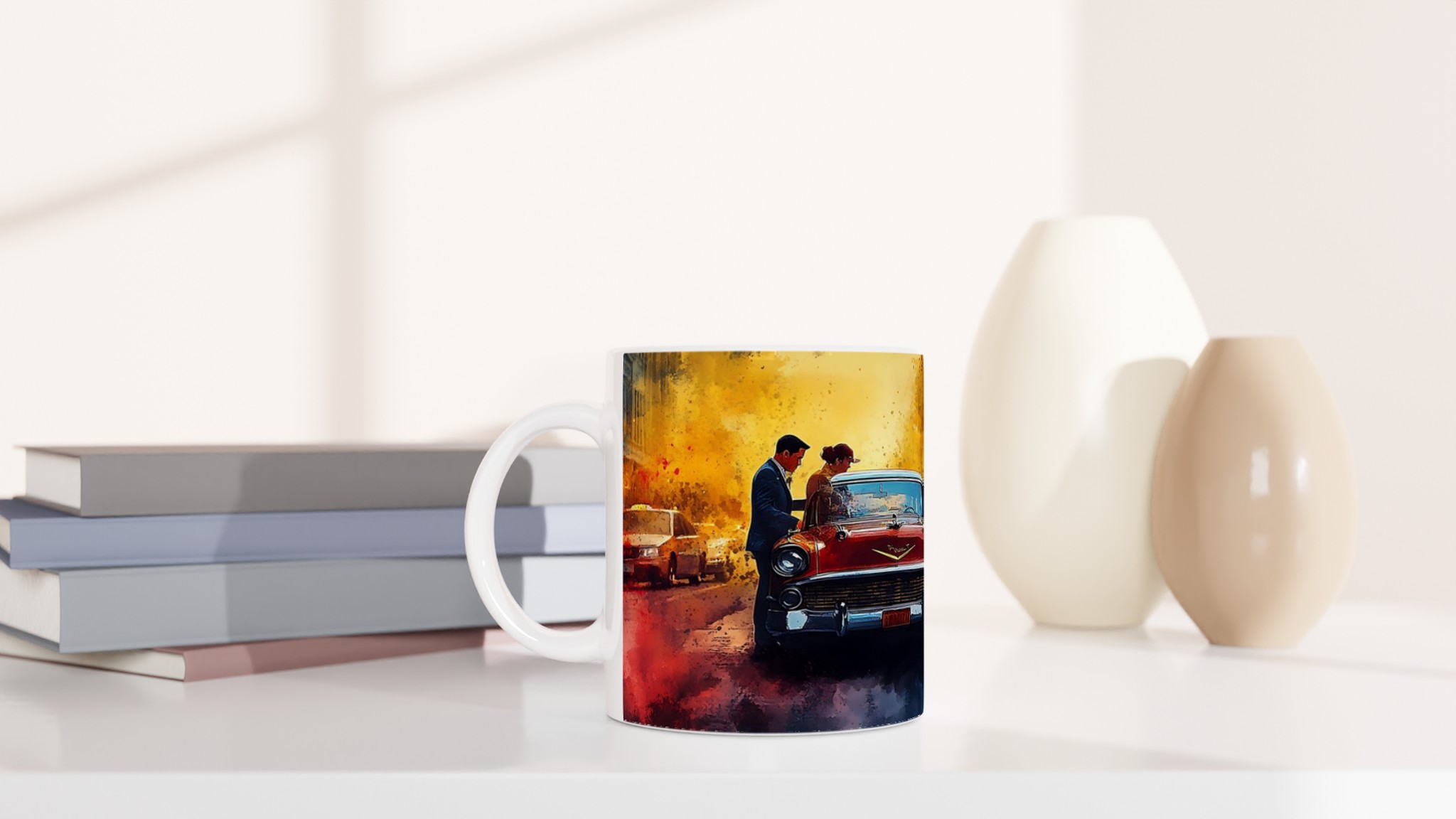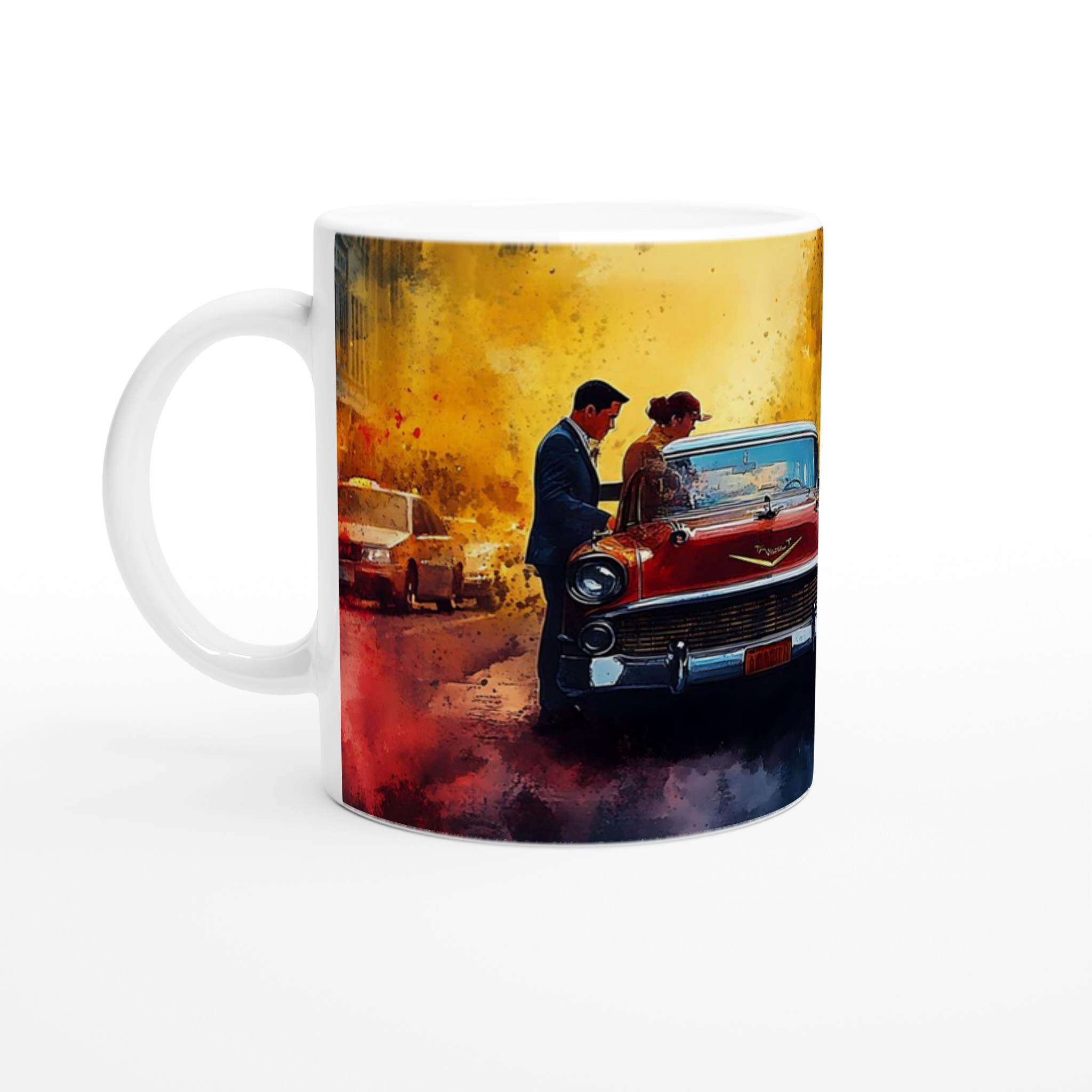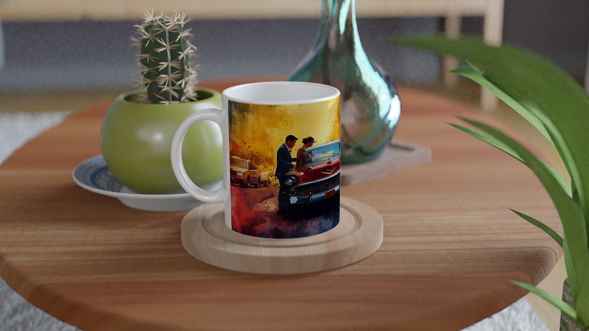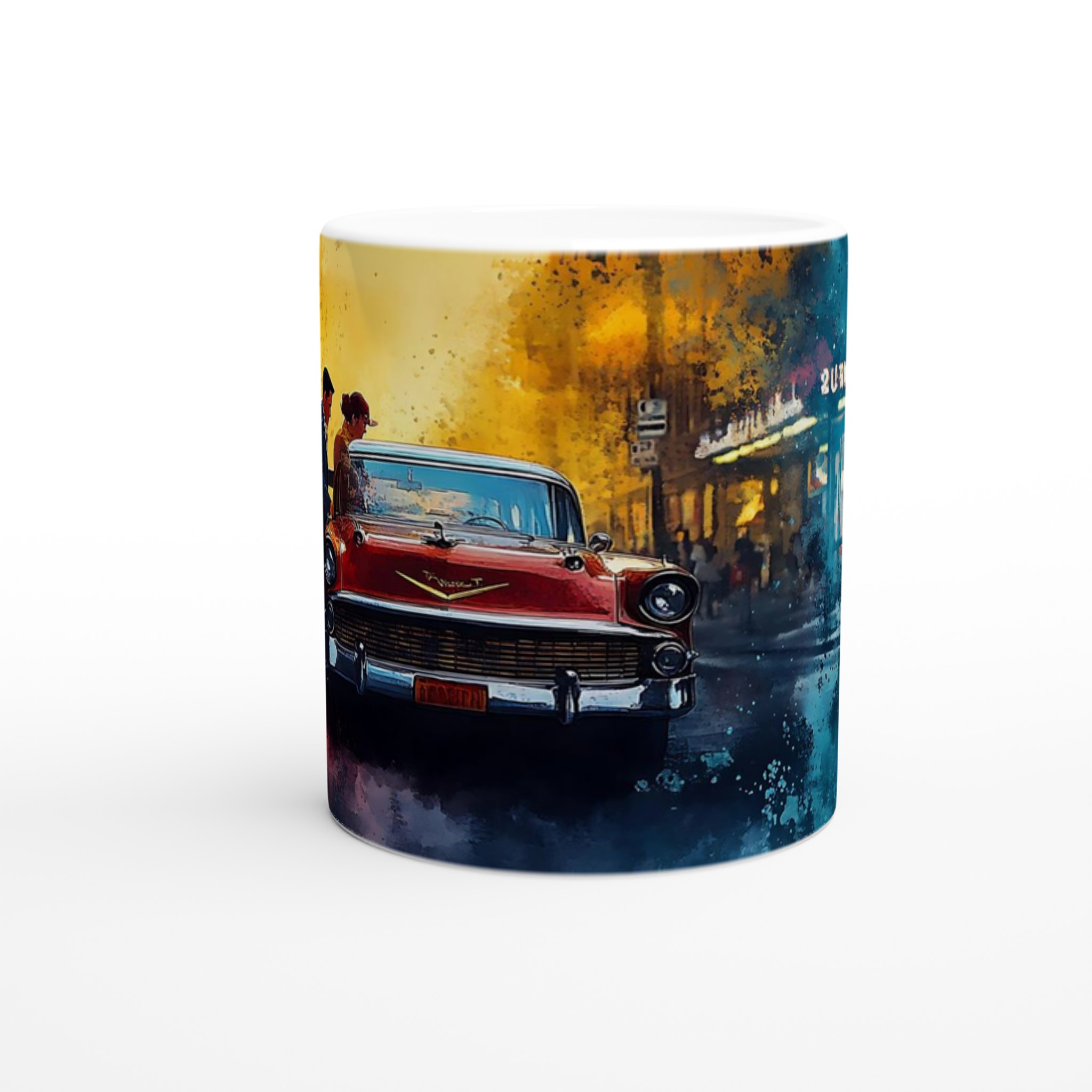 Retro Romance Cityscape Ceramic Mug 11oz – A Pop of Mid-Century Charm in Seven Vibrant Colors