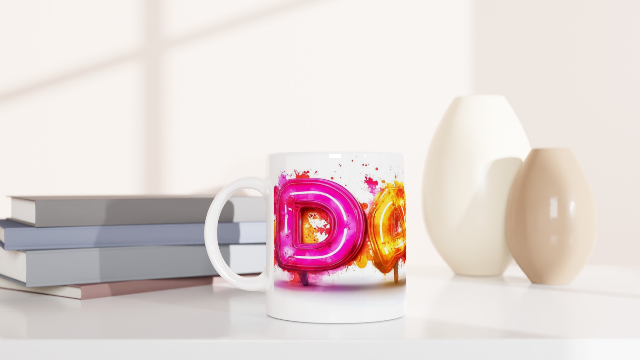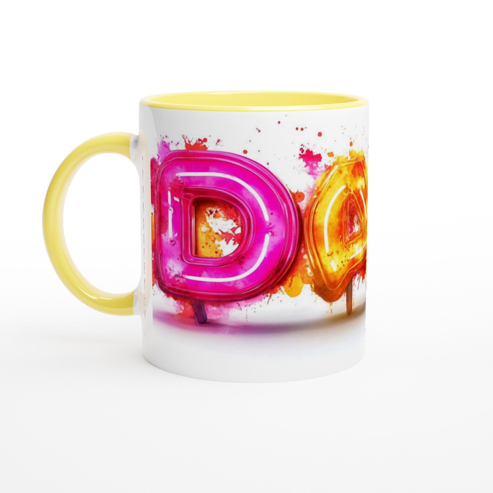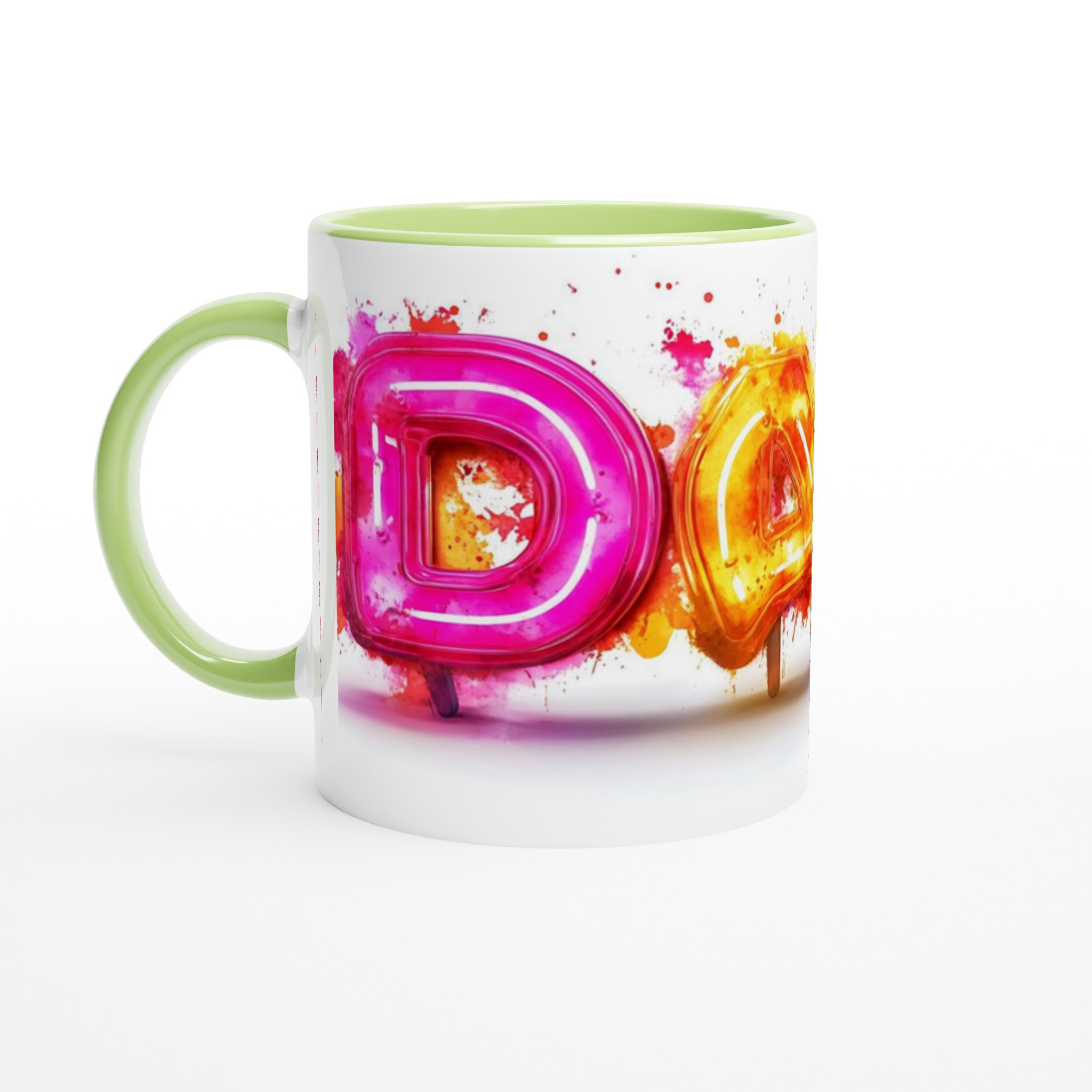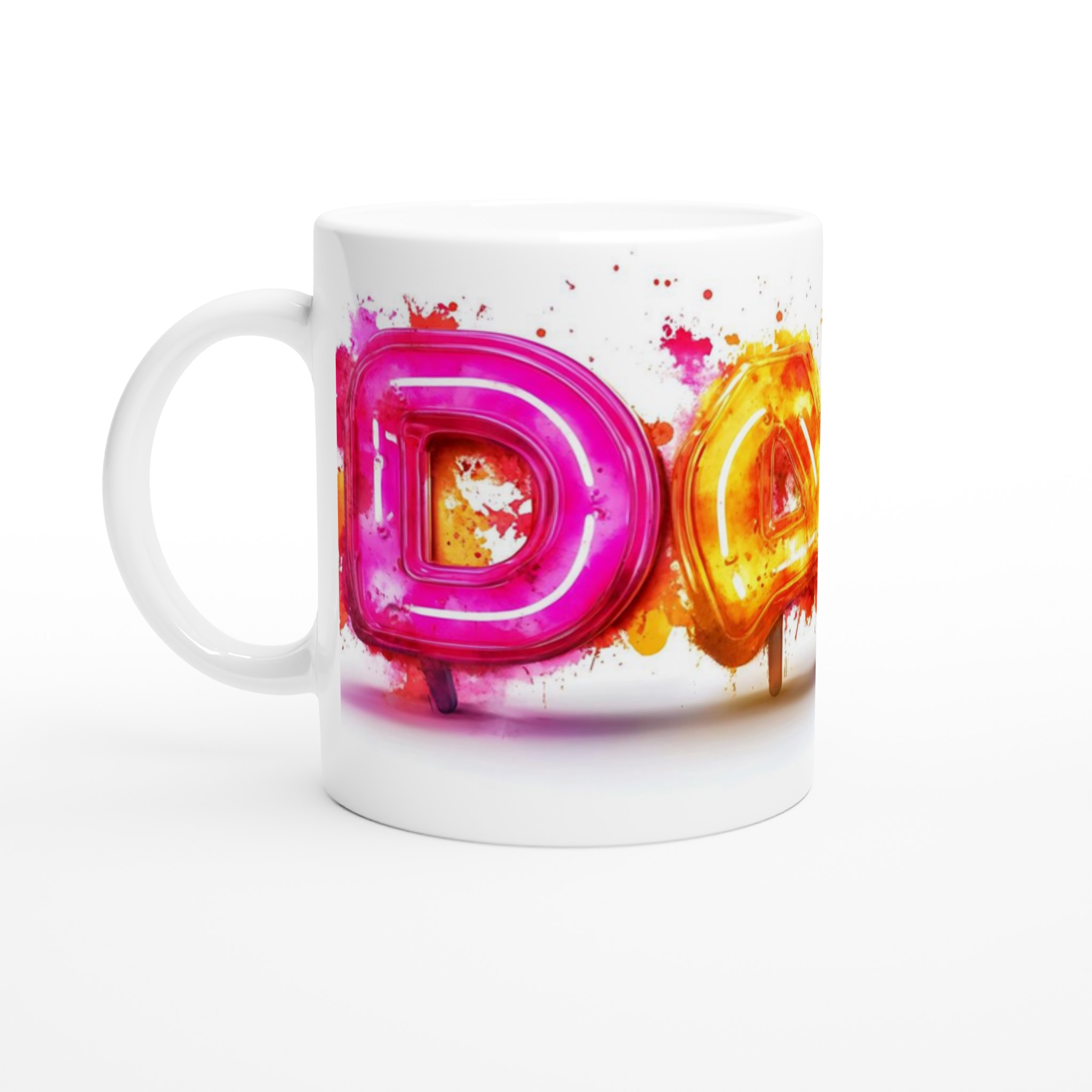 Vibrant Neon ‘DANCE’ Art Mug – White Ceramic 11oz, in your choice of seven electrifying colors!