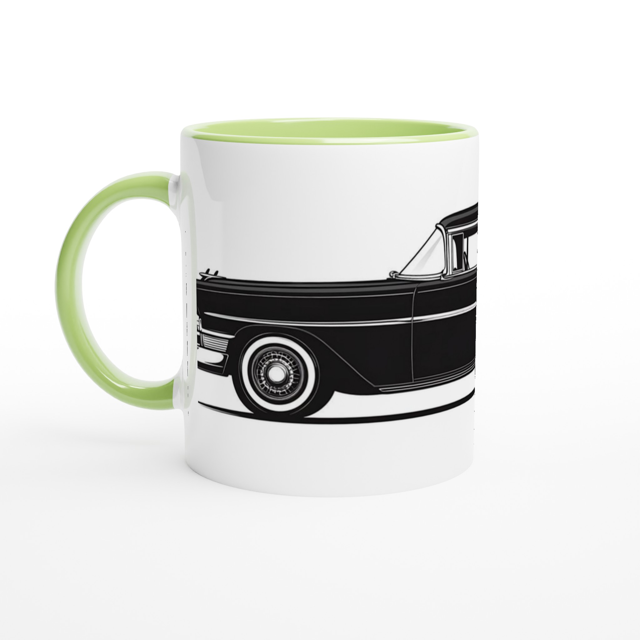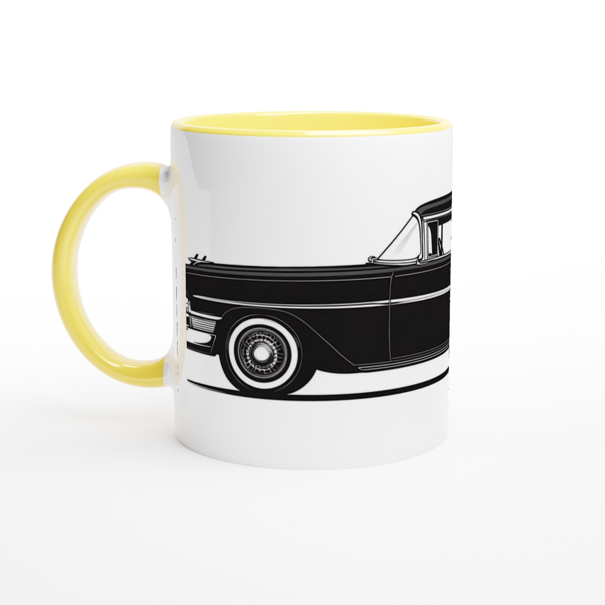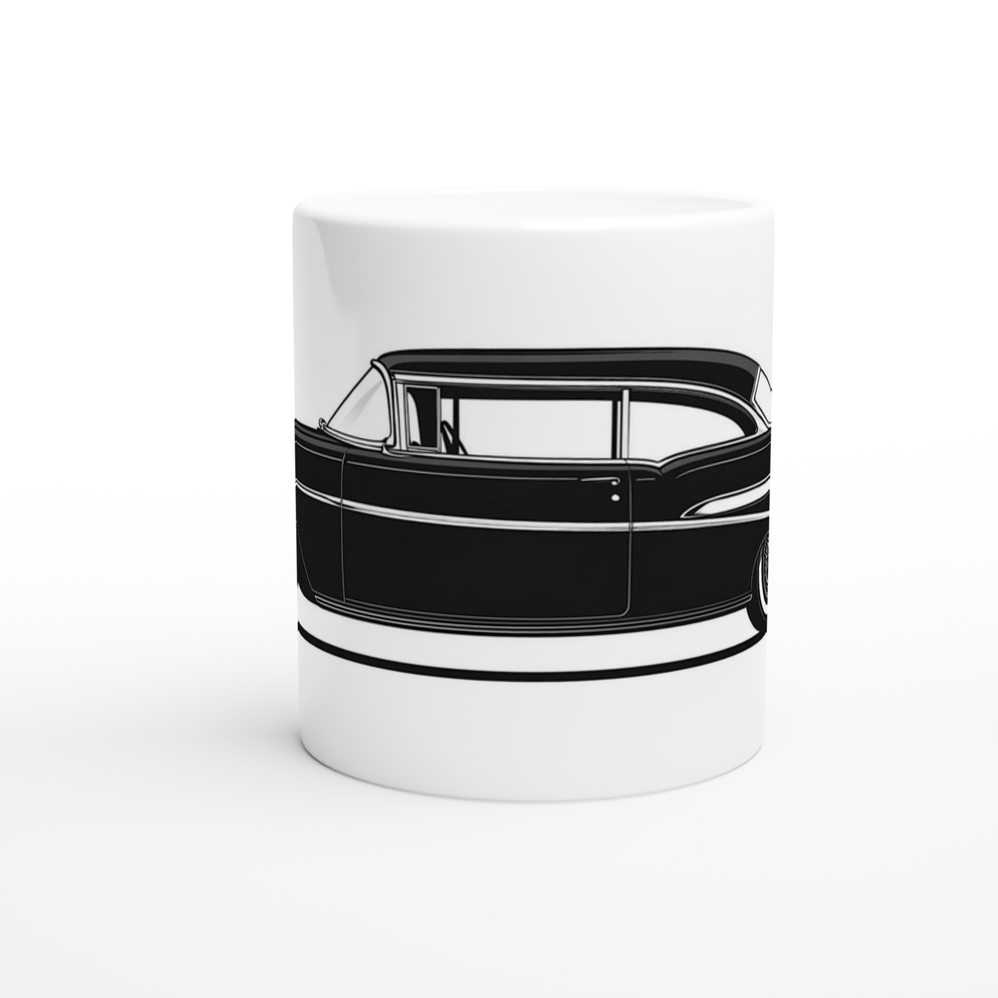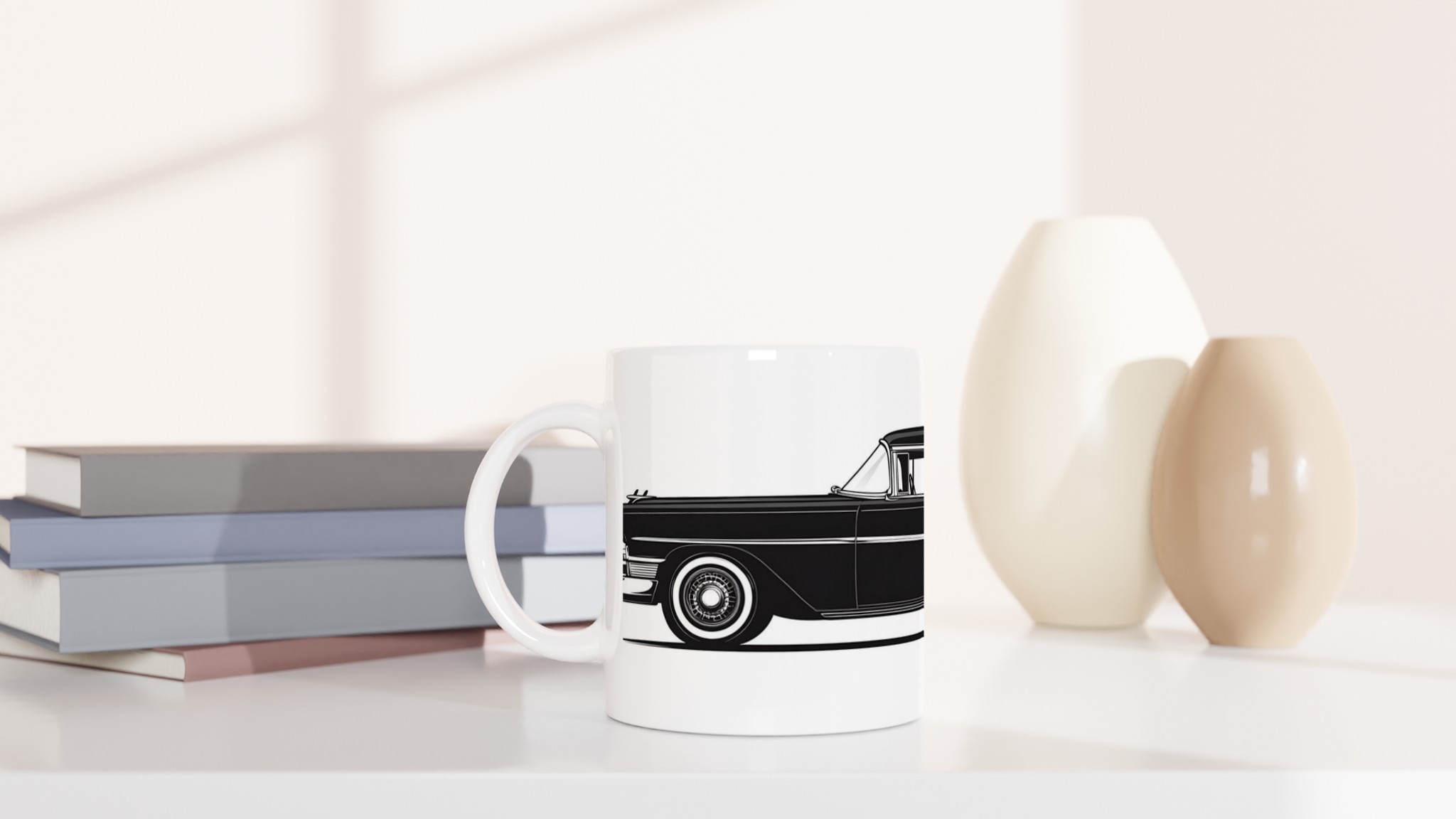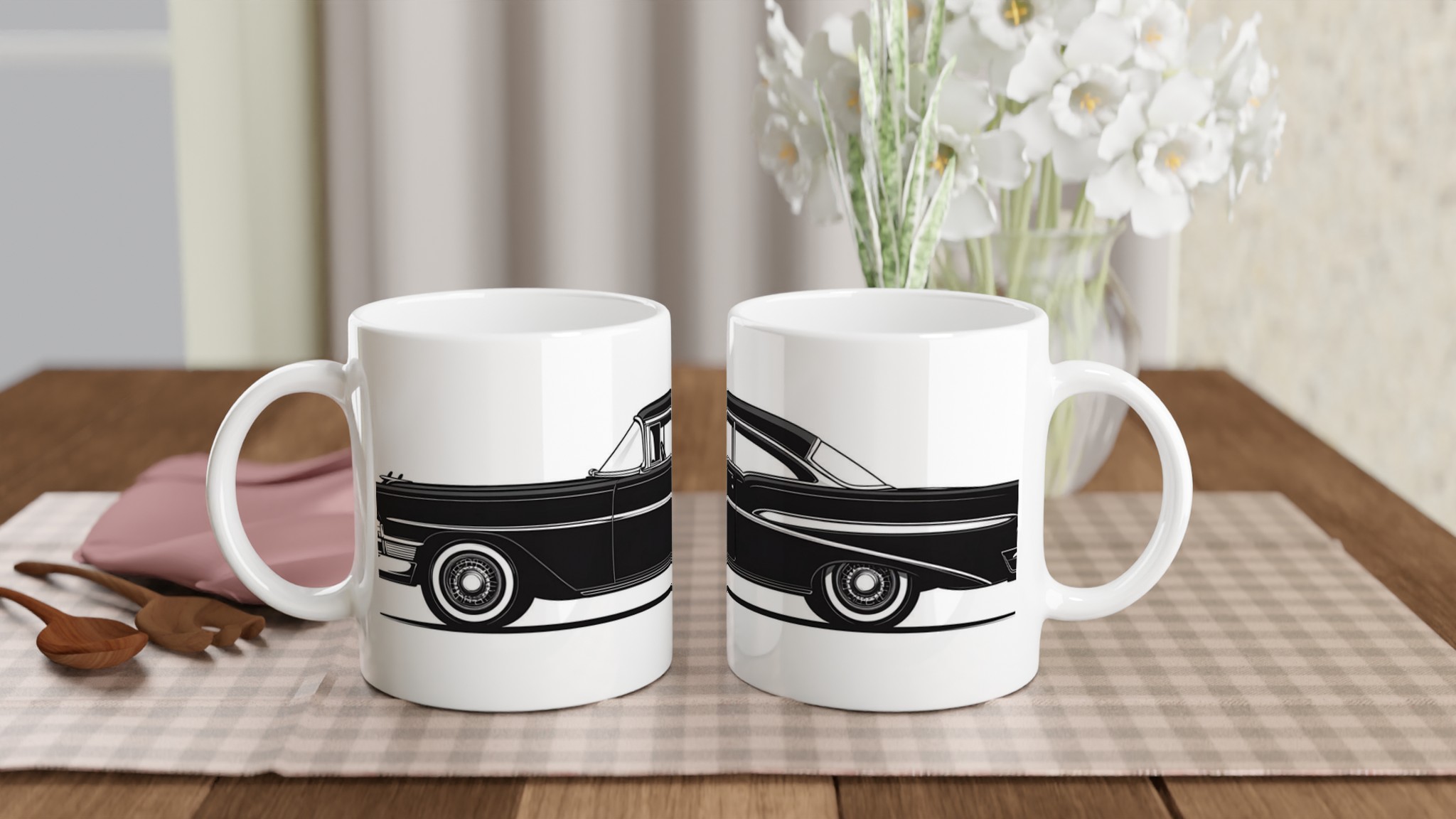 Classic Ride – Vintage Black Car Ceramic Mug 11oz, in your choice of seven vibrant colors!