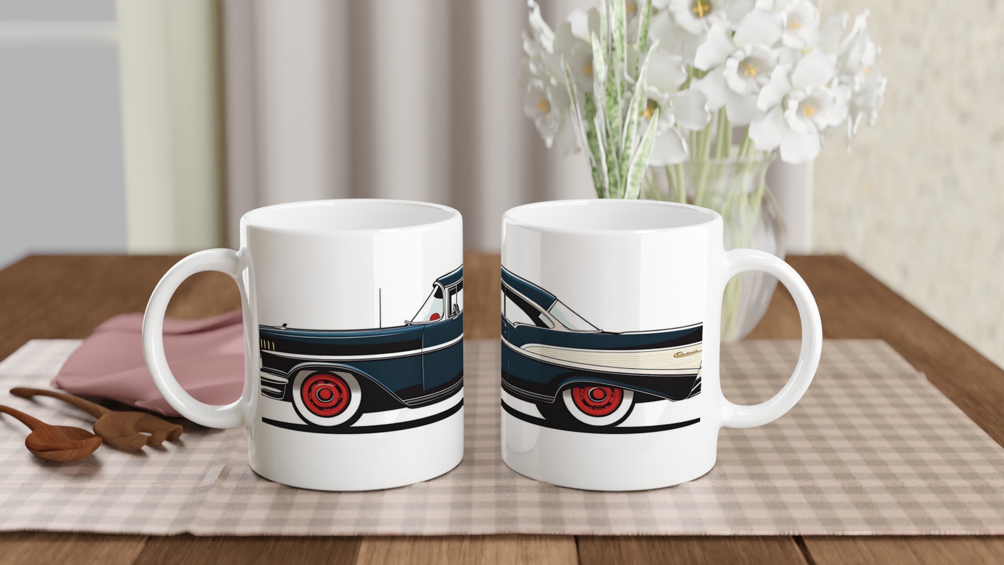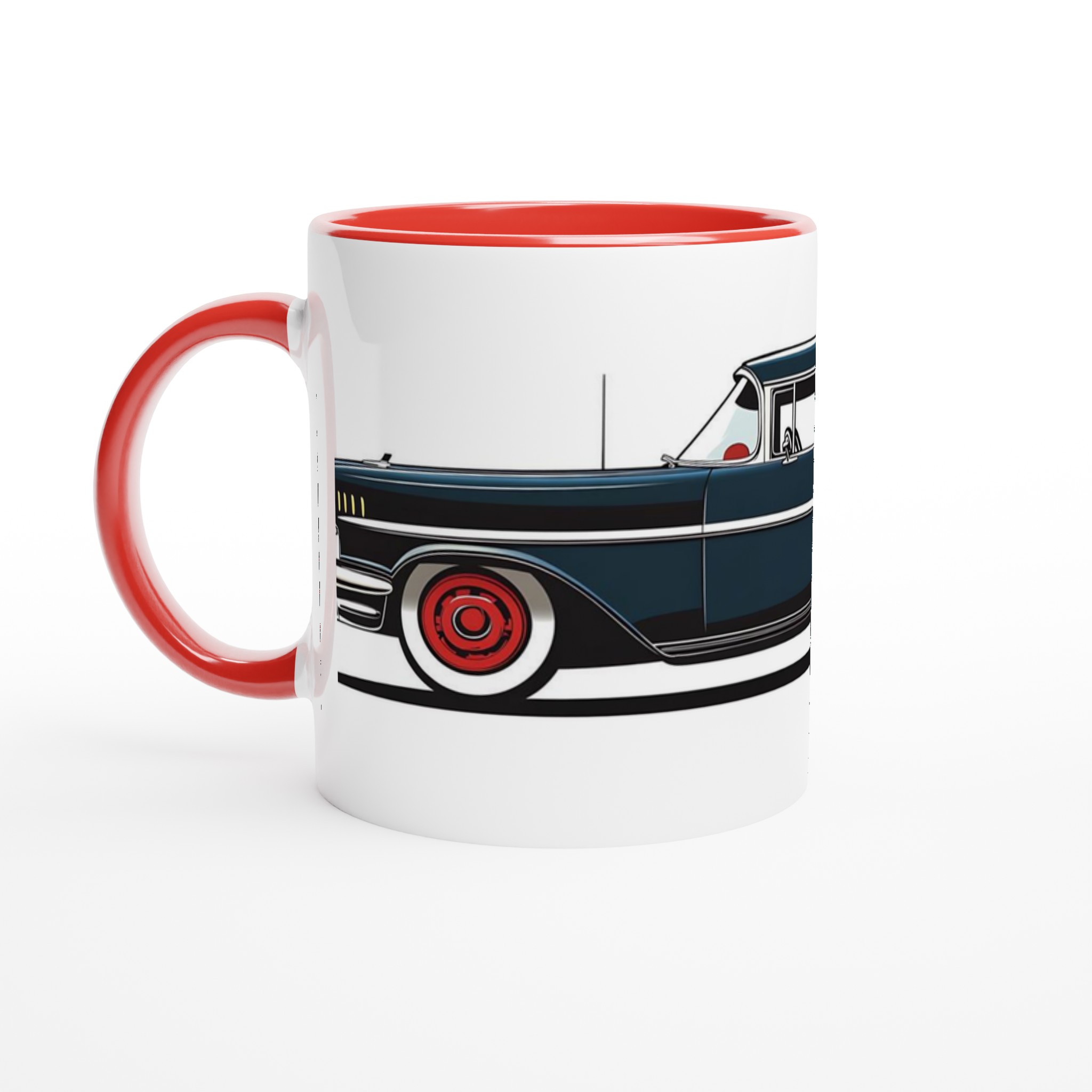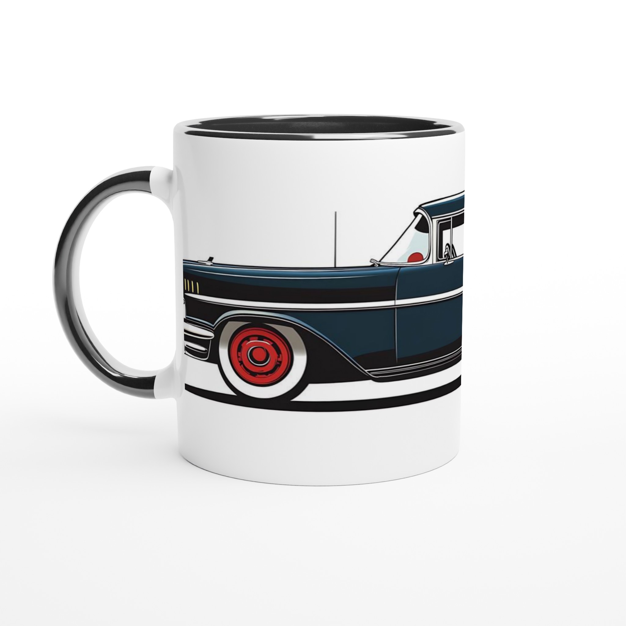 Classic Cruiser – White Ceramic Mug 11oz, Featuring a Retro Car Design in Your Choice of Seven Vibrant Colors