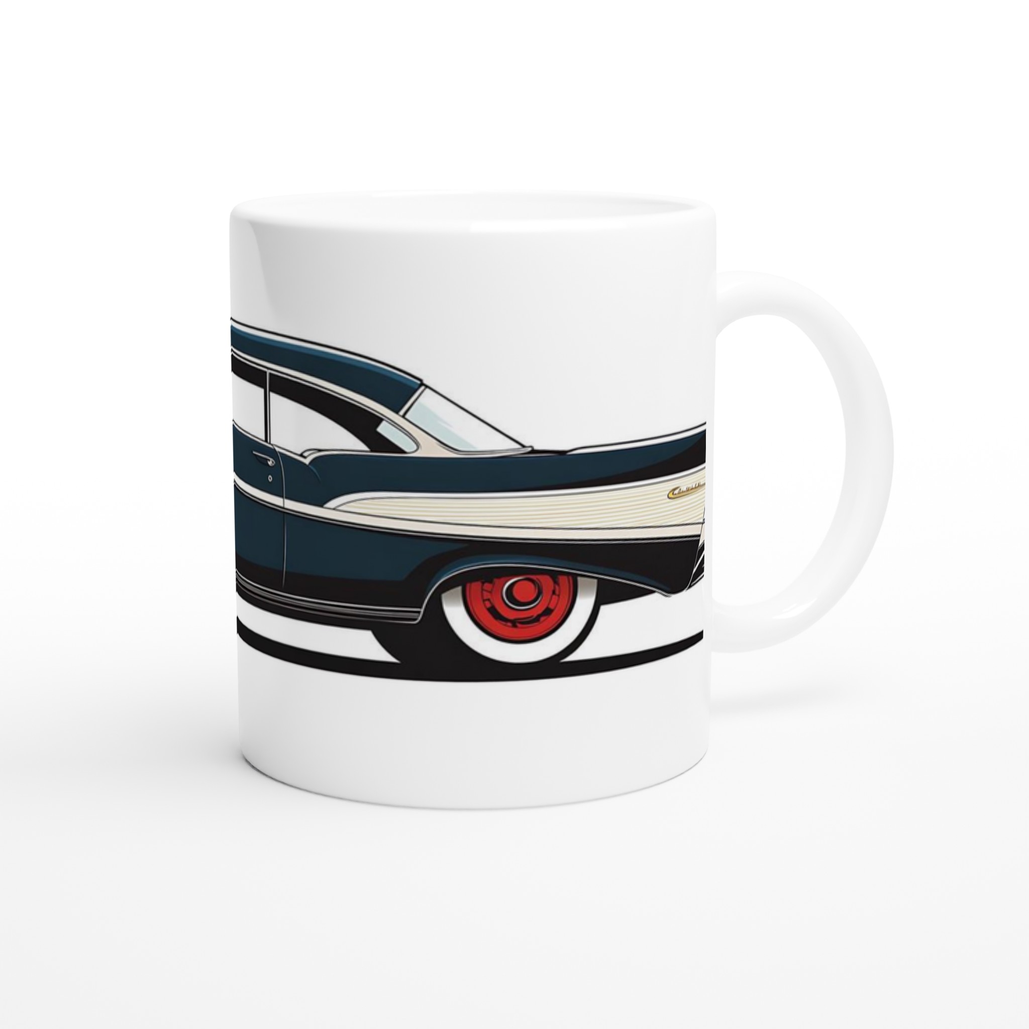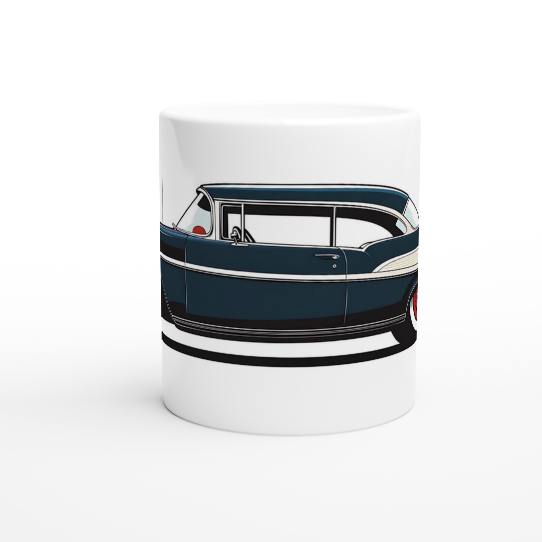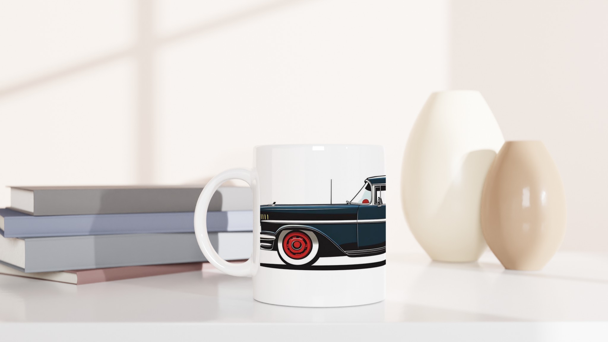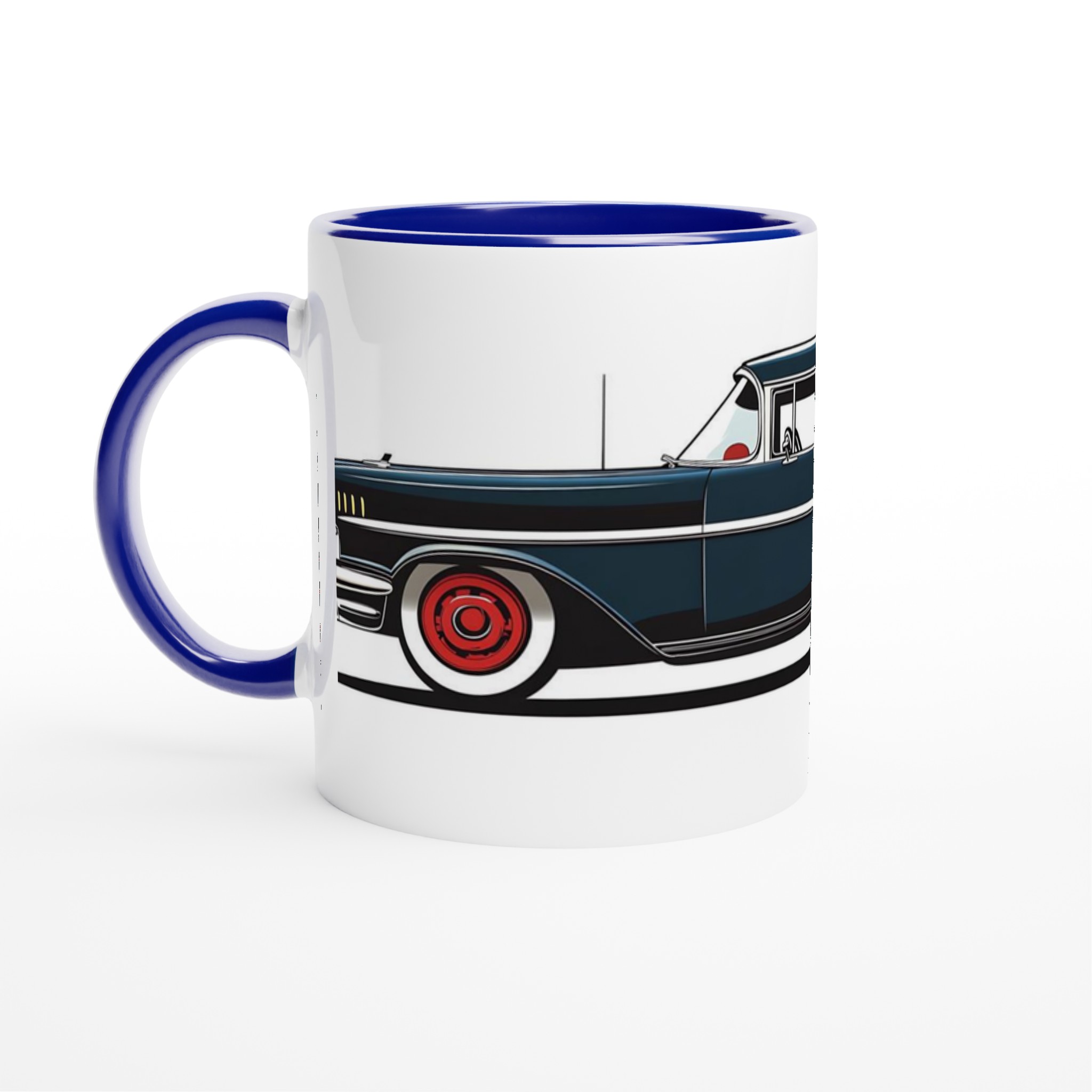 Classic Cruiser – White Ceramic Mug 11oz, Featuring a Retro Car Design in Your Choice of Seven Vibrant Colors