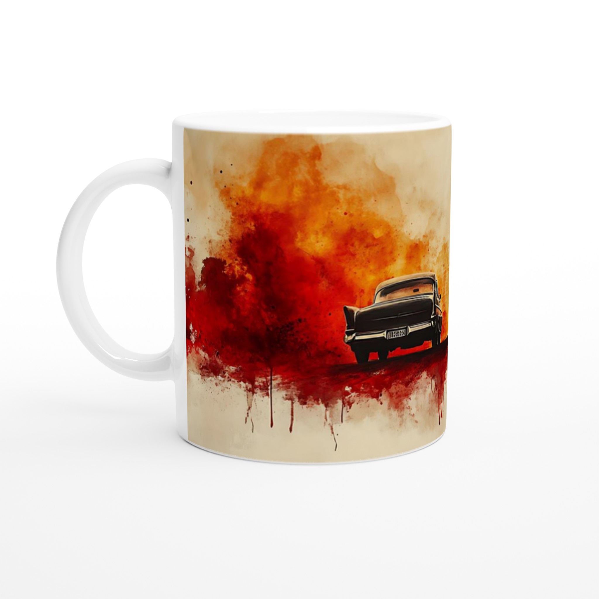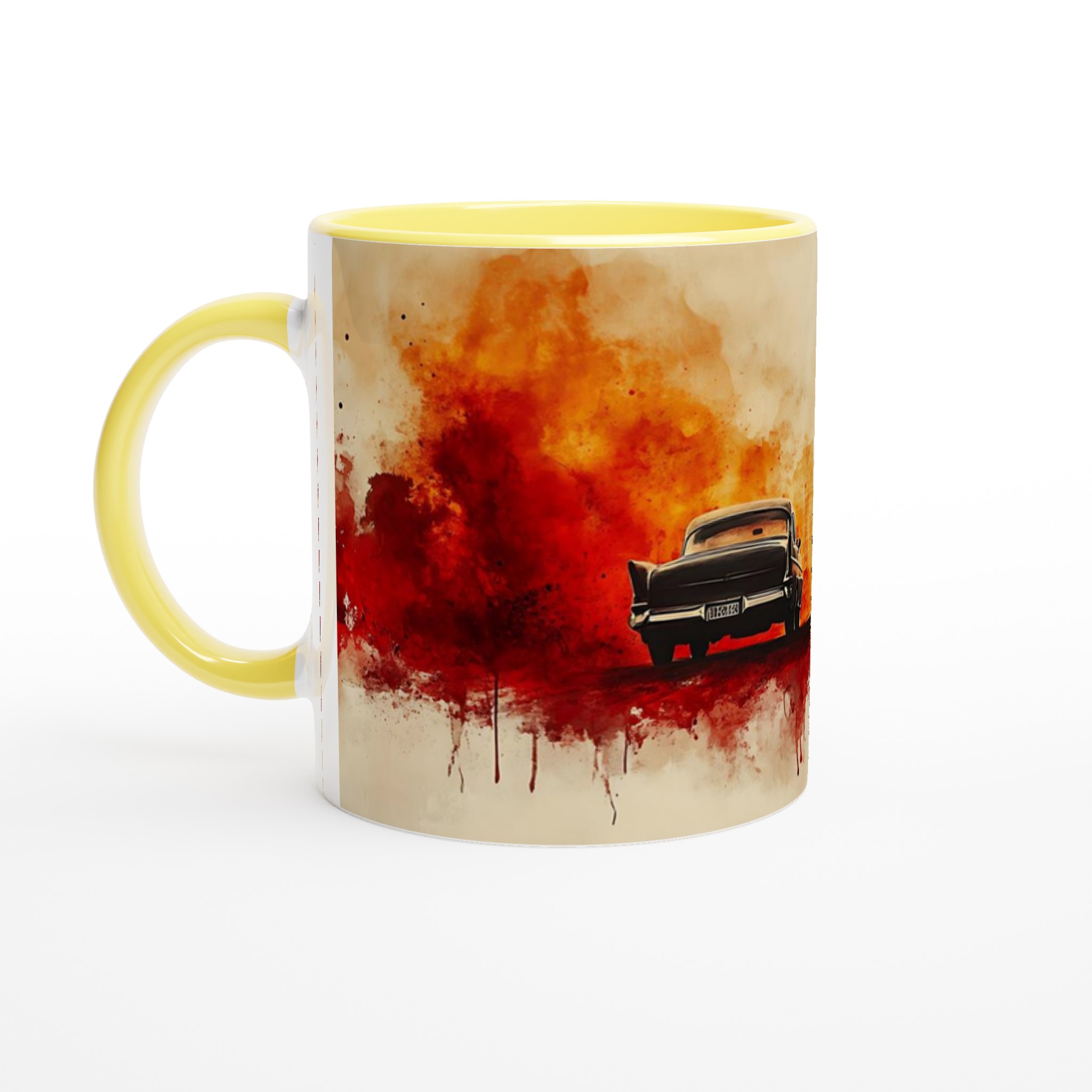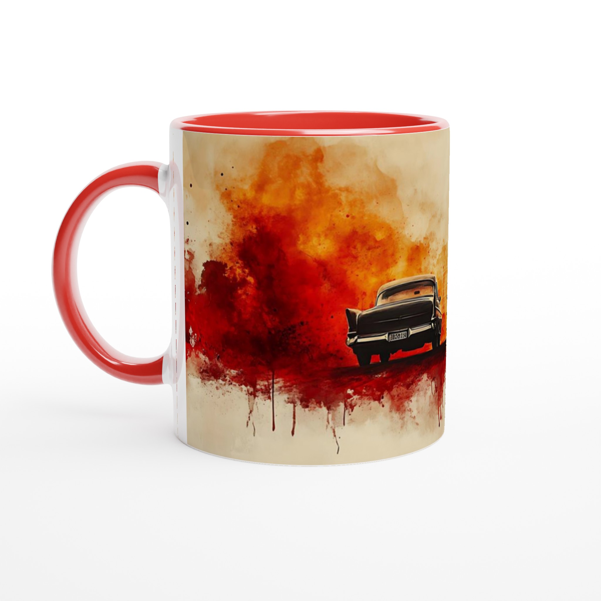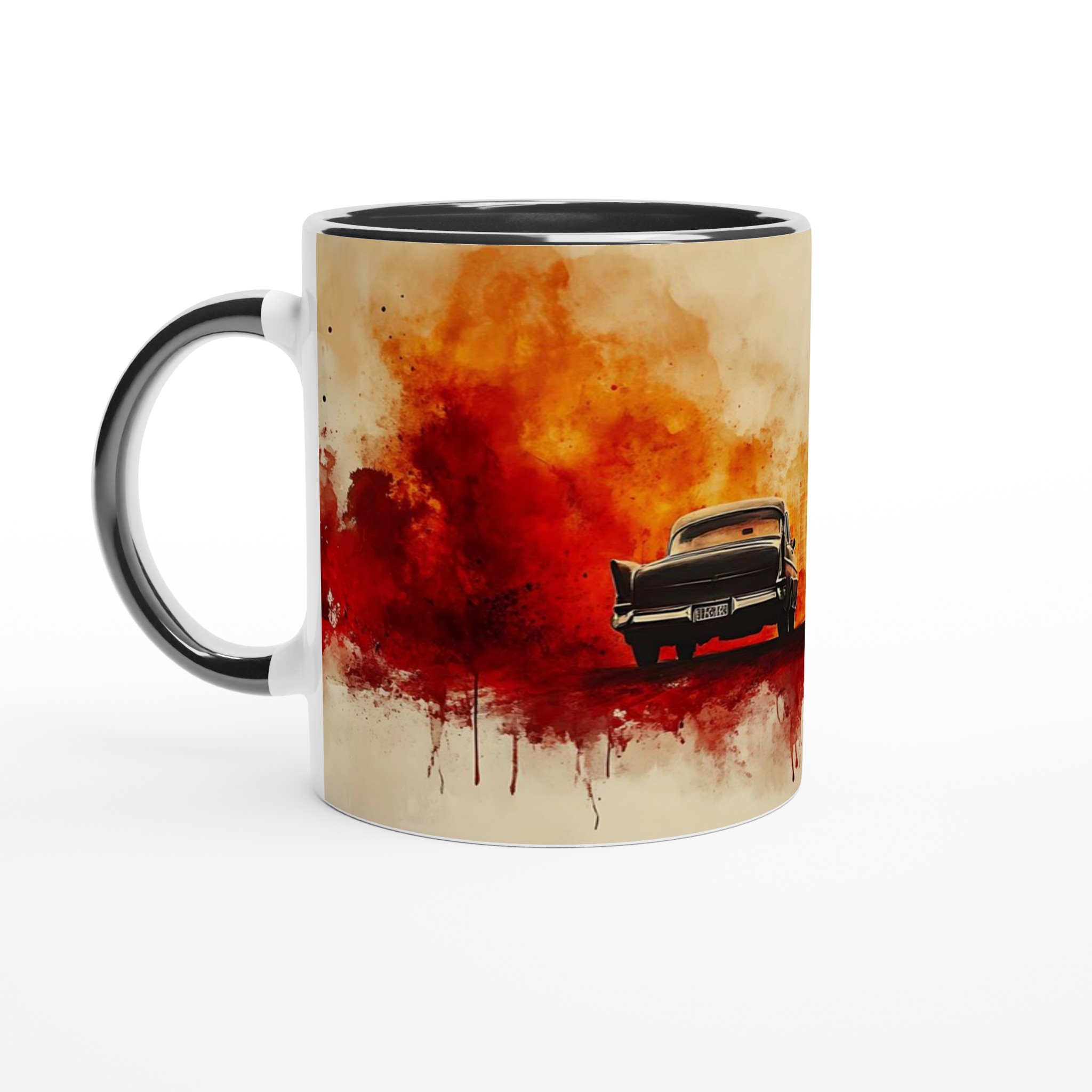 Fiery Departure – Cinematic Watercolor Ceramic Mug 11oz – Choose Your Bold Hue