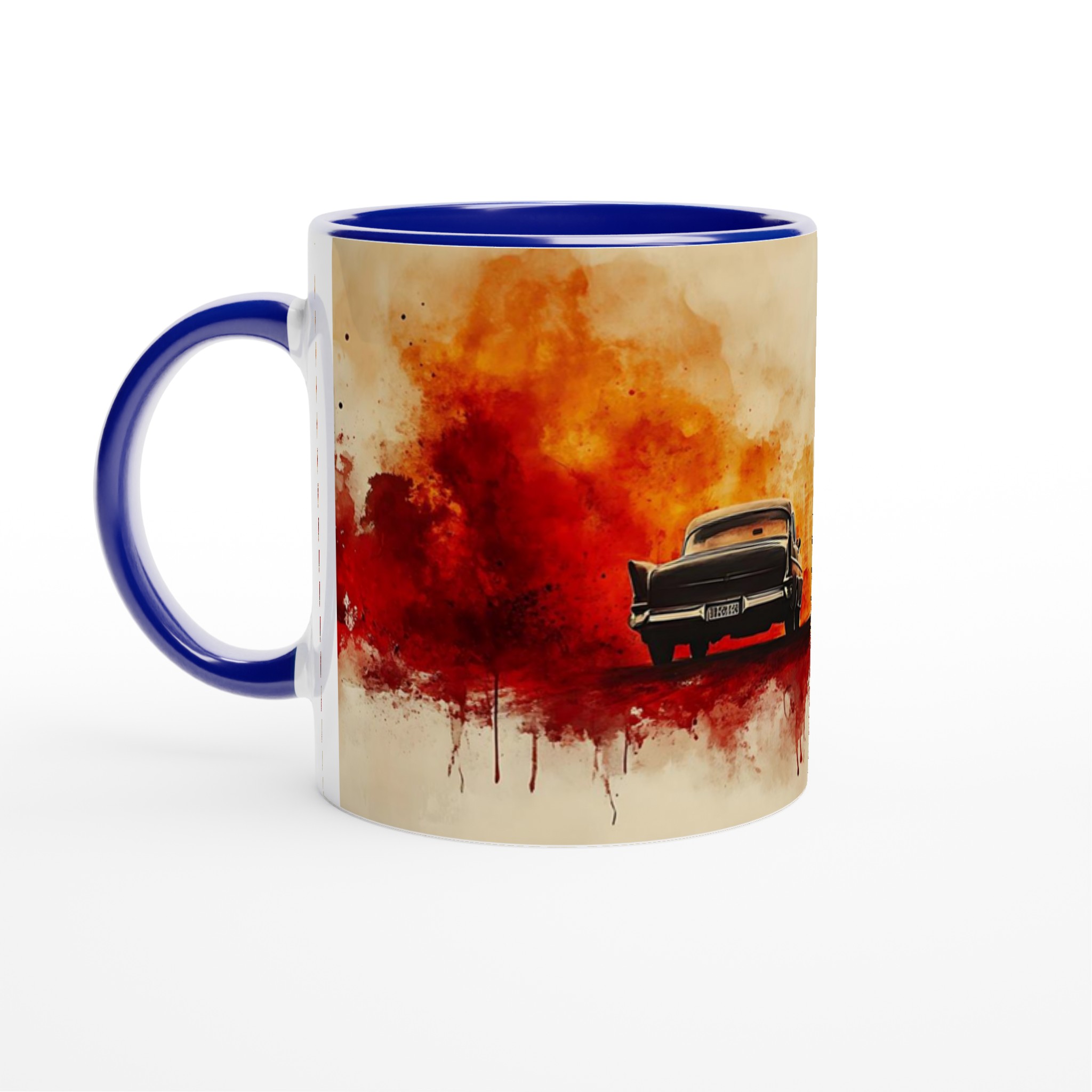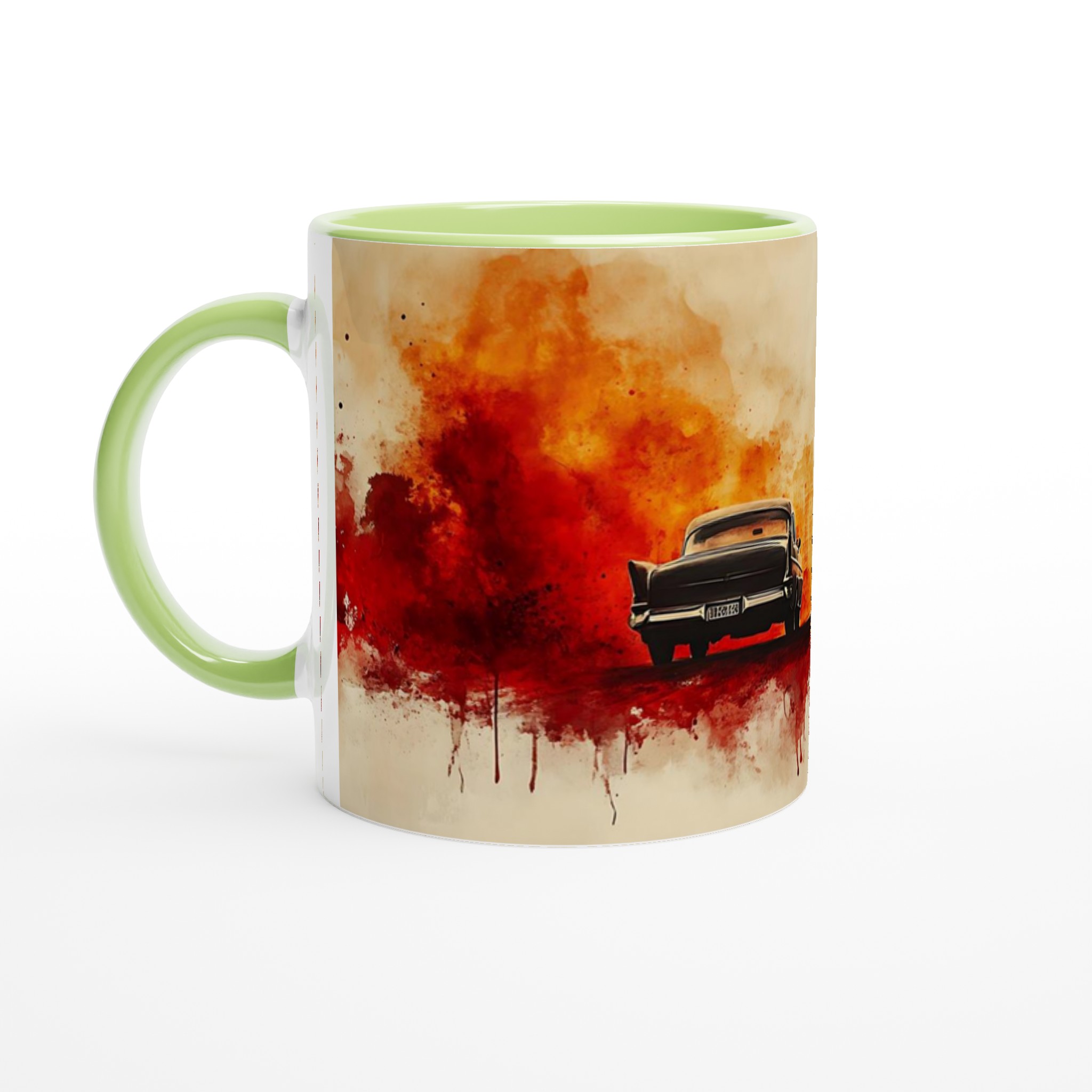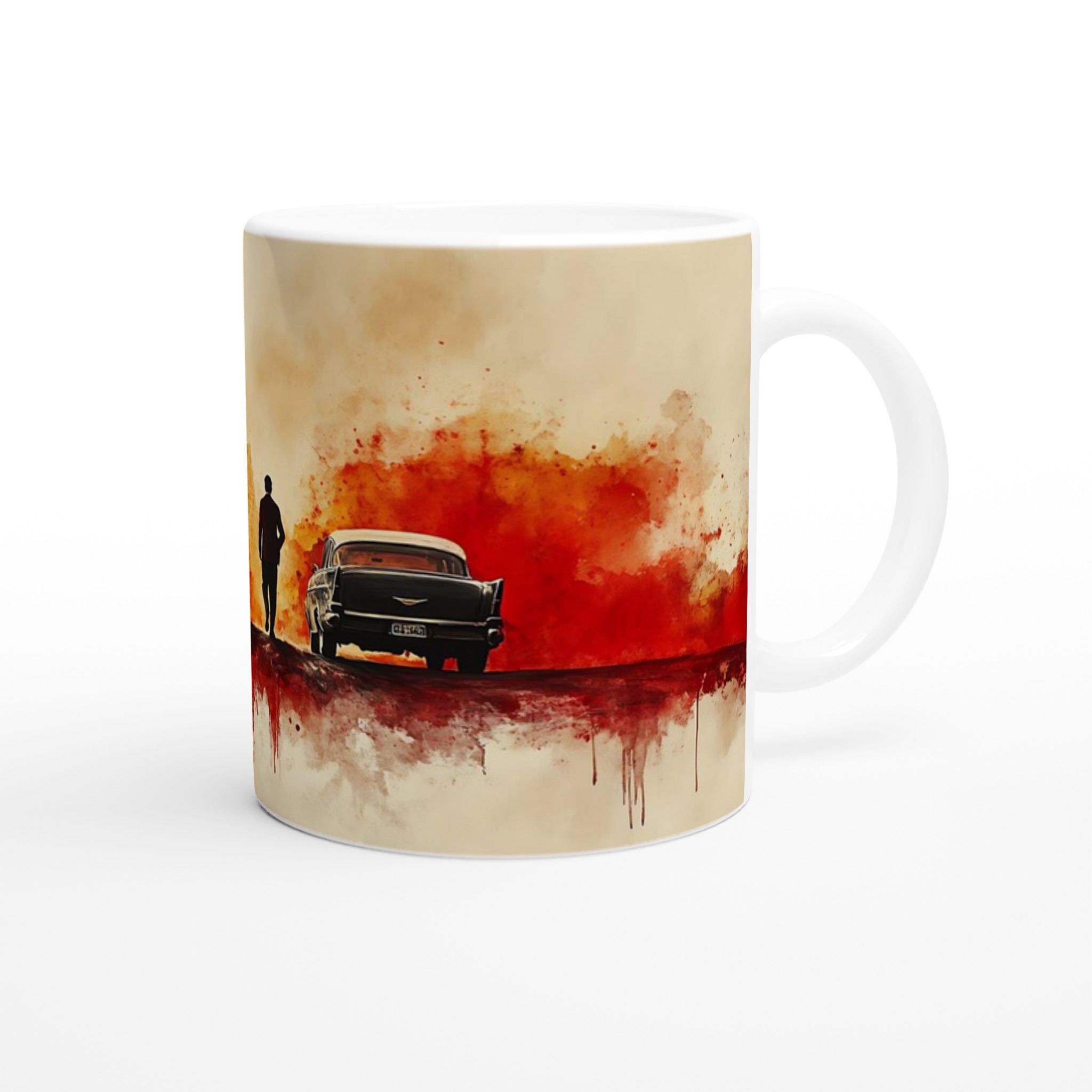 Fiery Departure – Cinematic Watercolor Ceramic Mug 11oz – Choose Your Bold Hue