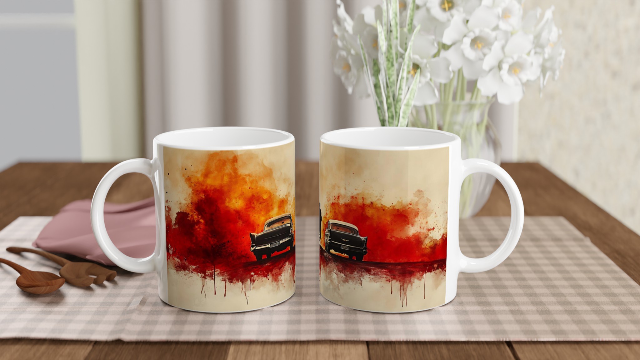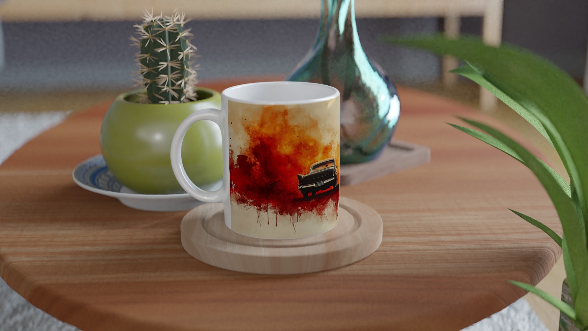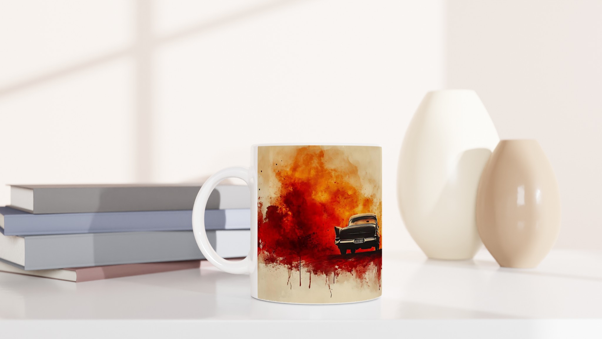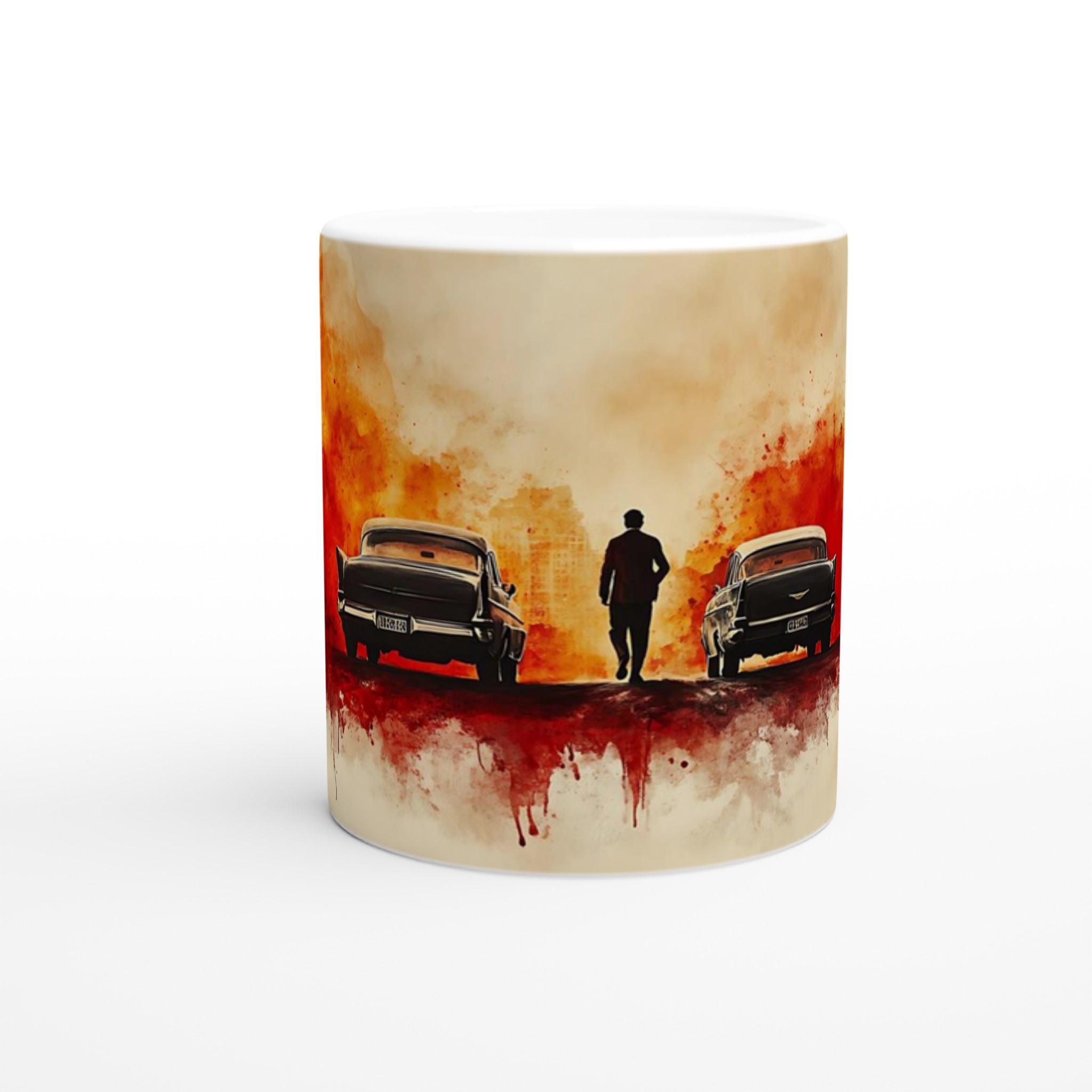 Fiery Departure – Cinematic Watercolor Ceramic Mug 11oz – Choose Your Bold Hue